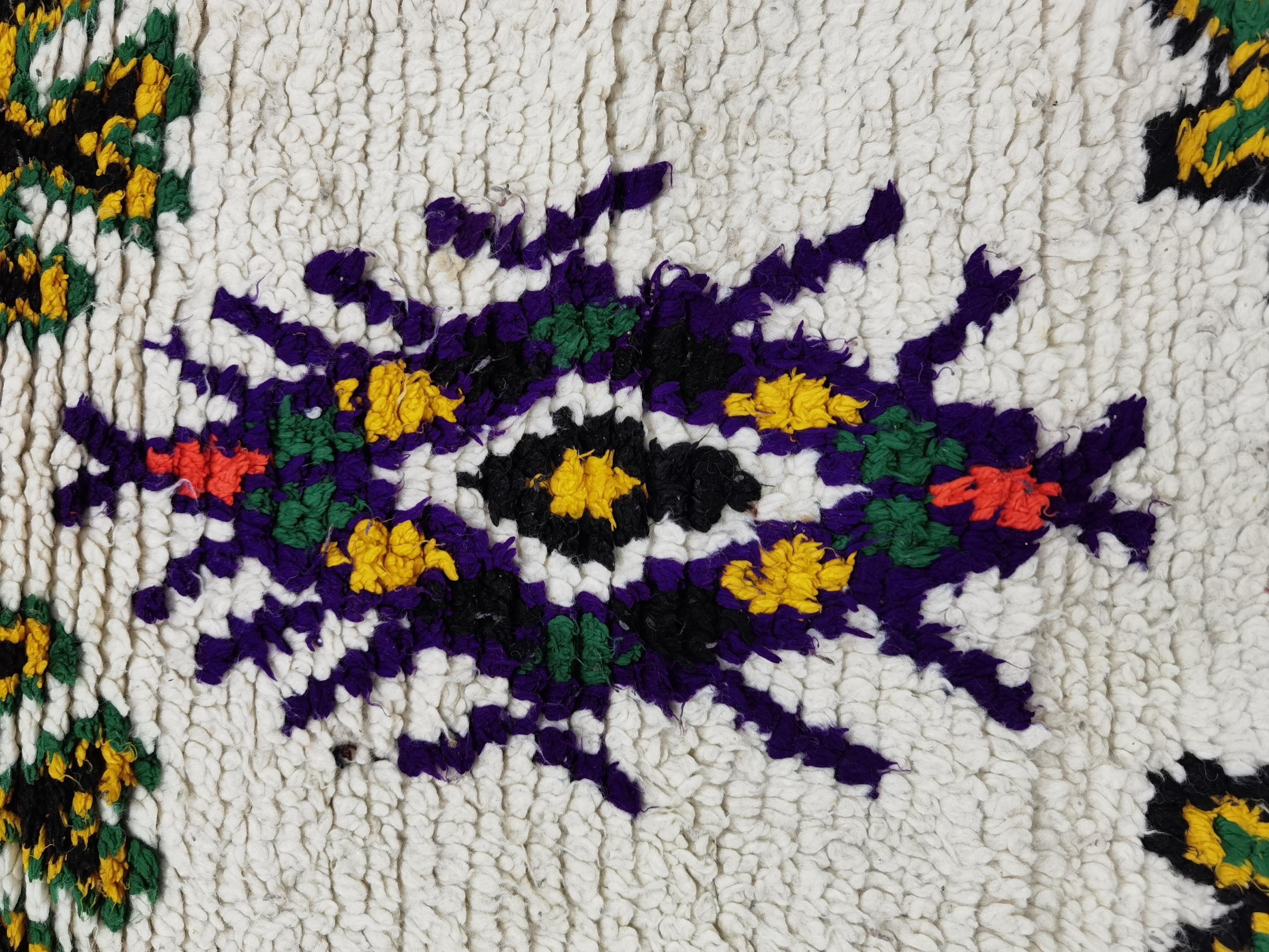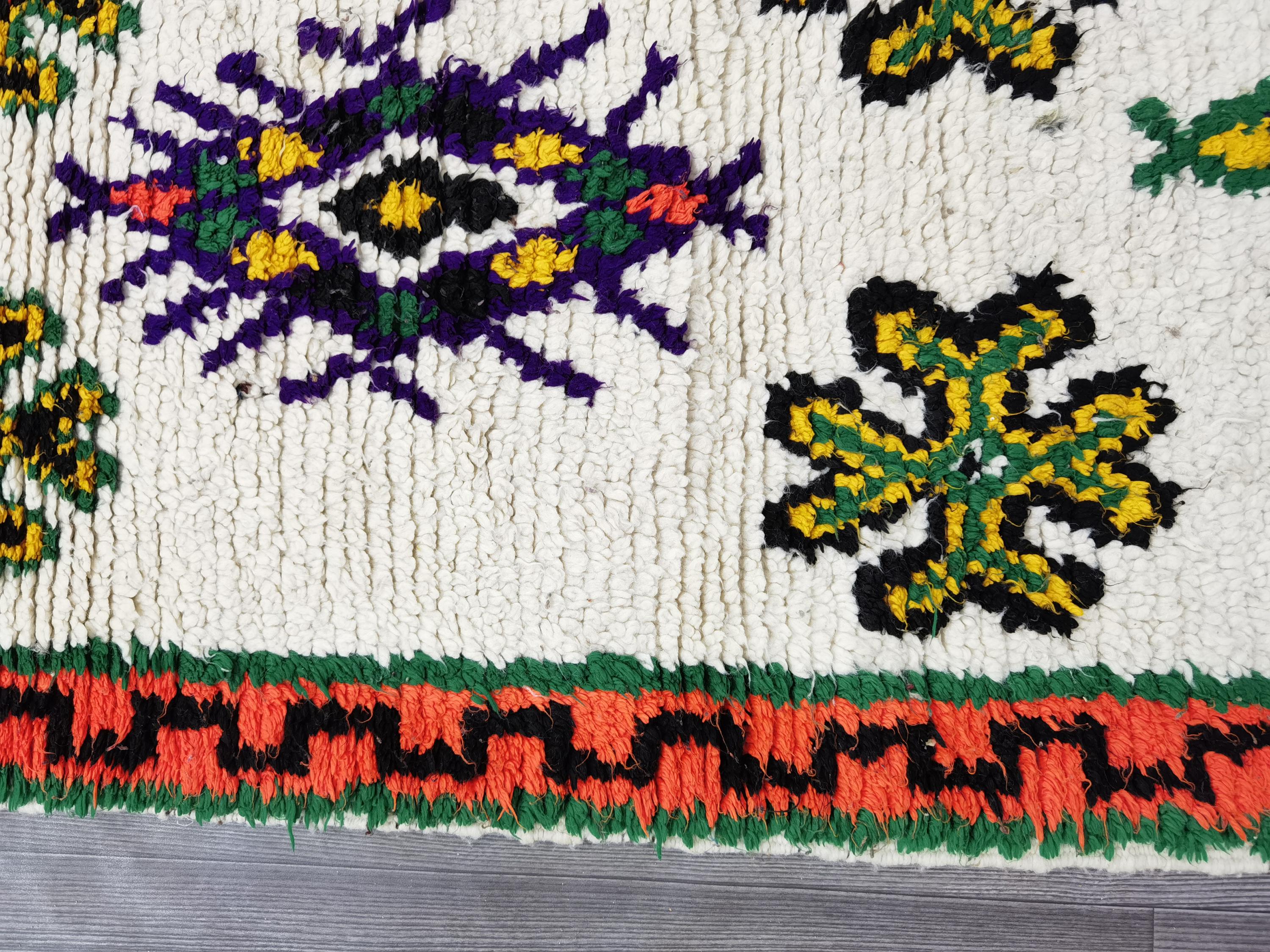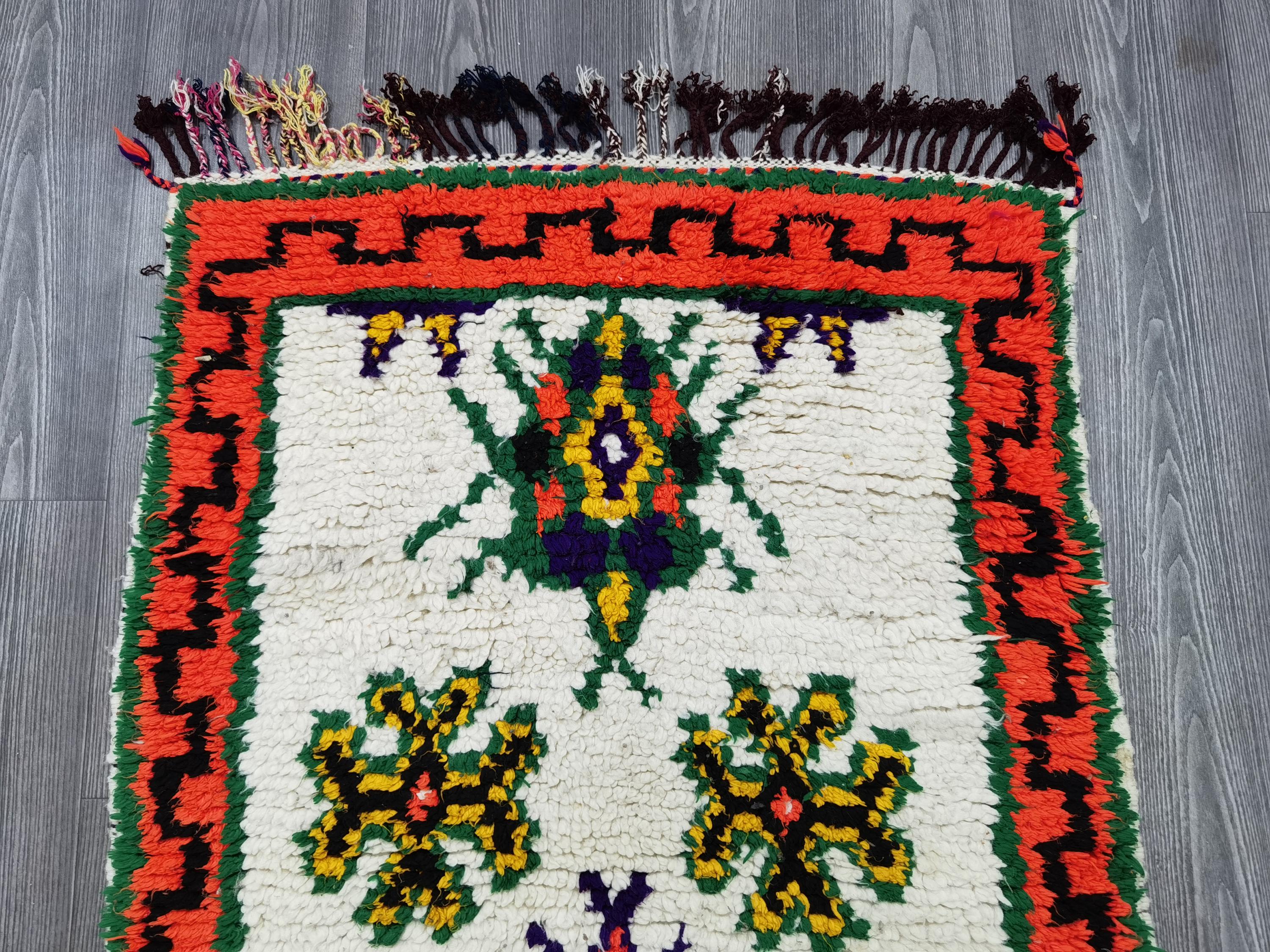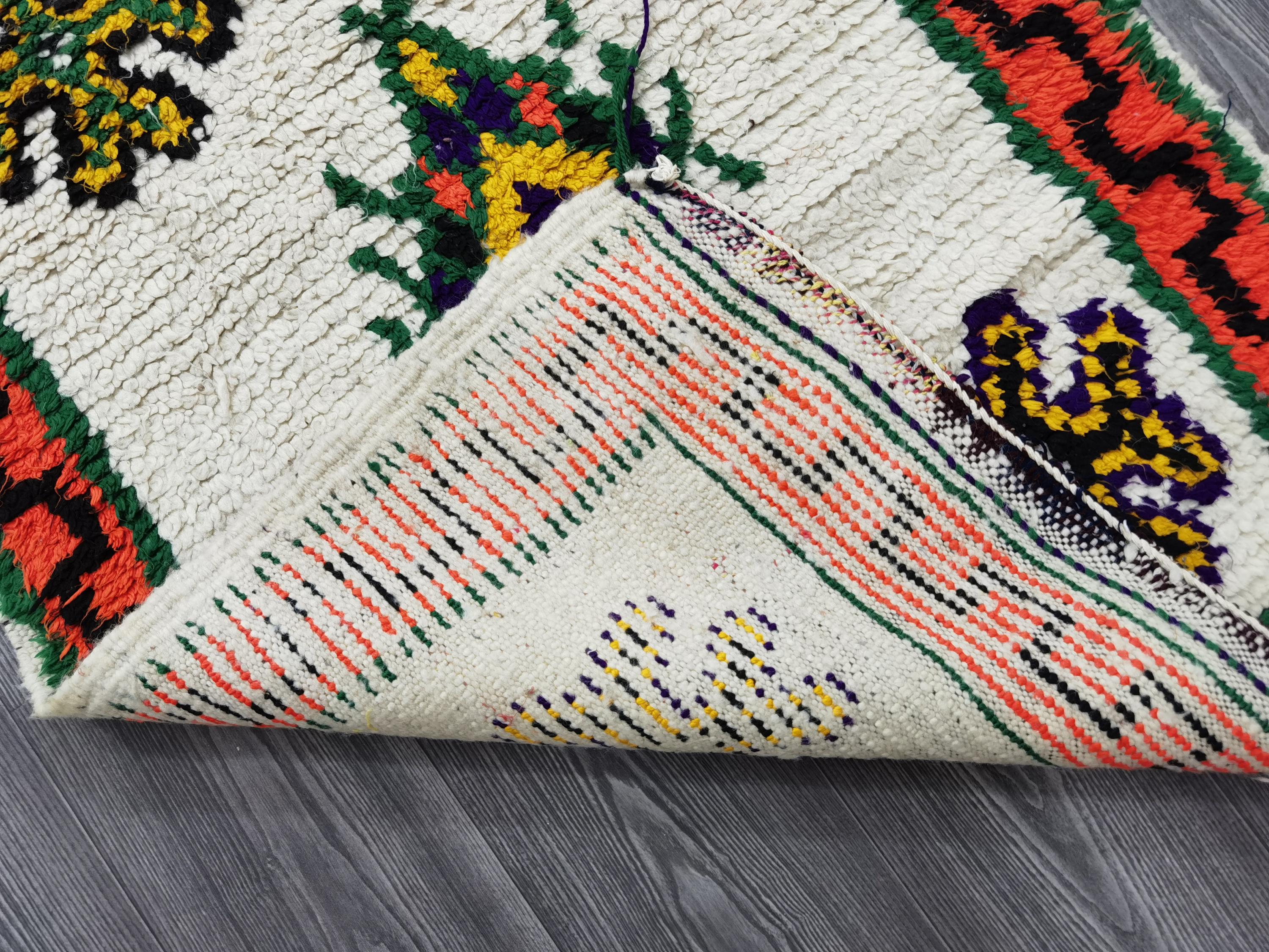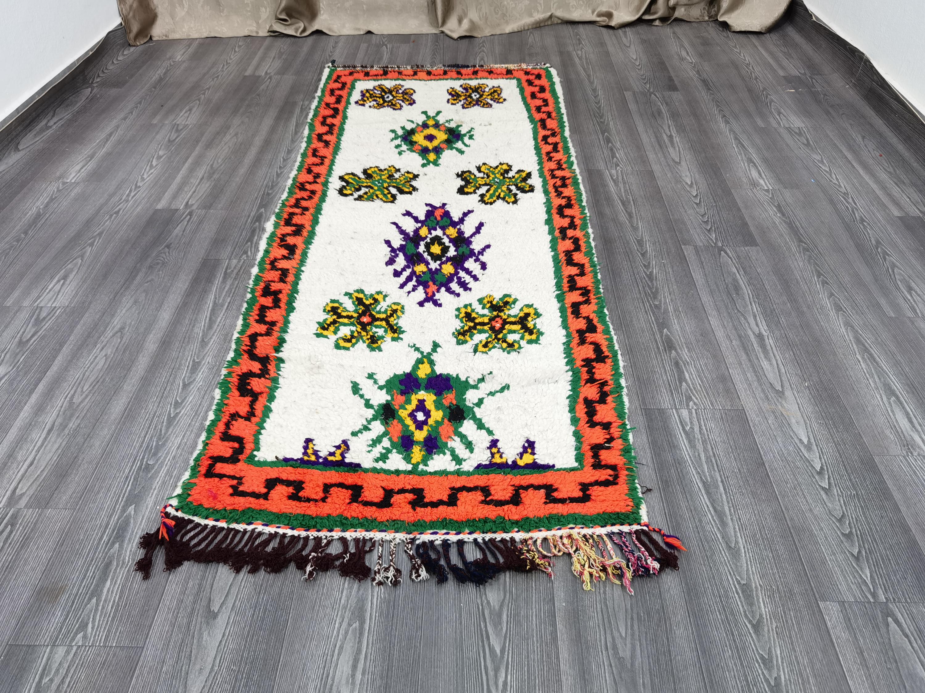 Boujaad is a vibrant and colorful wool runner that will add life to any room in your home. Made from 100% wool, this rug is perfect for use in the living room, bedroom, or anywhere you want to add some beautiful Moroccan flair. The soft and fluffy texture makes it comfortable to walk on, and the vivid colors will brighten up any space. Whether you're looking for a traditional shag rug or something a little more bohemian, Boujaad is sure to be a hit with your guests.