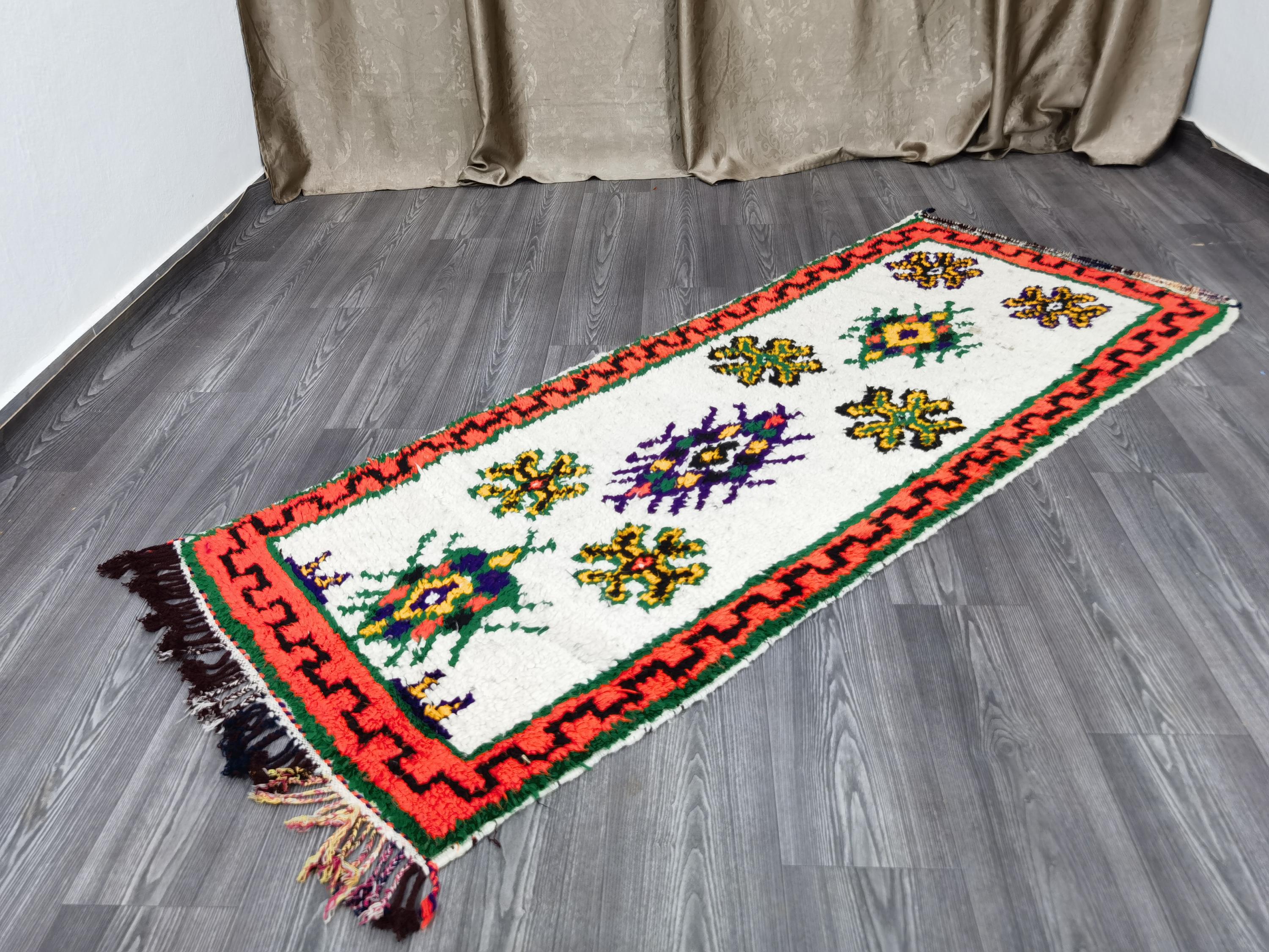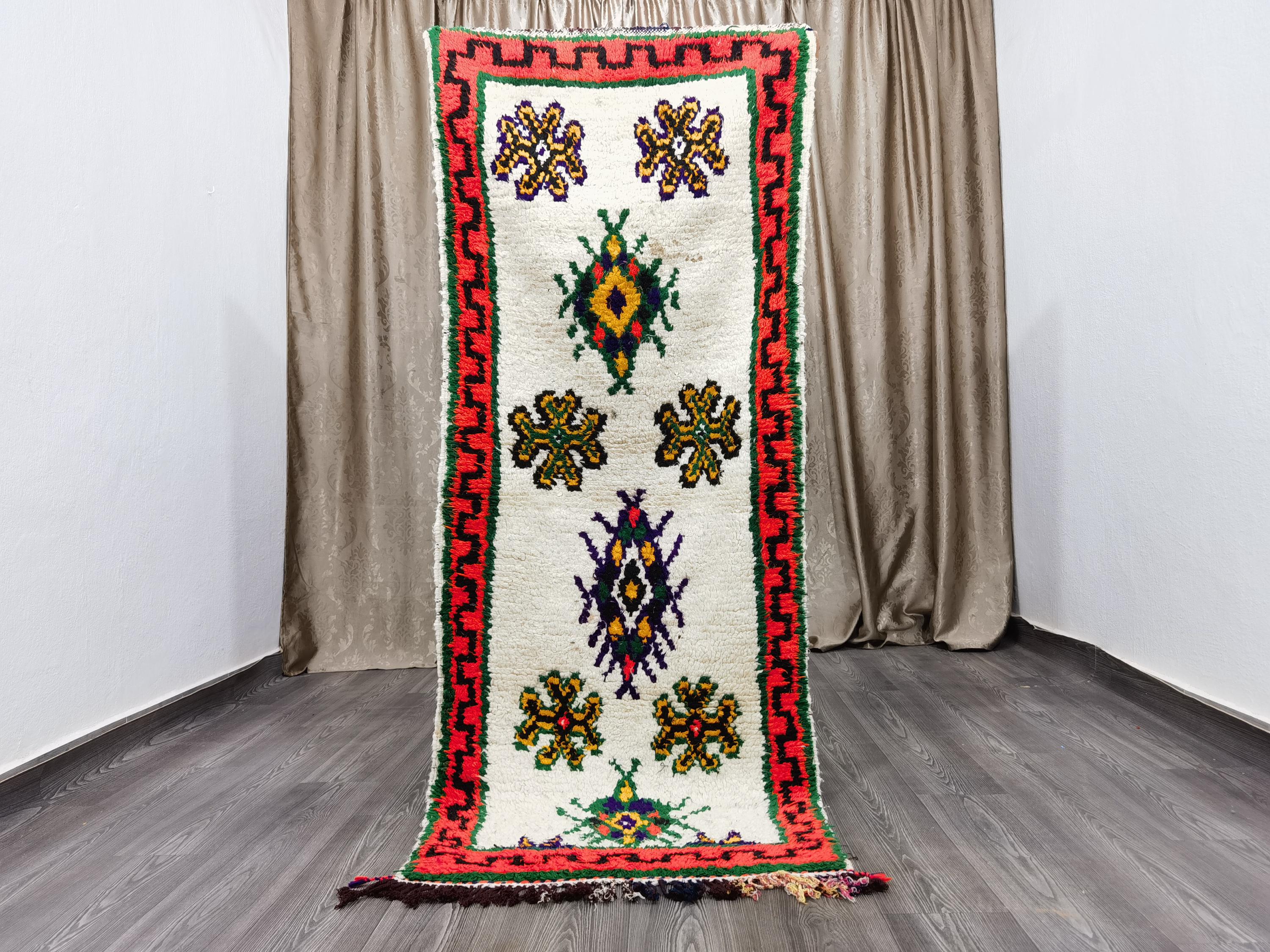 Hand-Knotted Wool Boujaad Runner Rug, Colorful Moroccan Hallway Rug (7x2.7 ft)