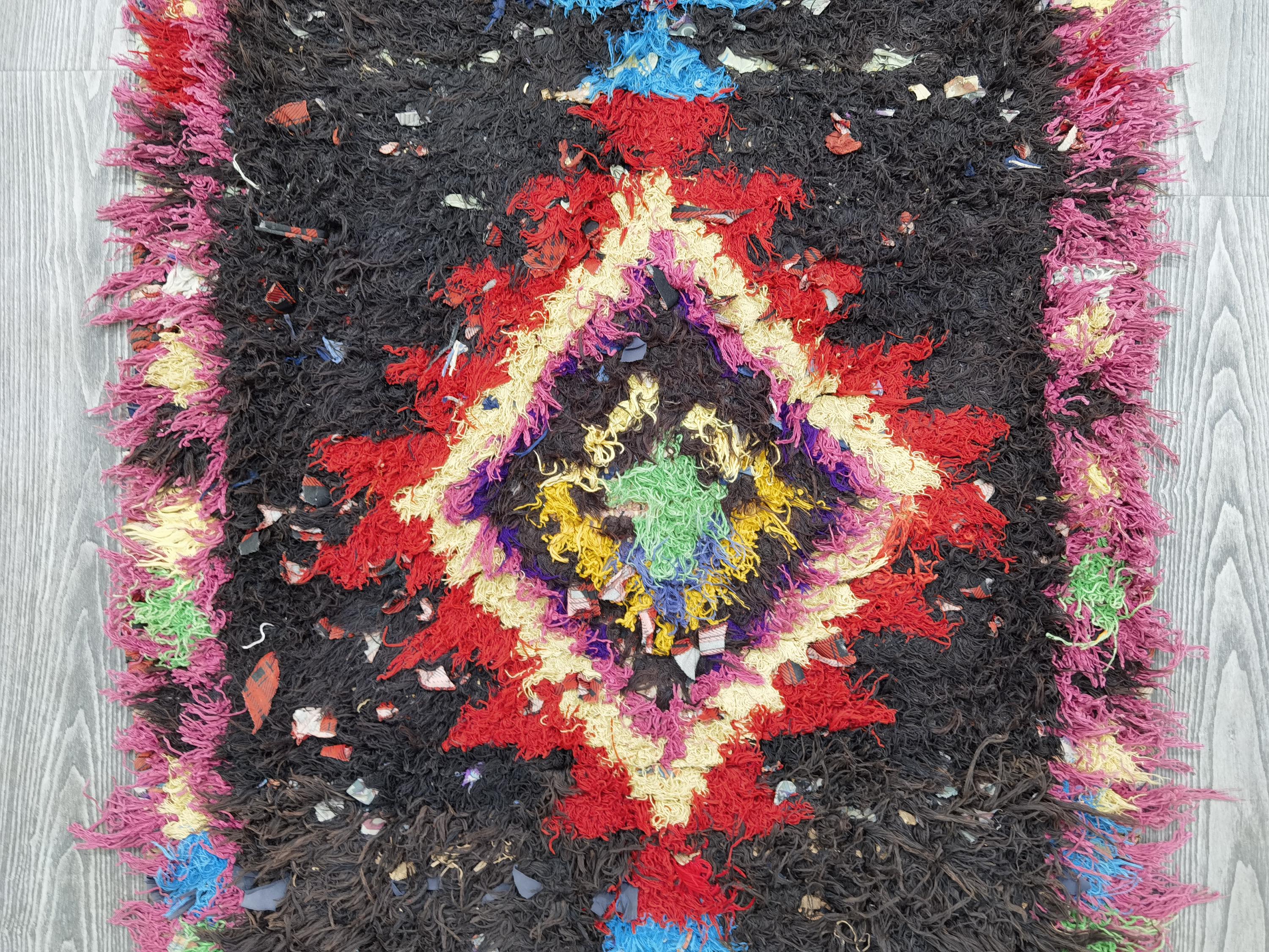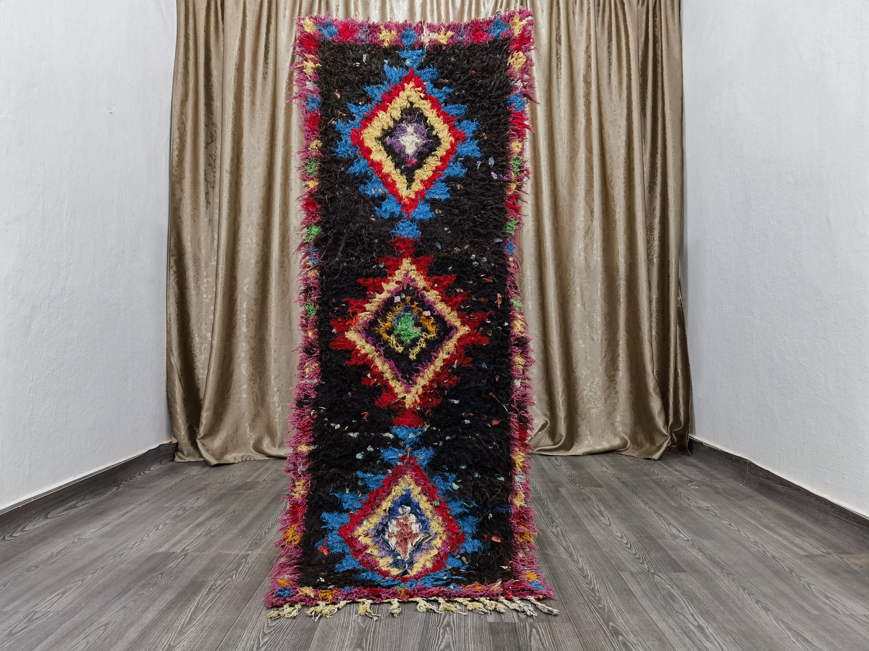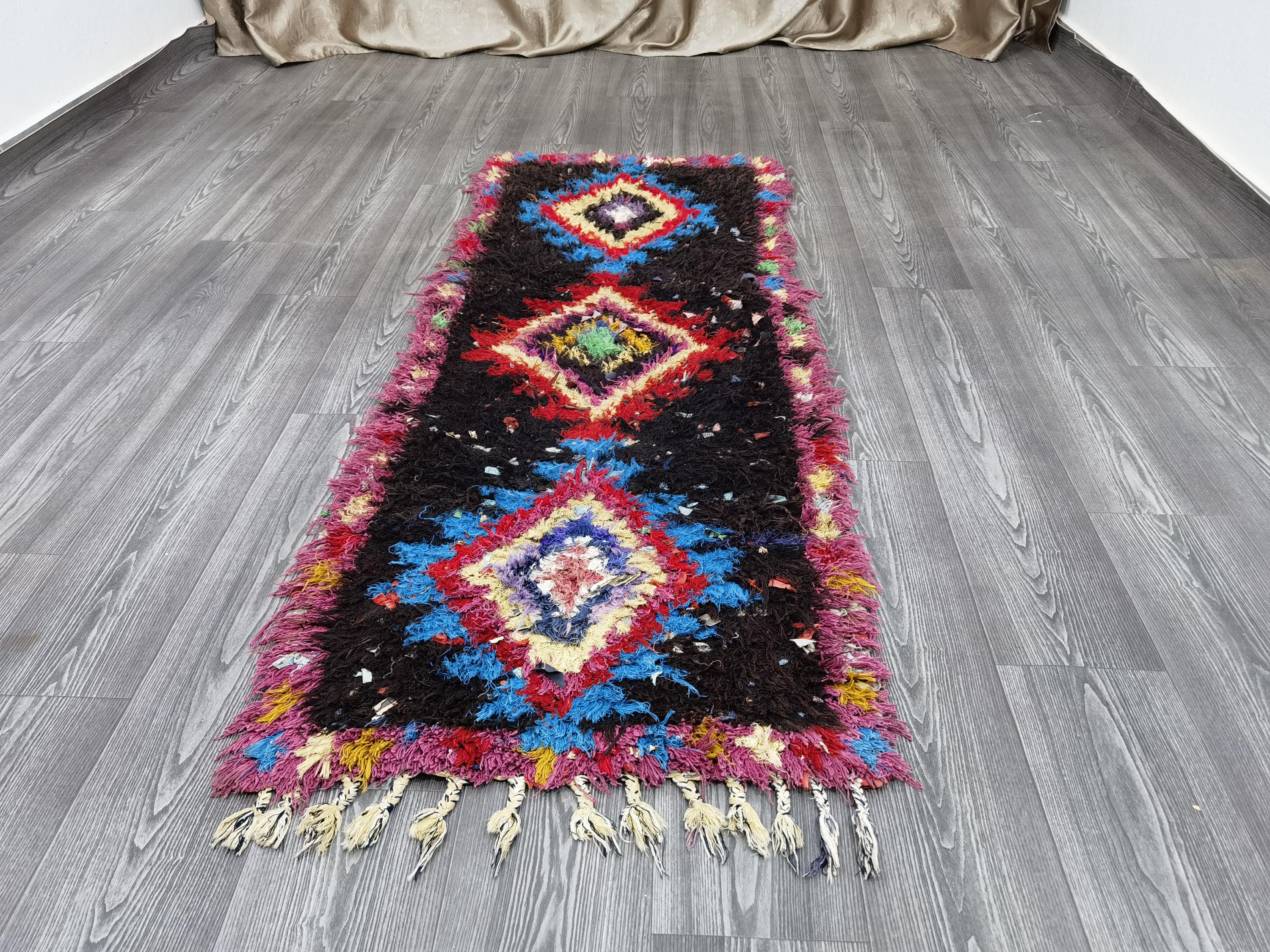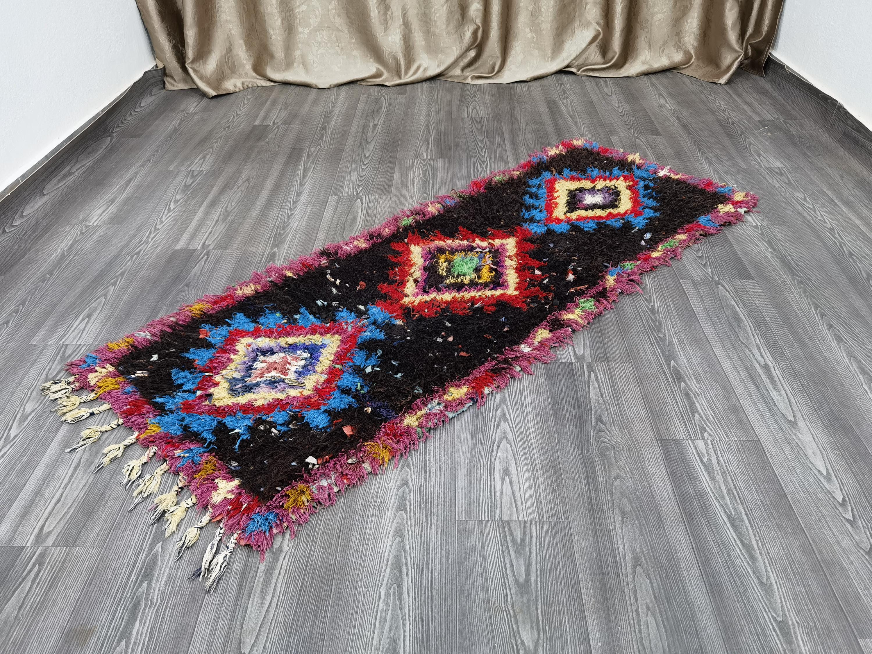 Black Vintage Moroccan Rug 2.3x6 ft - Moroccan Berber Rug - Moroccan Handmade Rug, Boucherouite Rug, Unique Colorful boujaad Rug