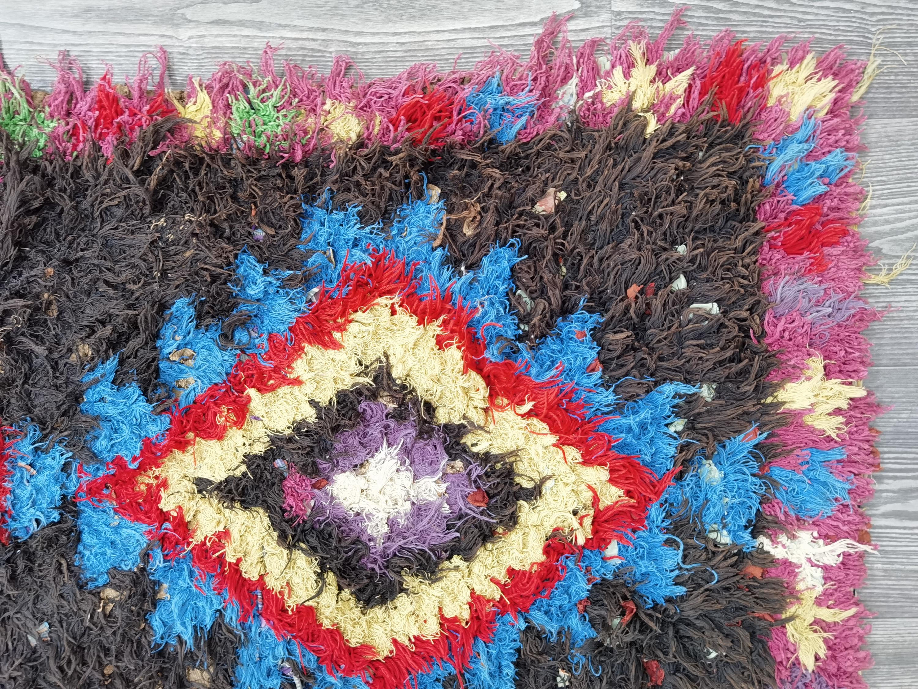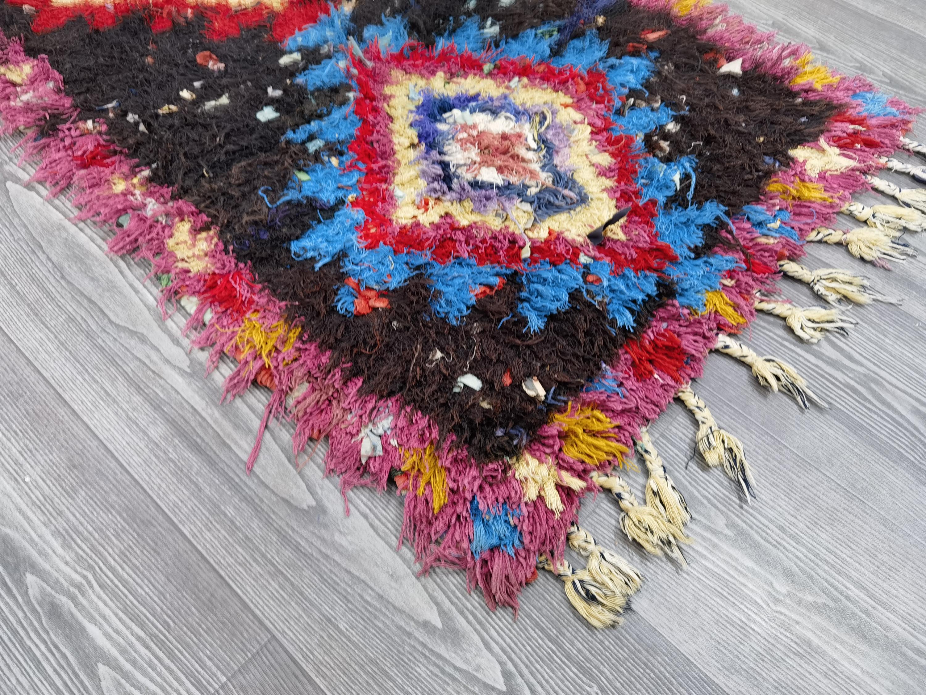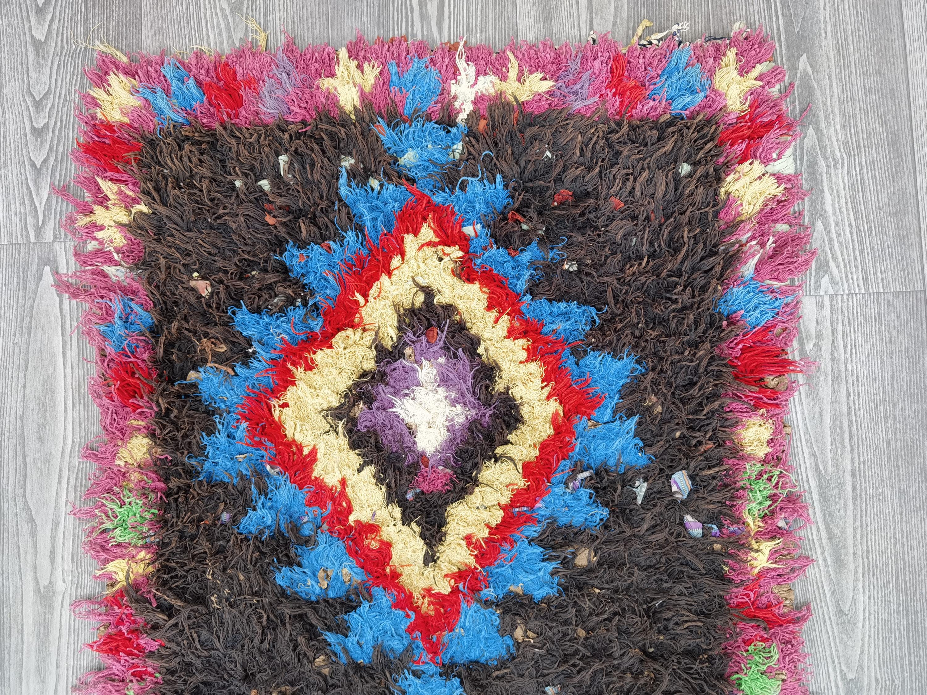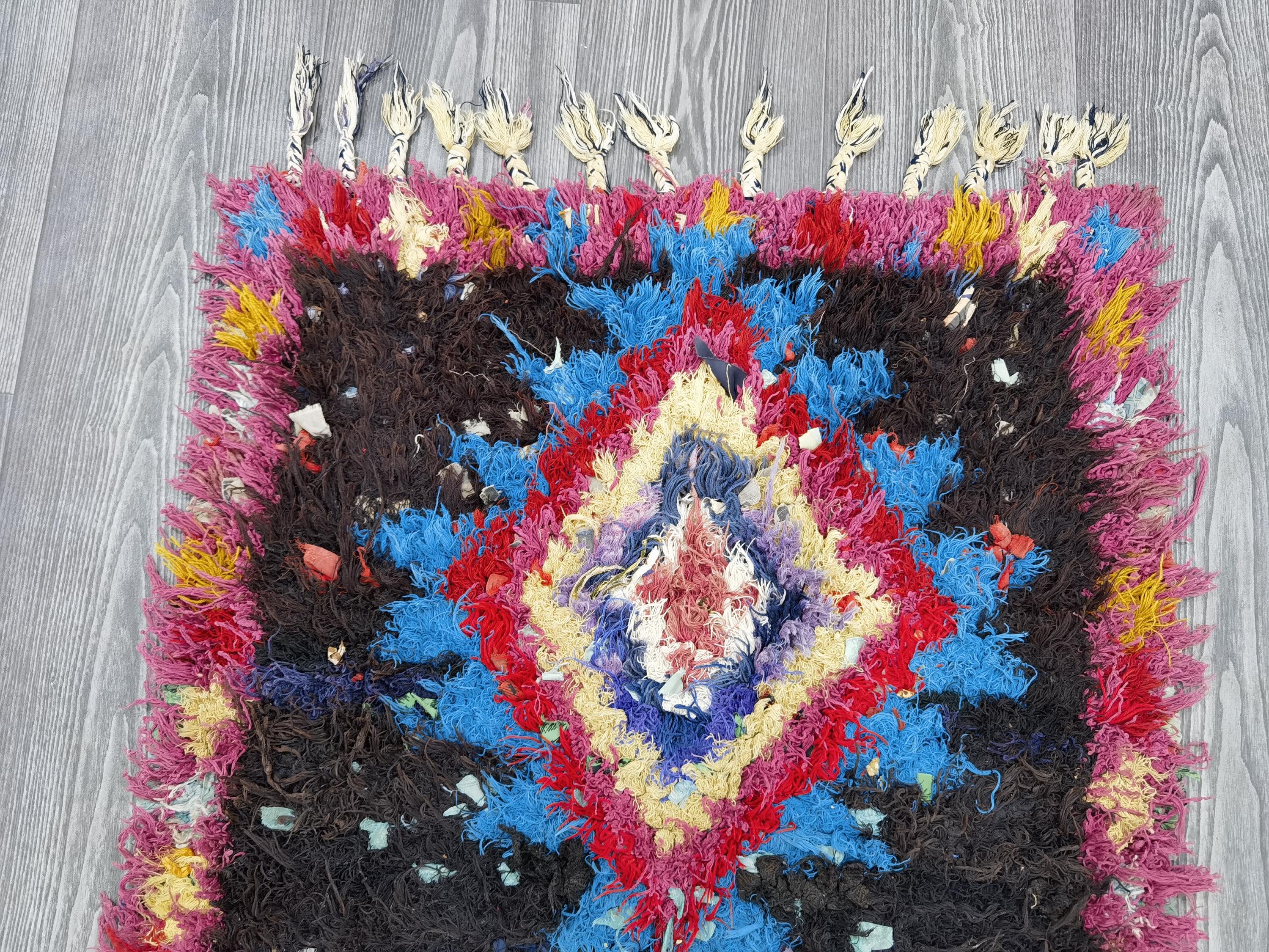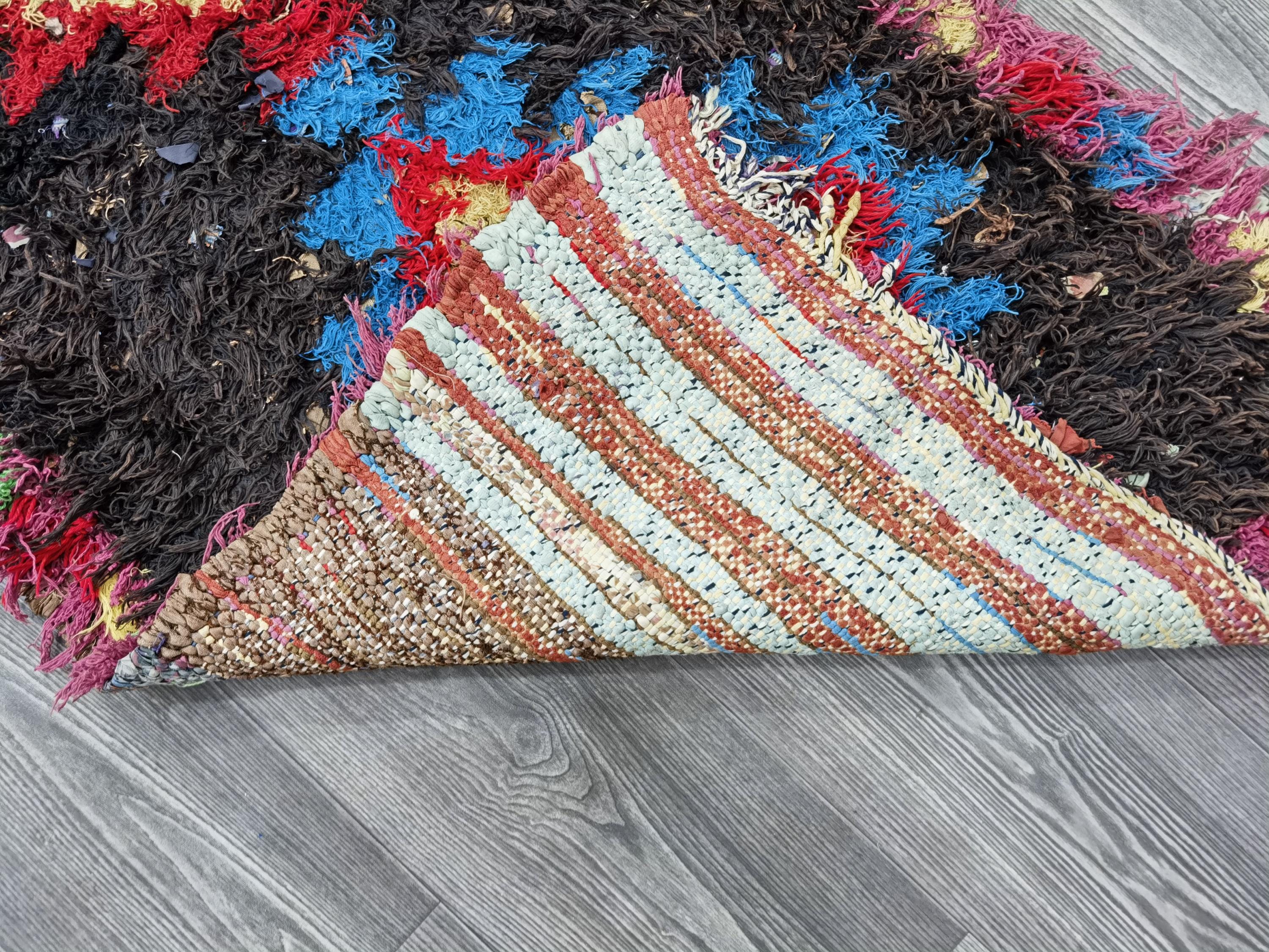 Black Vintage Moroccan Rug 2.3x6 ft - Moroccan Berber Rug - Moroccan Handmade Rug, Boucherouite Rug, Unique Colorful boujaad Rug