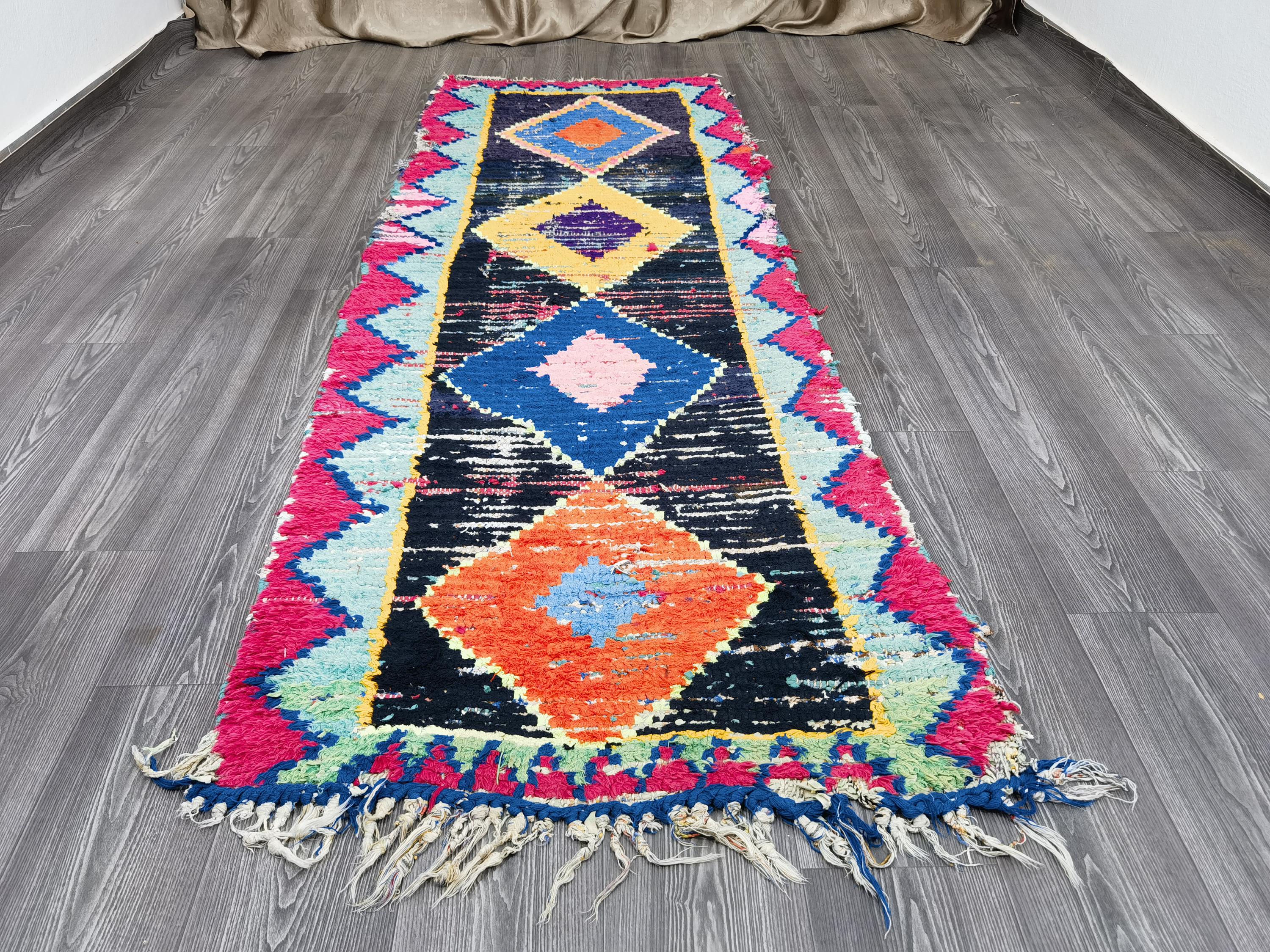 Boujaad is a vibrant and colorful wool runner that will add life to any room in your home. Made from 100% wool, this rug is perfect for use in the living room, bedroom, or anywhere you want to add some beautiful Moroccan flair. The soft and fluffy texture makes it comfortable to walk on, and the vivid colors will brighten up any space. Whether you're looking for a traditional shag rug or something a little more bohemian, Boujaad is sure to be a hit with your guests.