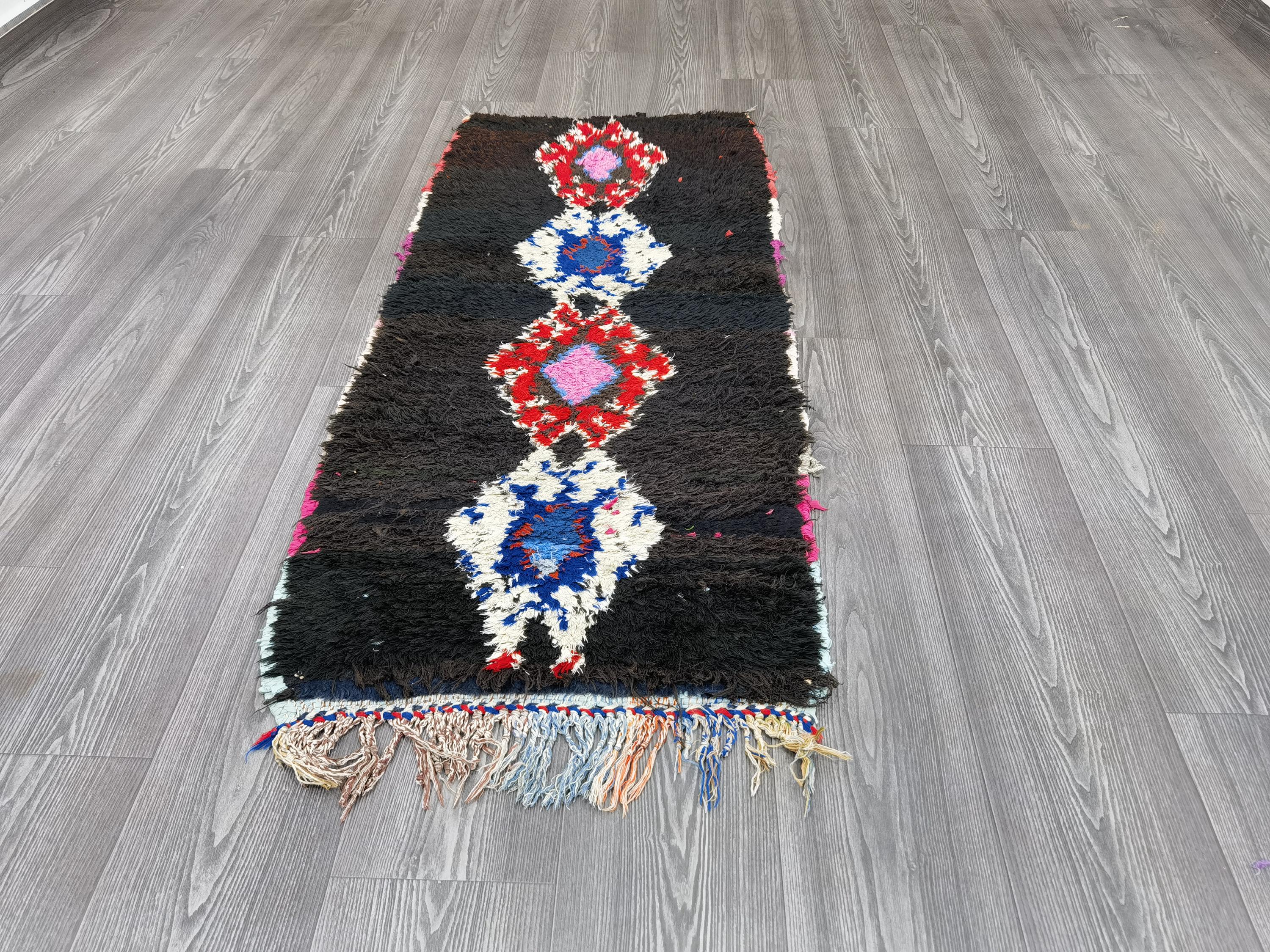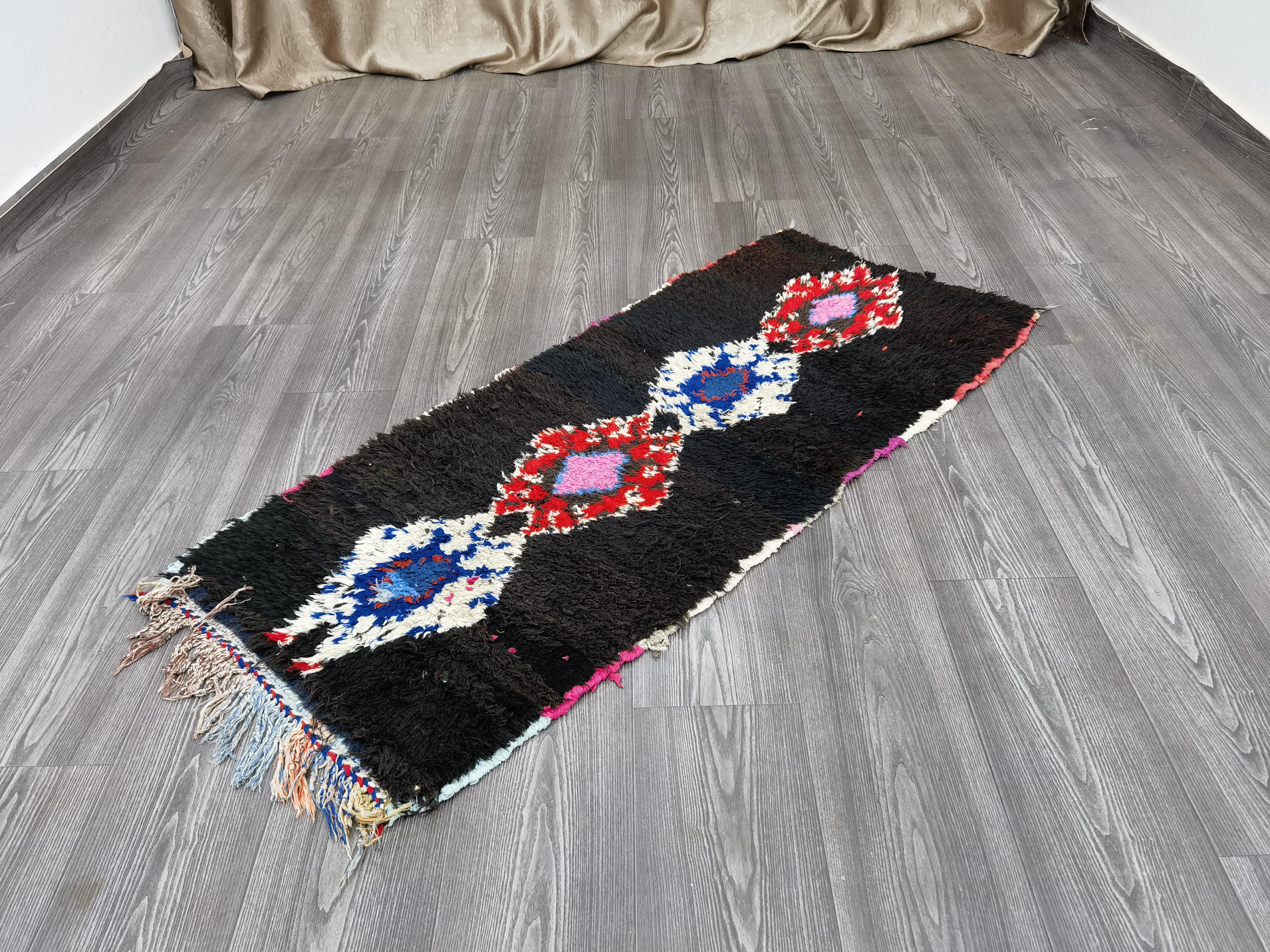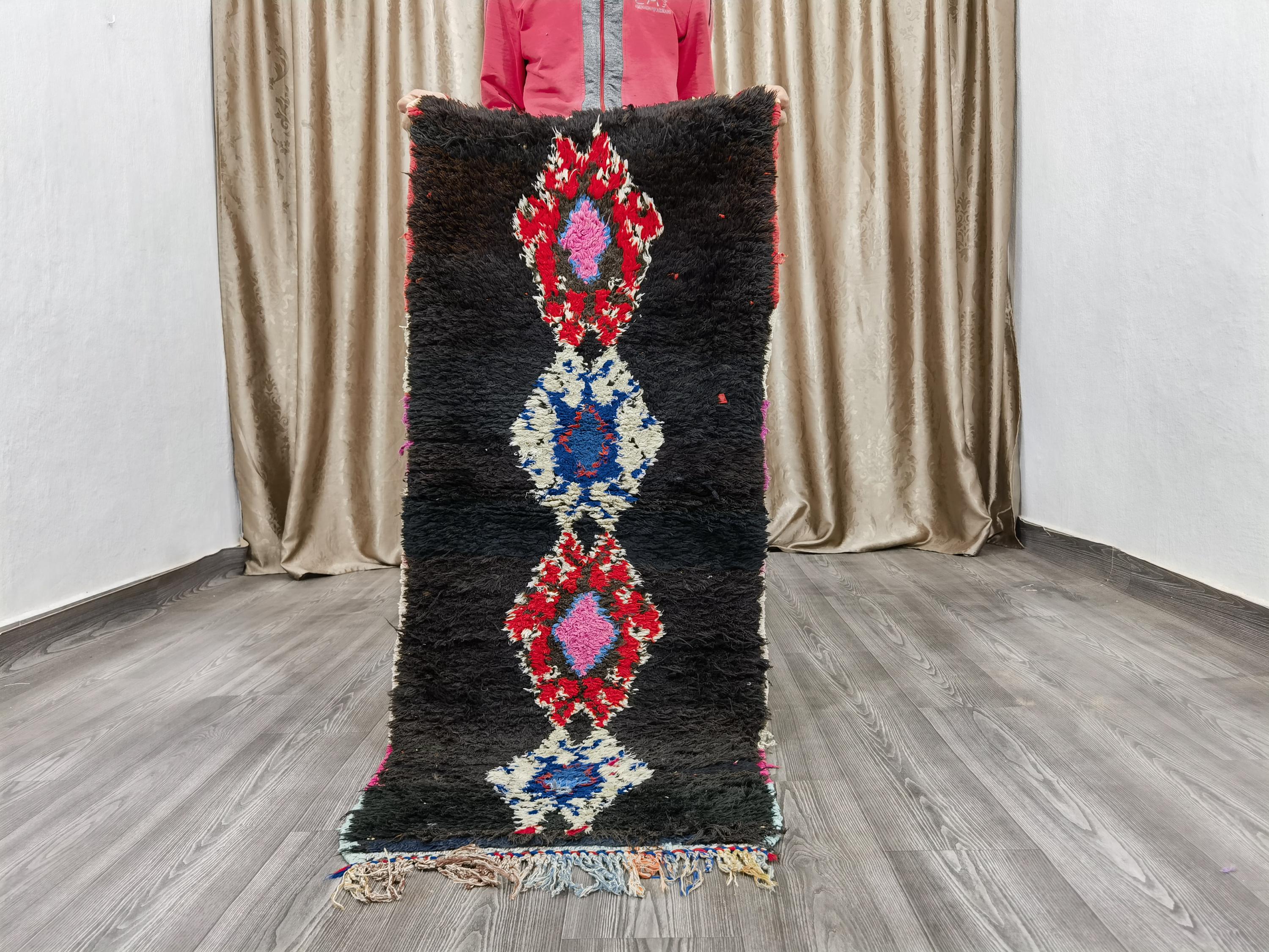 Black Moroccan Rug 2x4.6 ft – Hand-Knotted Berber Rug
