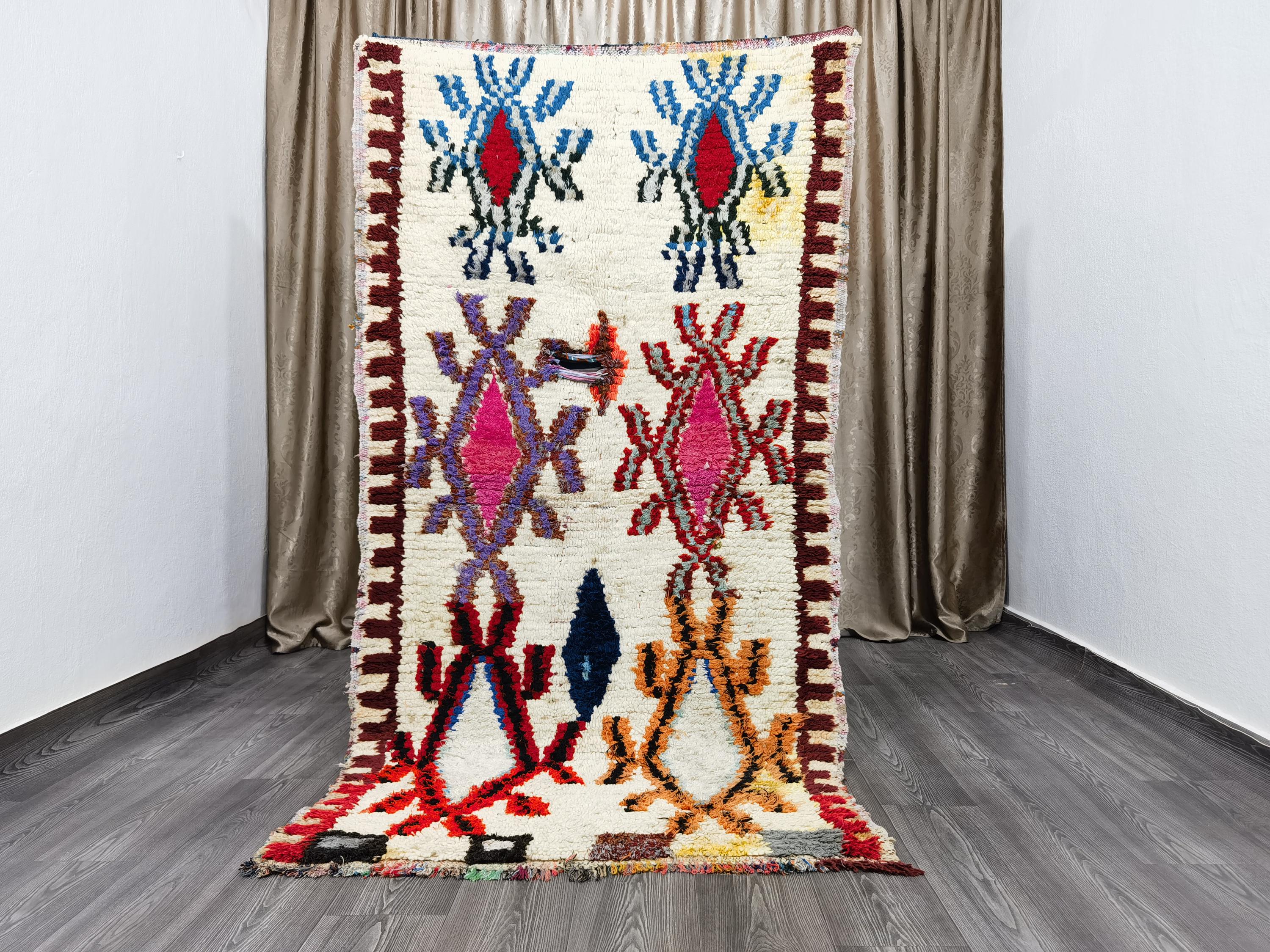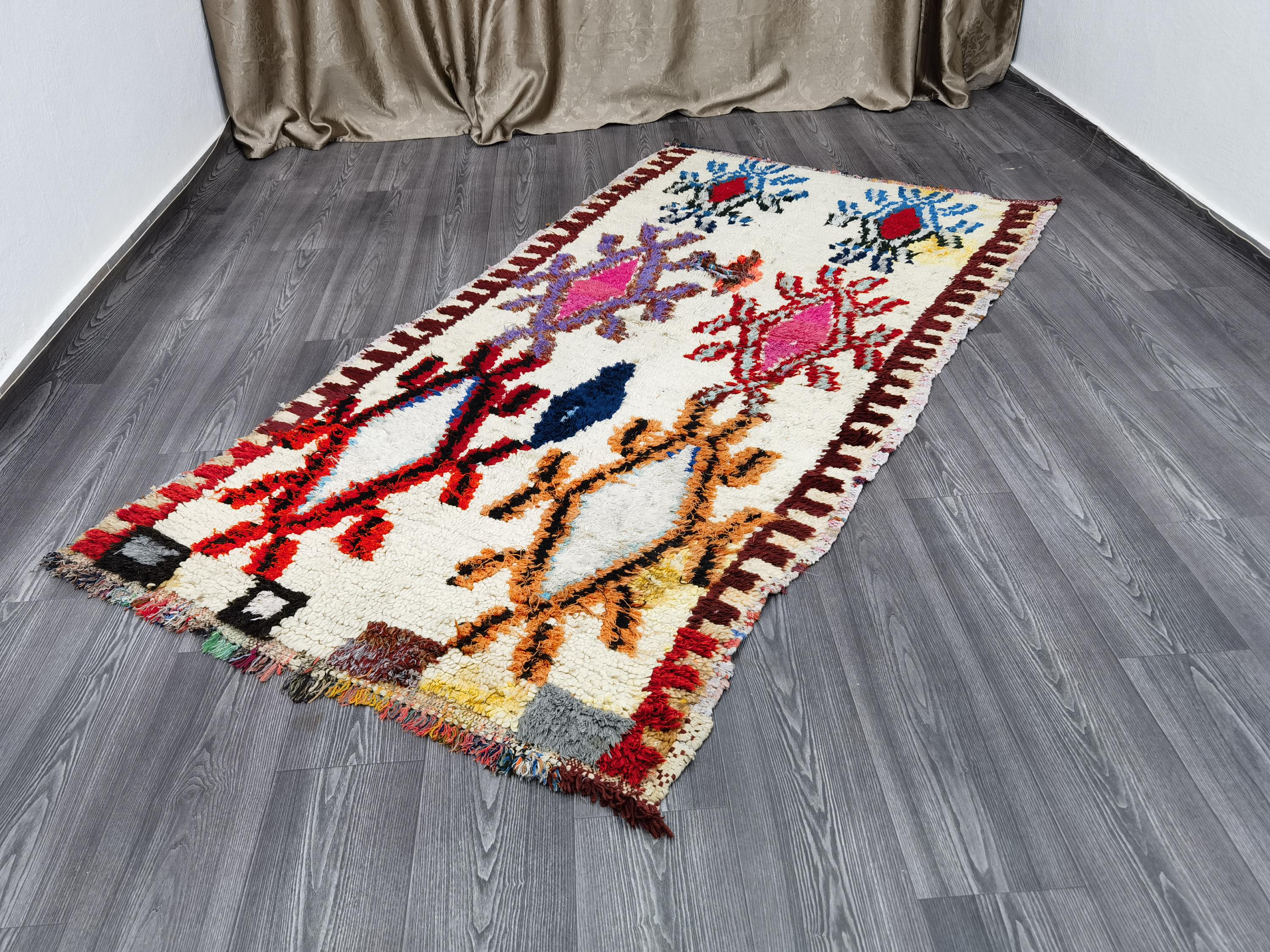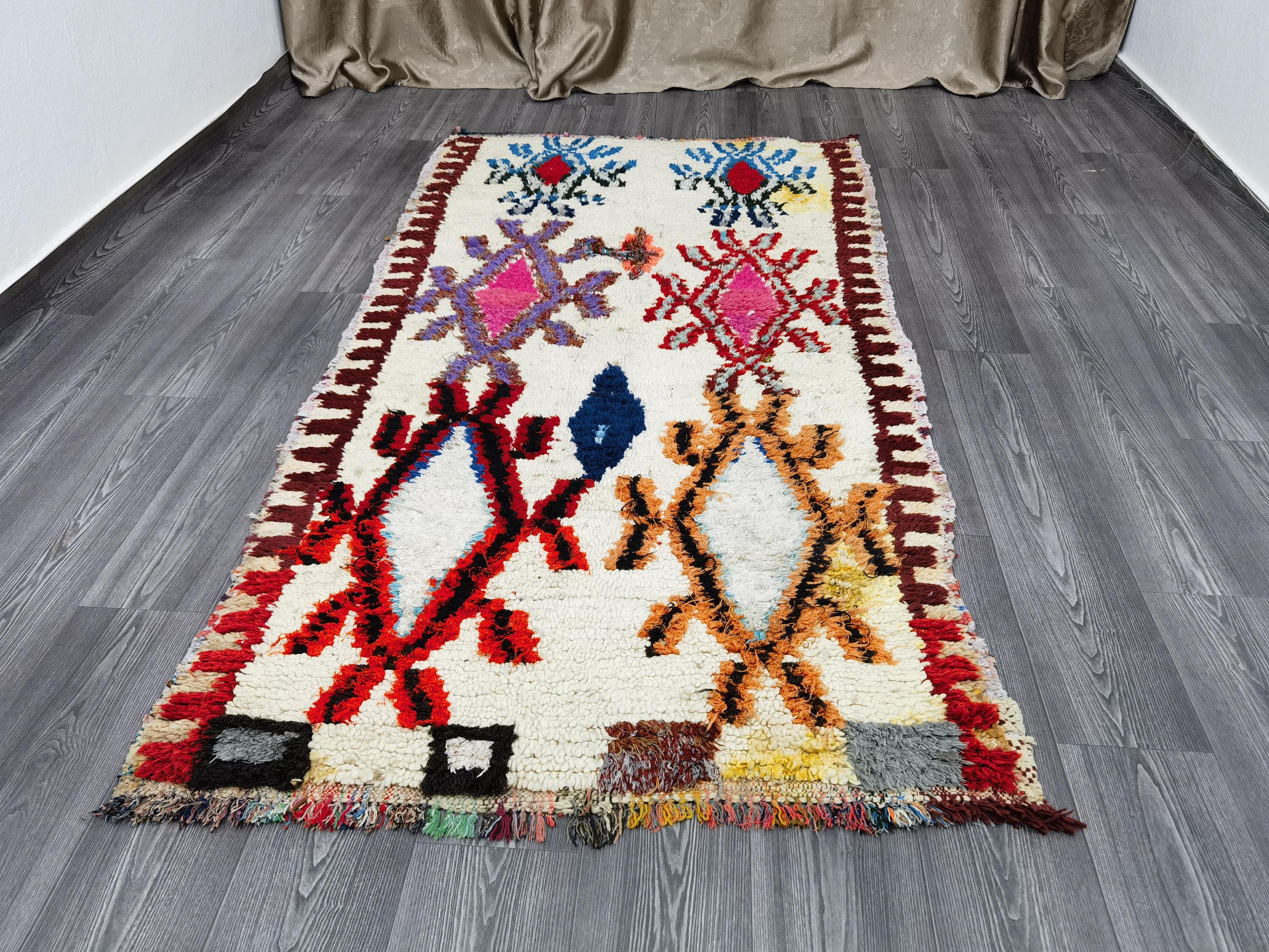 3.8x7.5 Ft Boujaad Moroccan Rug , Colorful Wool Rug, Rugs For Living Room, Rugs For Bedroom, Moroccan Decor, Moroccan Shag Rug, Bohemian Rug