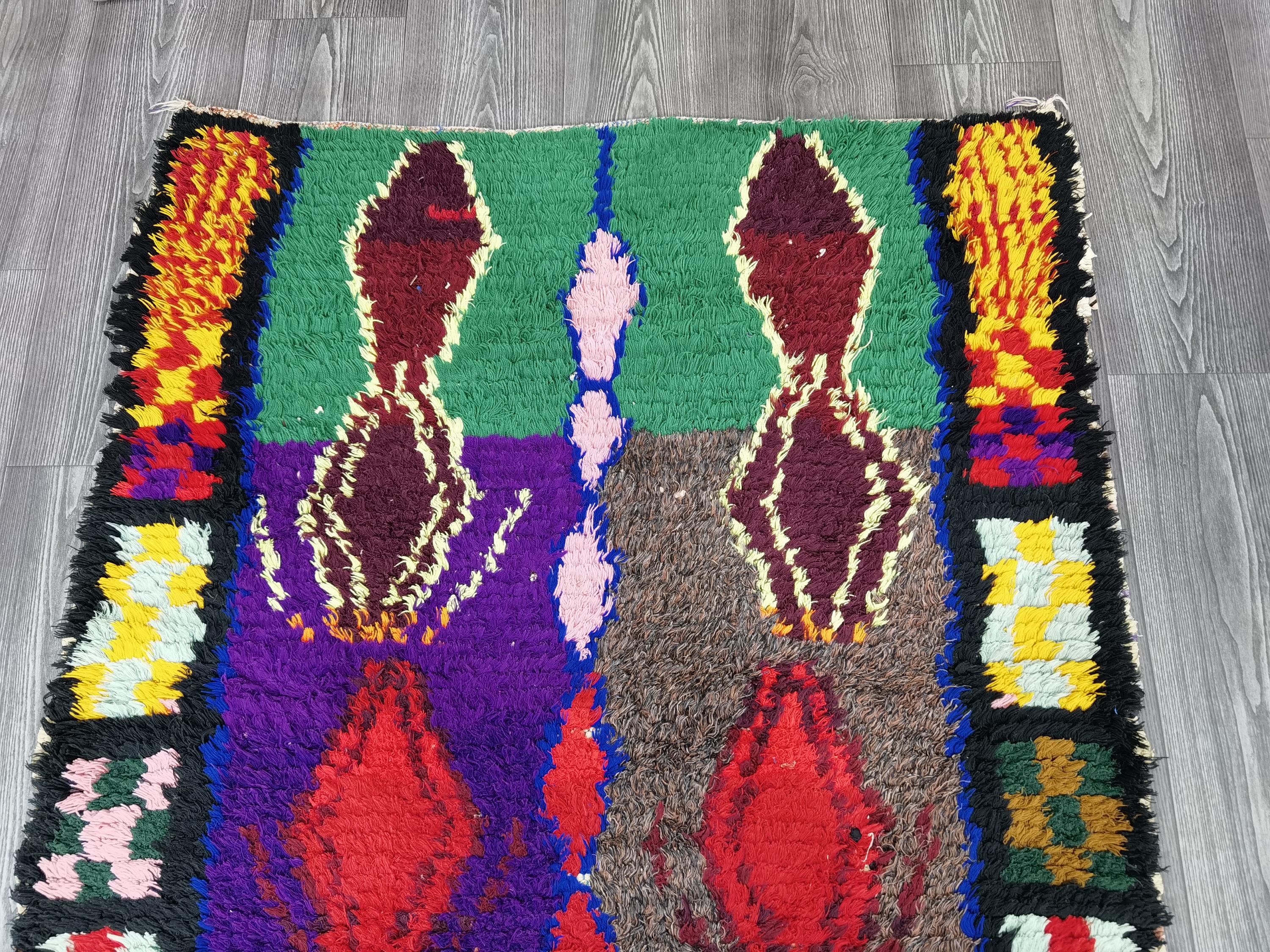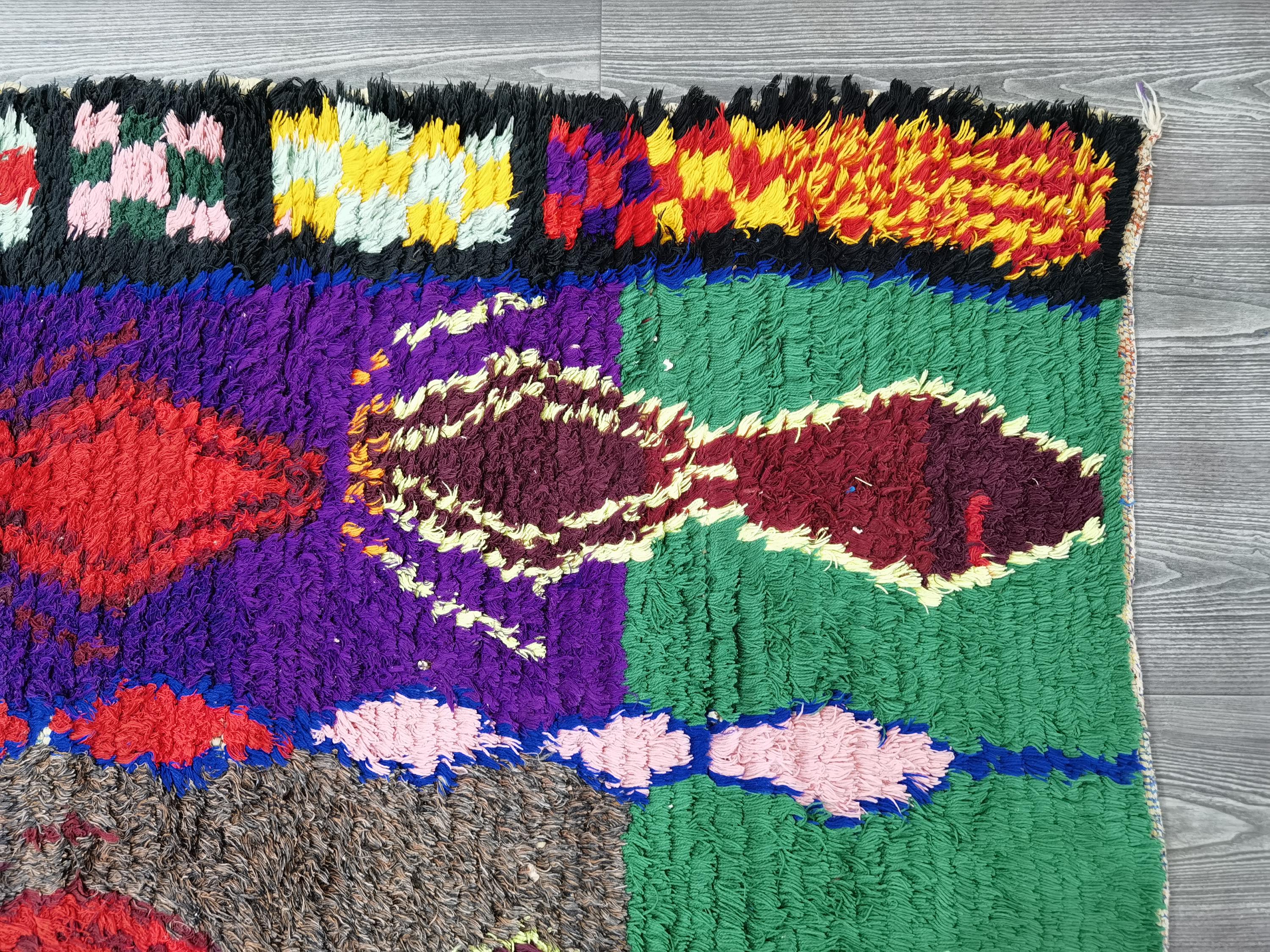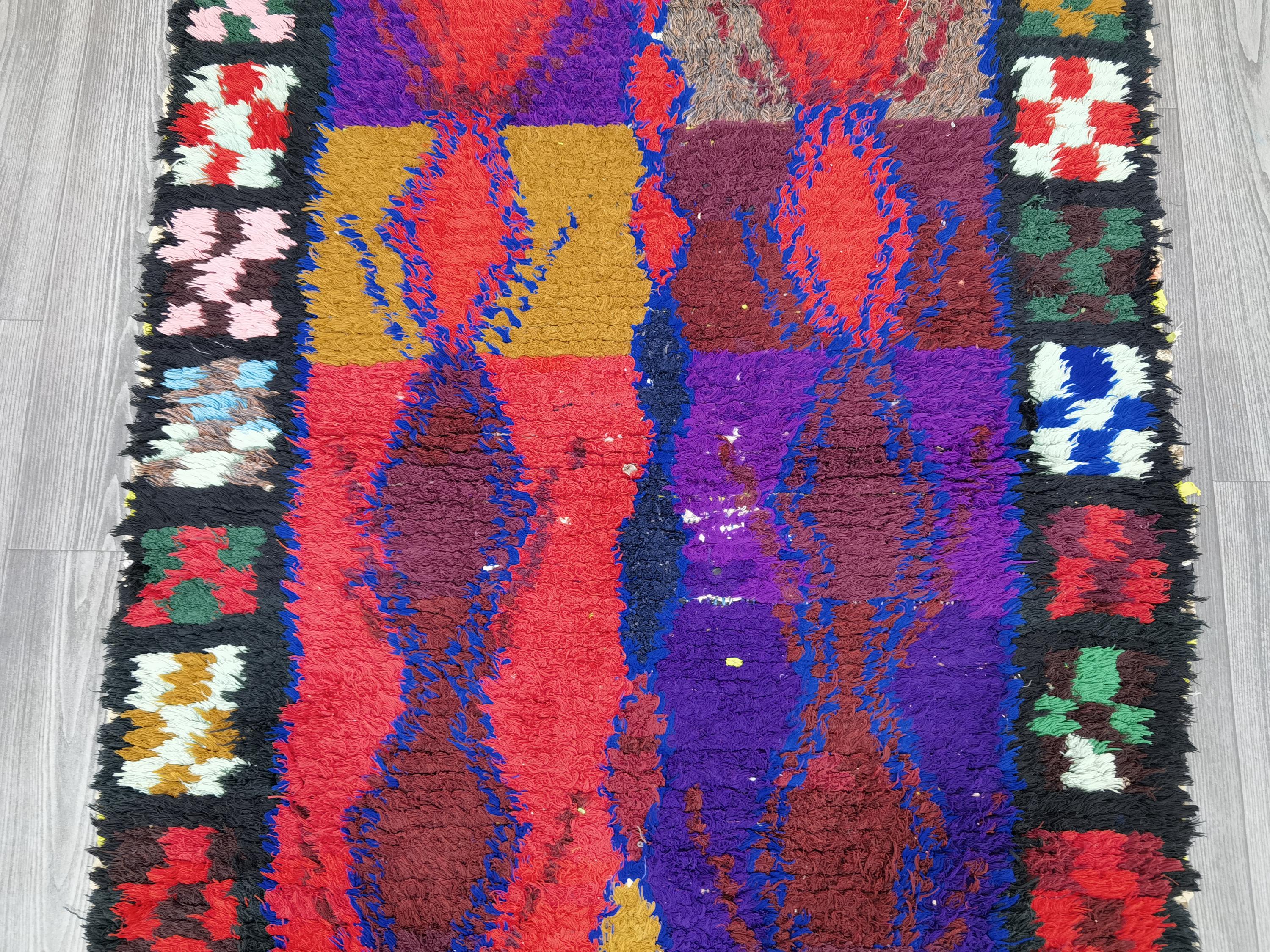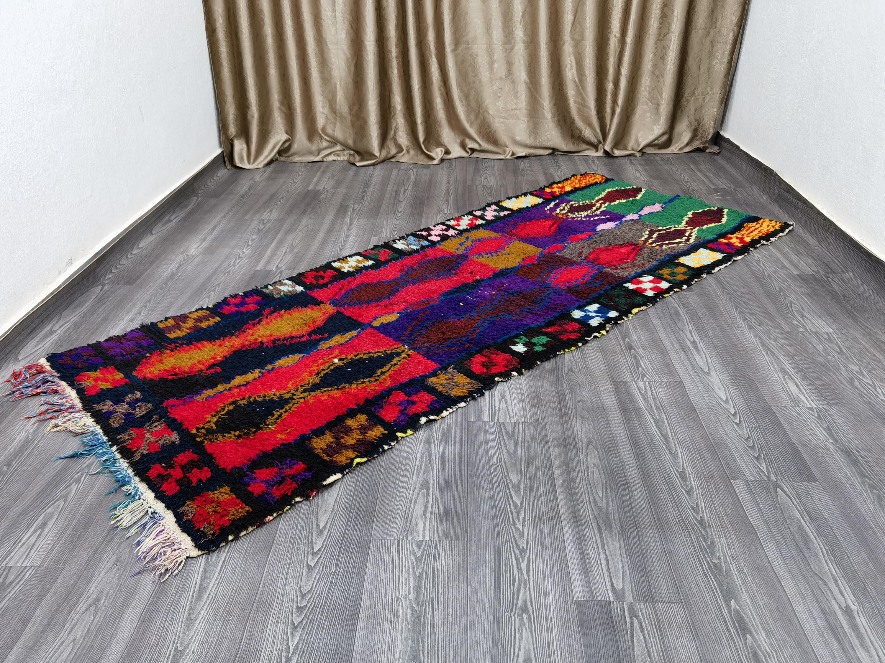 Boujaad is a vibrant and colorful wool runner that will add life to any room in your home. Made from 100% wool, this rug is perfect for use in the living room, bedroom, or anywhere you want to add some beautiful Moroccan flair. The soft and fluffy texture makes it comfortable to walk on, and the vivid colors will brighten up any space. Whether you're looking for a traditional shag rug or something a little more bohemian, Boujaad is sure to be a hit with your guests.