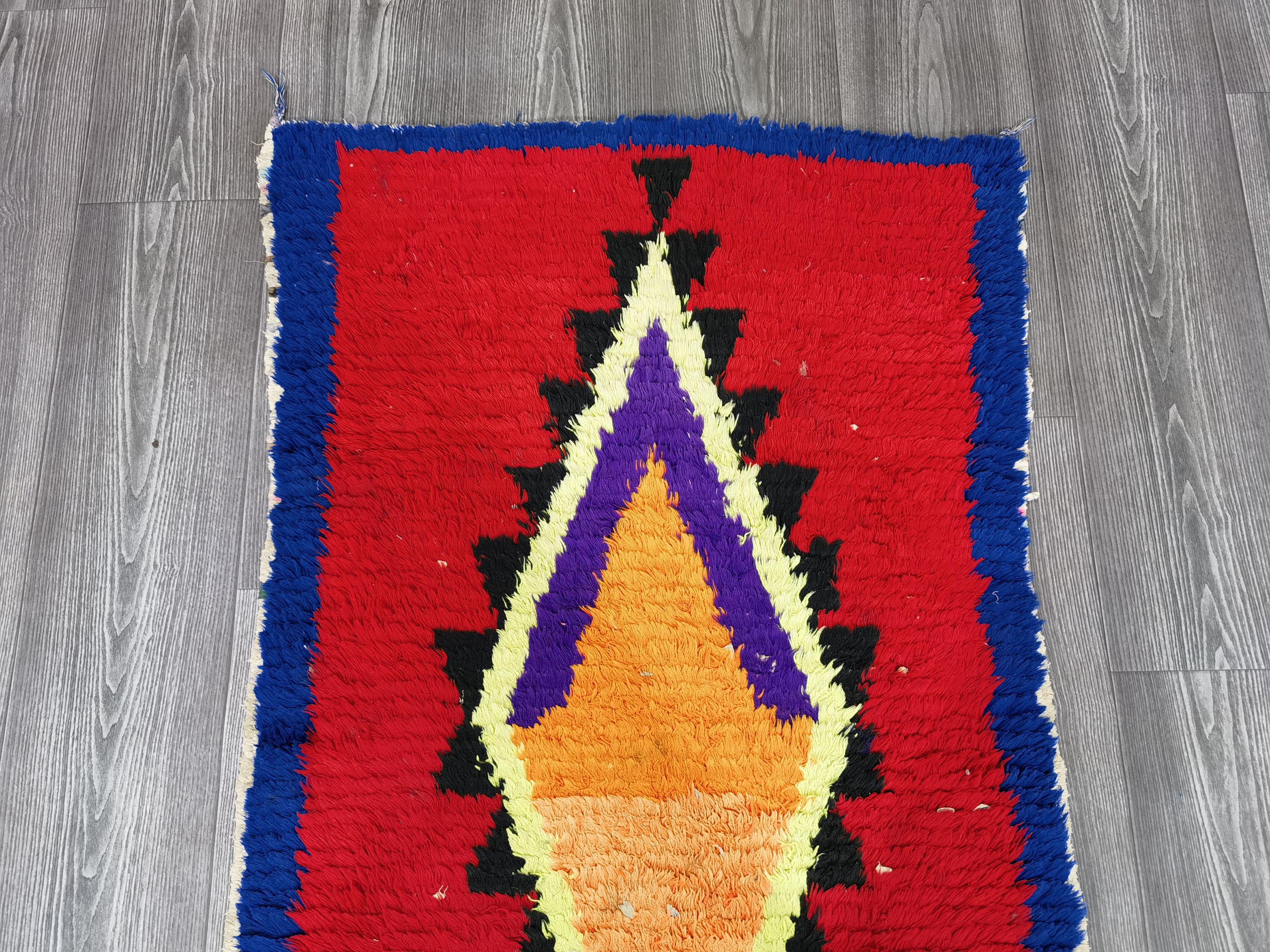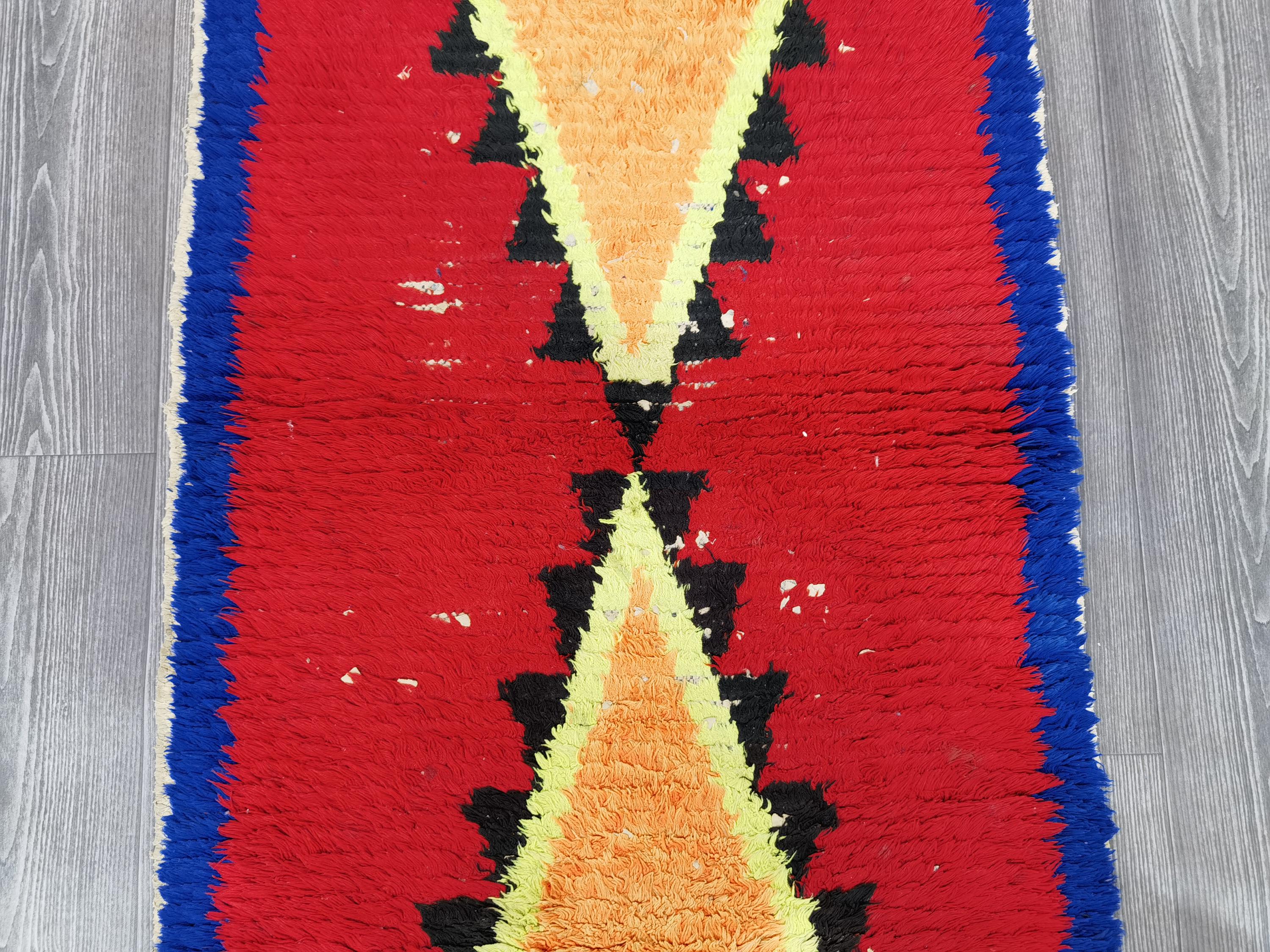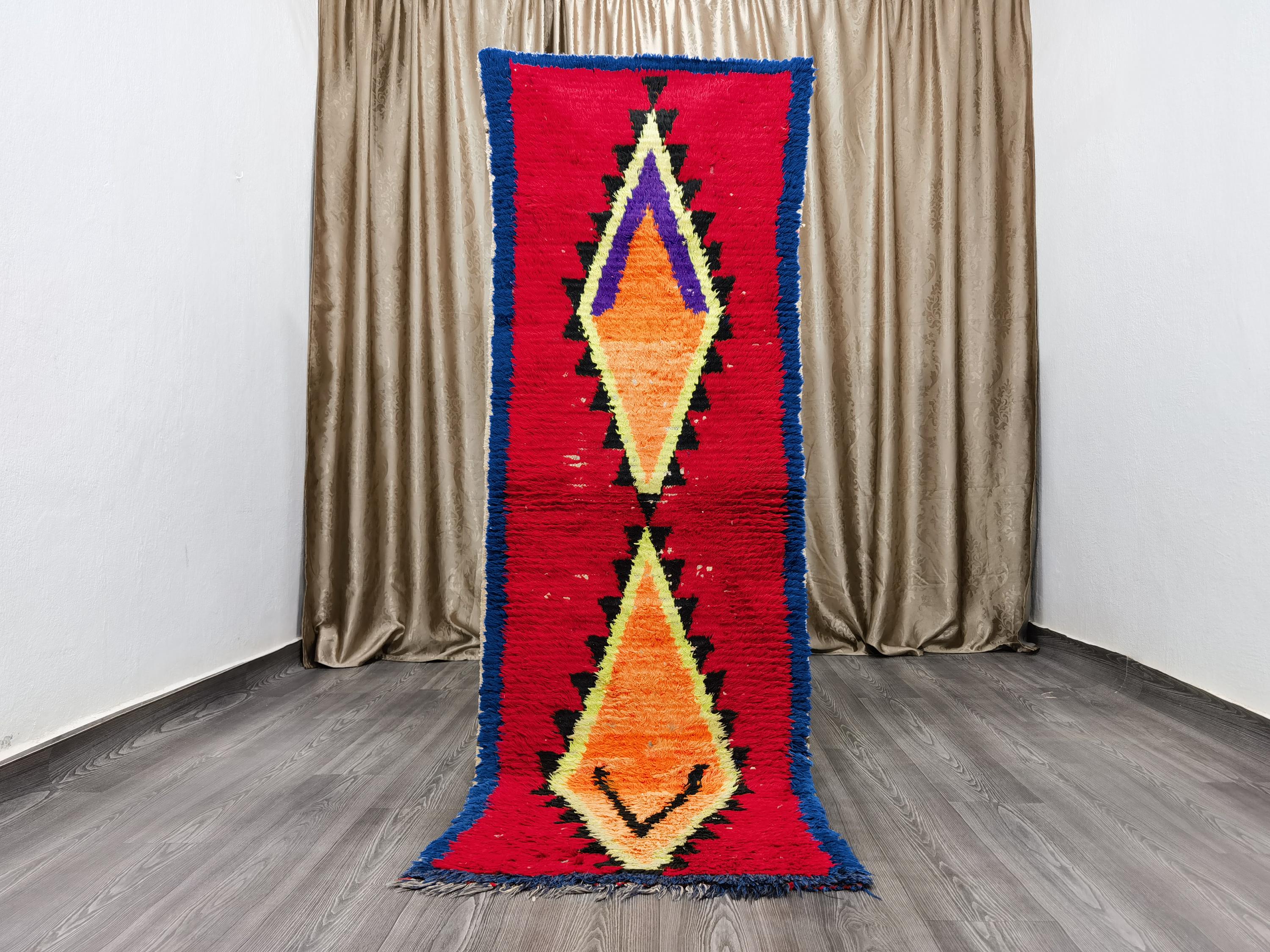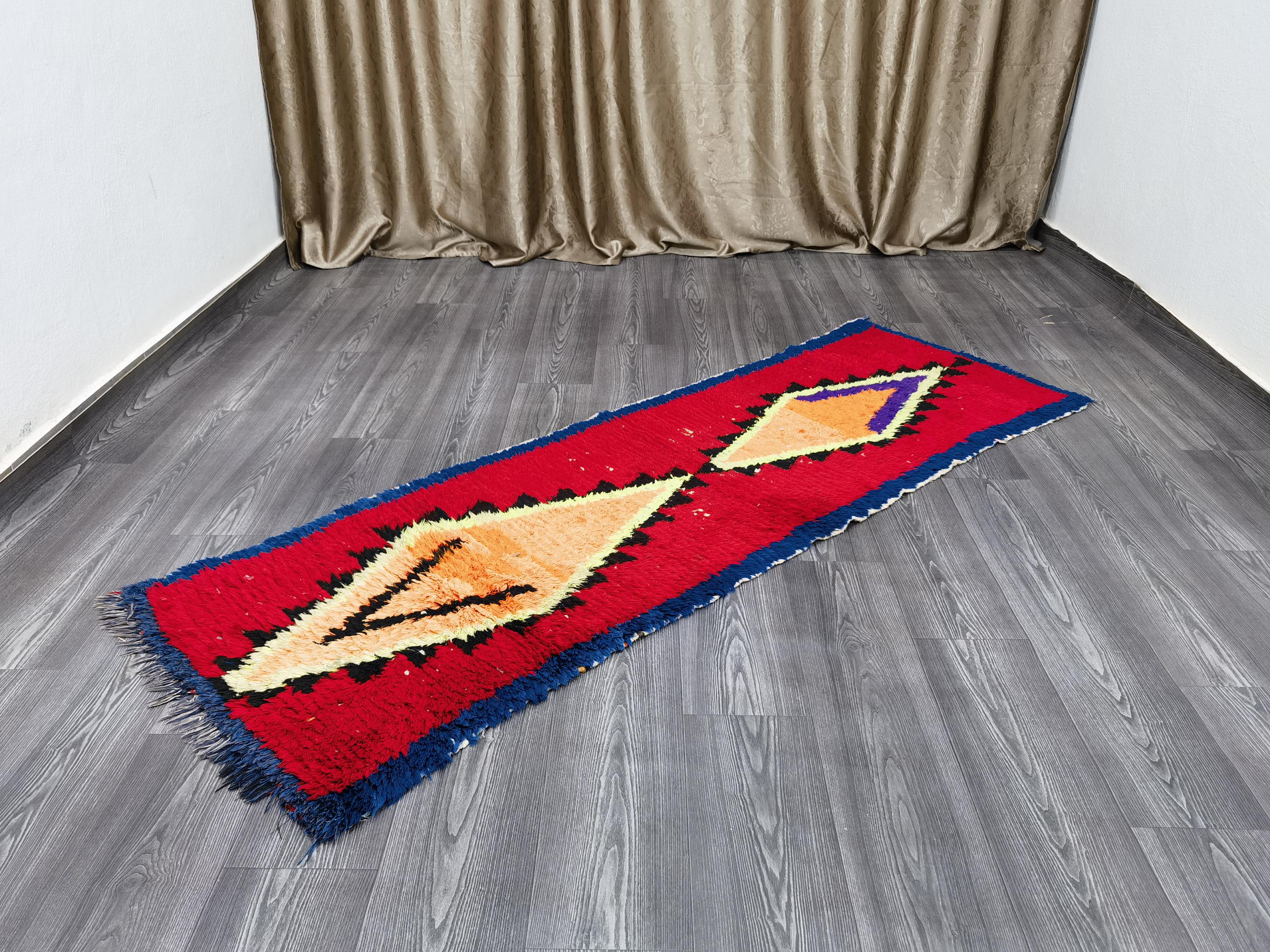 Boujaad is a vibrant and colorful wool runner that will add life to any room in your home. Made from 100% wool, this rug is perfect for use in the living room, bedroom, or anywhere you want to add some beautiful Moroccan flair. The soft and fluffy texture makes it comfortable to walk on, and the vivid colors will brighten up any space. Whether you're looking for a traditional shag rug or something a little more bohemian, Boujaad is sure to be a hit with your guests.