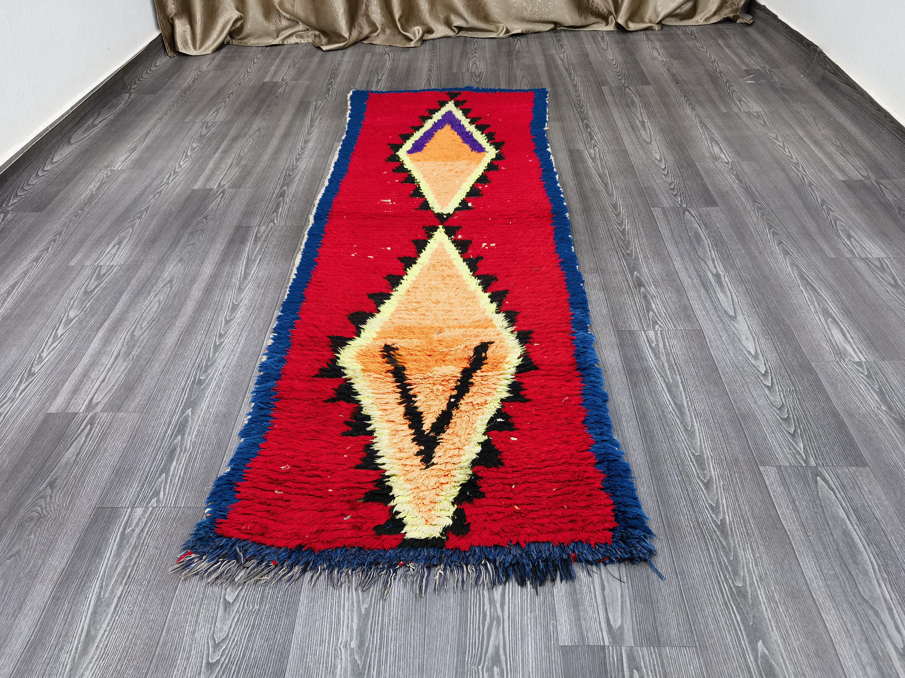 Hand-Knotted Wool Boujaad Runner Rug: 2.4x7.2 Ft Authentic Moroccan Rug
