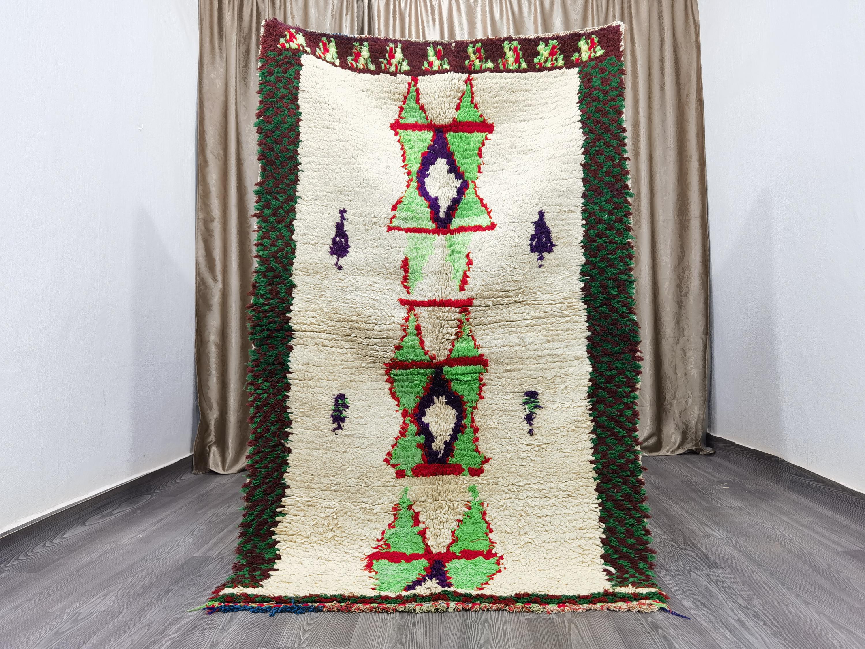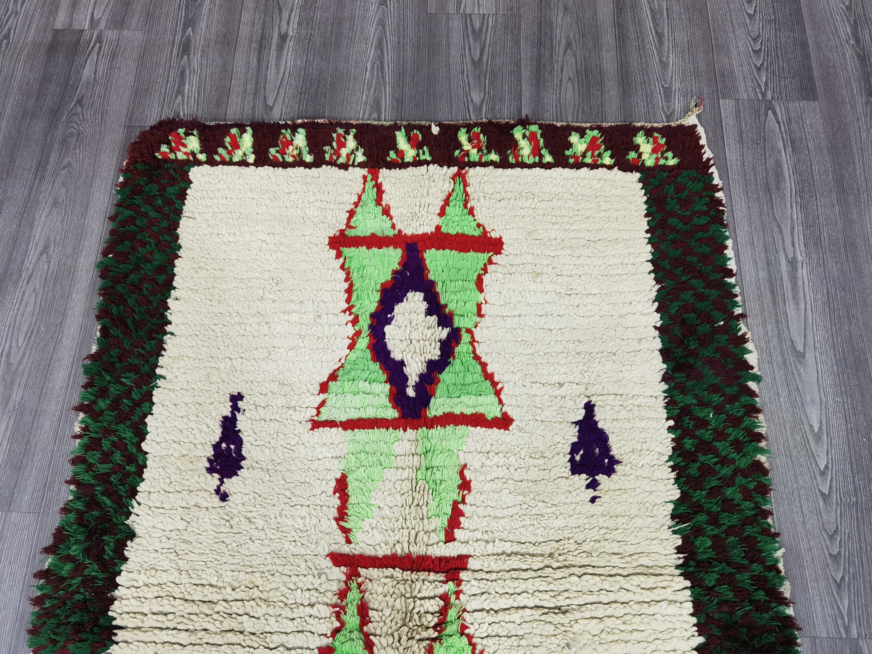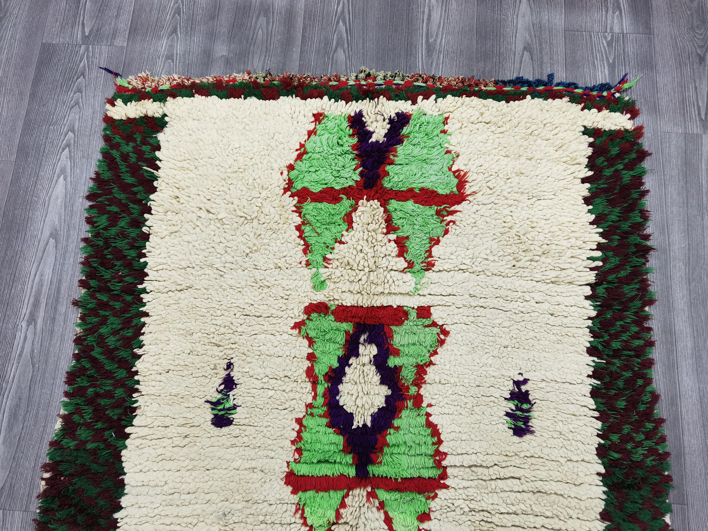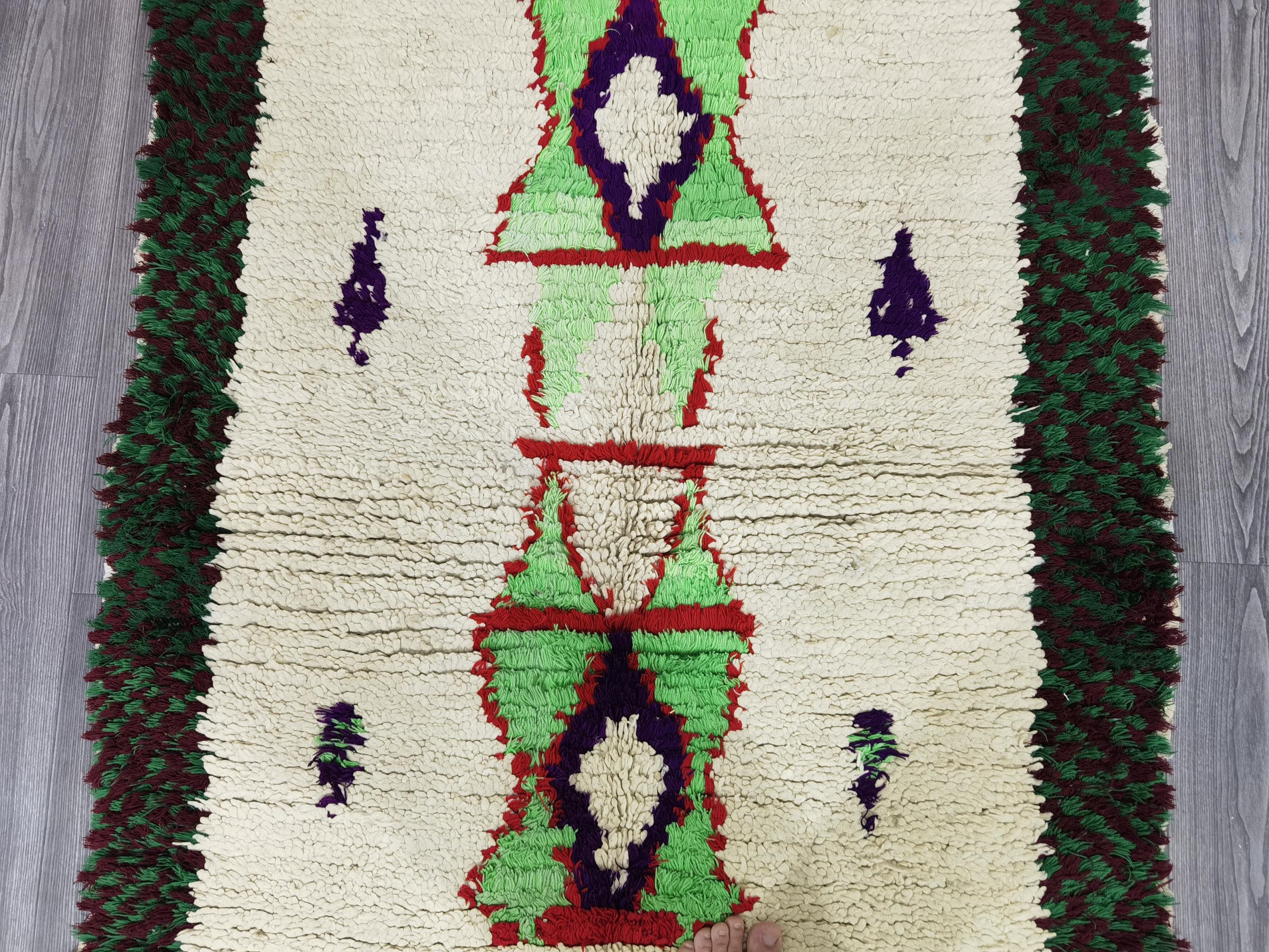 Moroccan Runner Rug - White and Green Runner Rug - Berber Runner Carpet - Authentic boujaad runner rug - Unique Runner Rug 3.8x6 Ft