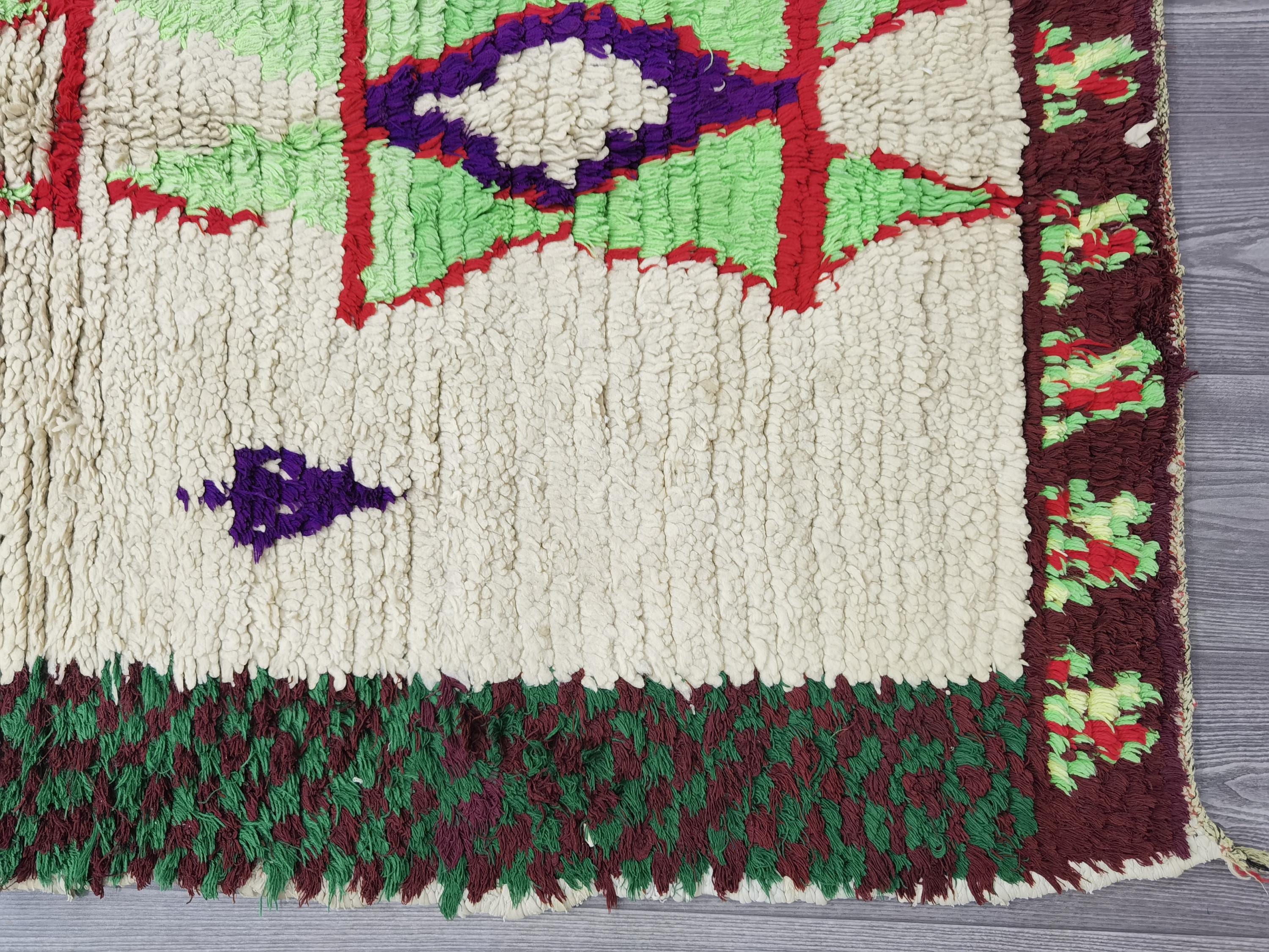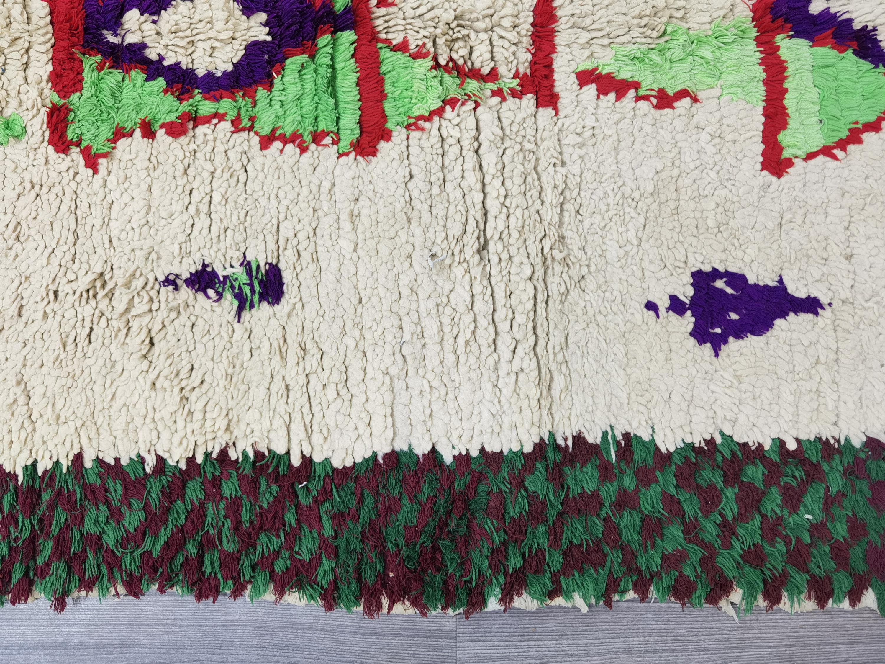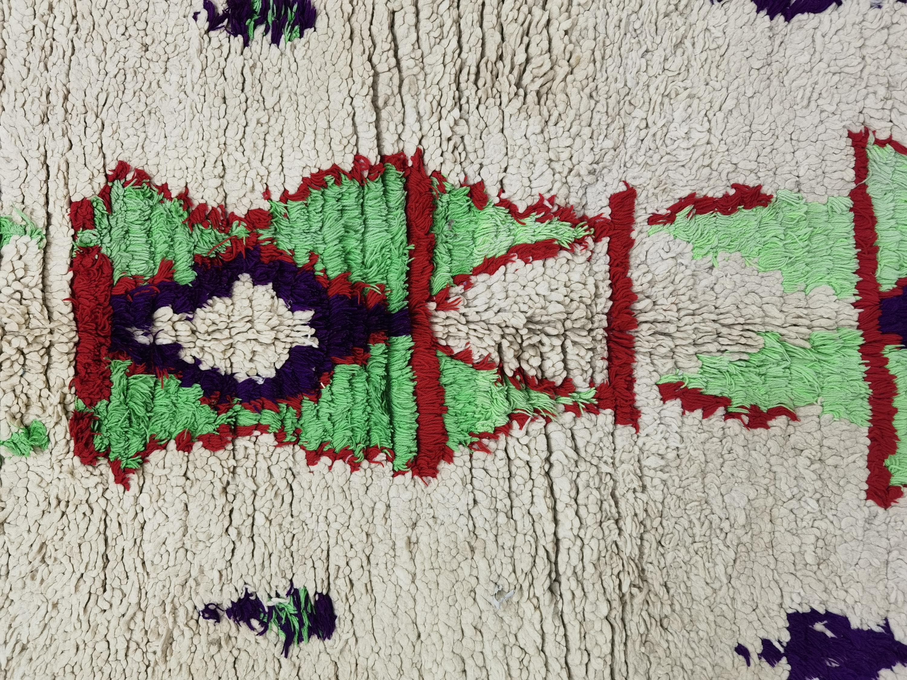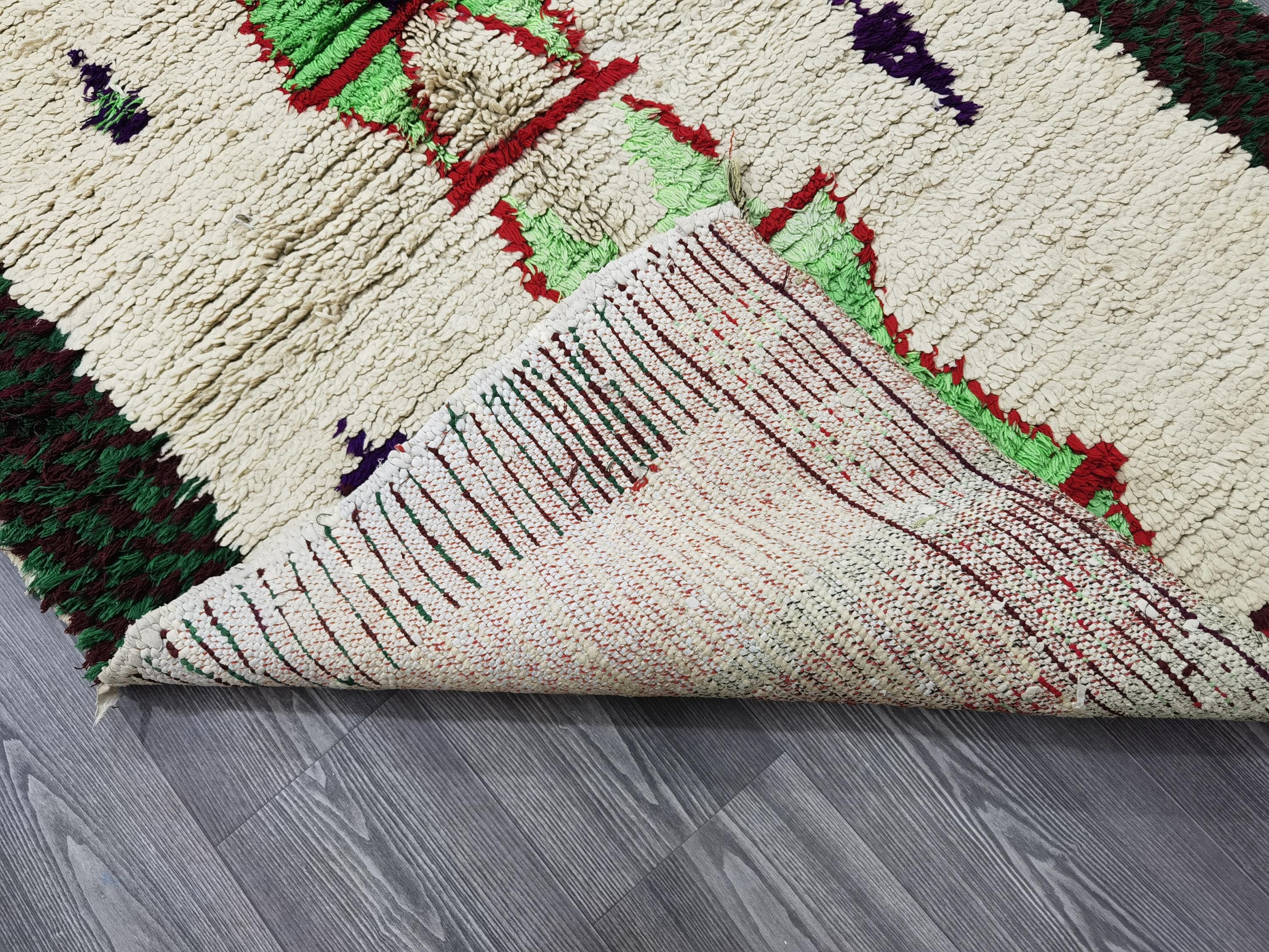 Moroccan Runner Rug - White and Green Runner Rug - Berber Runner Carpet - Authentic boujaad runner rug - Unique Runner Rug 3.8x6 Ft