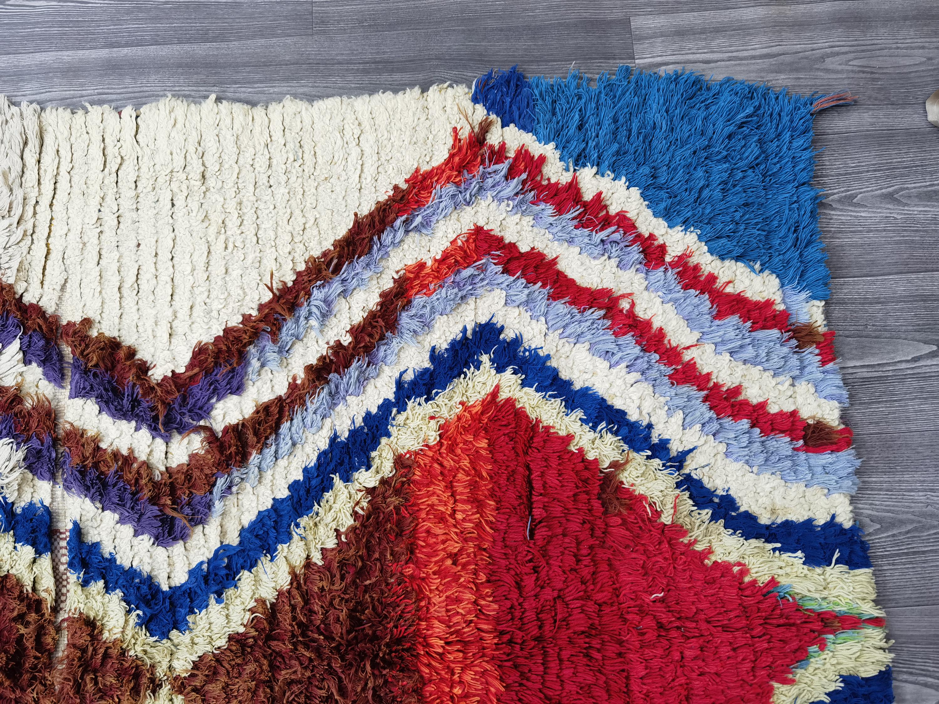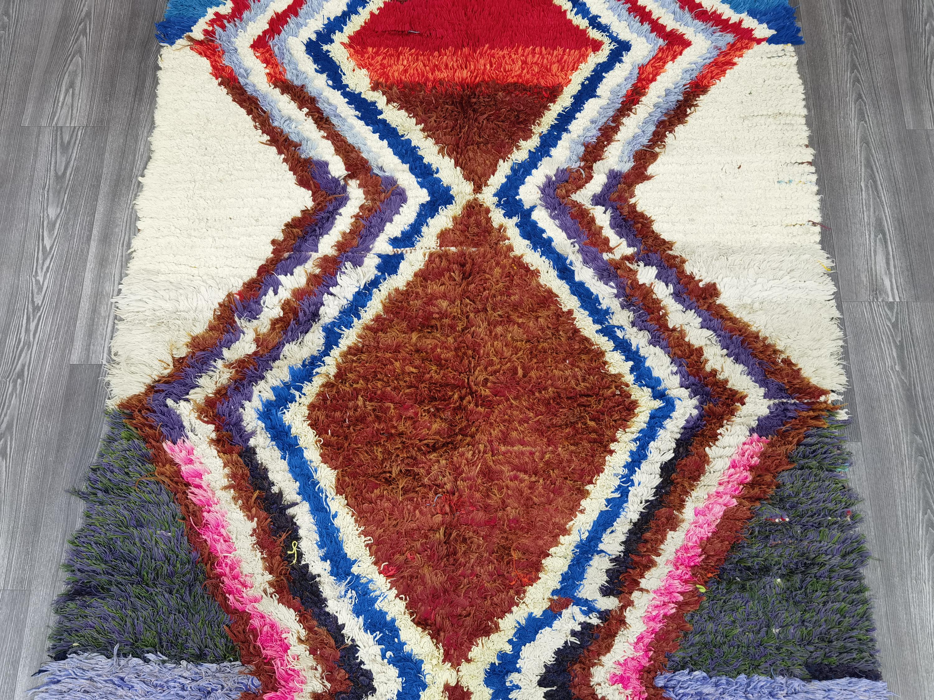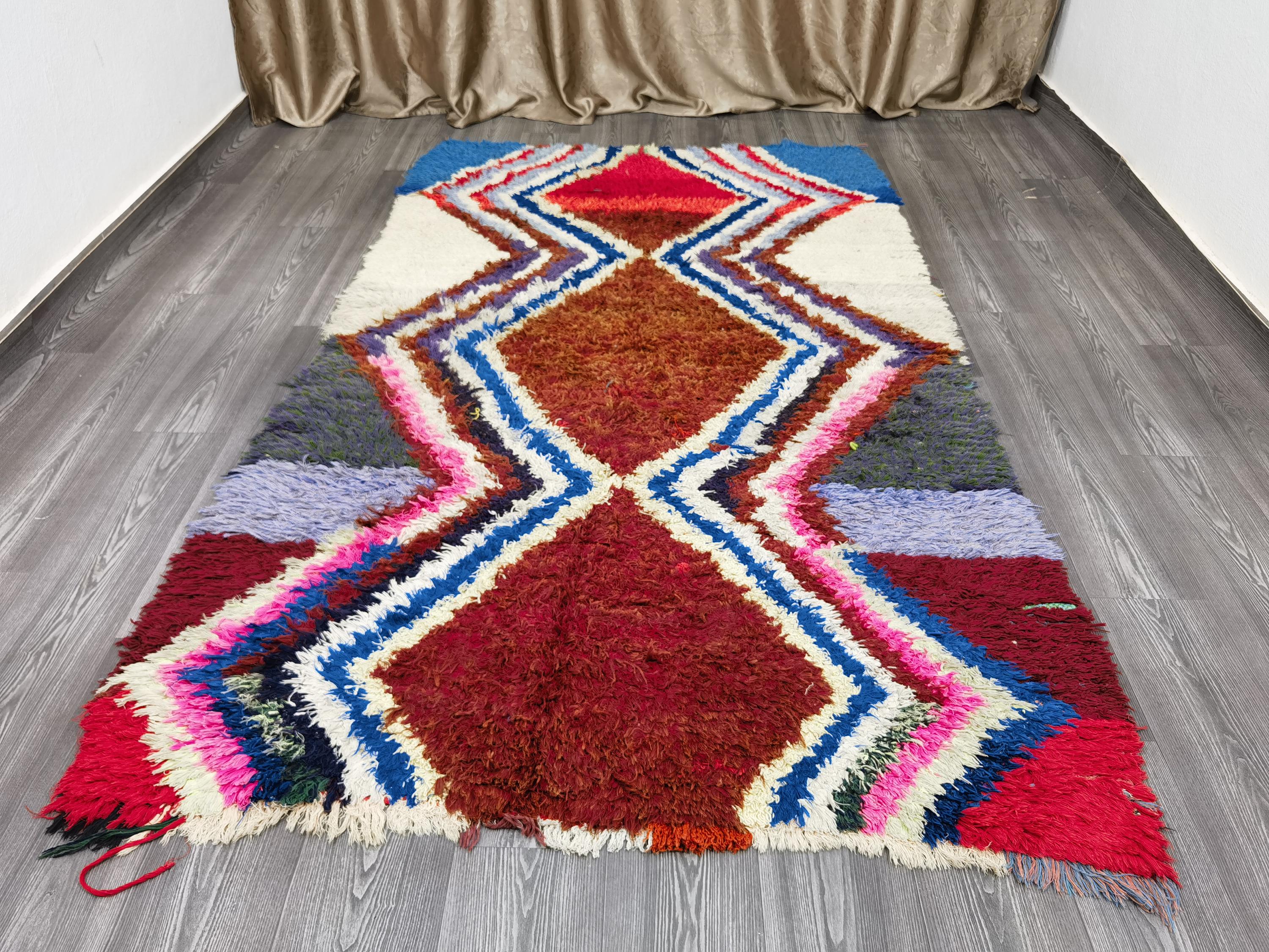 Boujaad is a vibrant and colorful wool rug that will add life to any room in your home. Made from 100% wool, this rug is perfect for use in the living room, bedroom, or anywhere you want to add some beautiful Moroccan flair. The soft and fluffy texture makes it comfortable to walk on, and the vivid colors will brighten up any space. Whether you're looking for a traditional shag rug or something a little more bohemian, Boujaad is sure to be a hit with your guests.