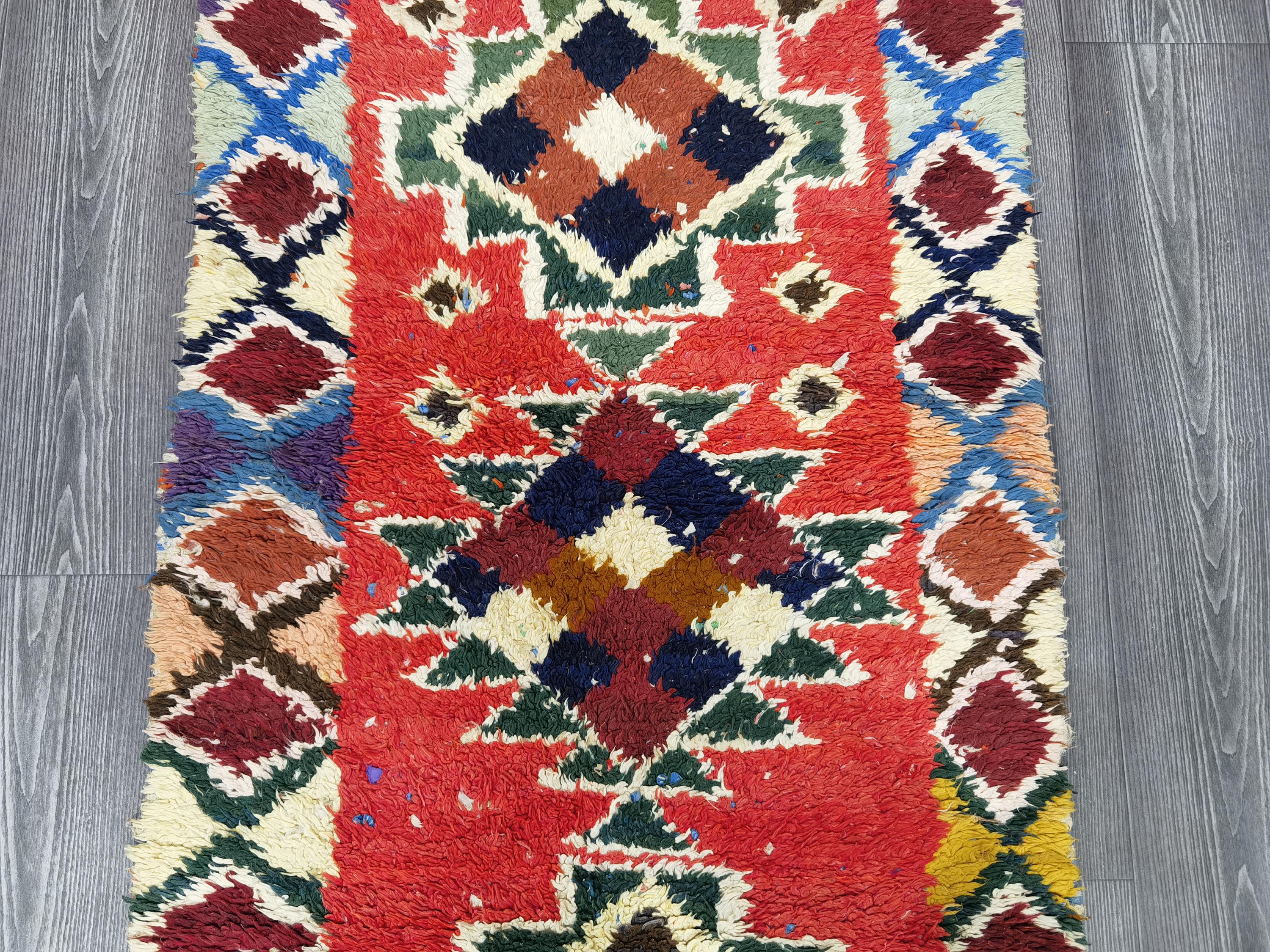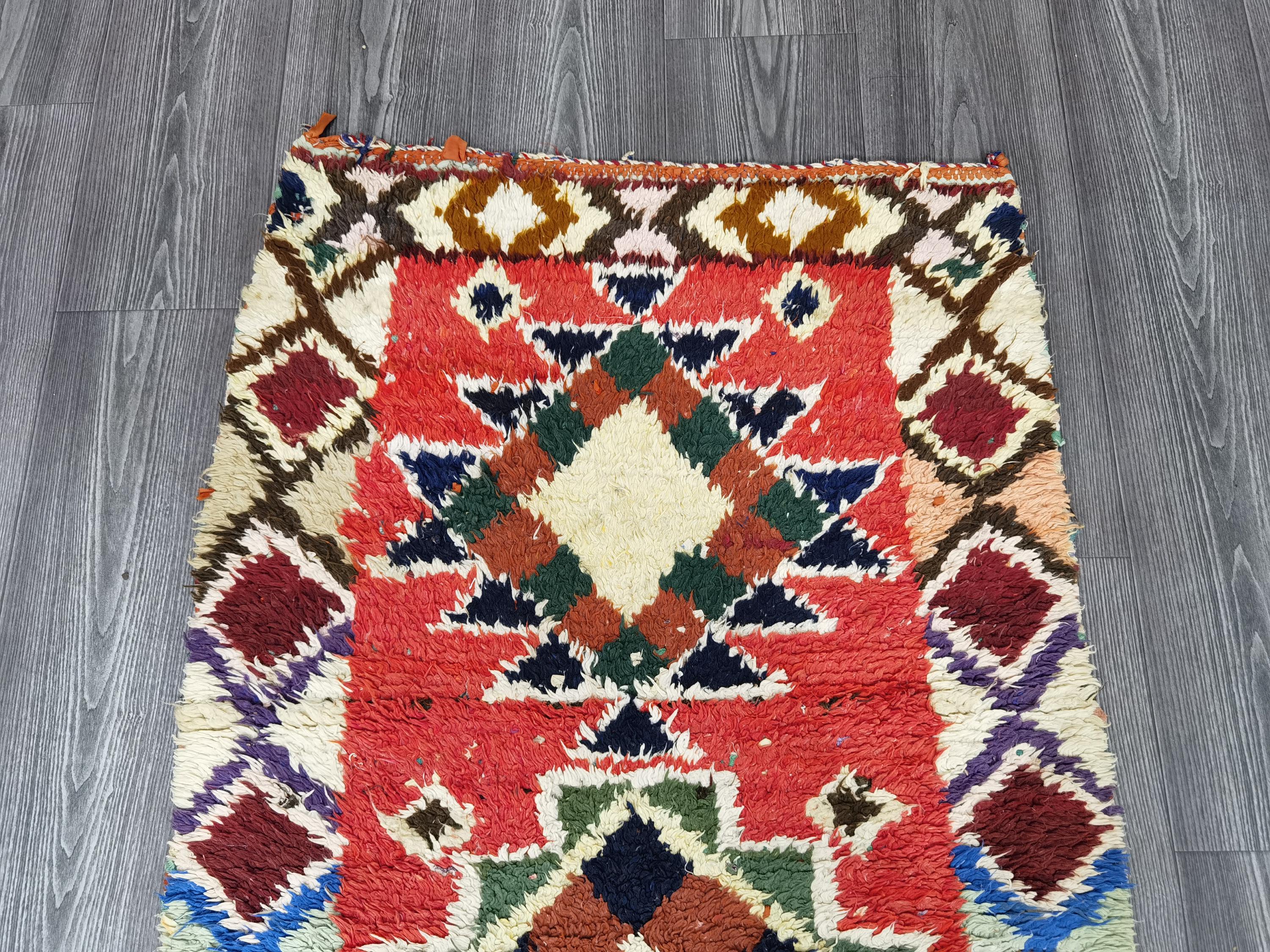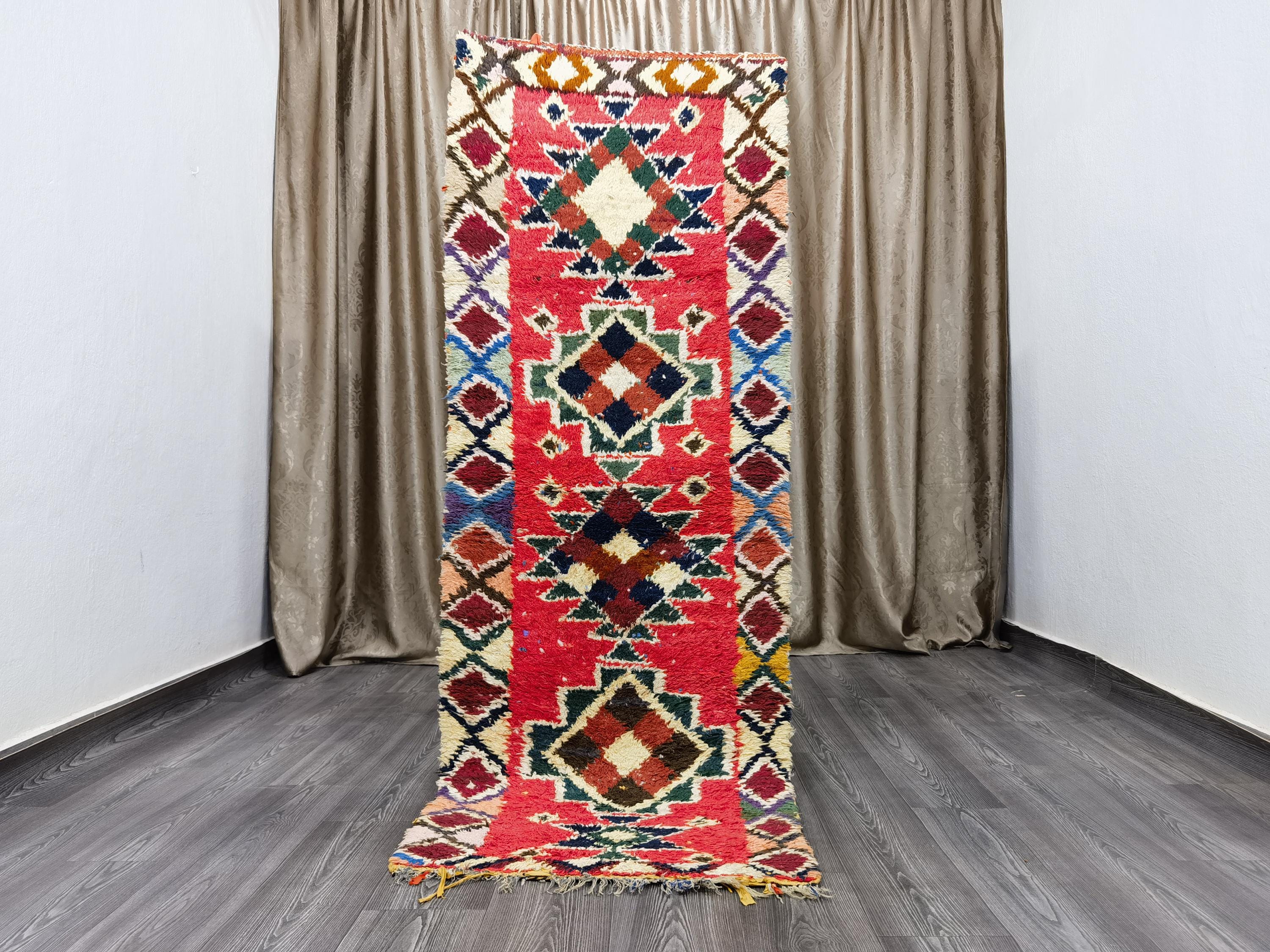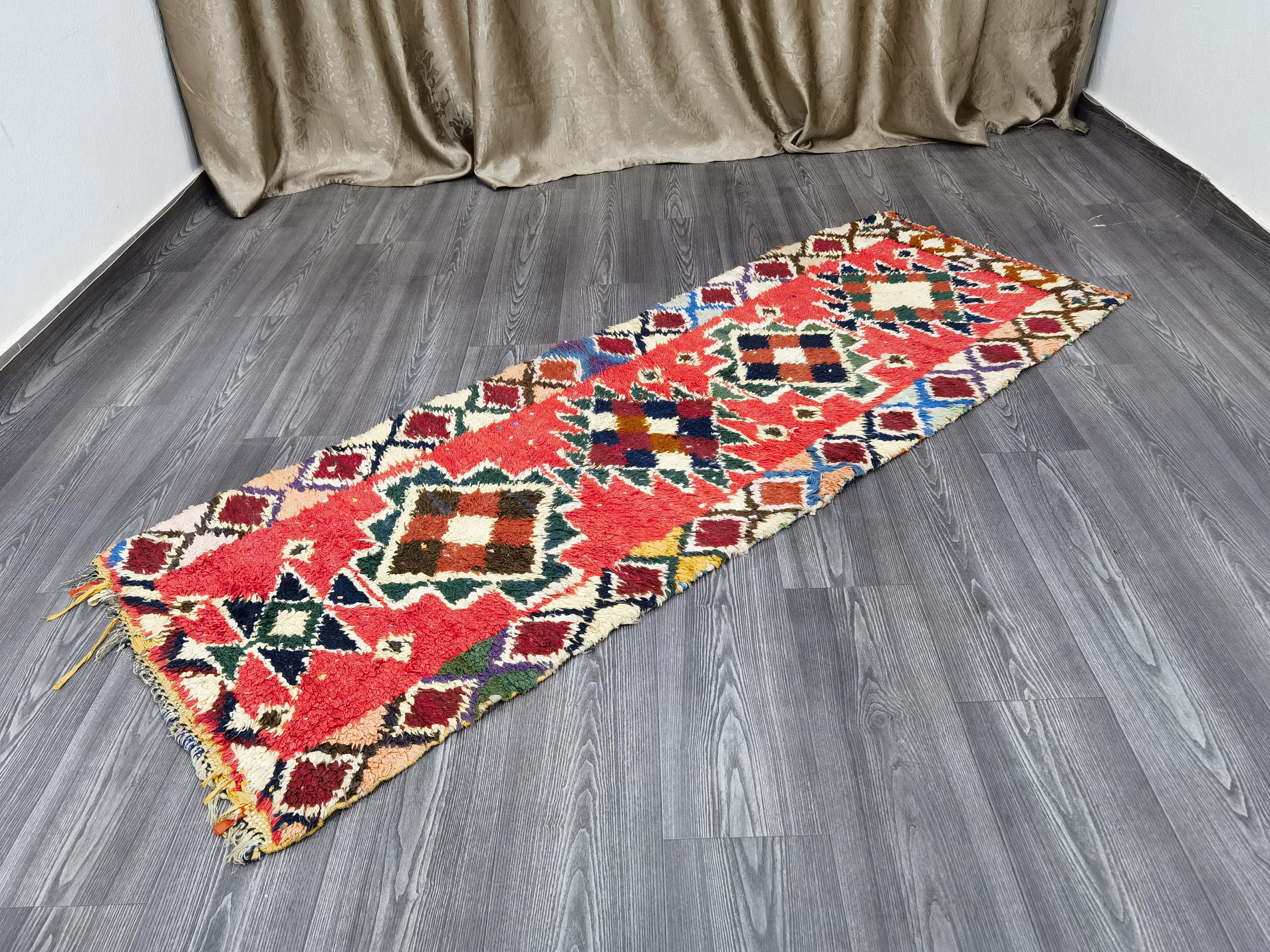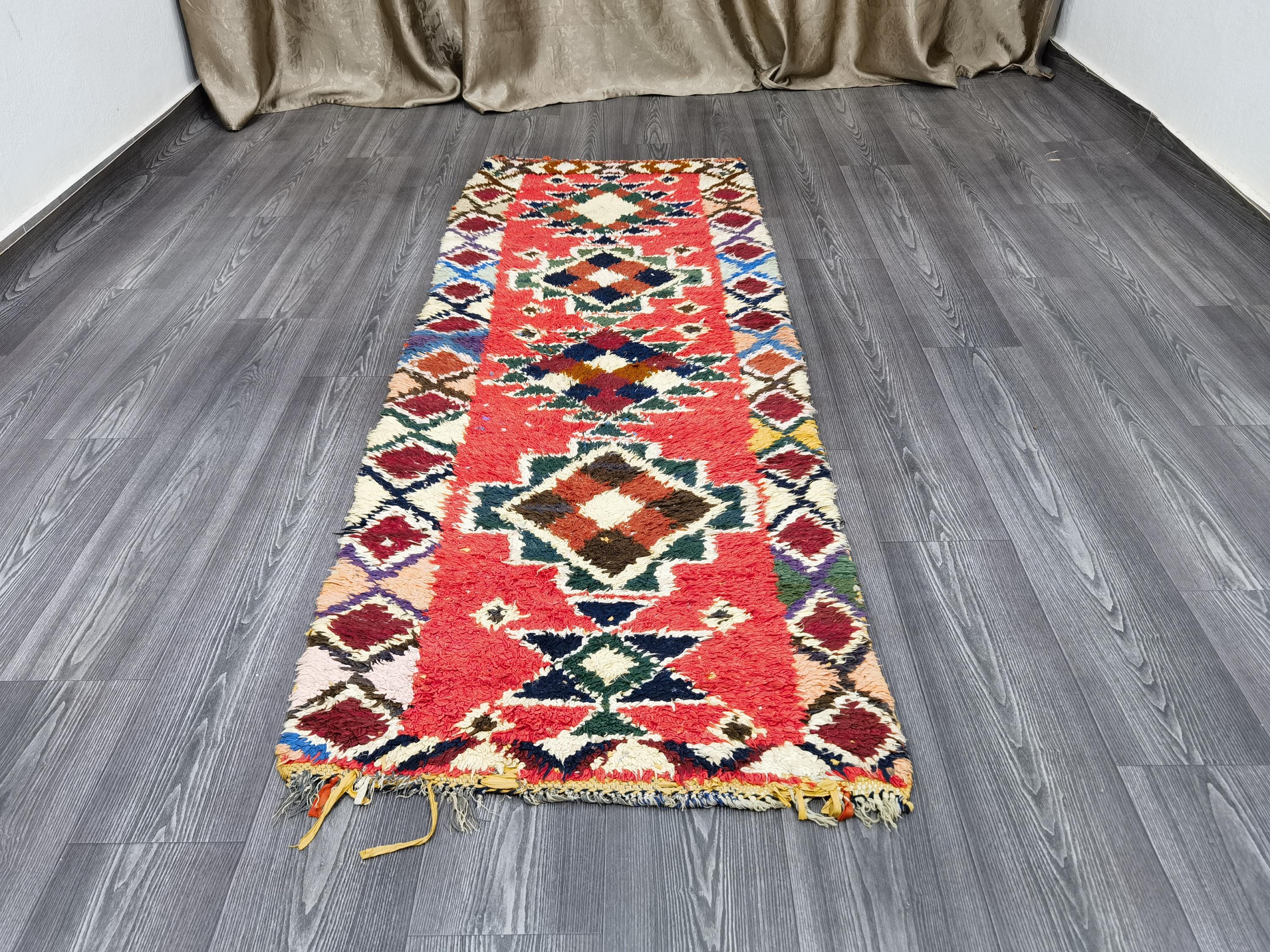 Authentic boujaad runner rug 2.5x6.9 Ft - berber Colorful Runner Rug - Moroccan Runner Rug .