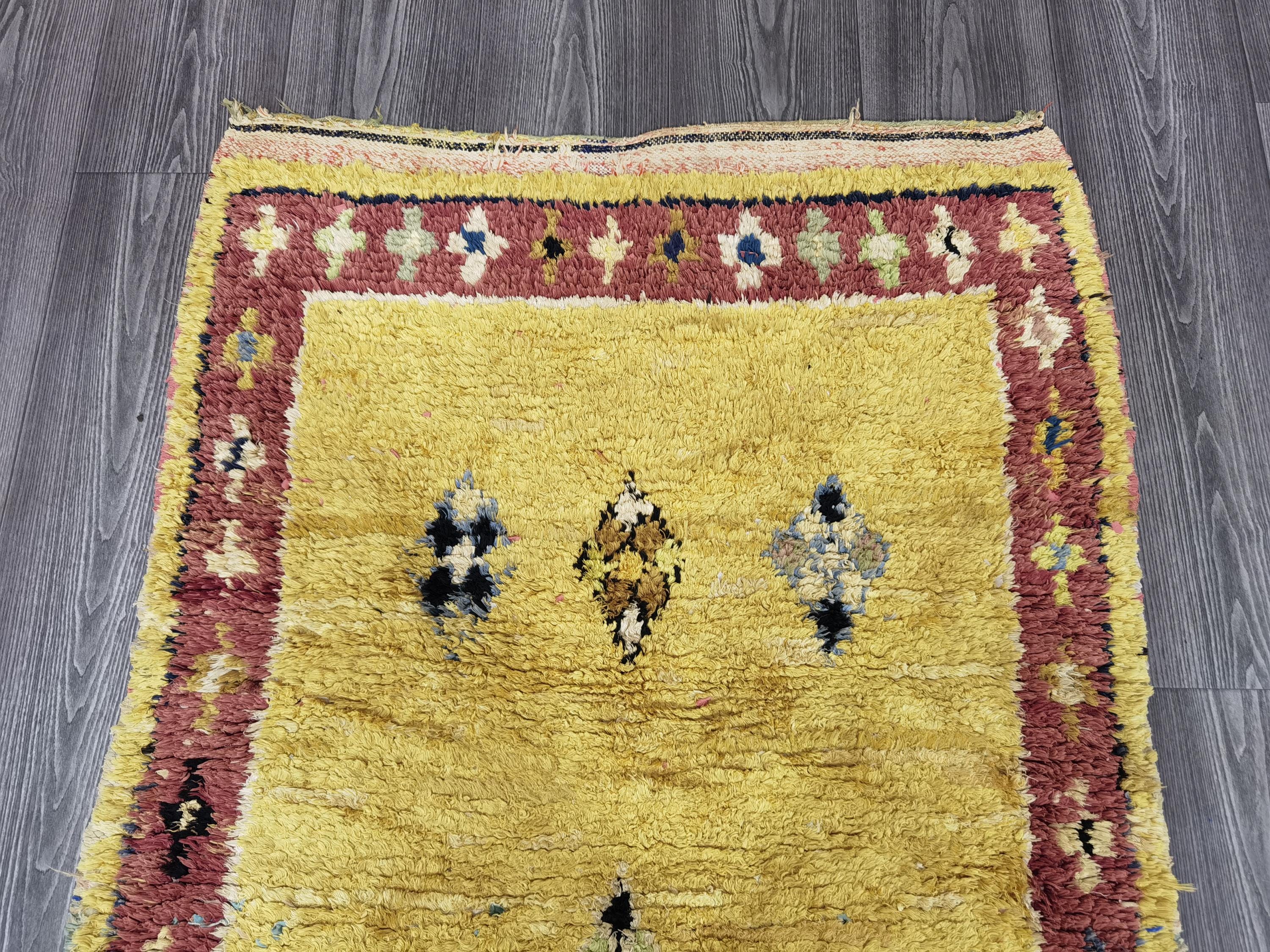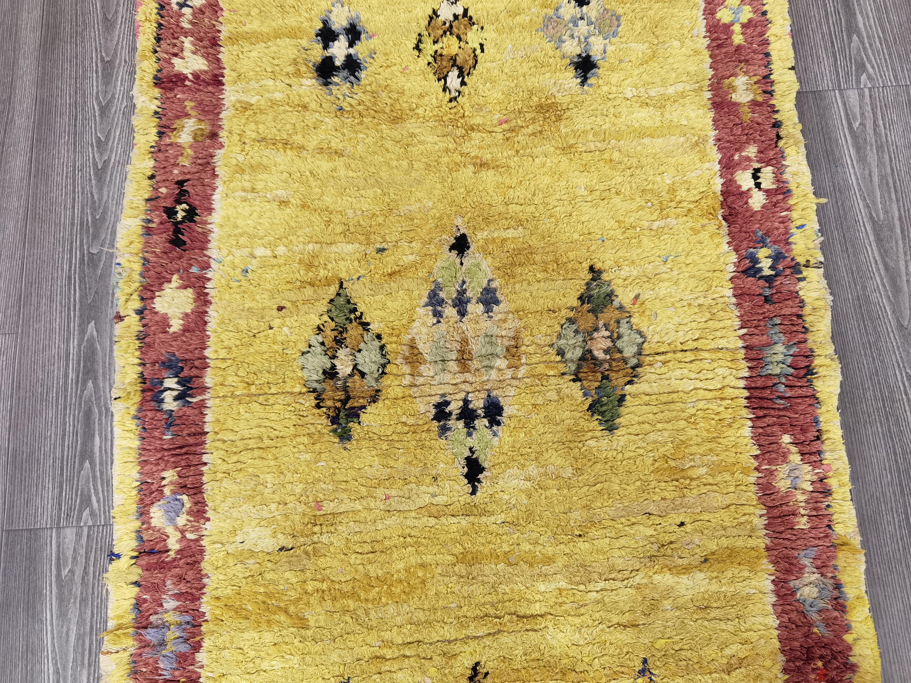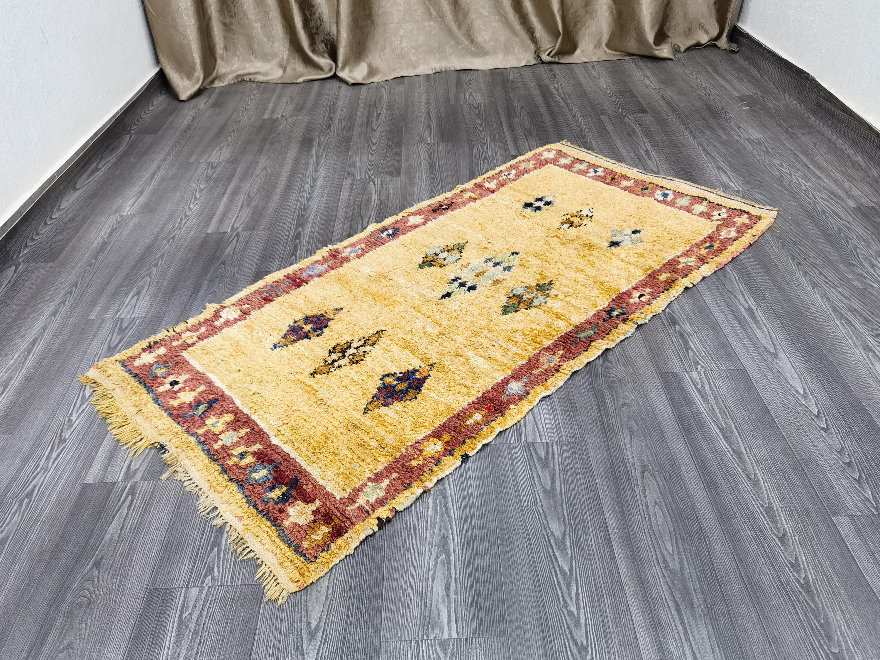 Gold Moroccan Runner Rug, Moroccan Handmade Runner Rug, Authentic Moroccan Rug, Traditional Rug, Boho Rug 2.8x5.8 Ft 87 X 178 cm .