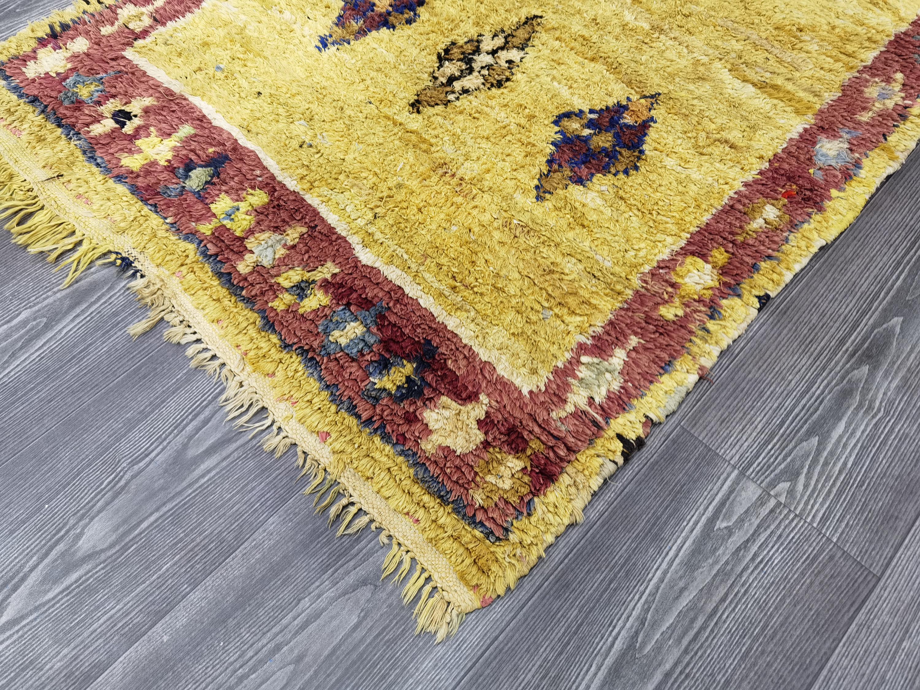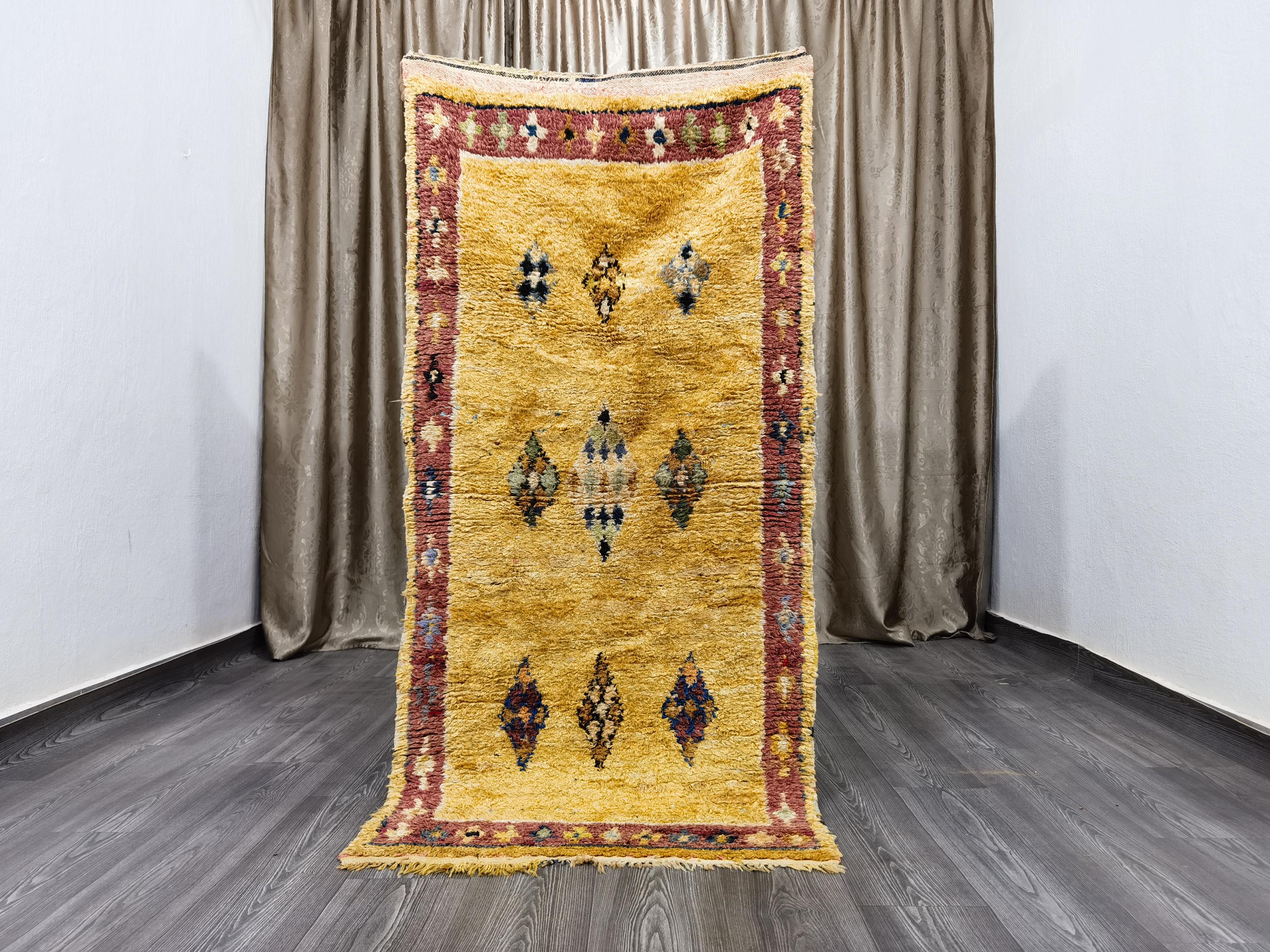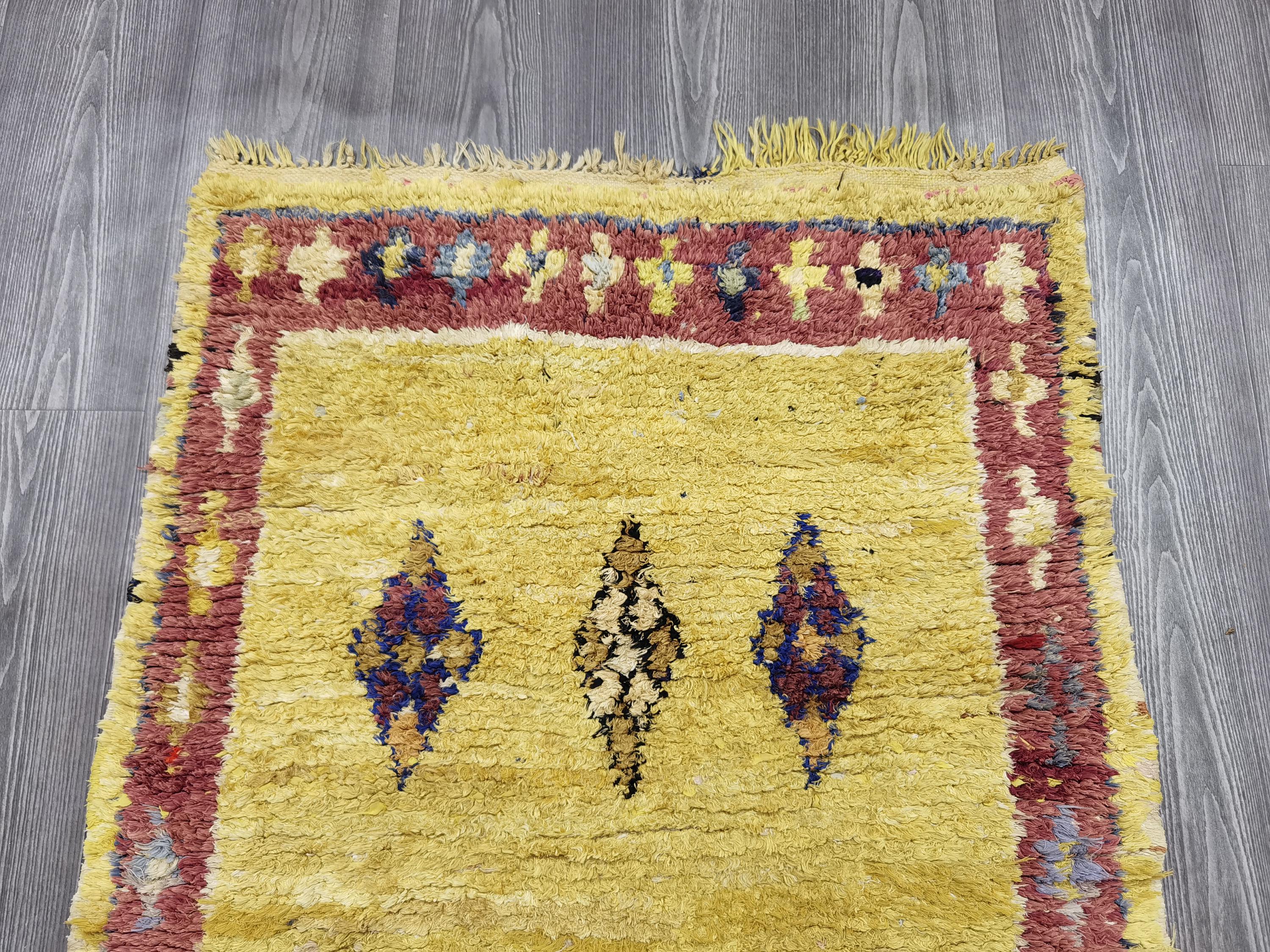 Gold Moroccan Runner Rug, Moroccan Handmade Runner Rug, Authentic Moroccan Rug, Traditional Rug, Boho Rug 2.8x5.8 Ft 87 X 178 cm .