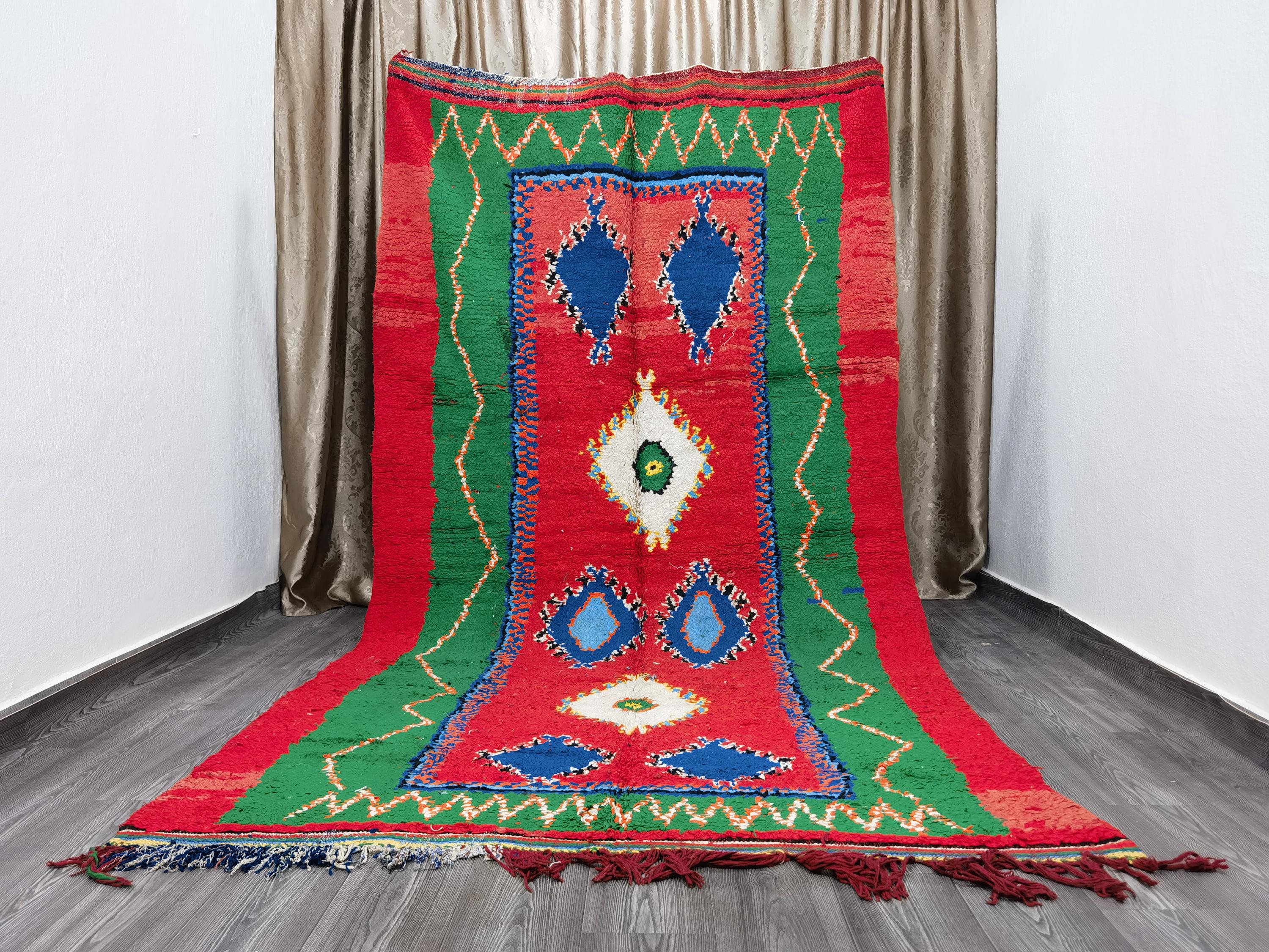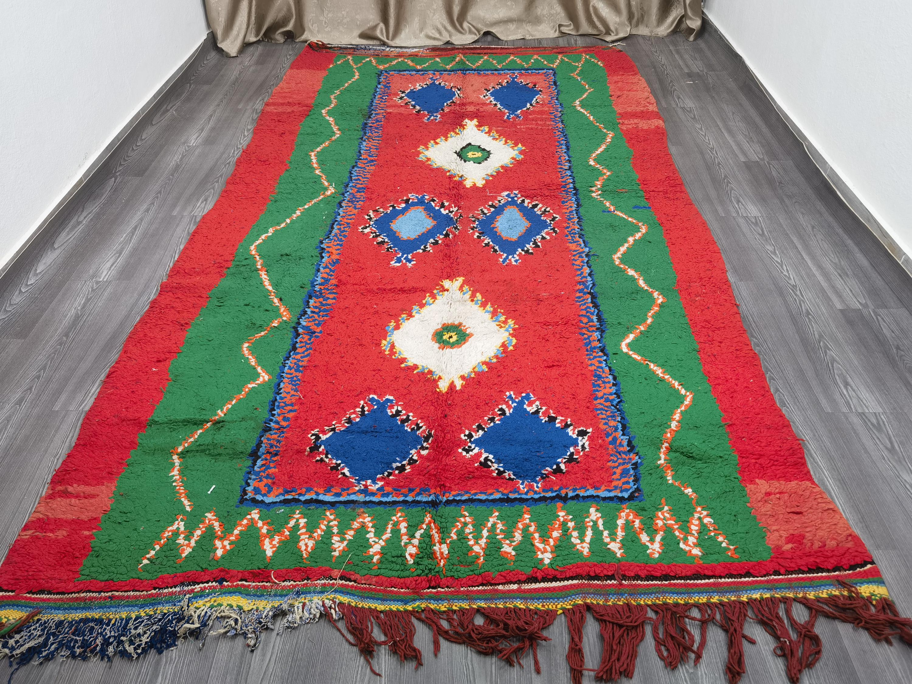 Amazing Vintage Moroccan Boujad Rug 5.8×11 Ft - Rugs For Living Room - Woven Azilal Rugs - Unique Geometric Rug - Berber Woven Area Rug .