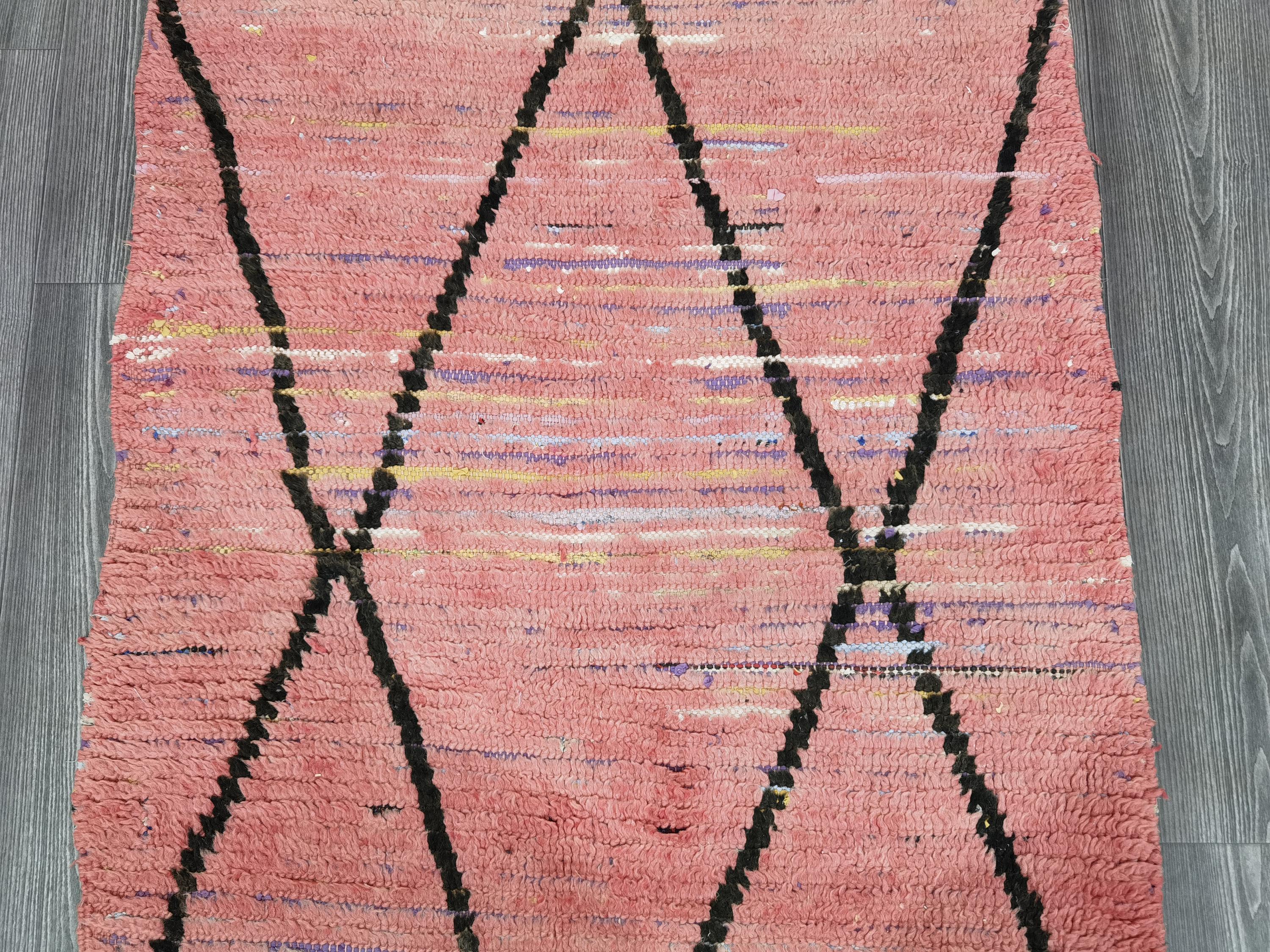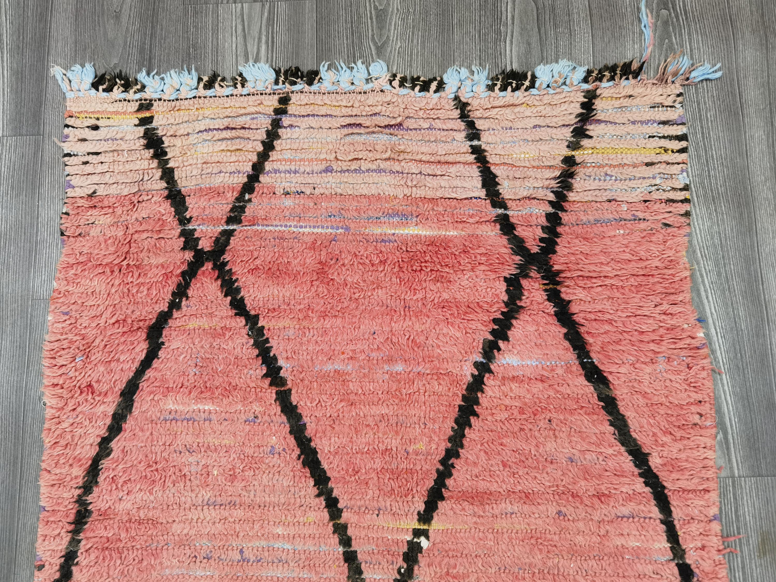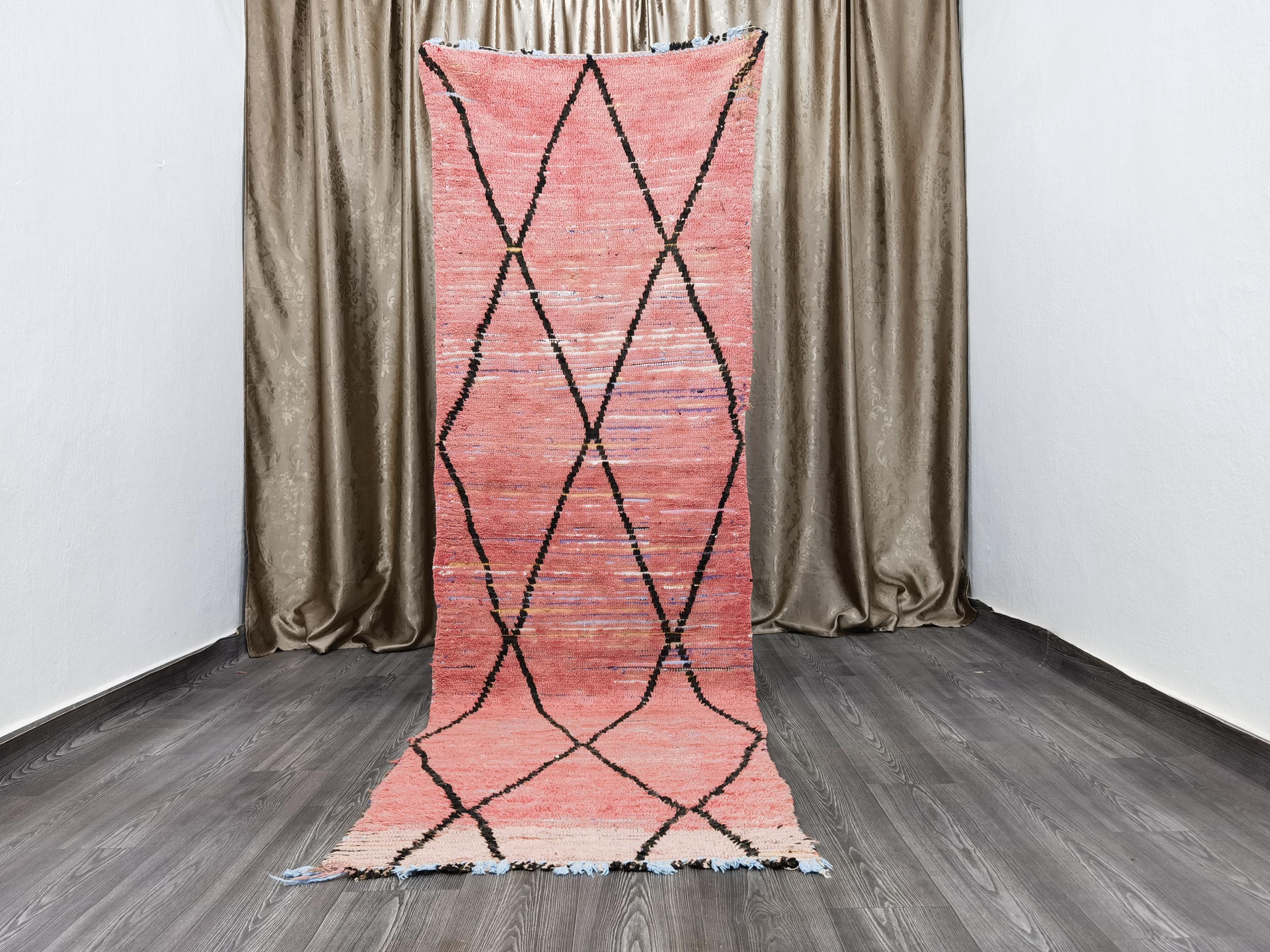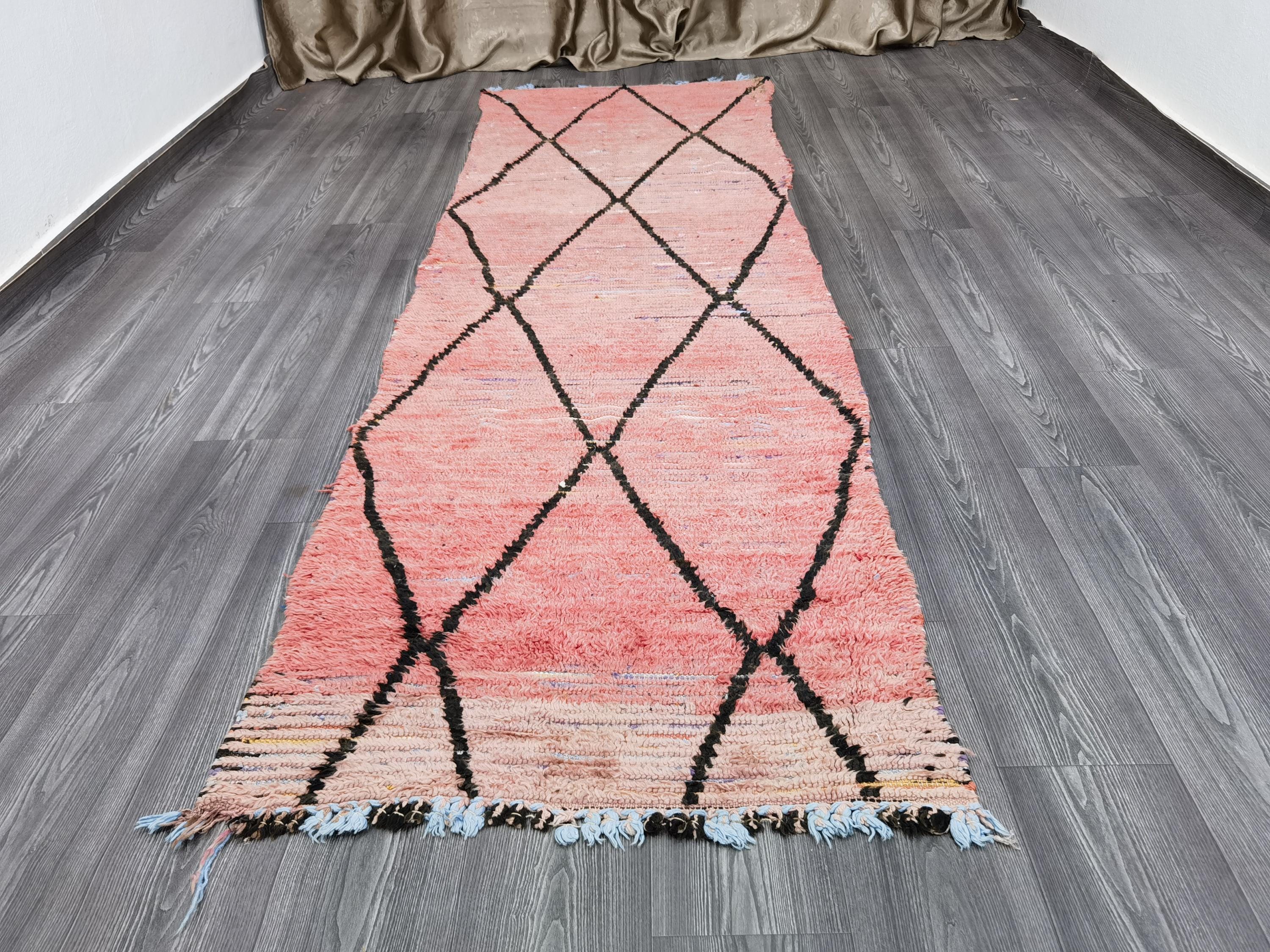 Moroccan Rug Runner 3x9.7 Ft - Antique rug 70's - Old Moroccan Rug Runner 90x296 cm - Unique Boujaad rug - Bohemian Authentic Rug .