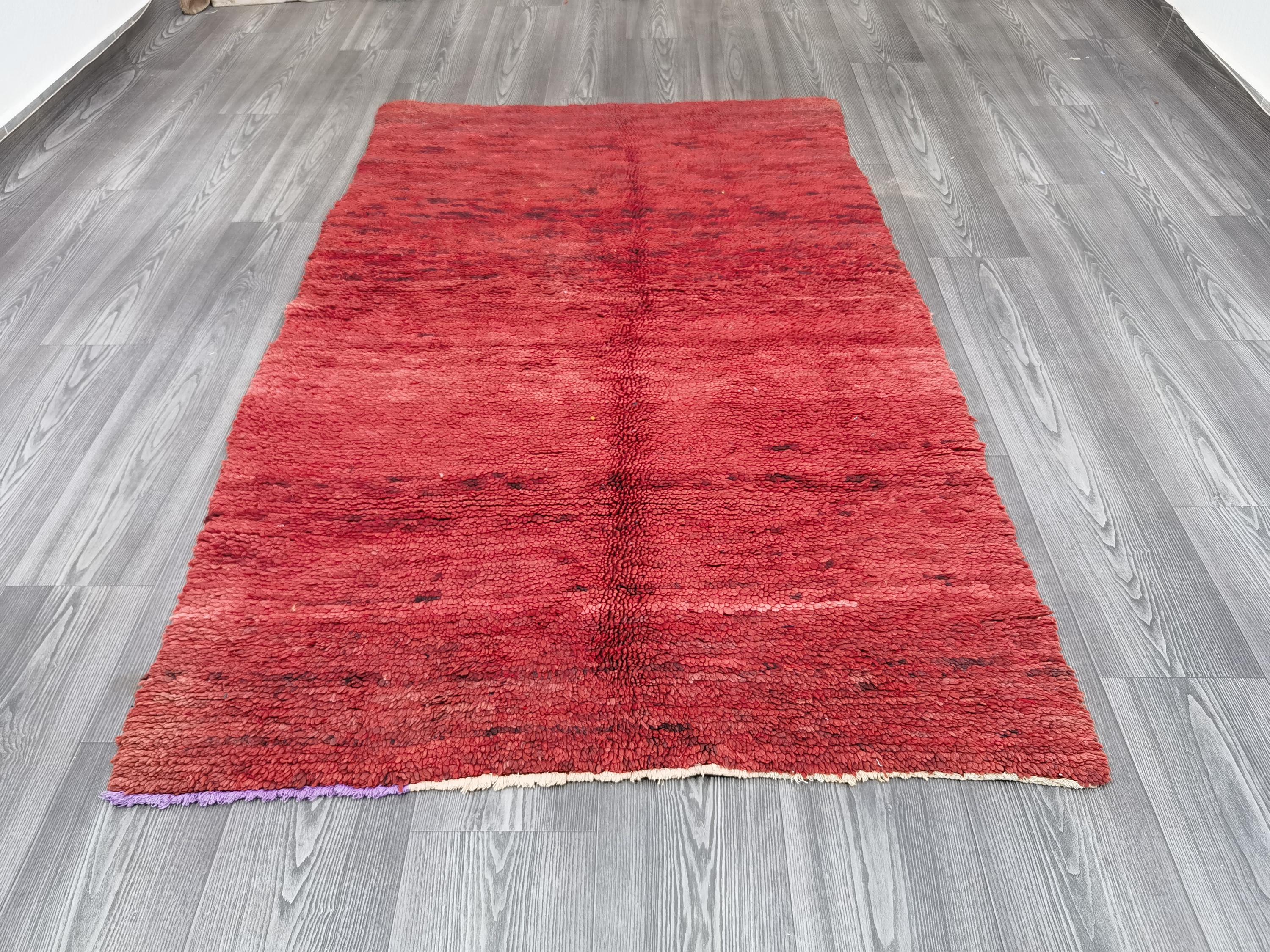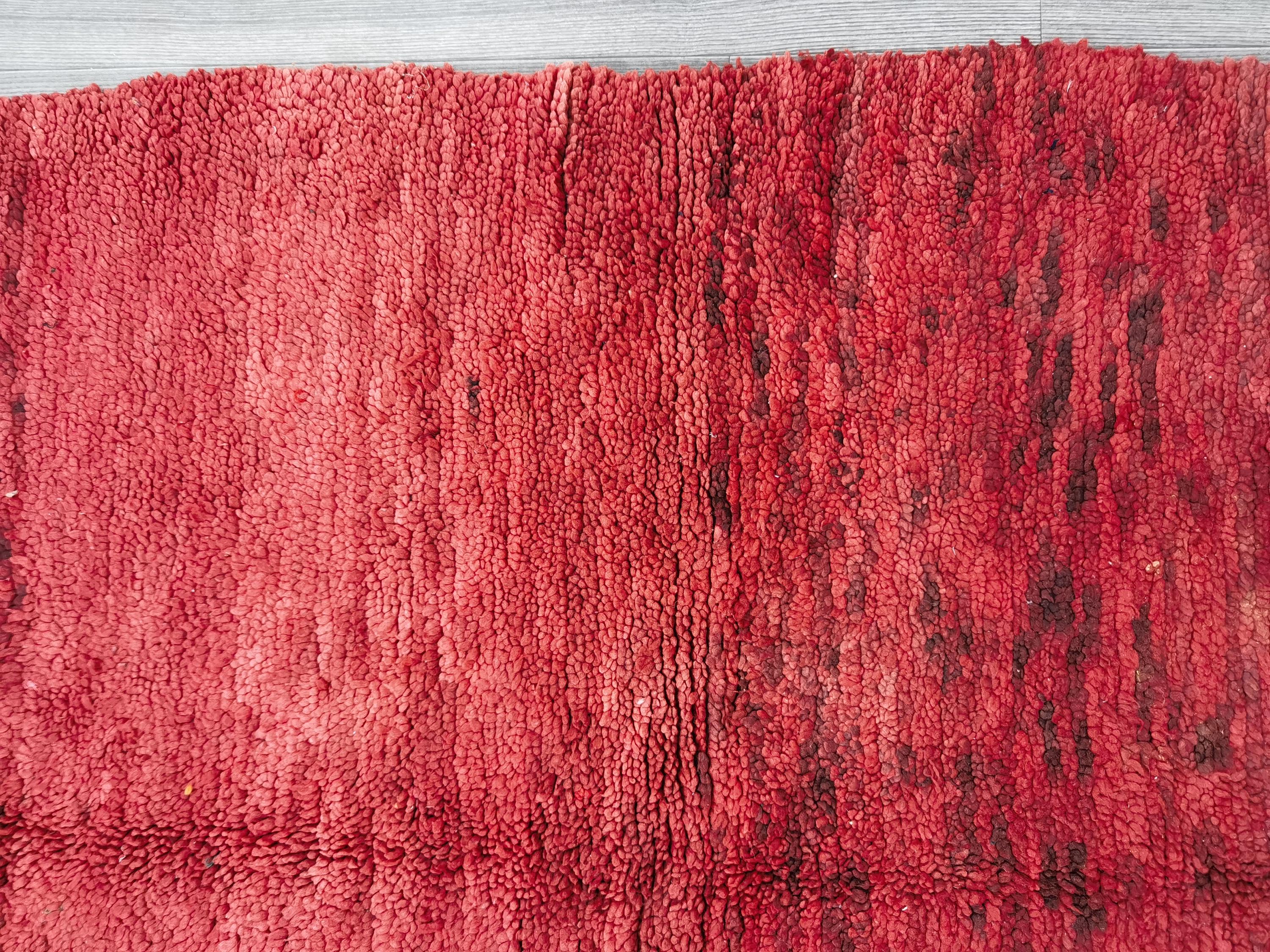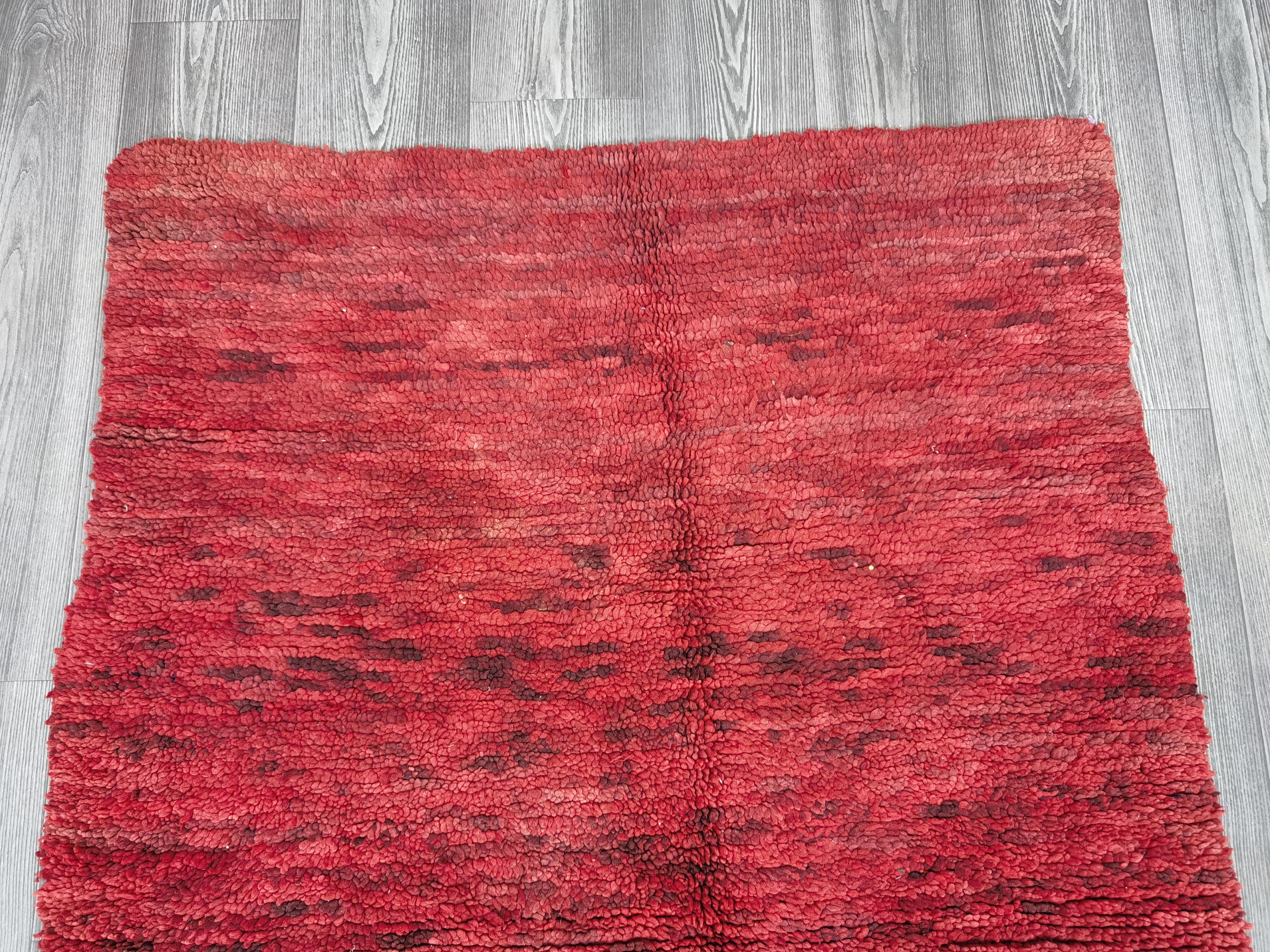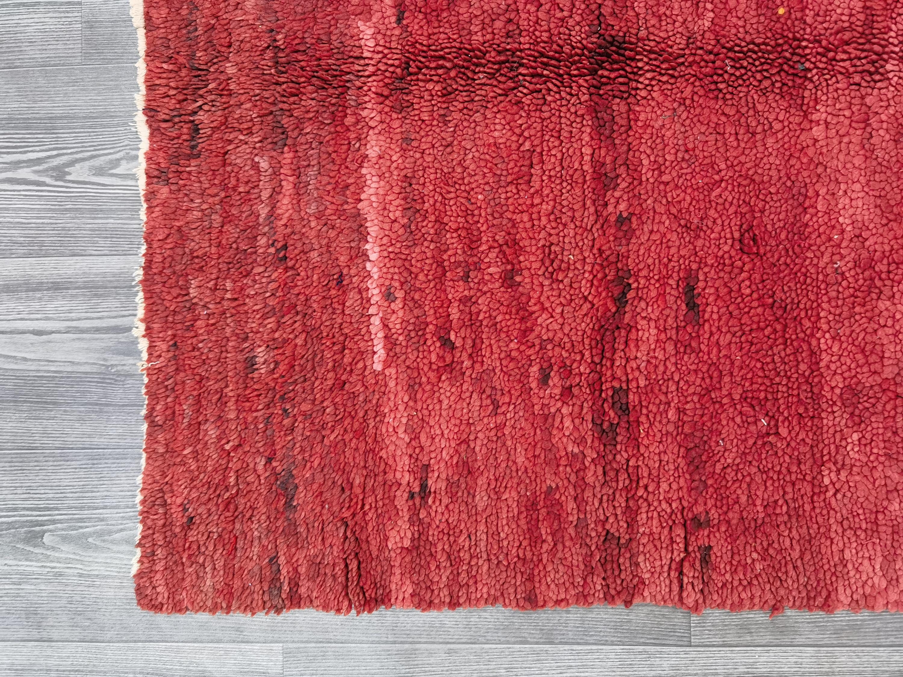 Handmade Red Wool Boujaad Rug – Moroccan Berber Hallway Runner (3.7 x 6.1 ft)