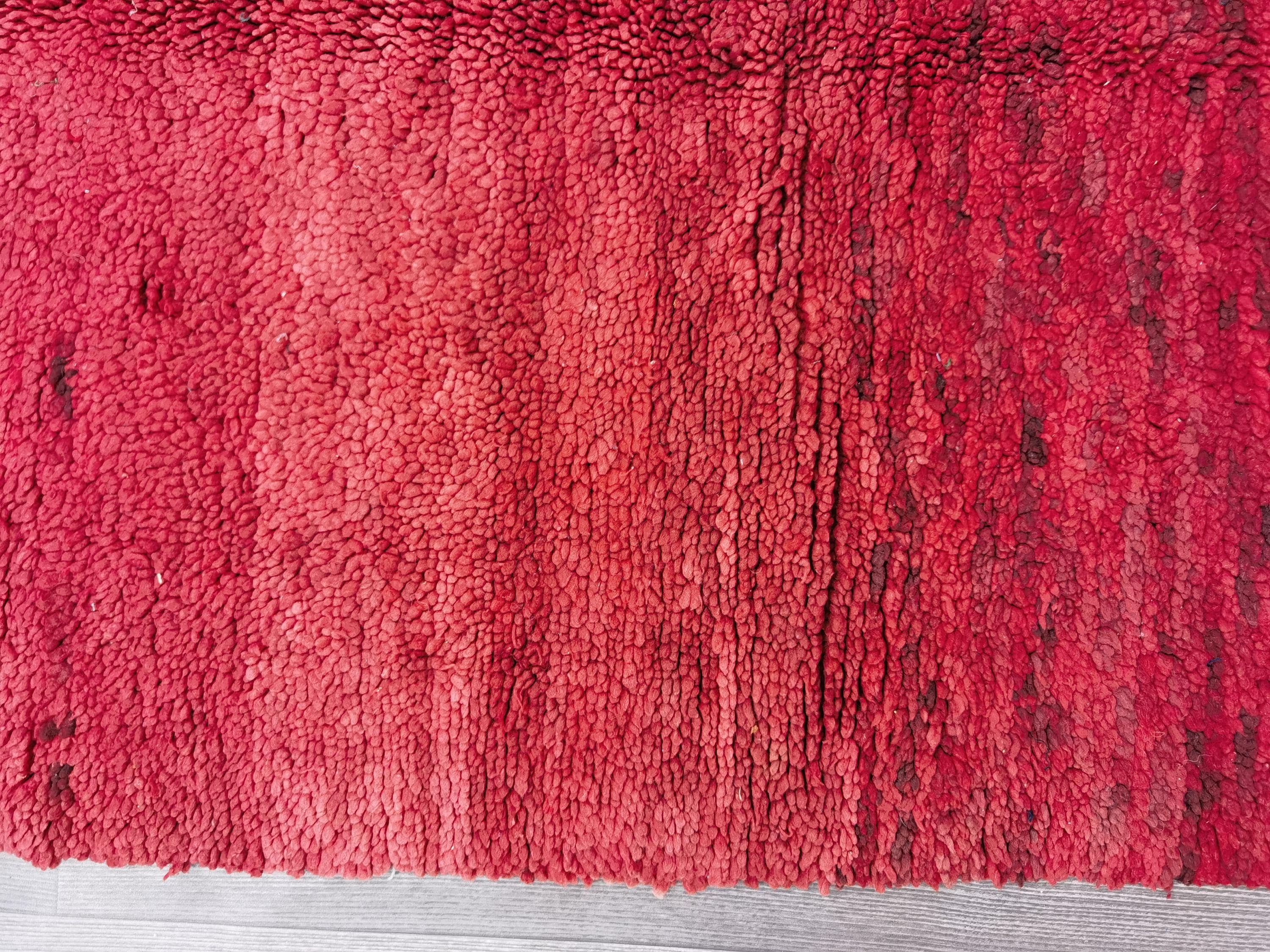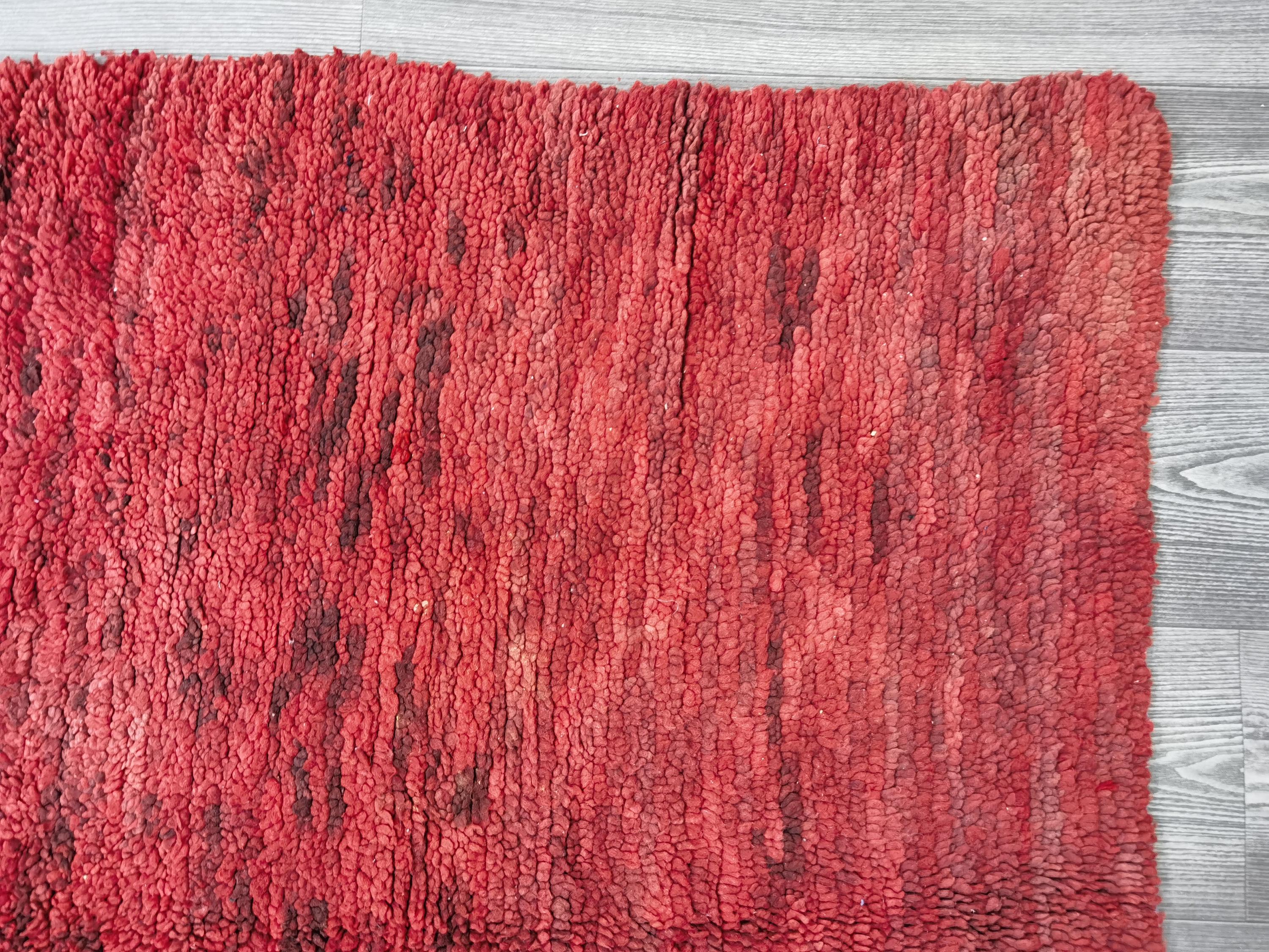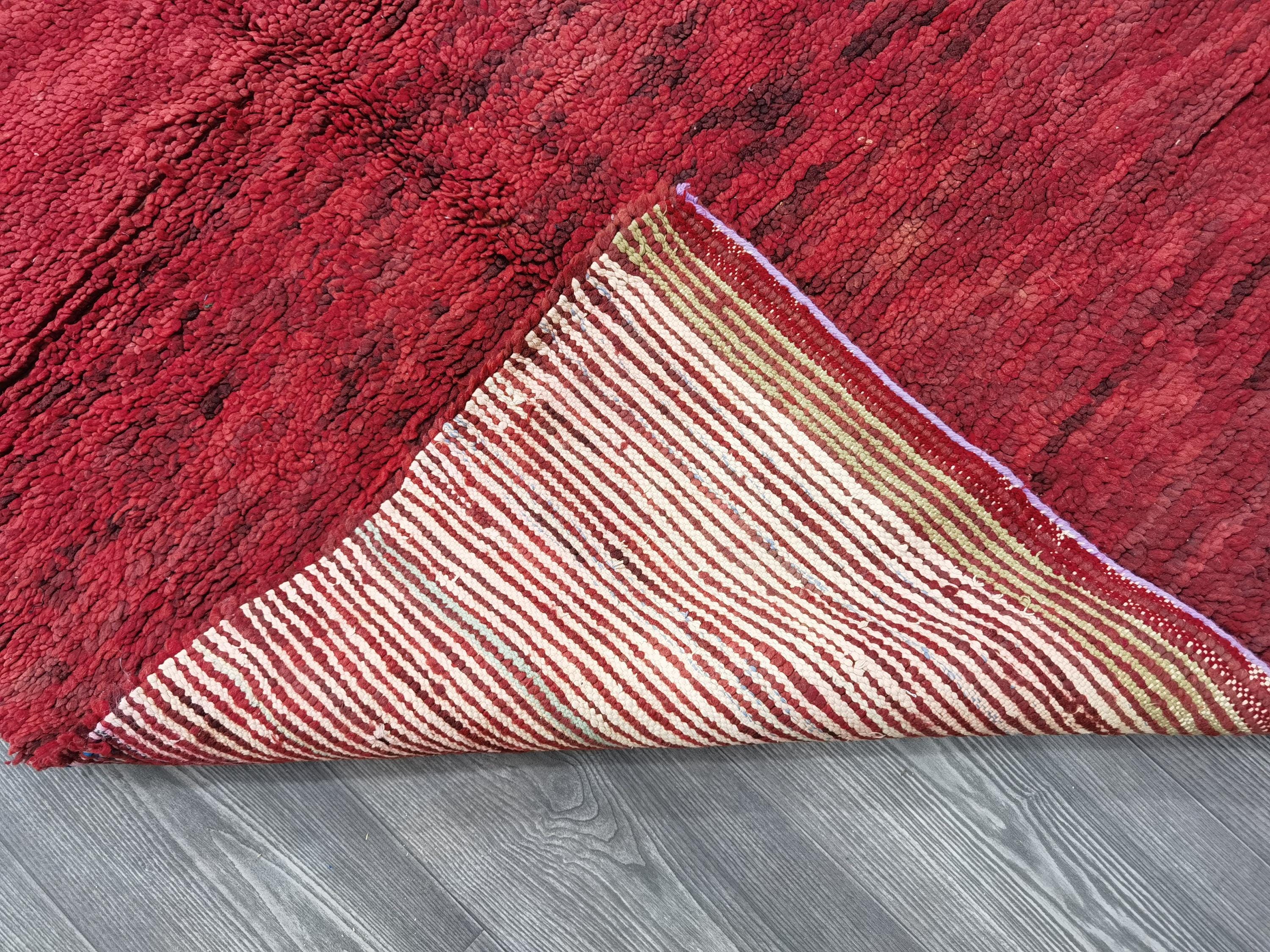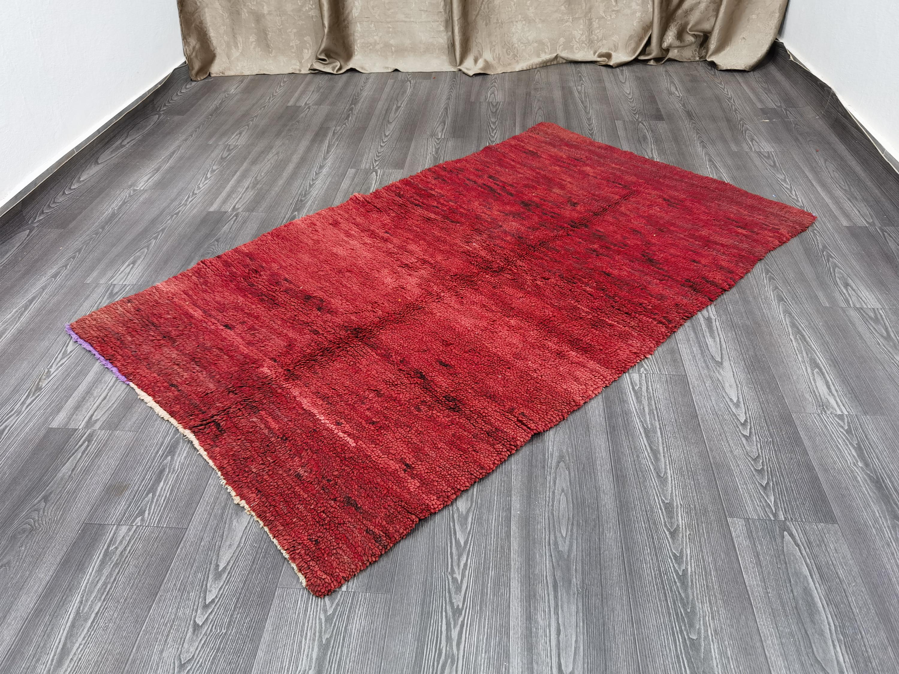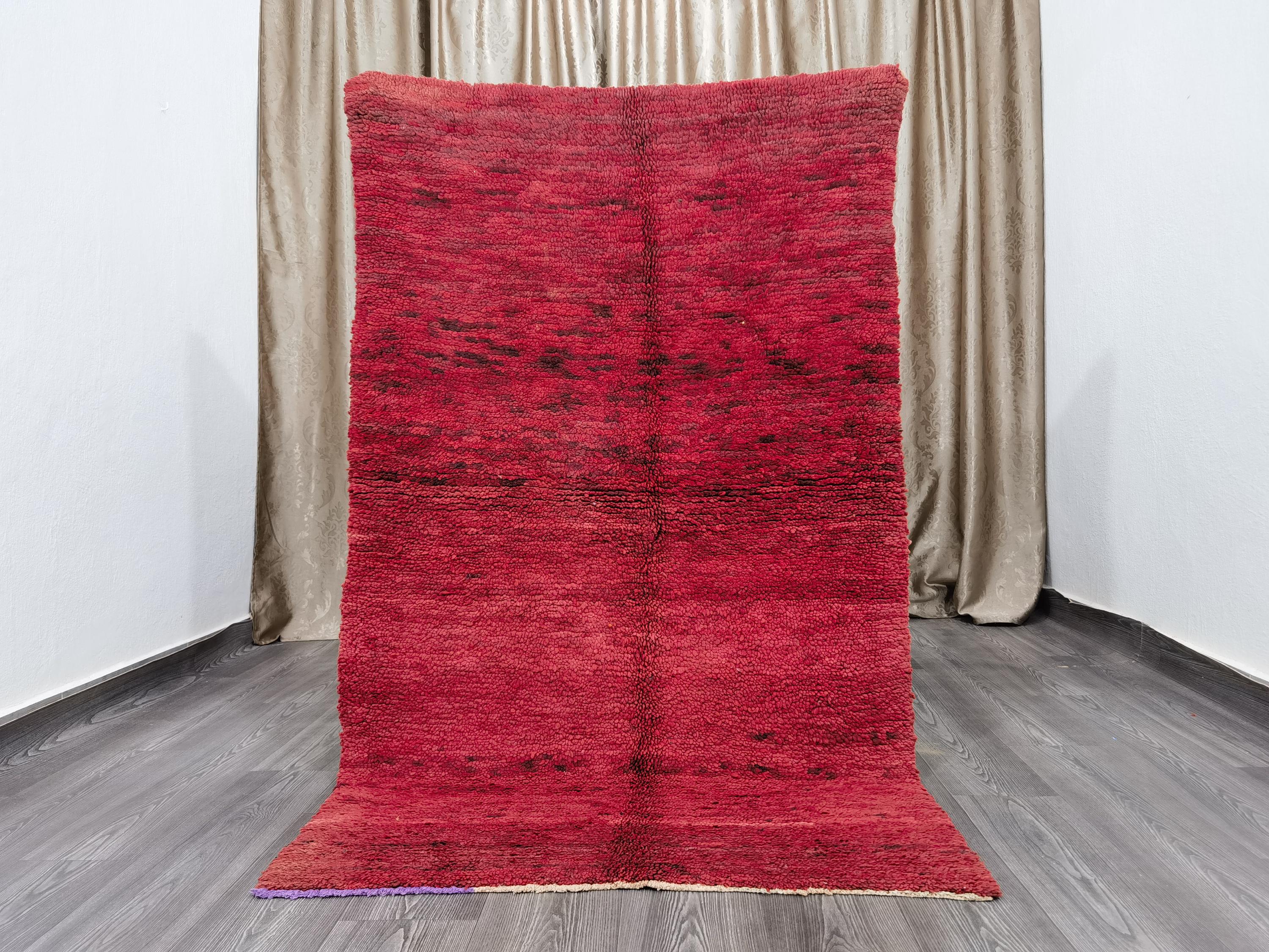 Handmade Red Wool Boujaad Rug – Moroccan Berber Hallway Runner (3.7 x 6.1 ft)