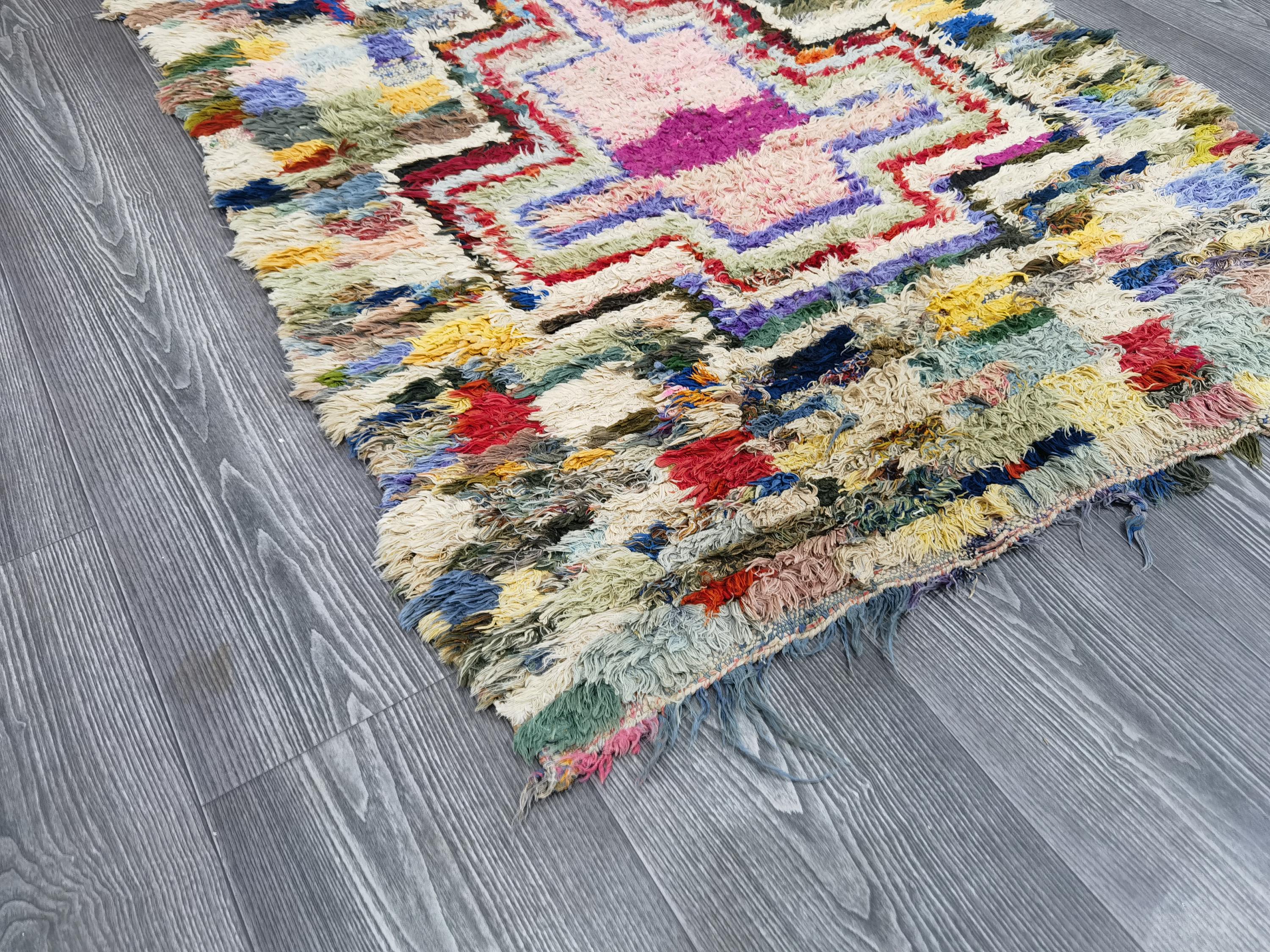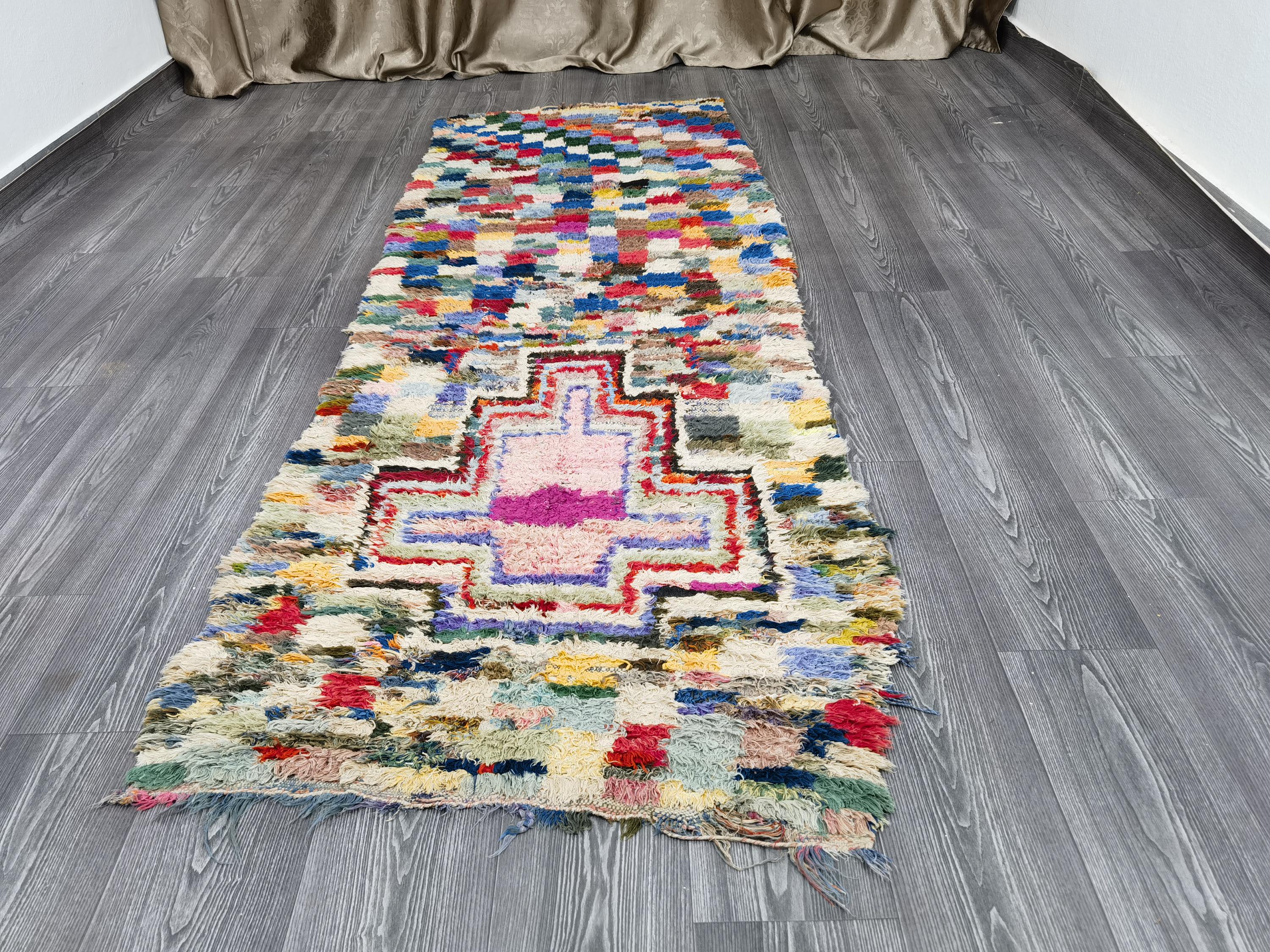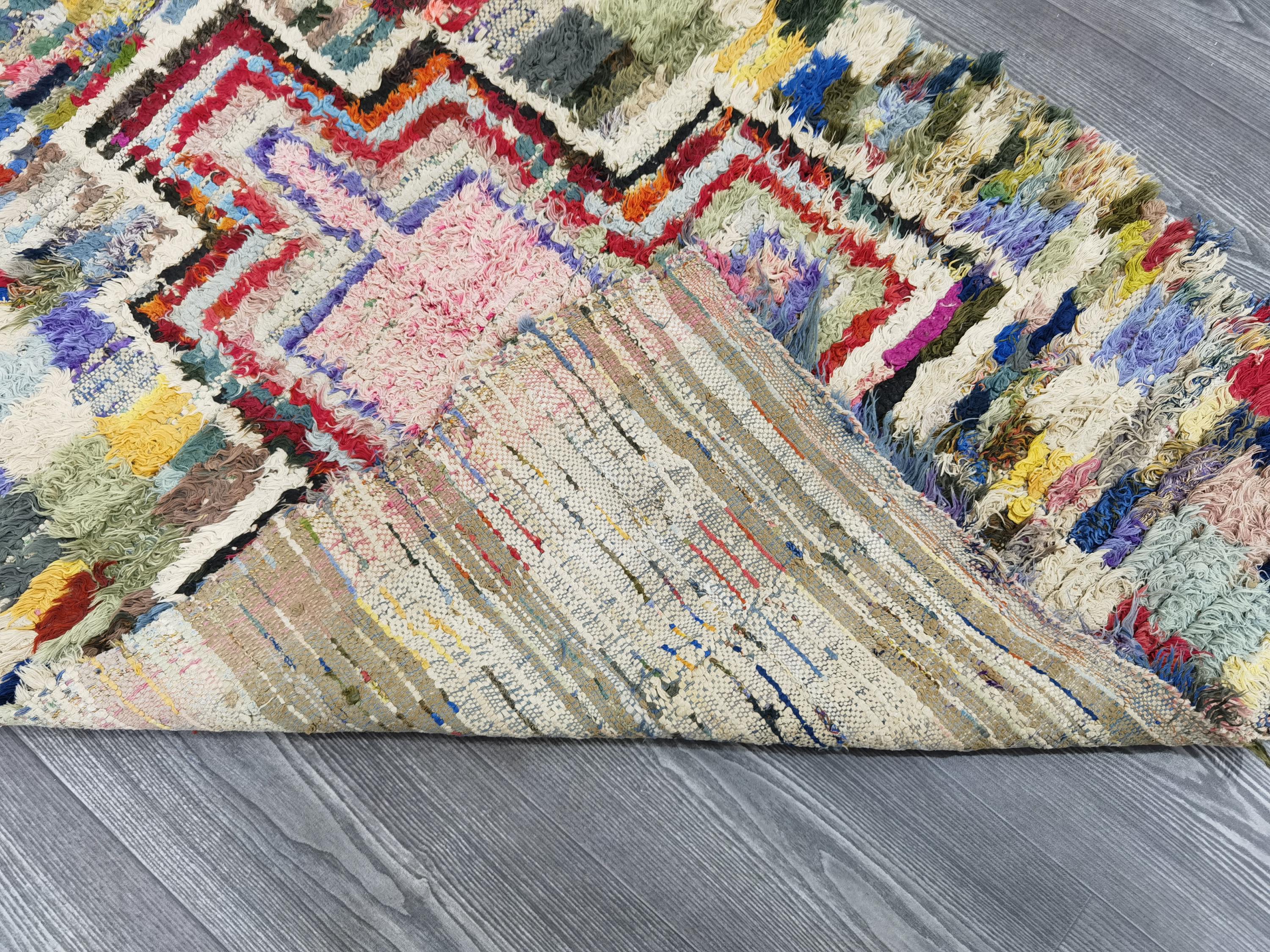 Gorgeous Handmade Moroccan Bohemian Shag Rug - Moroccan Colorful Boucherouite Rug - Old Boucherouite Rug 2.8x8.2 Ft 87 X 250 cm