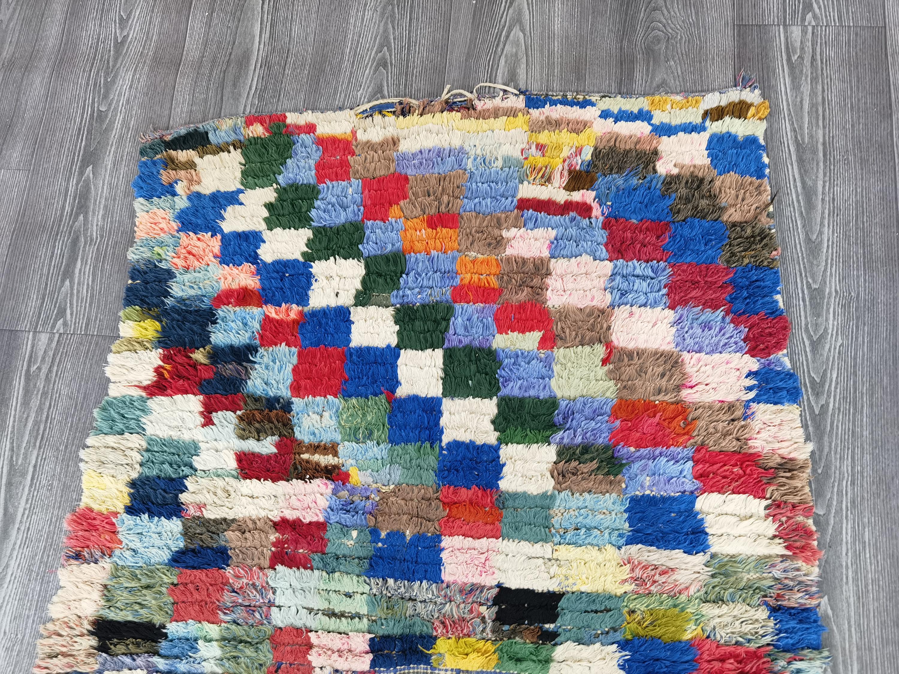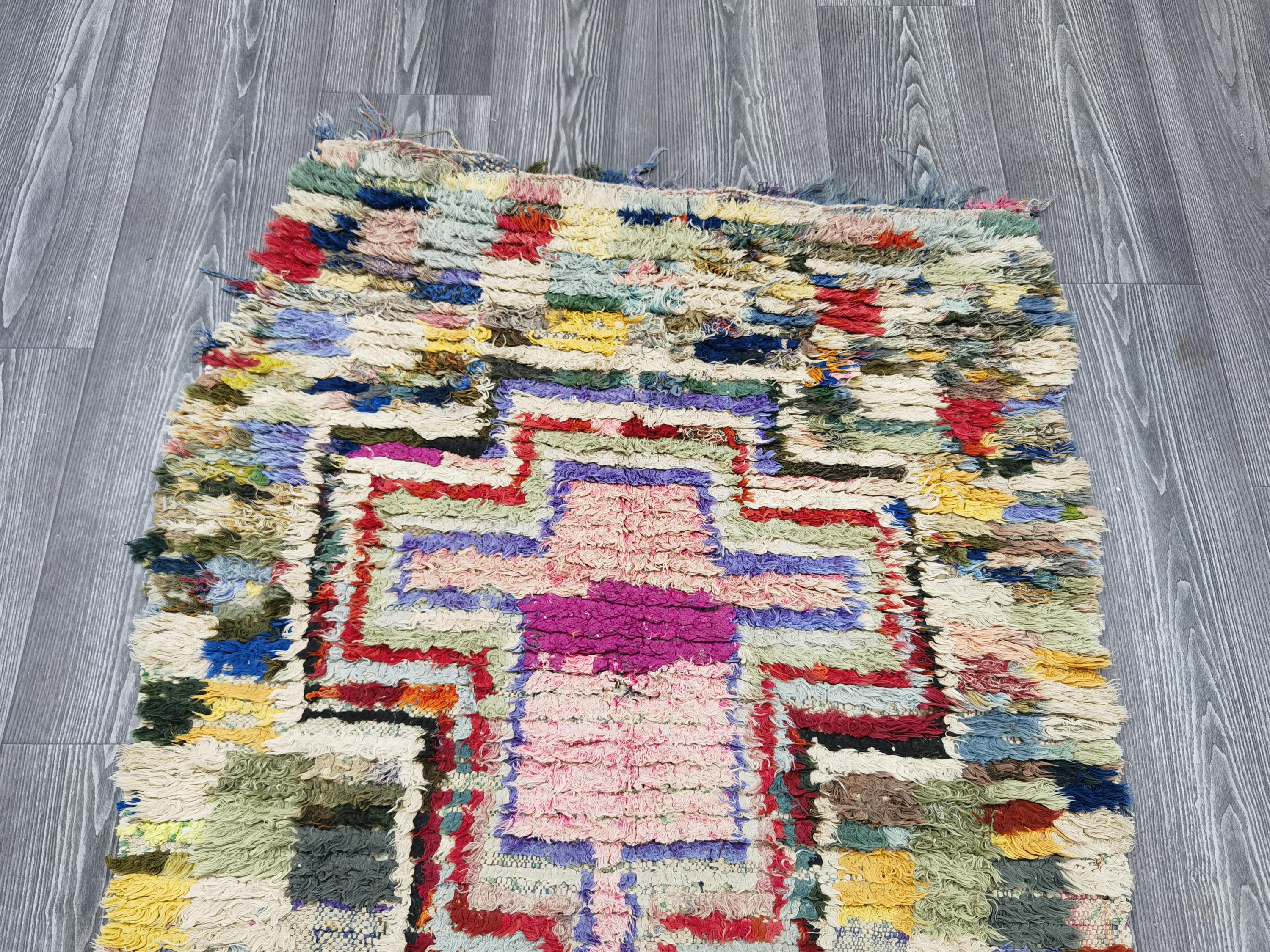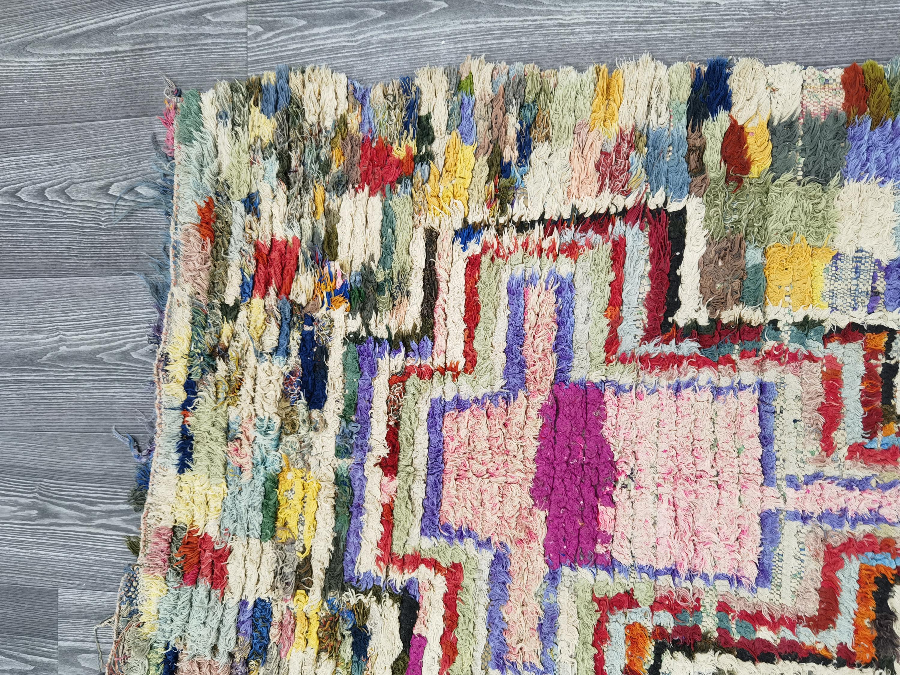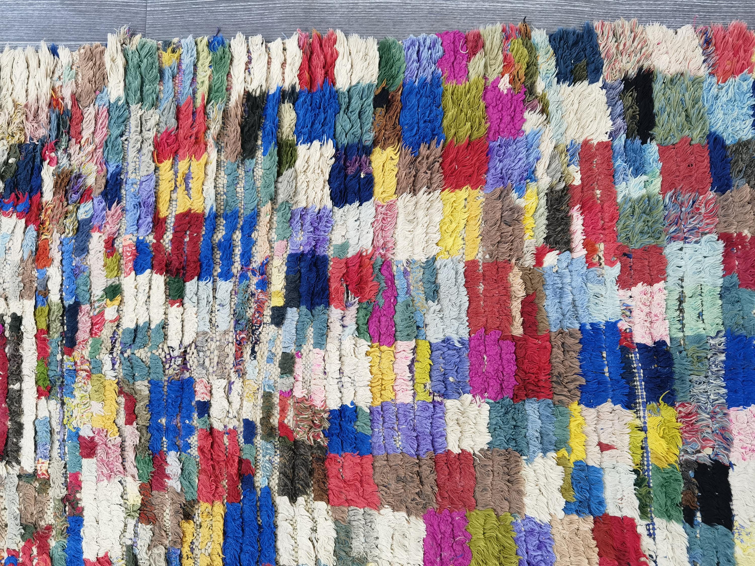 Gorgeous Handmade Moroccan Bohemian Shag Rug - Moroccan Colorful Boucherouite Rug - Old Boucherouite Rug 2.8x8.2 Ft 87 X 250 cm