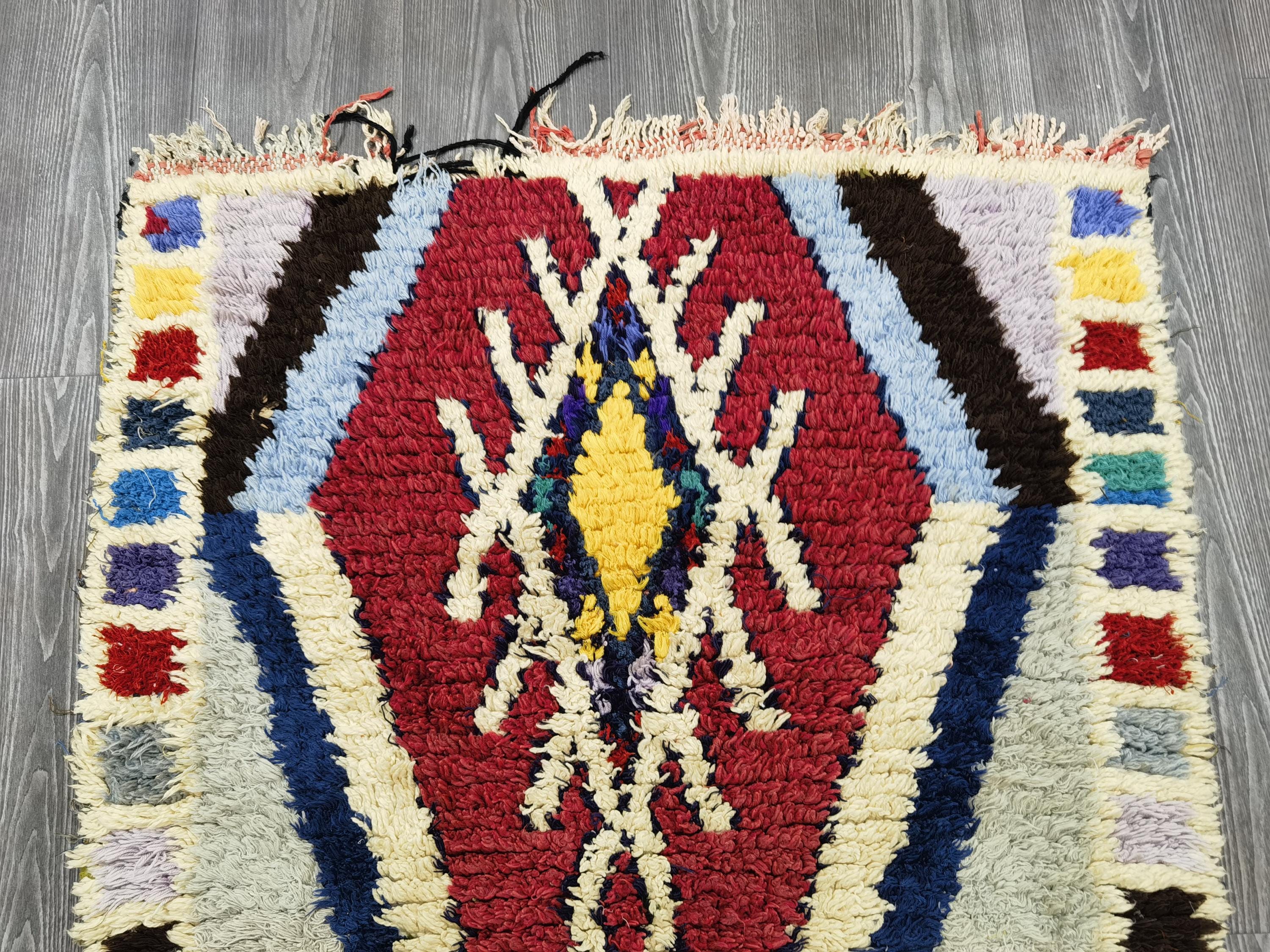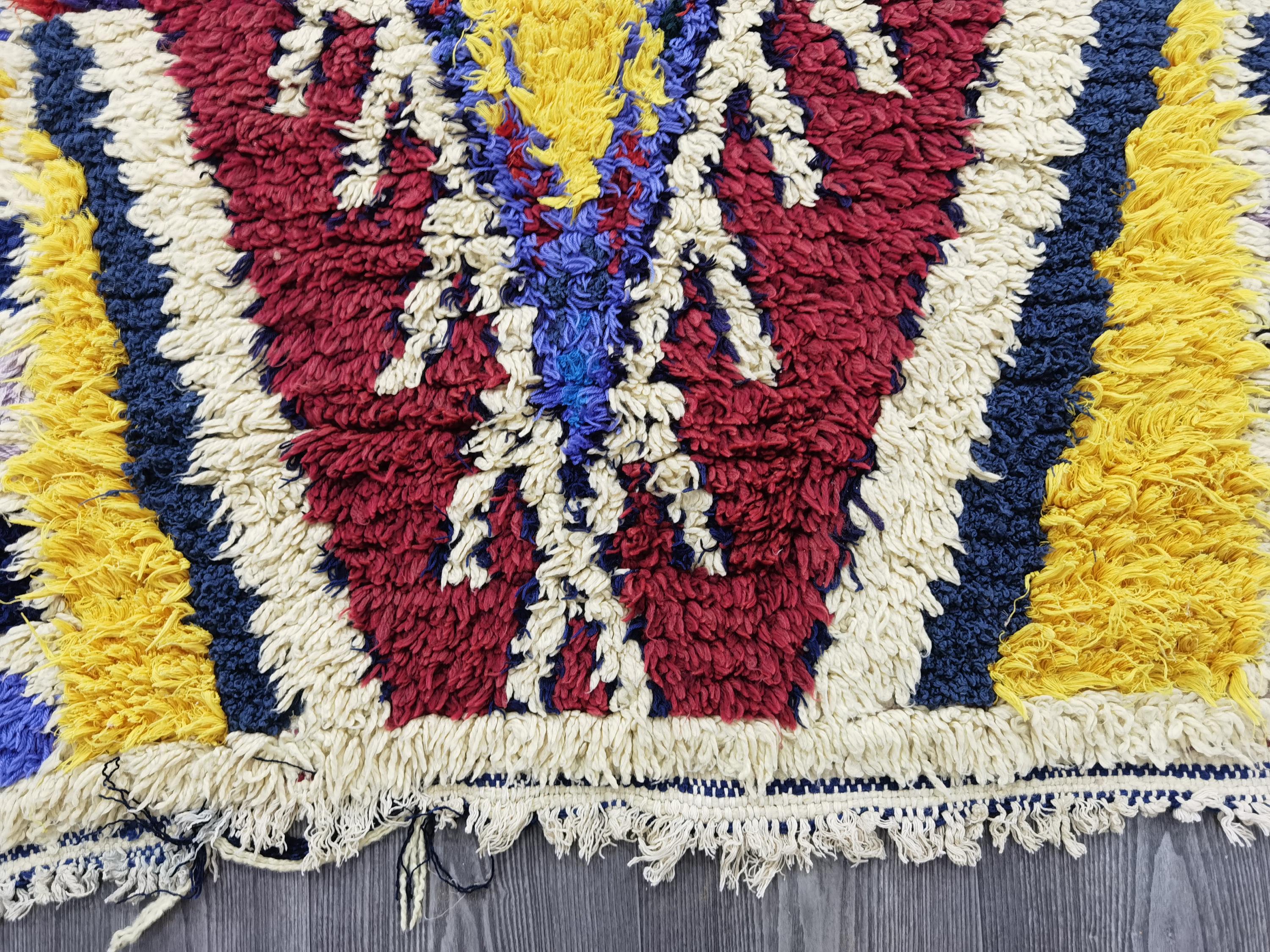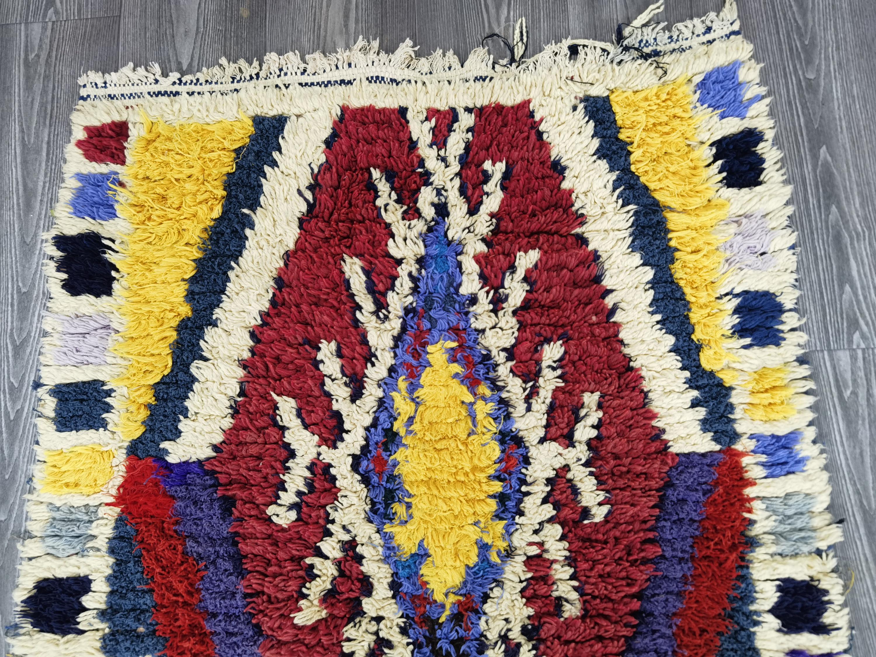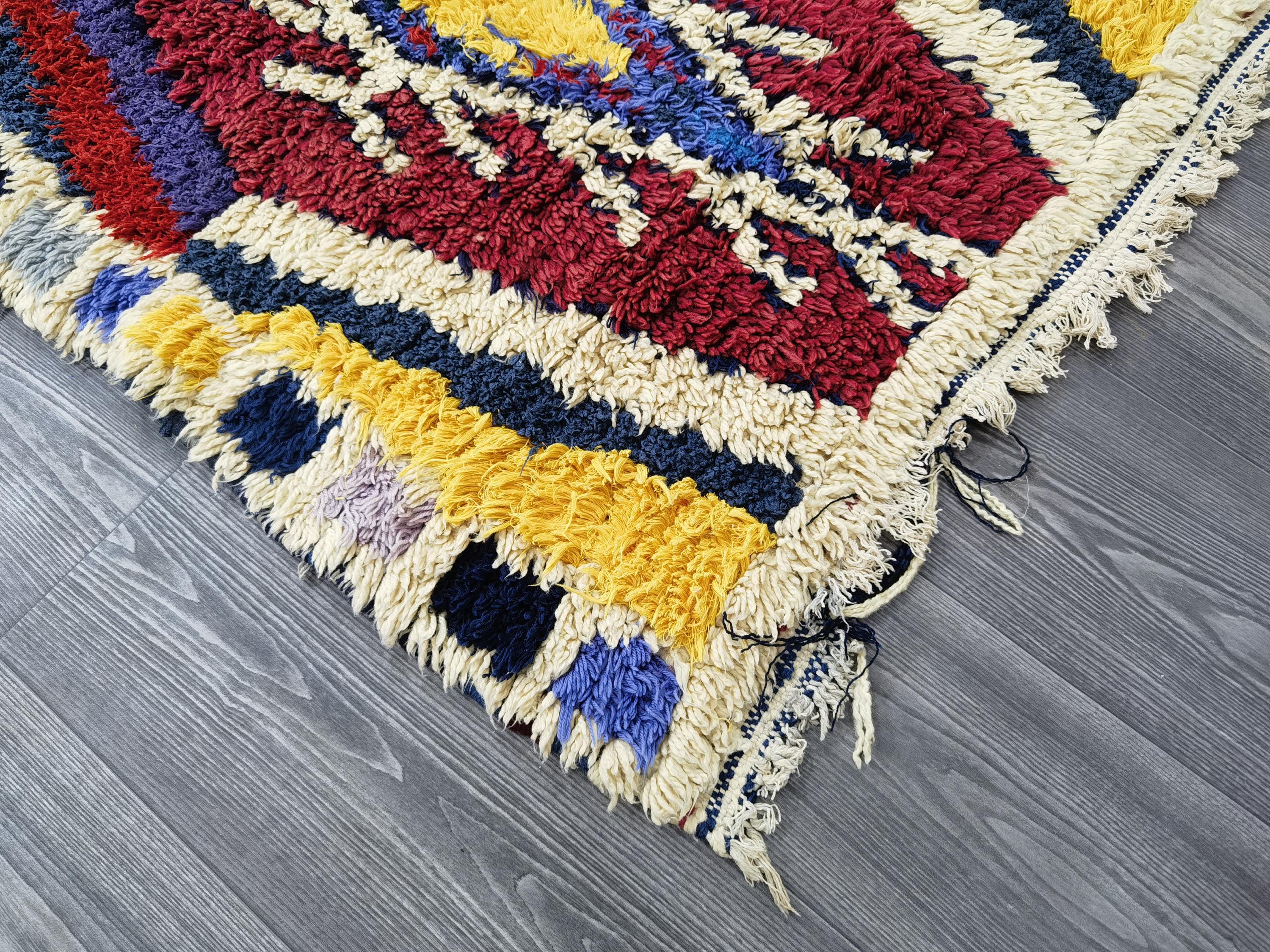 Gorgeous Handmade Moroccan Bohemian Shag Rug - Moroccan Colorful Boucherouite Rug - Old Boucherouite Rug 3x5.1 Ft 90 X 156 cm