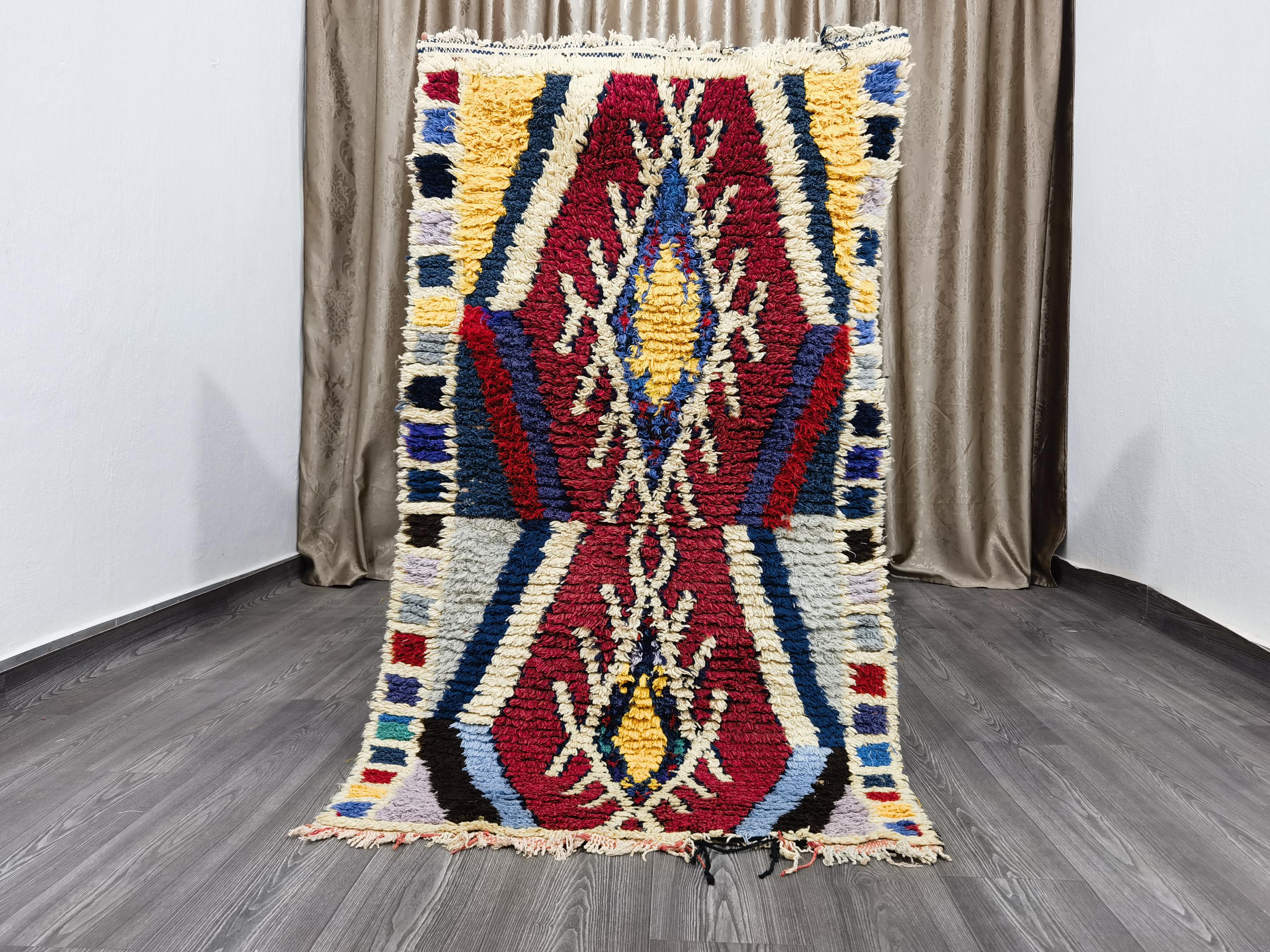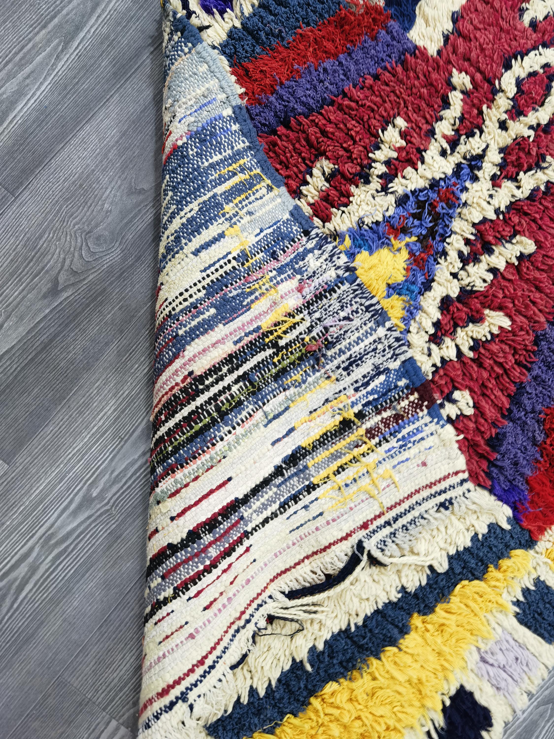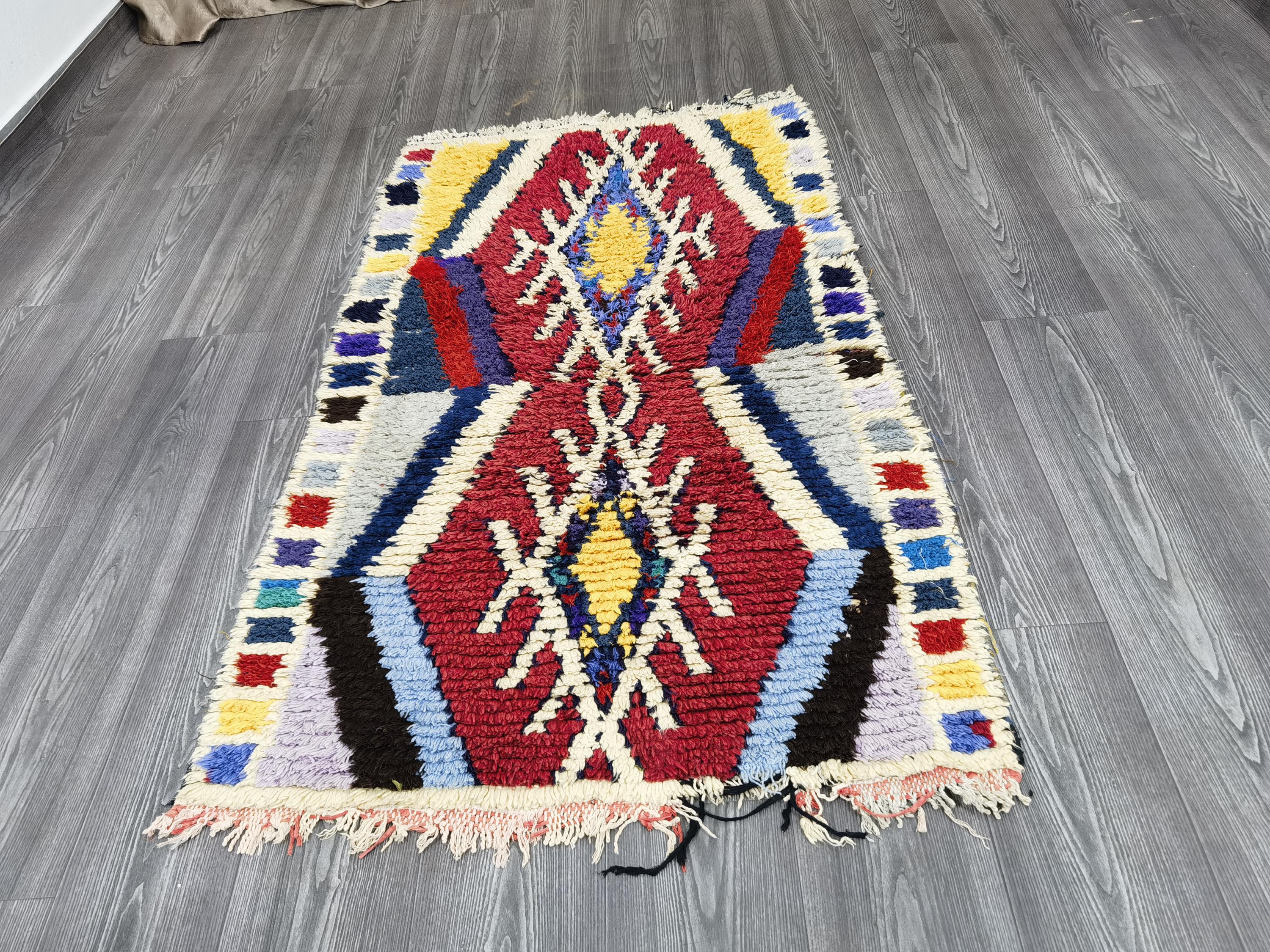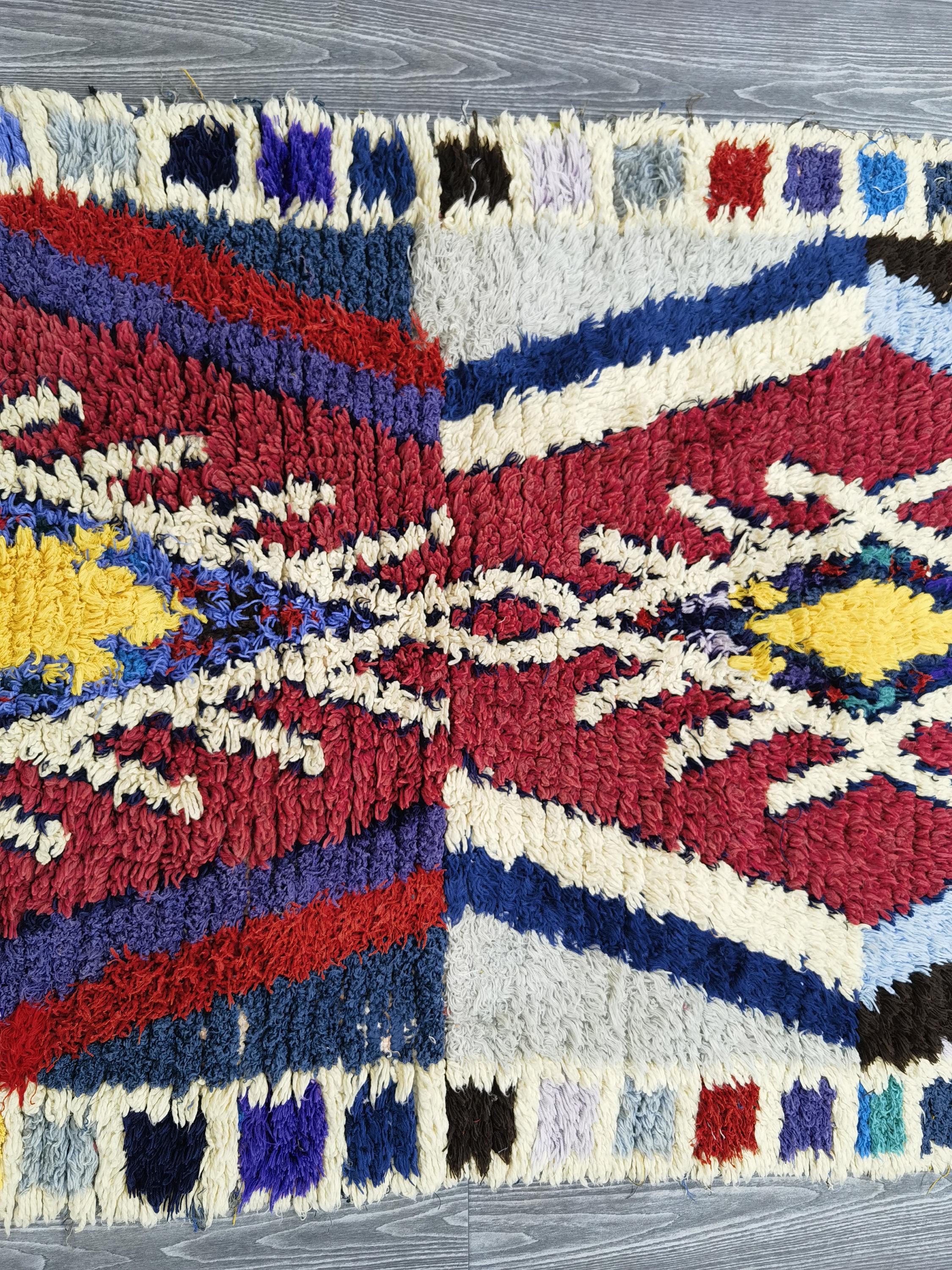 Gorgeous Handmade Moroccan Bohemian Shag Rug - Moroccan Colorful Boucherouite Rug - Old Boucherouite Rug 3x5.1 Ft 90 X 156 cm