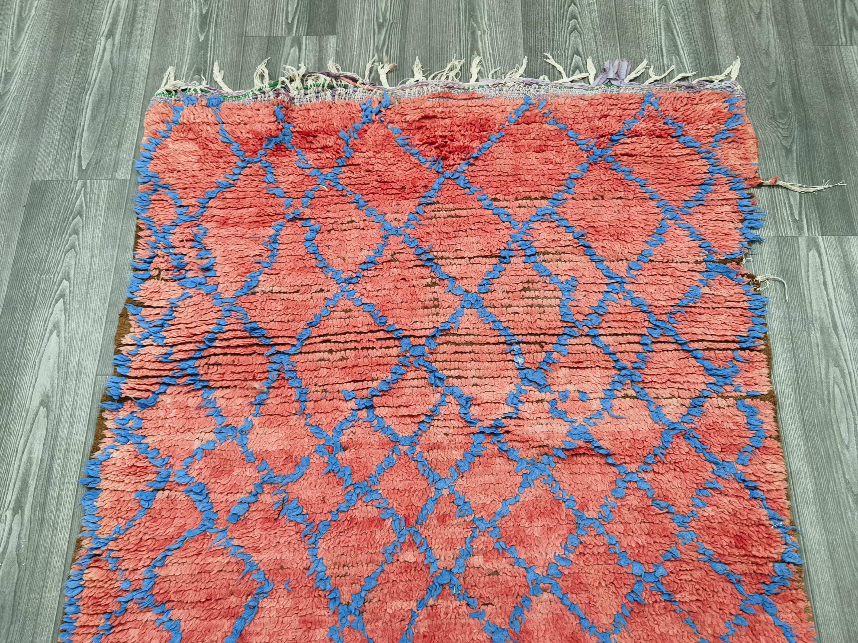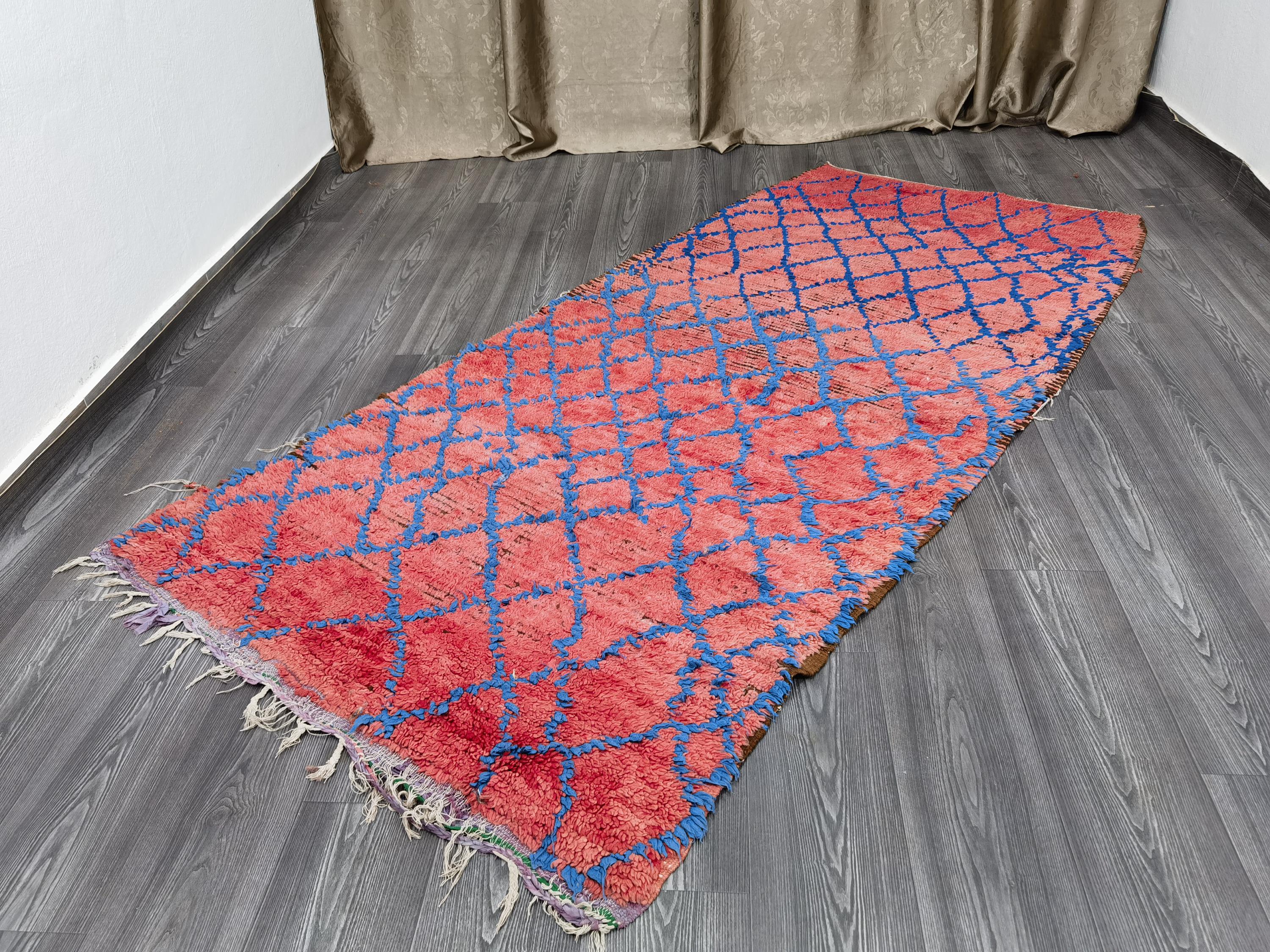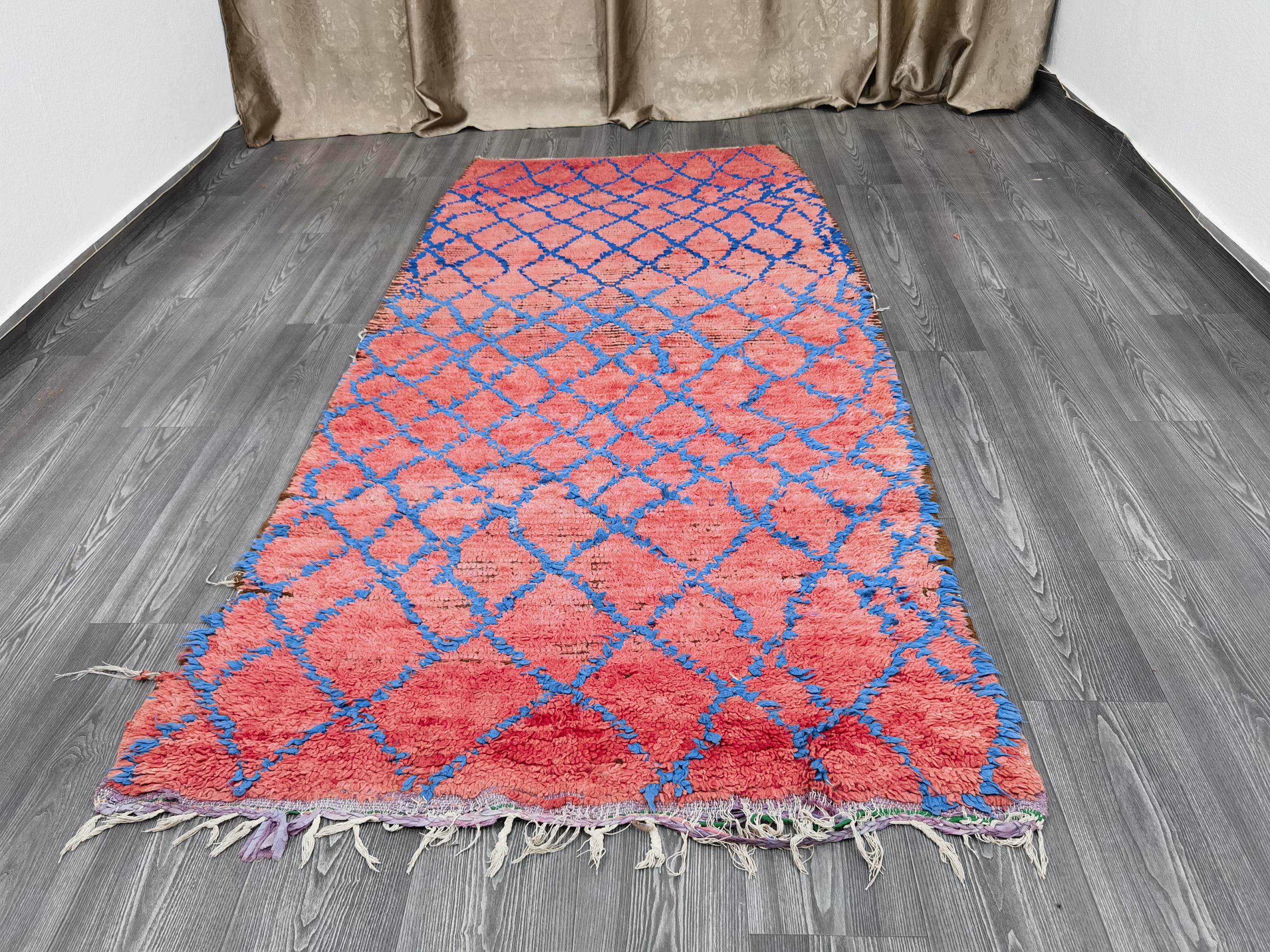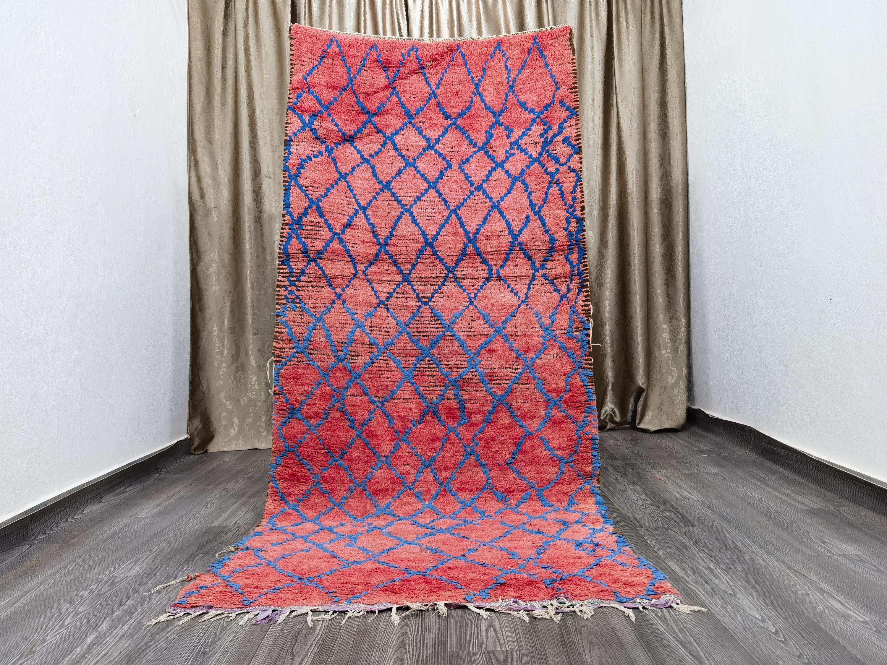 hallway runner rug moroccan in blue, red, boujaad Runner rug, narrow narrow rug, Colorful Berber Runner Rug .
