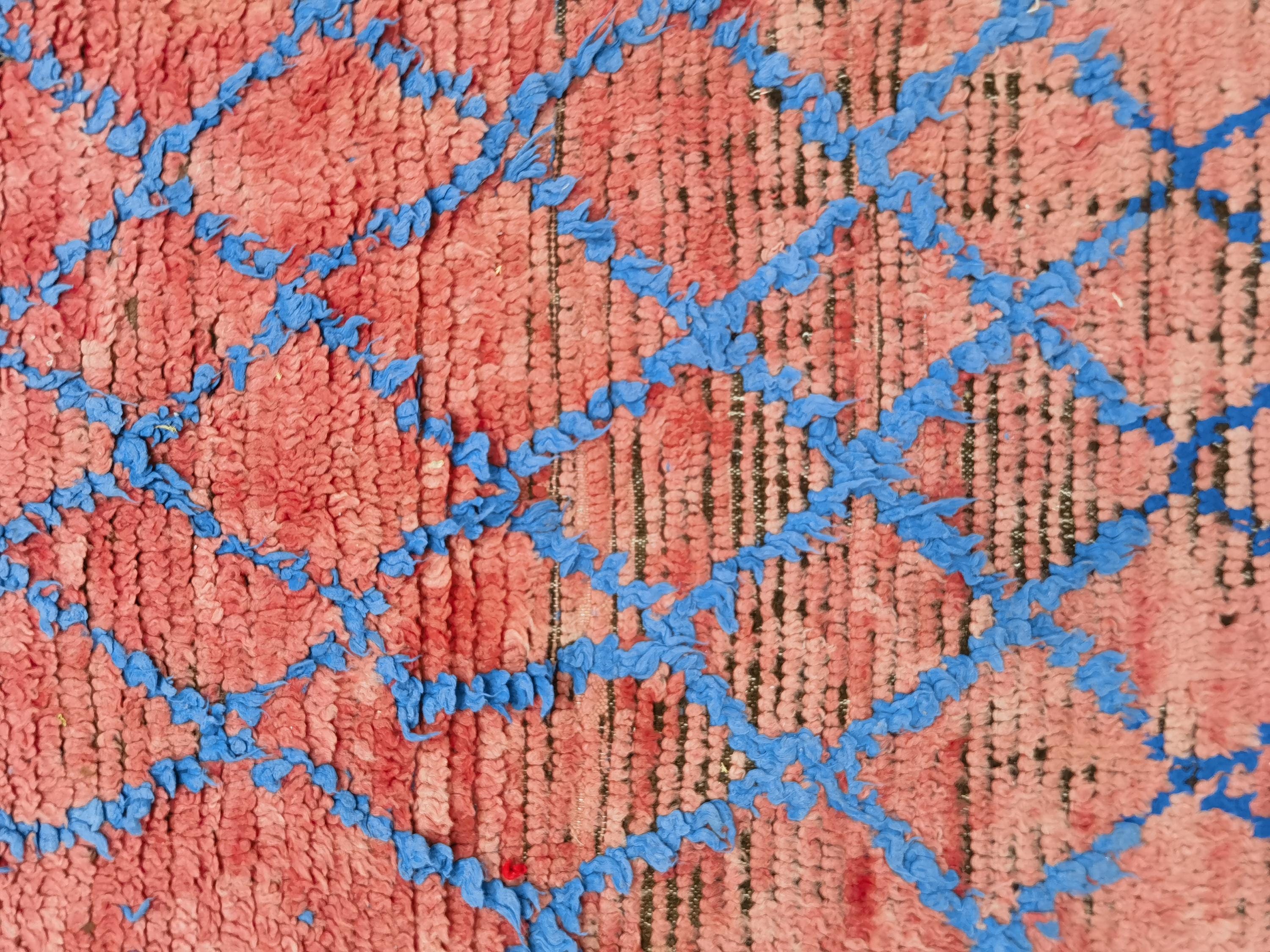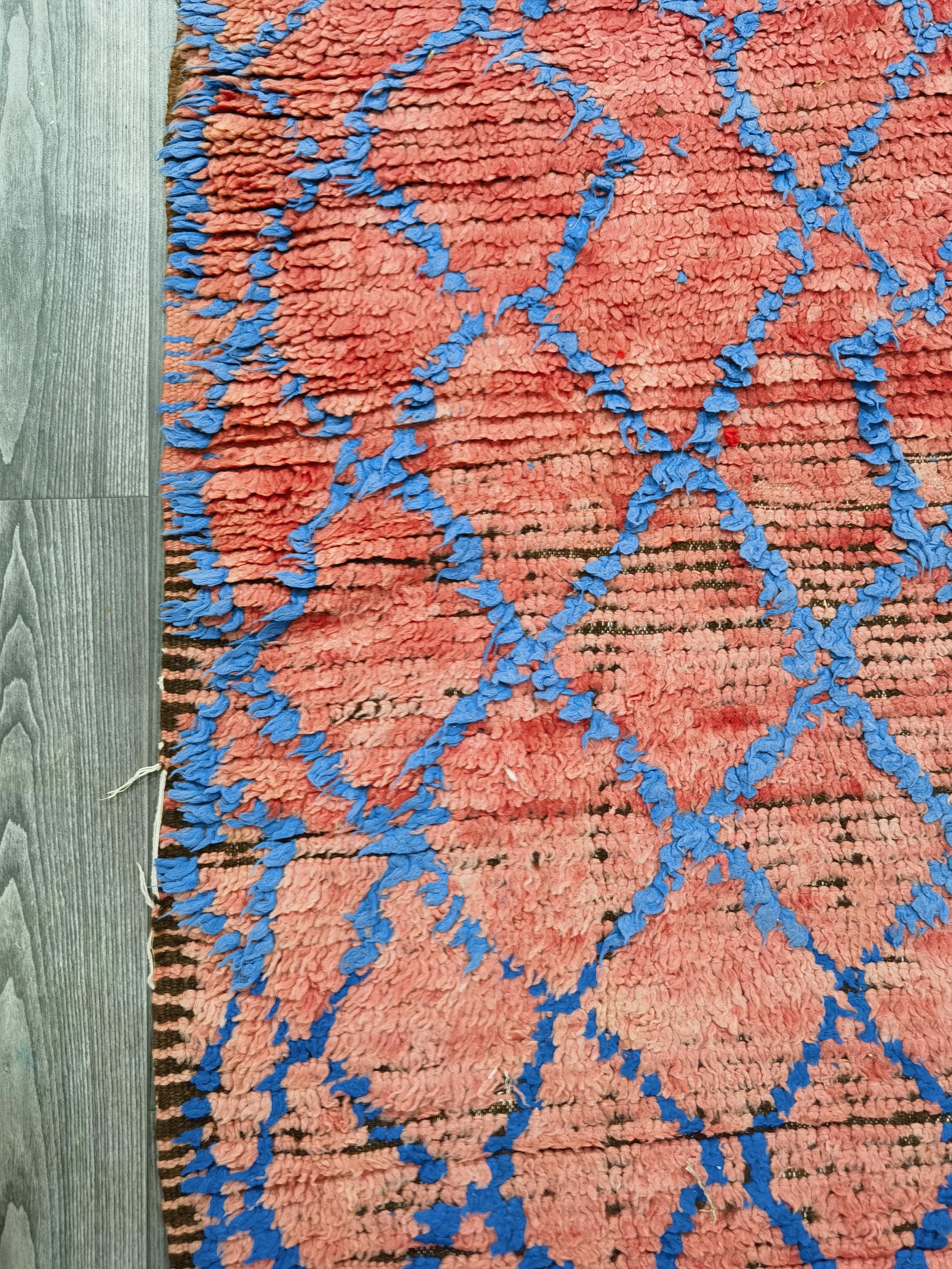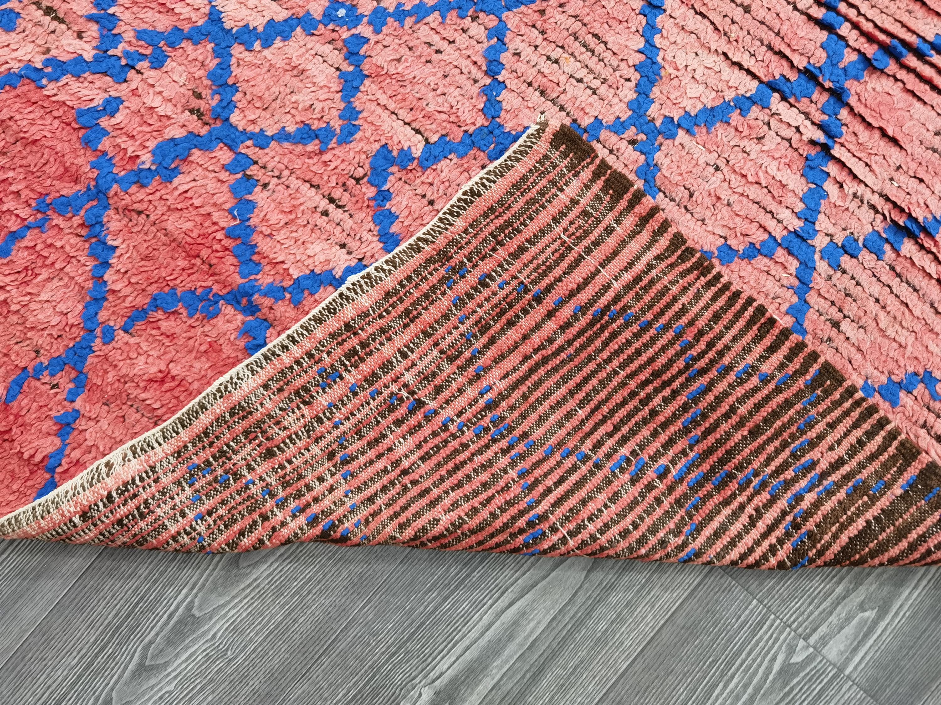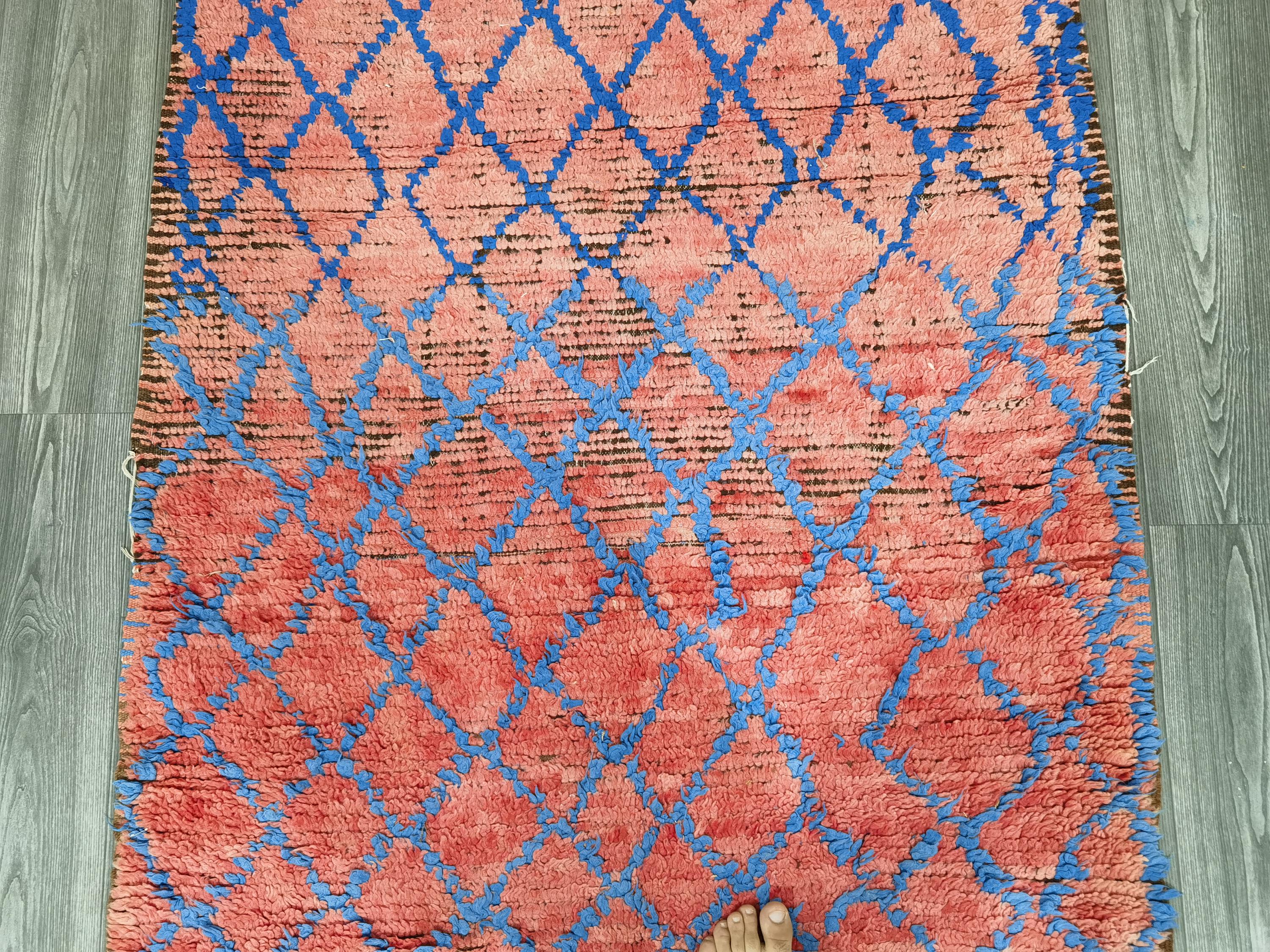 hallway runner rug moroccan in blue, red, boujaad Runner rug, narrow narrow rug, Colorful Berber Runner Rug .