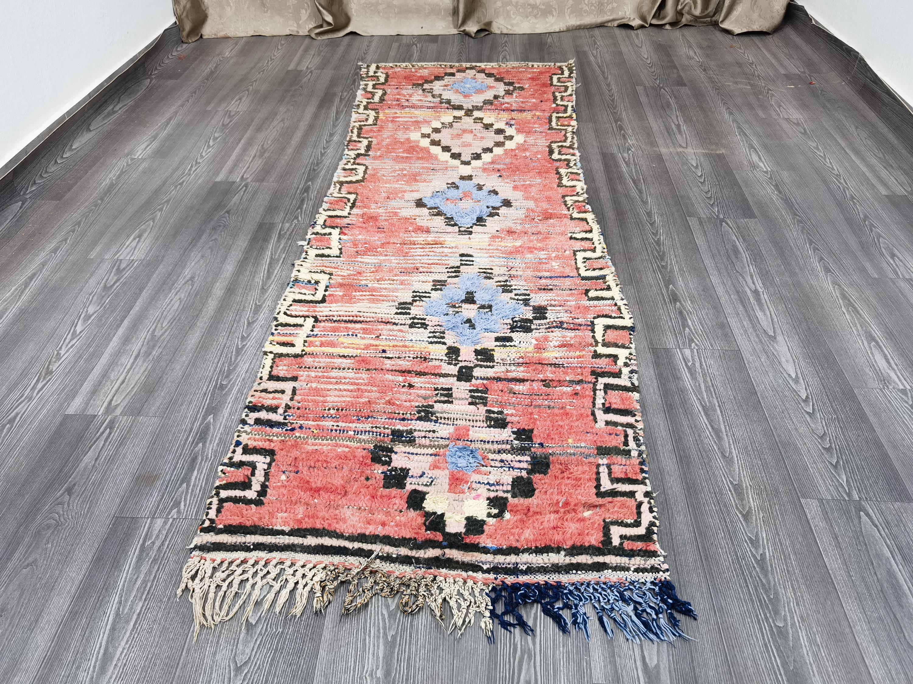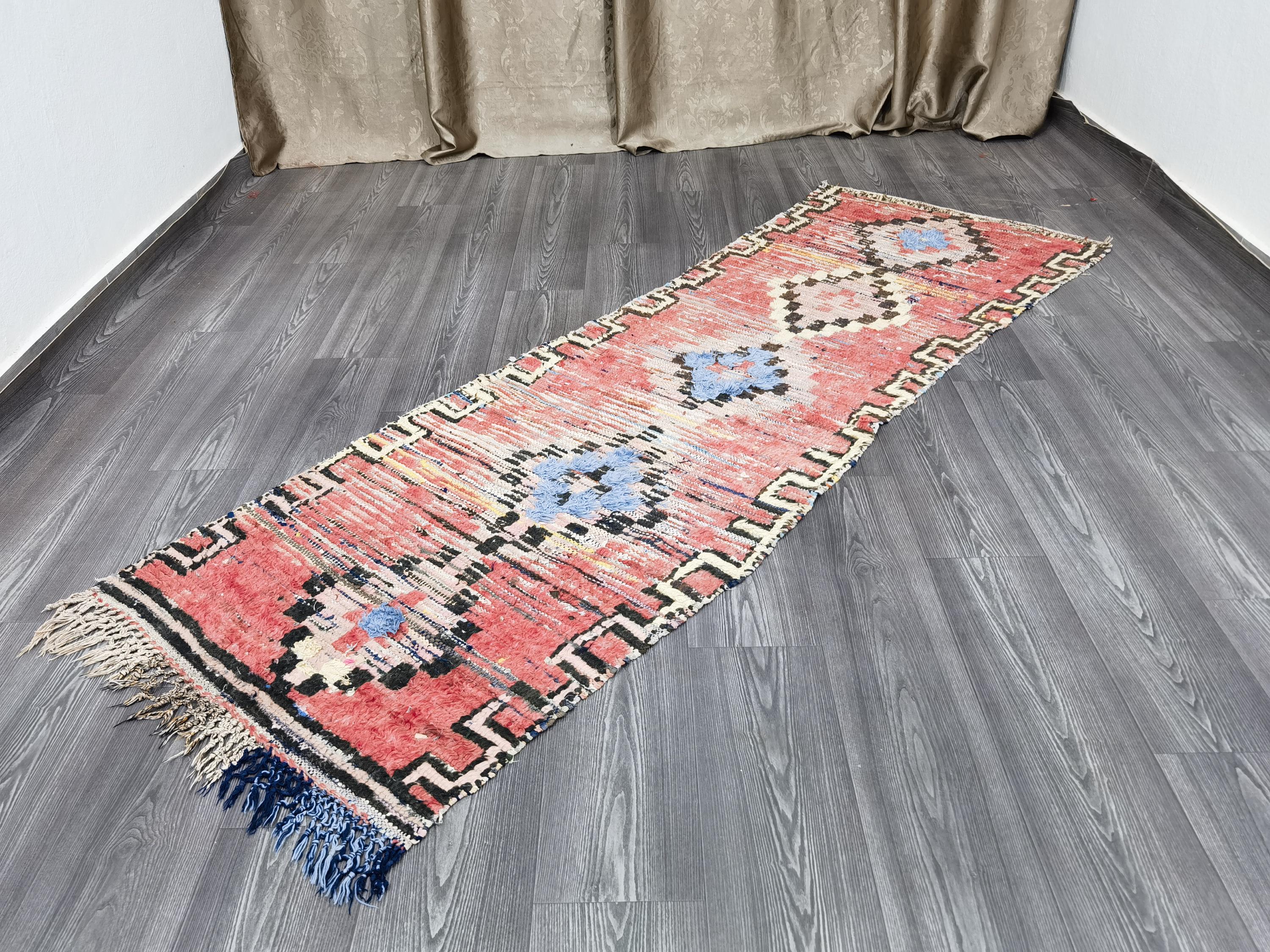 Red Moroccan Runner Rug, Moroccan Handmade Runner Rug, Authentic Moroccan Rug, Traditional Rug, Boho Rug 2.5x9.2 Ft 75 X 280 cm .