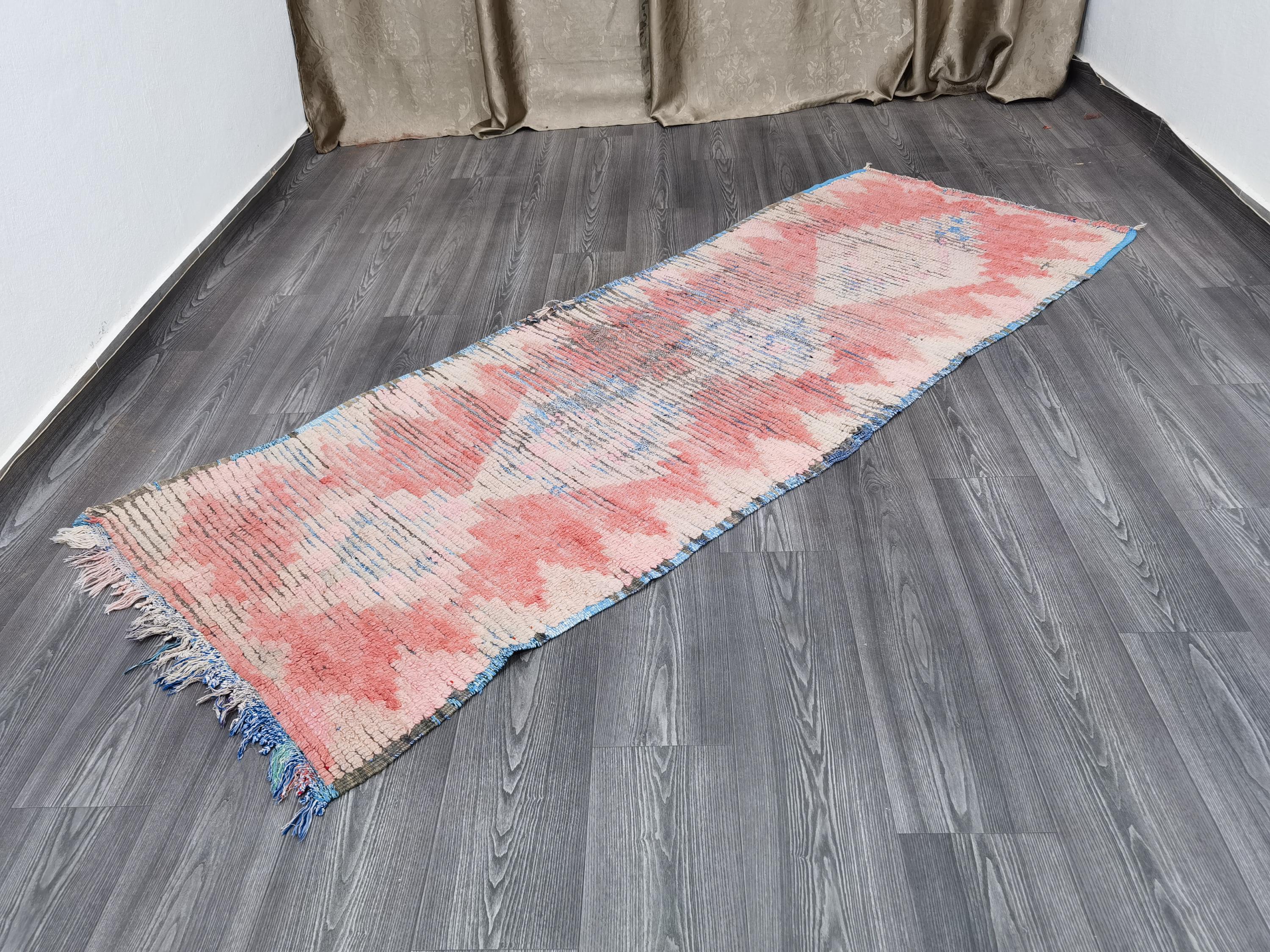 Boujaad runner rug - Colorful rug runner - Berber bedroom rug - Moroccan hallway rug - Red berber runner - Runner Red 3x7.9 / 90x242 cm