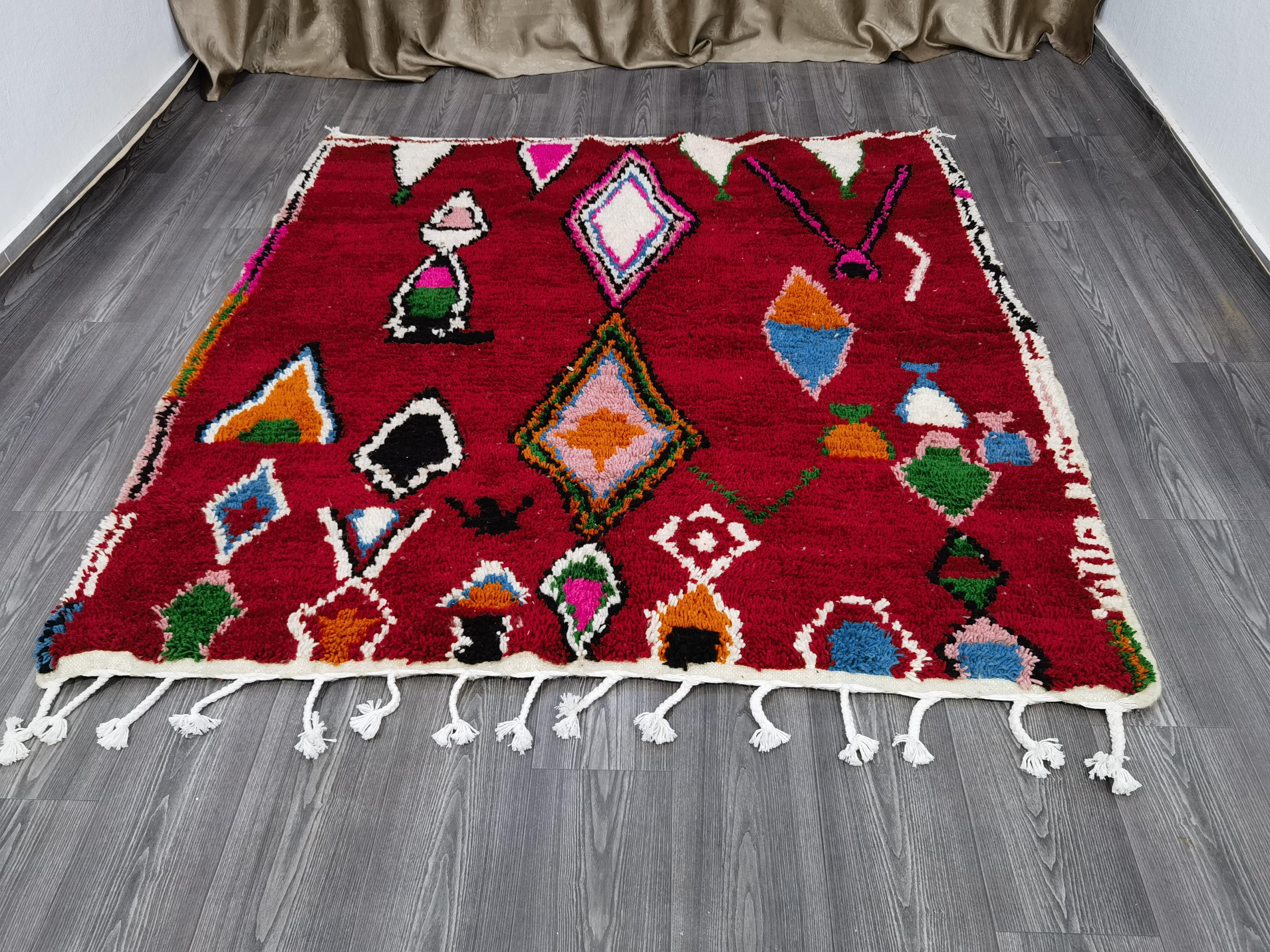 Boujaad Moroccan Rug 5.8x5.7 Ft, Colorful Wool Rug, Rugs For Living Room, Rugs For Bedroom, Moroccan Decor, Moroccan Shag Rug, Bohemian Rug
