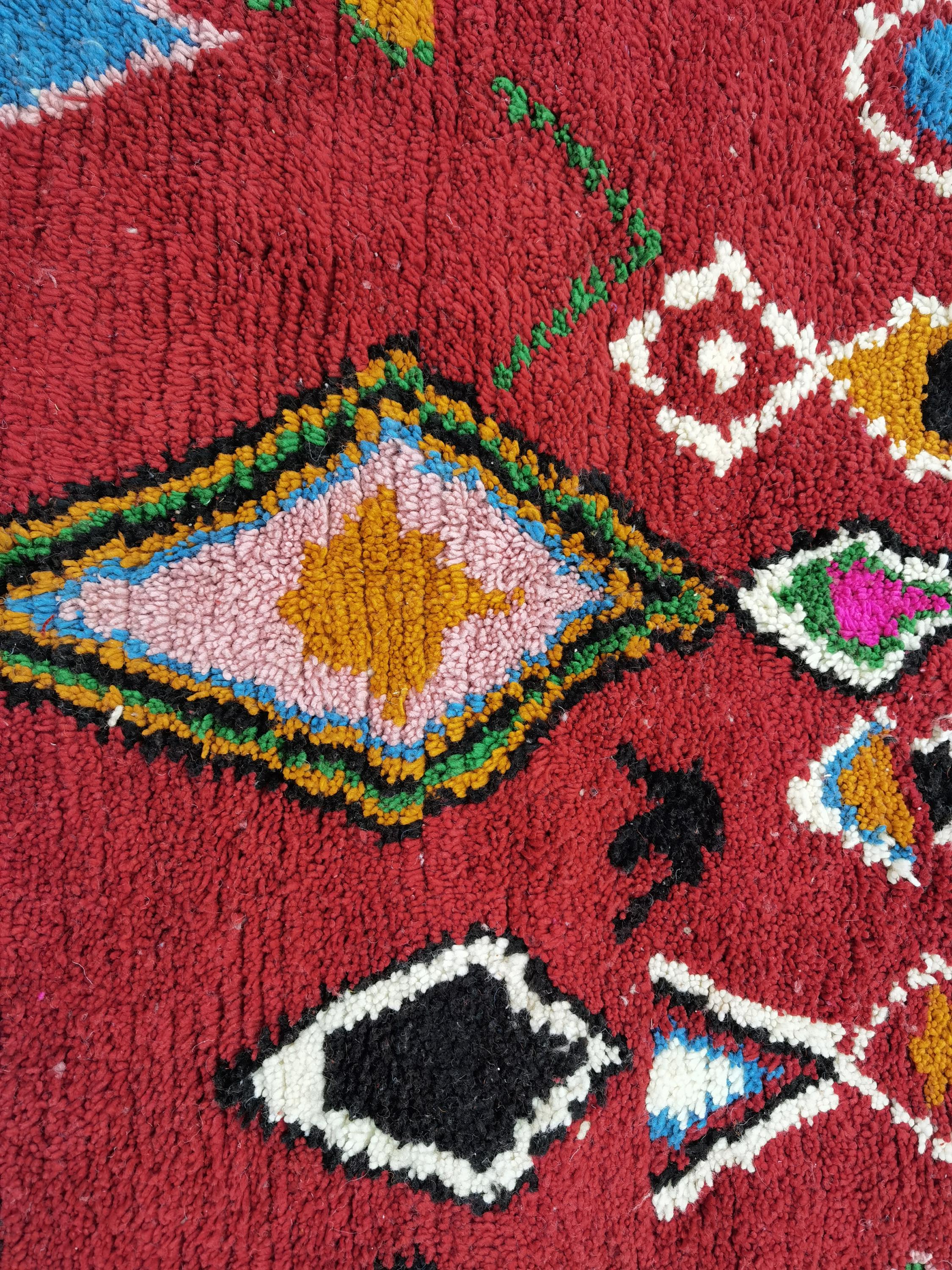 Boujaad is a vibrant and colorful wool rug that will add life to any room in your home. Made from 100% wool, this rug is perfect for use in the living room, bedroom, or anywhere you want to add some beautiful Moroccan flair. The soft and fluffy texture makes it comfortable to walk on, and the vivid colors will brighten up any space. Whether you're looking for a traditional shag rug or something a little more bohemian, Boujaad is sure to be a hit with your guests.