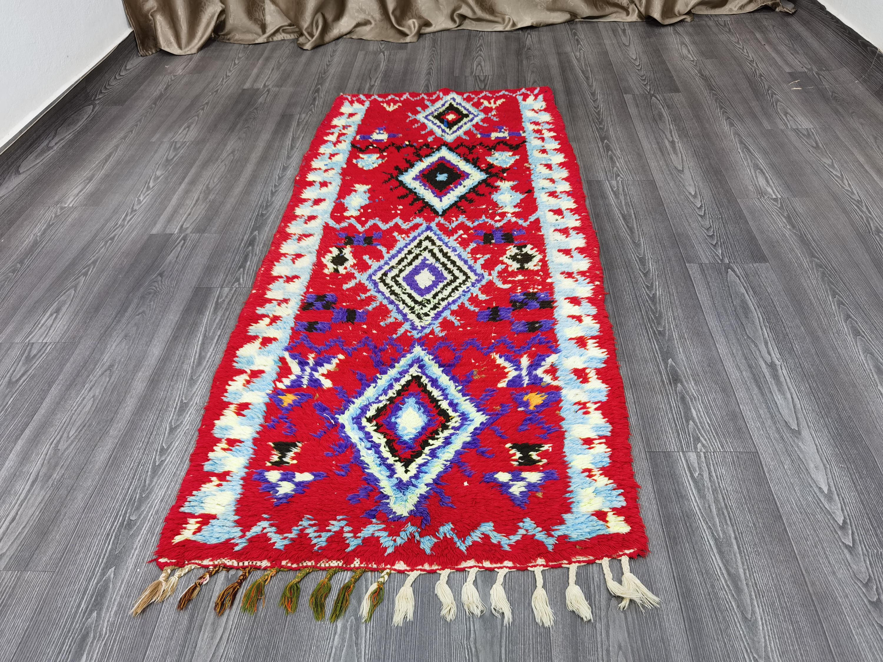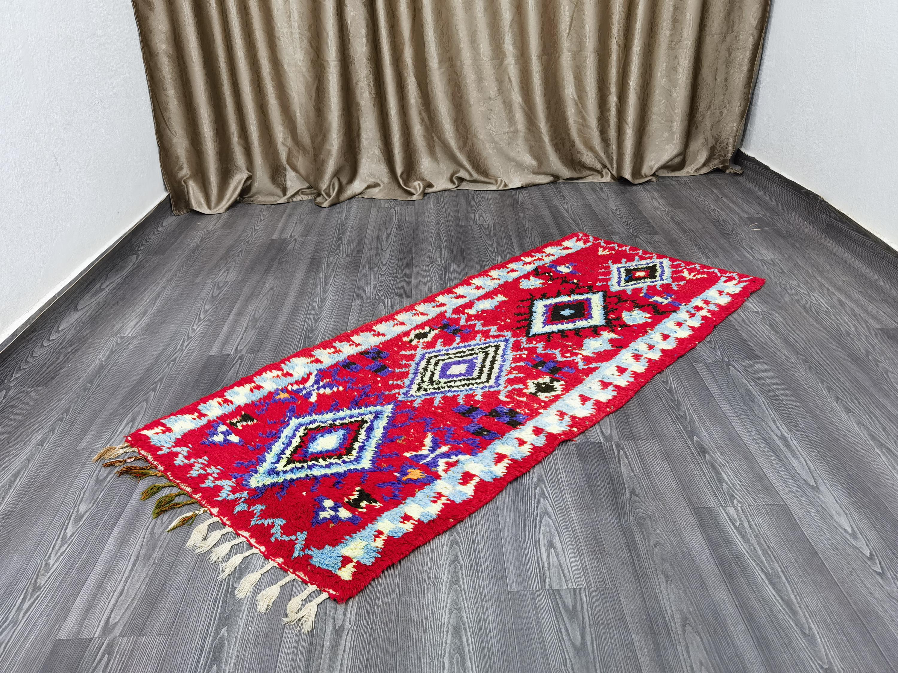 Boujaad Runner 2.7x6.1 Ft - Red Runner Rug - Tribal Runner Rug - Unique Runner Rug - Moroccan Berber Rug, hallway carpet , Teppich berber