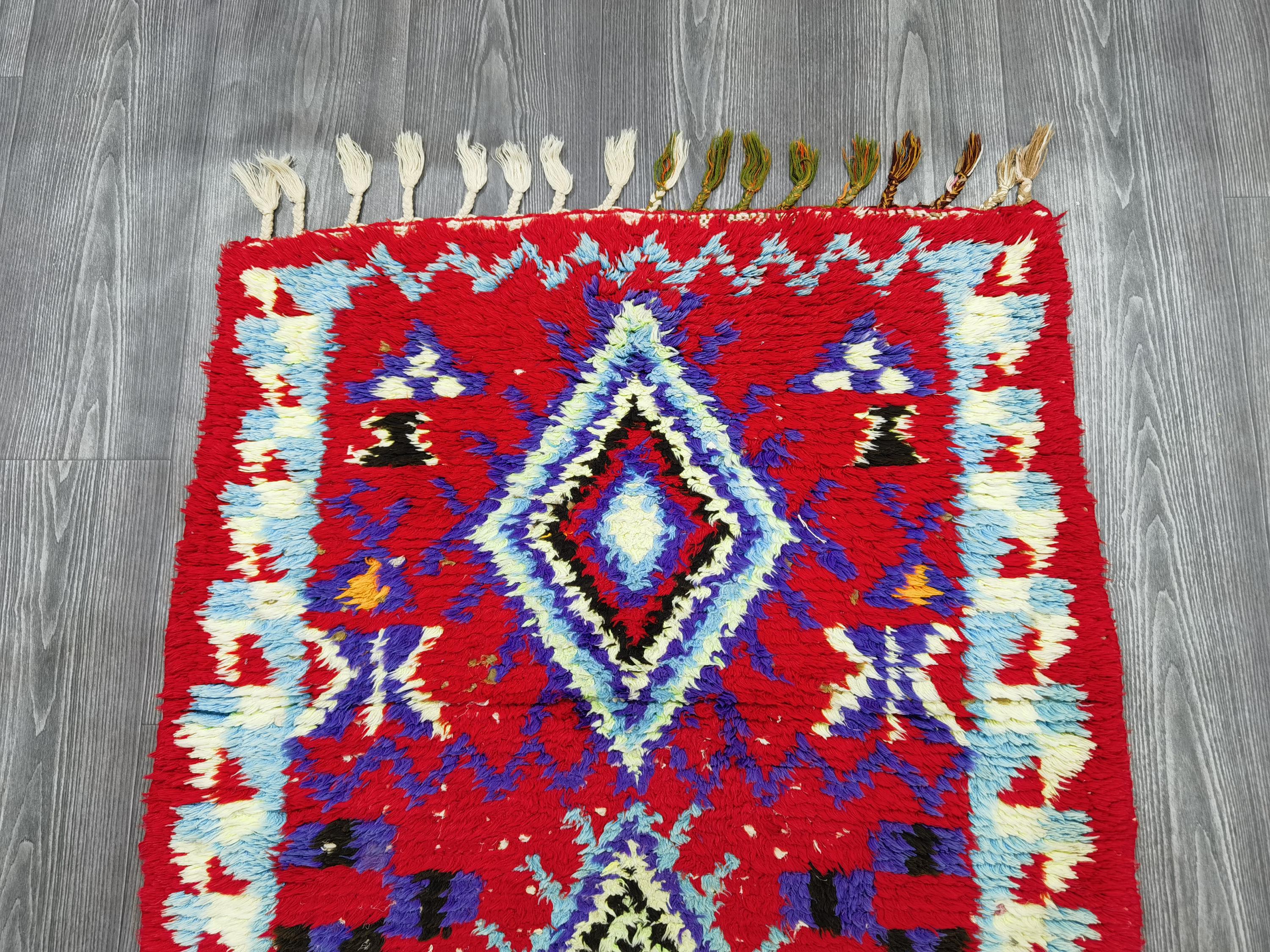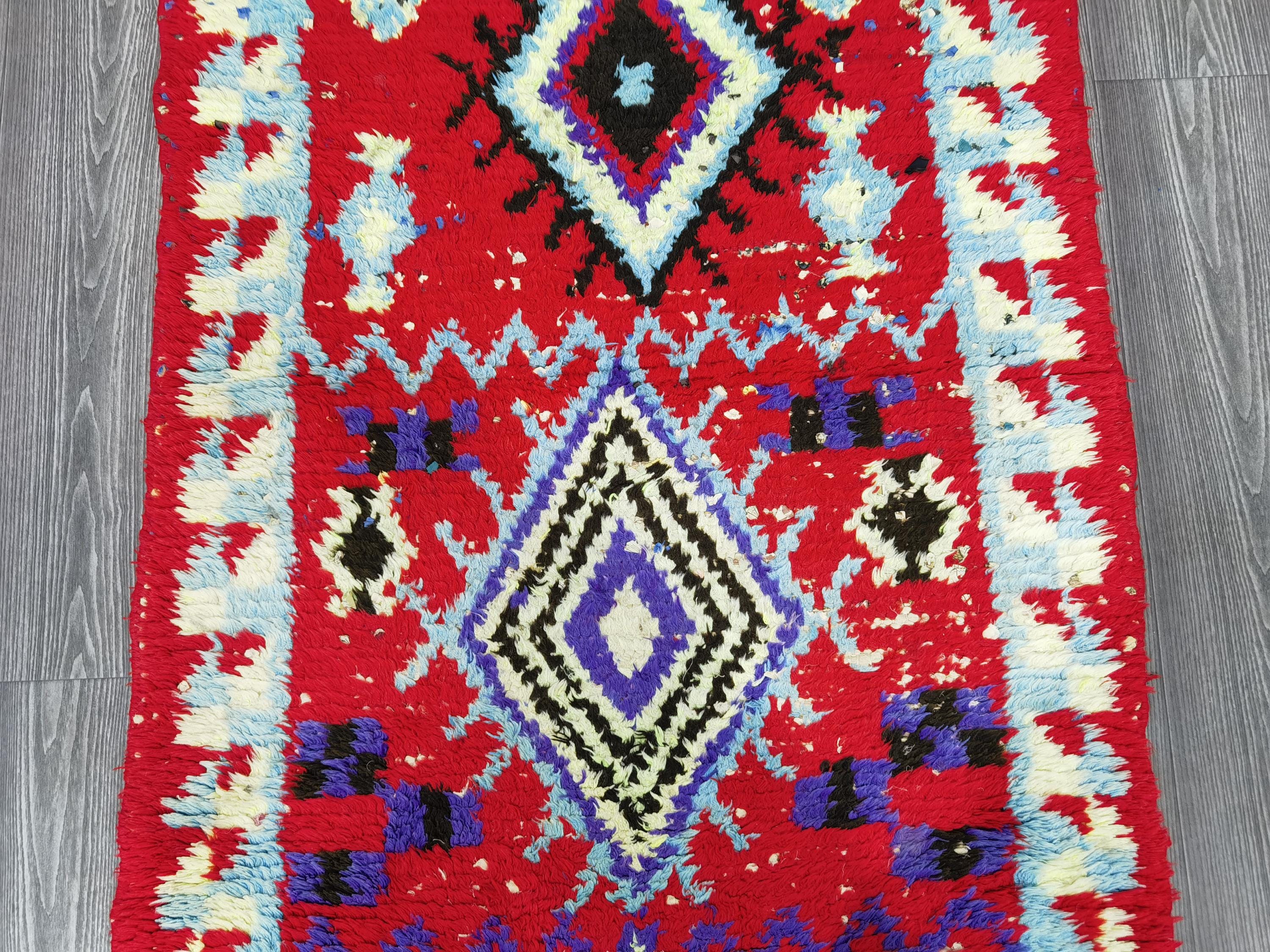 Boujaad is a vibrant and colorful wool runner that will add life to any room in your home. Made from 100% wool, this rug is perfect for use in the living room, bedroom, or anywhere you want to add some beautiful Moroccan flair. The soft and fluffy texture makes it comfortable to walk on, and the vivid colors will brighten up any space. Whether you're looking for a traditional shag rug or something a little more bohemian, Boujaad is sure to be a hit with your guests.