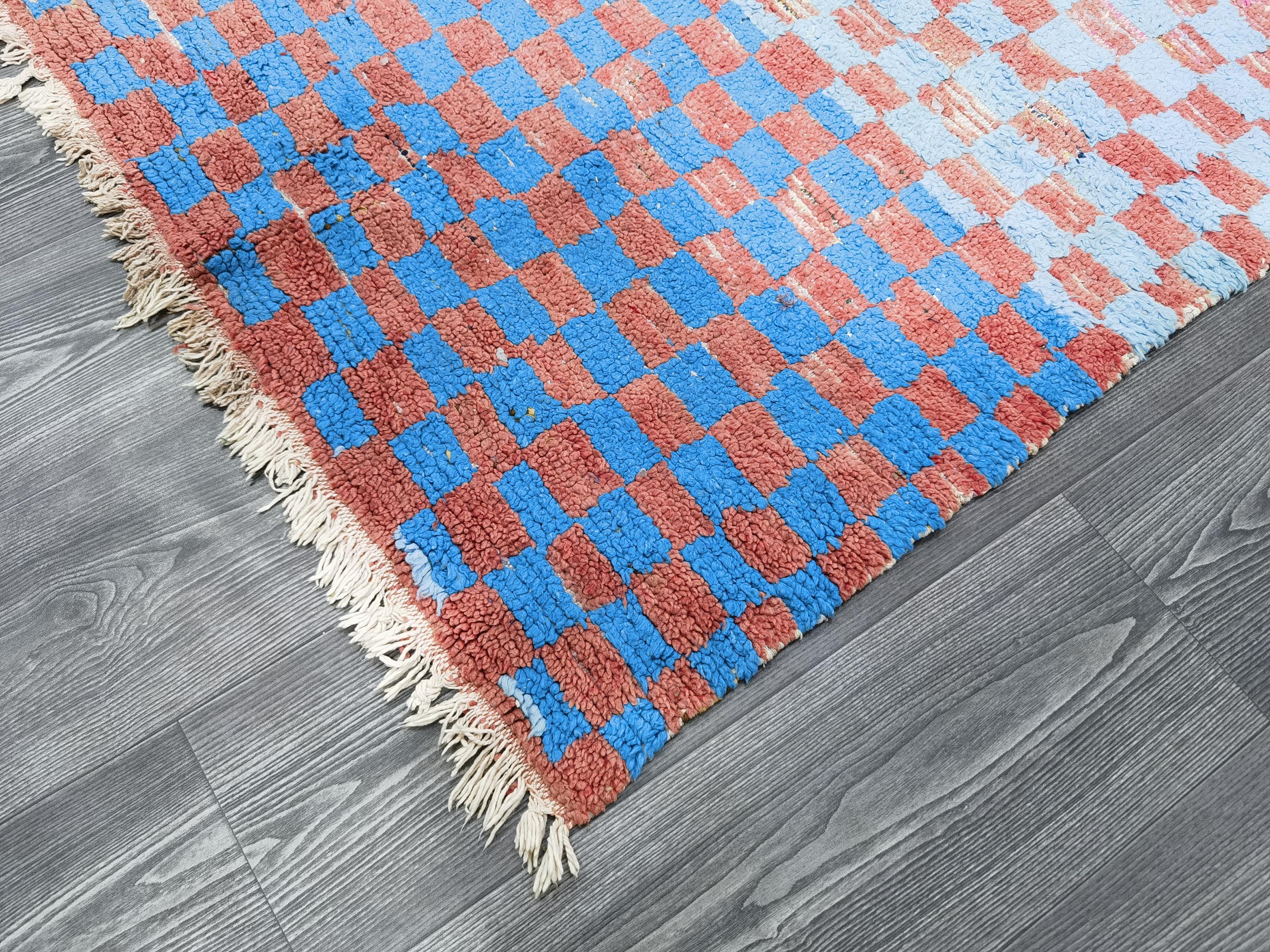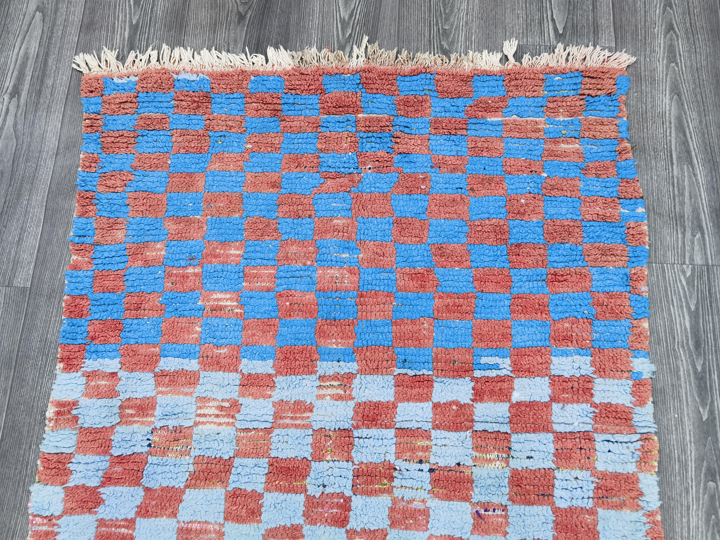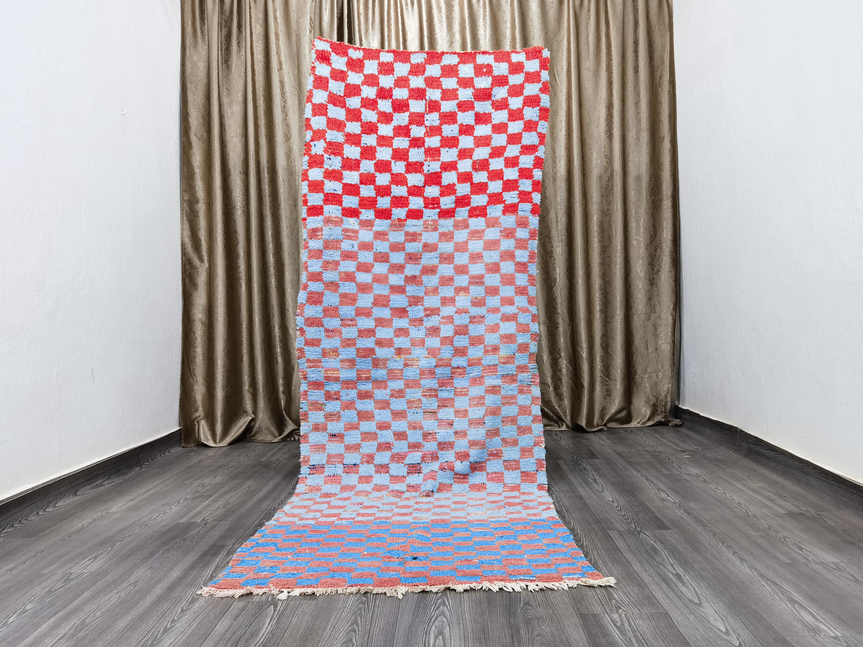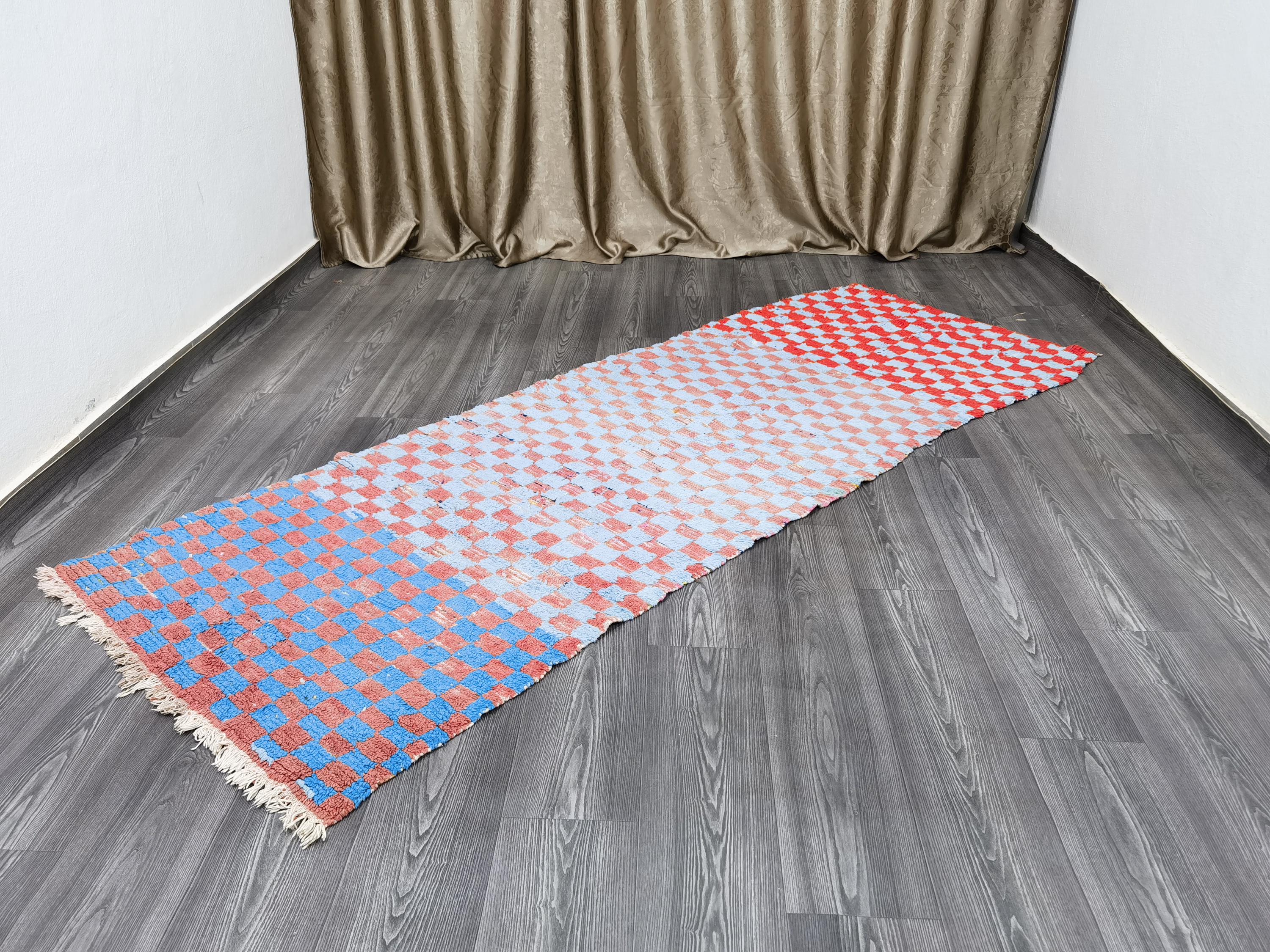 Gorgeous Authentic boujaad runner rug 3.2x8.7 Ft - berber Colorful Runner Rug - Moroccan Runner Rug - checkered runner rug - shaggy wool rug