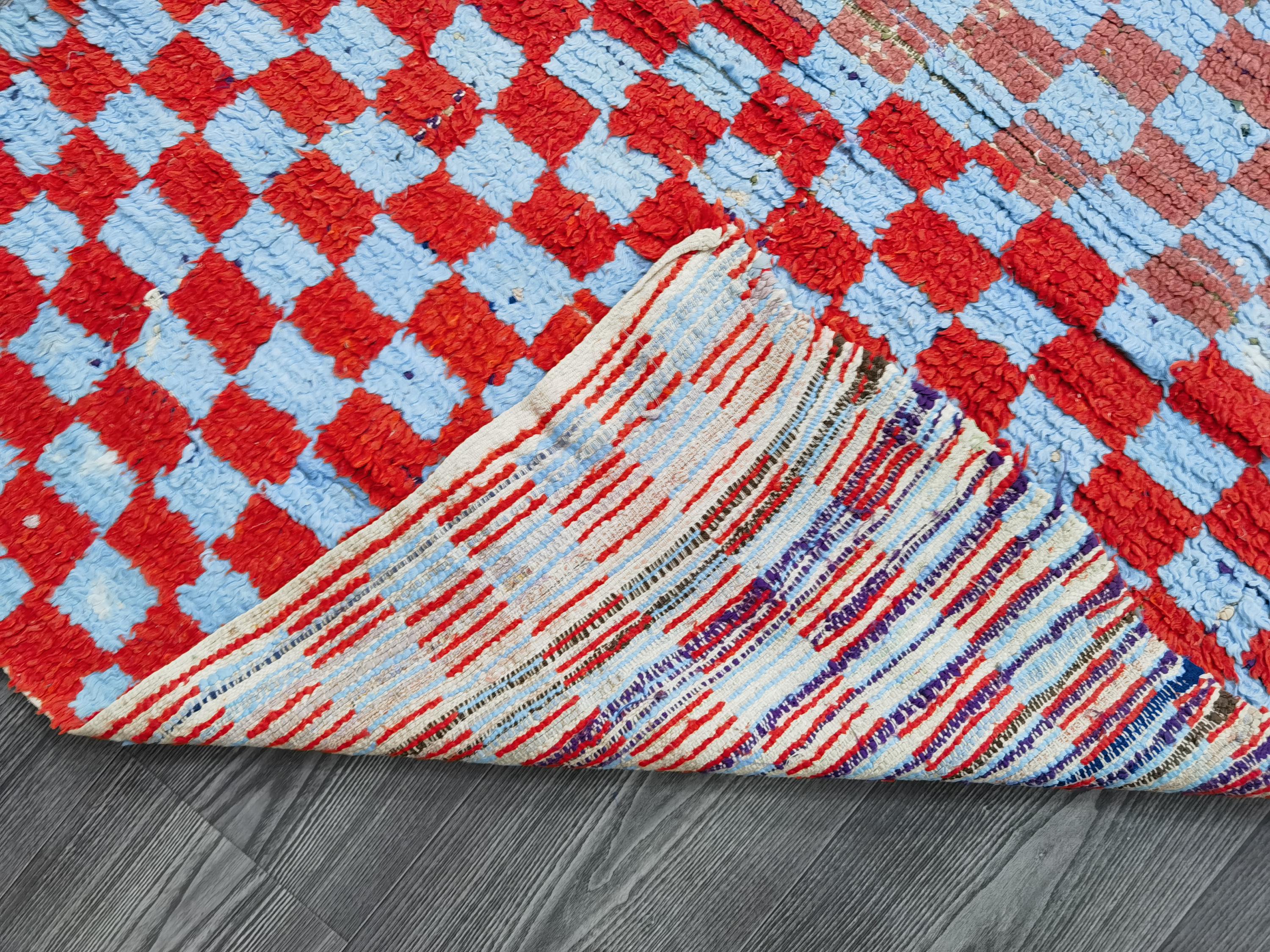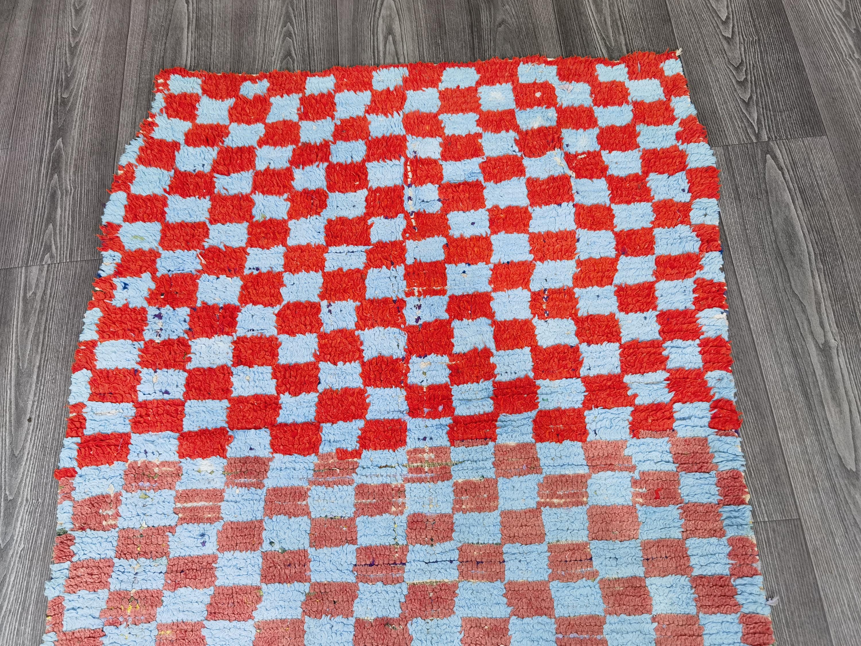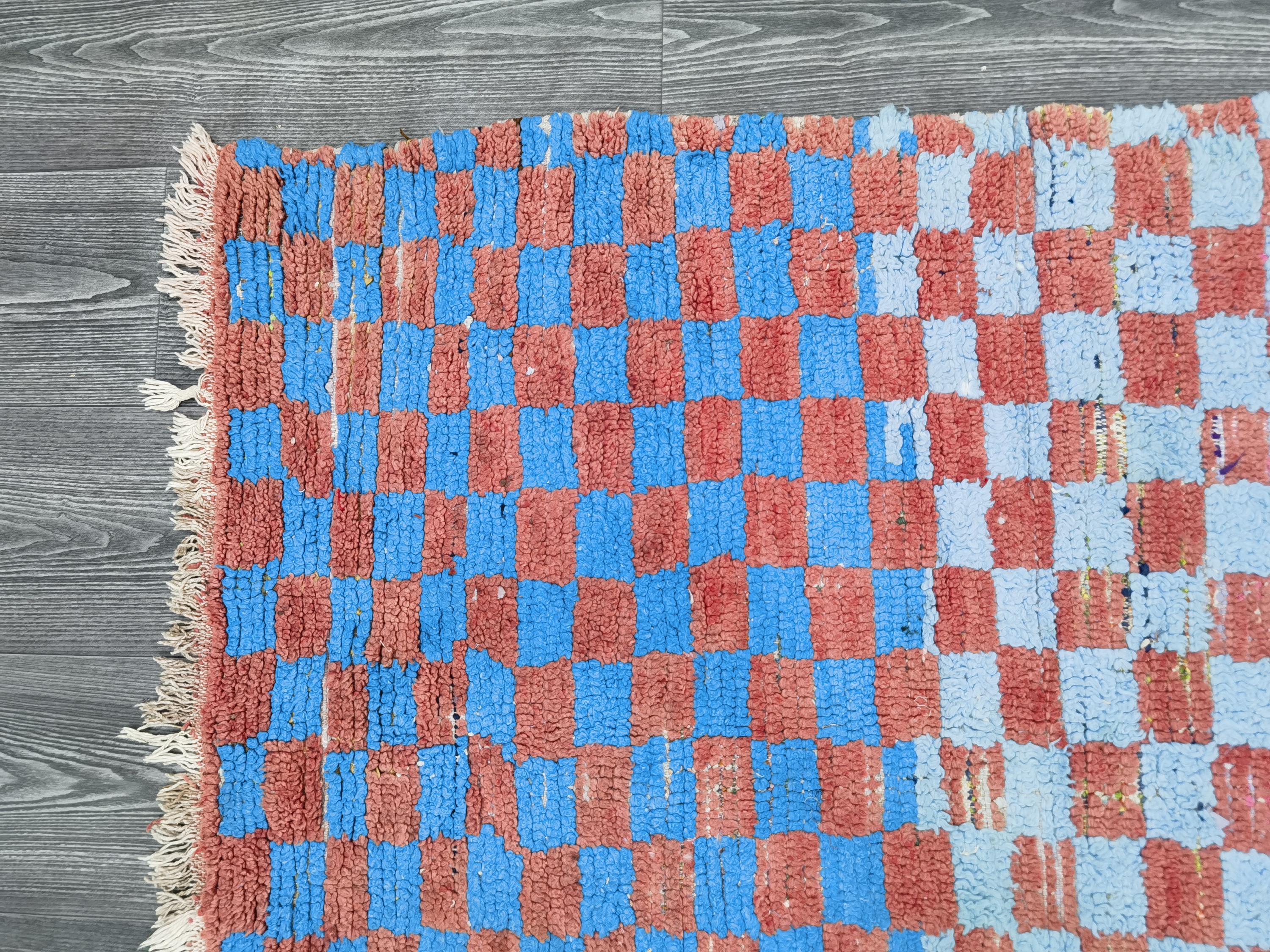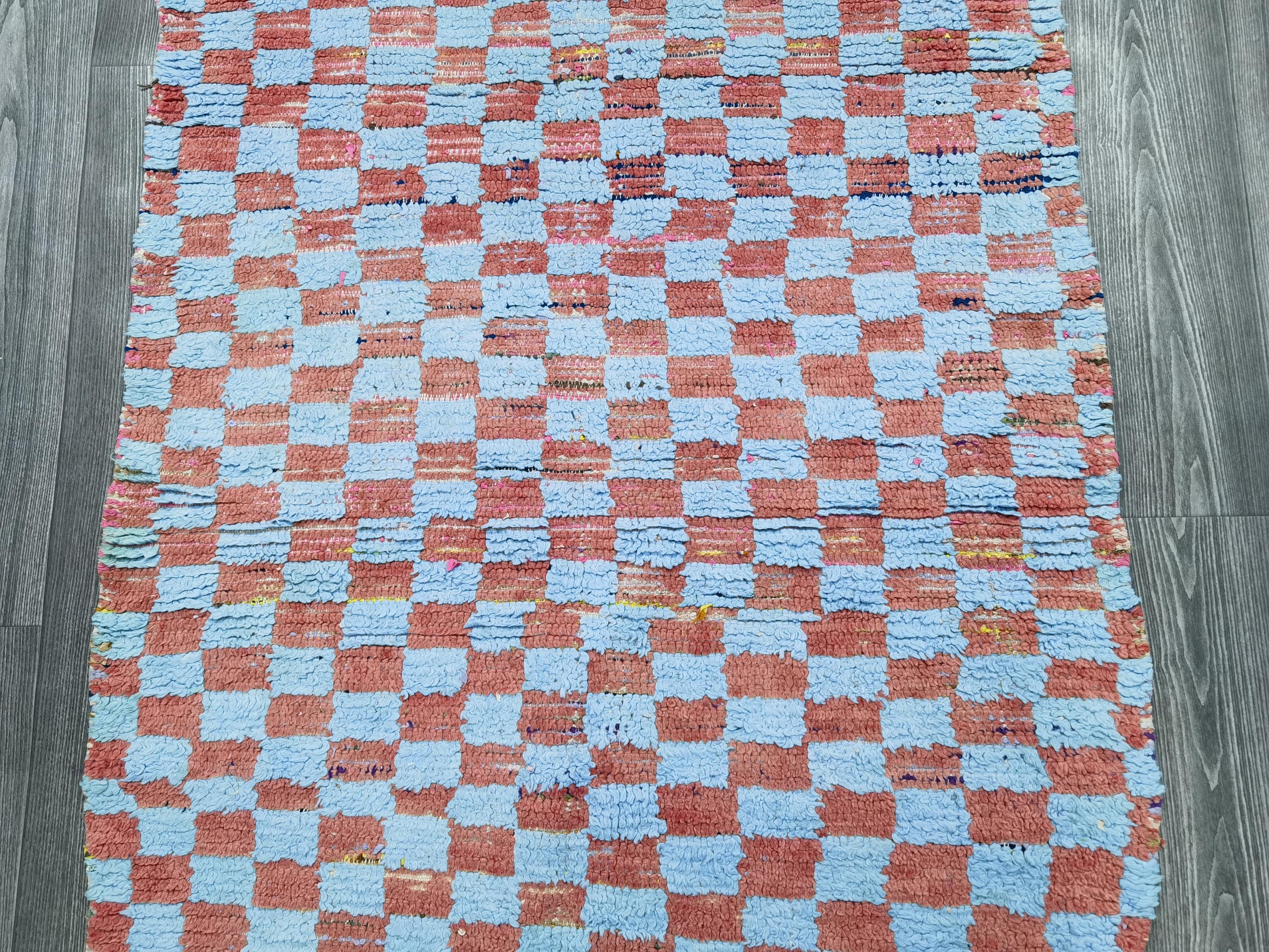 Gorgeous Authentic boujaad runner rug 3.2x8.7 Ft - berber Colorful Runner Rug - Moroccan Runner Rug - checkered runner rug - shaggy wool rug