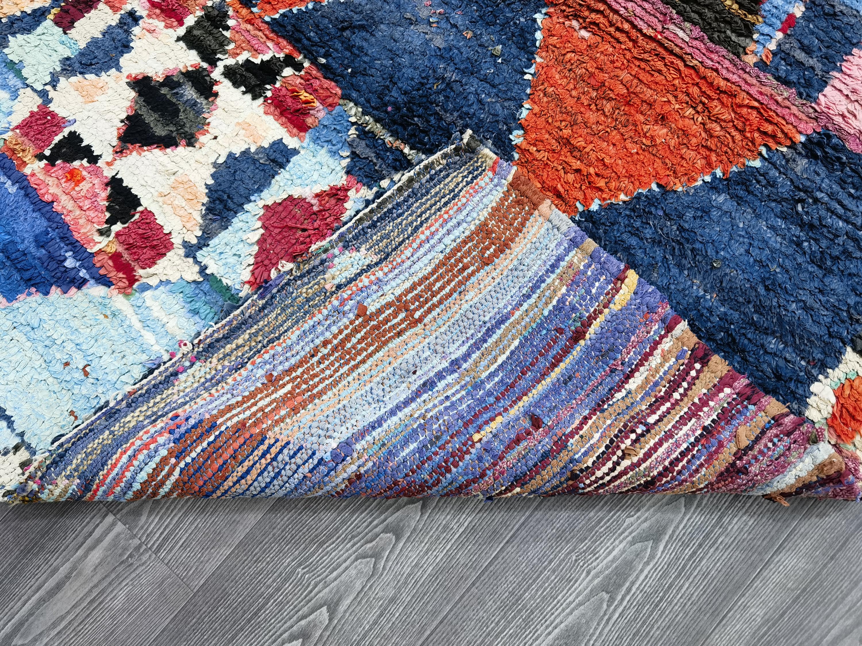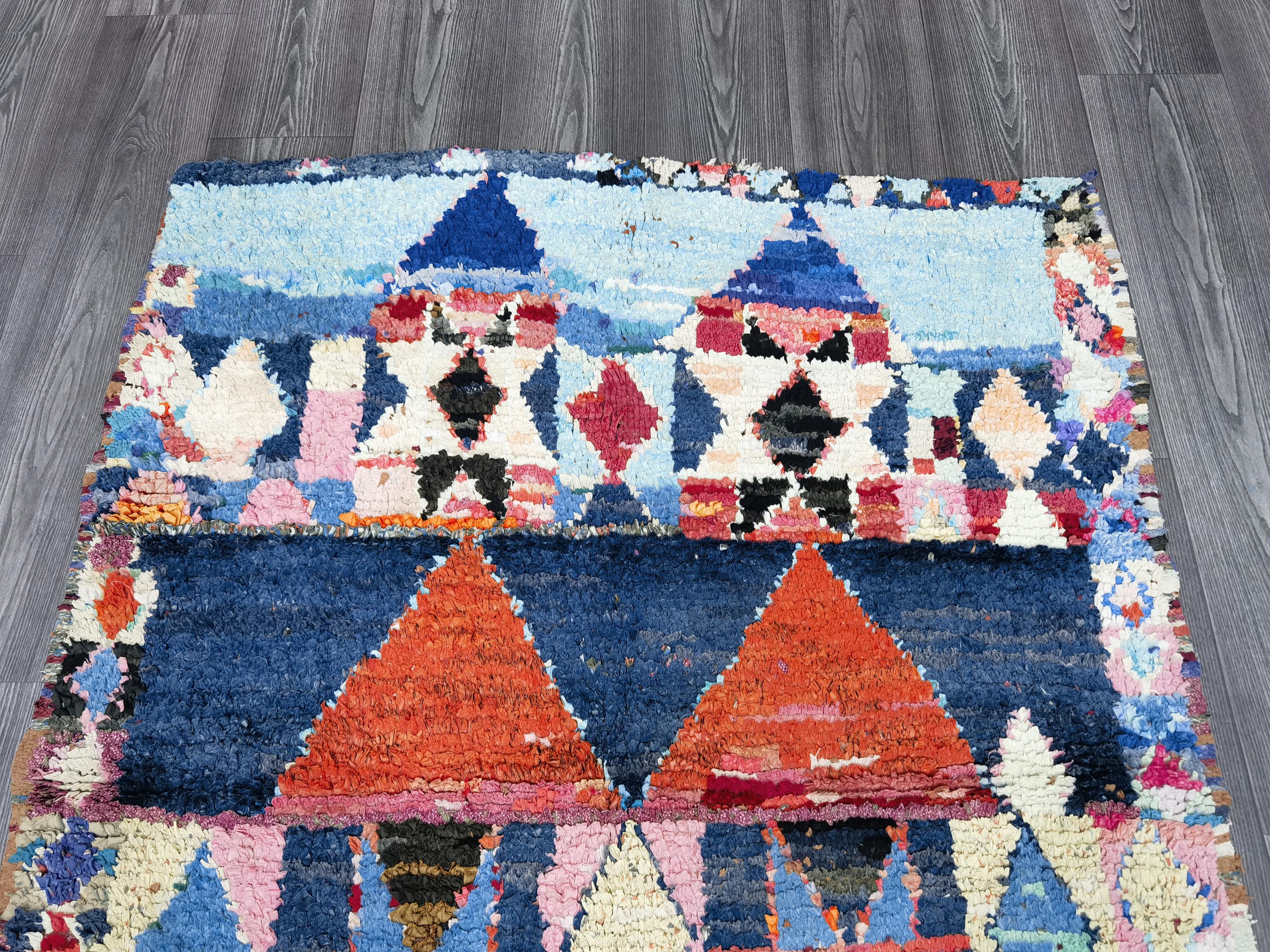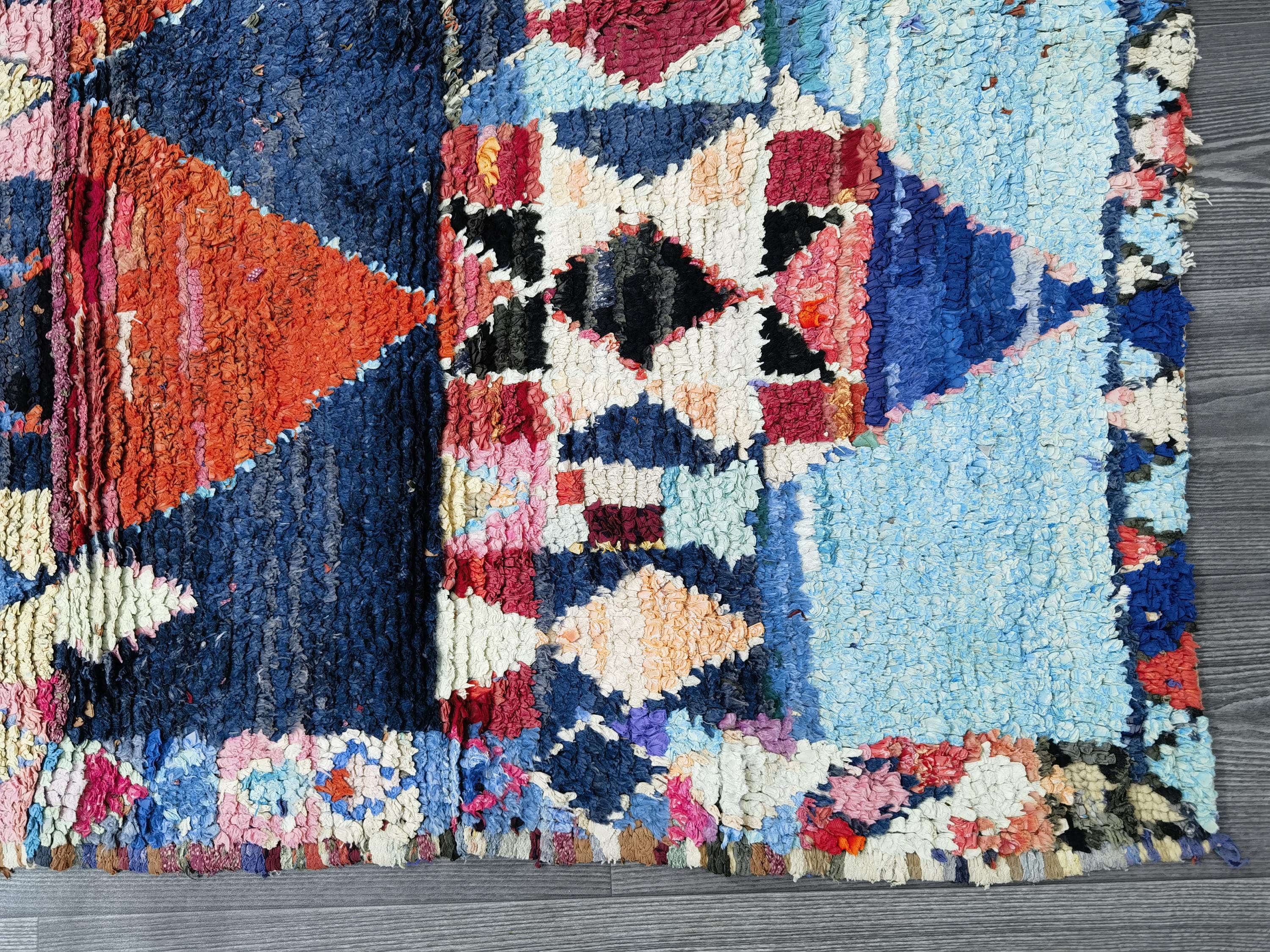 3.9x5.4 Ft Boujaad Rug - Blue Runner Rug - Unique Runner Rug - Moroccan Berber Rug - Blue Hallway Runner Rug - Boucherouite Rug