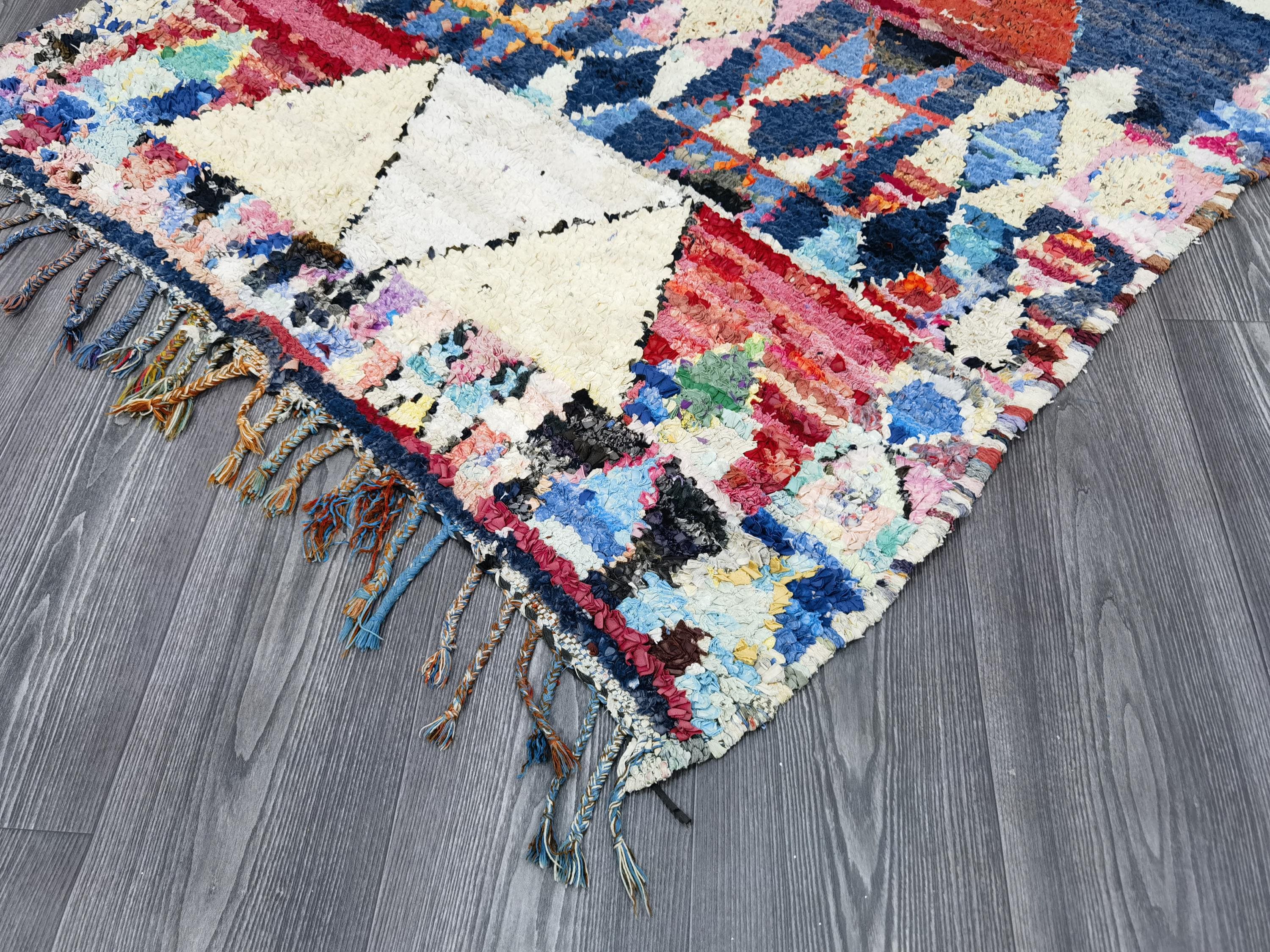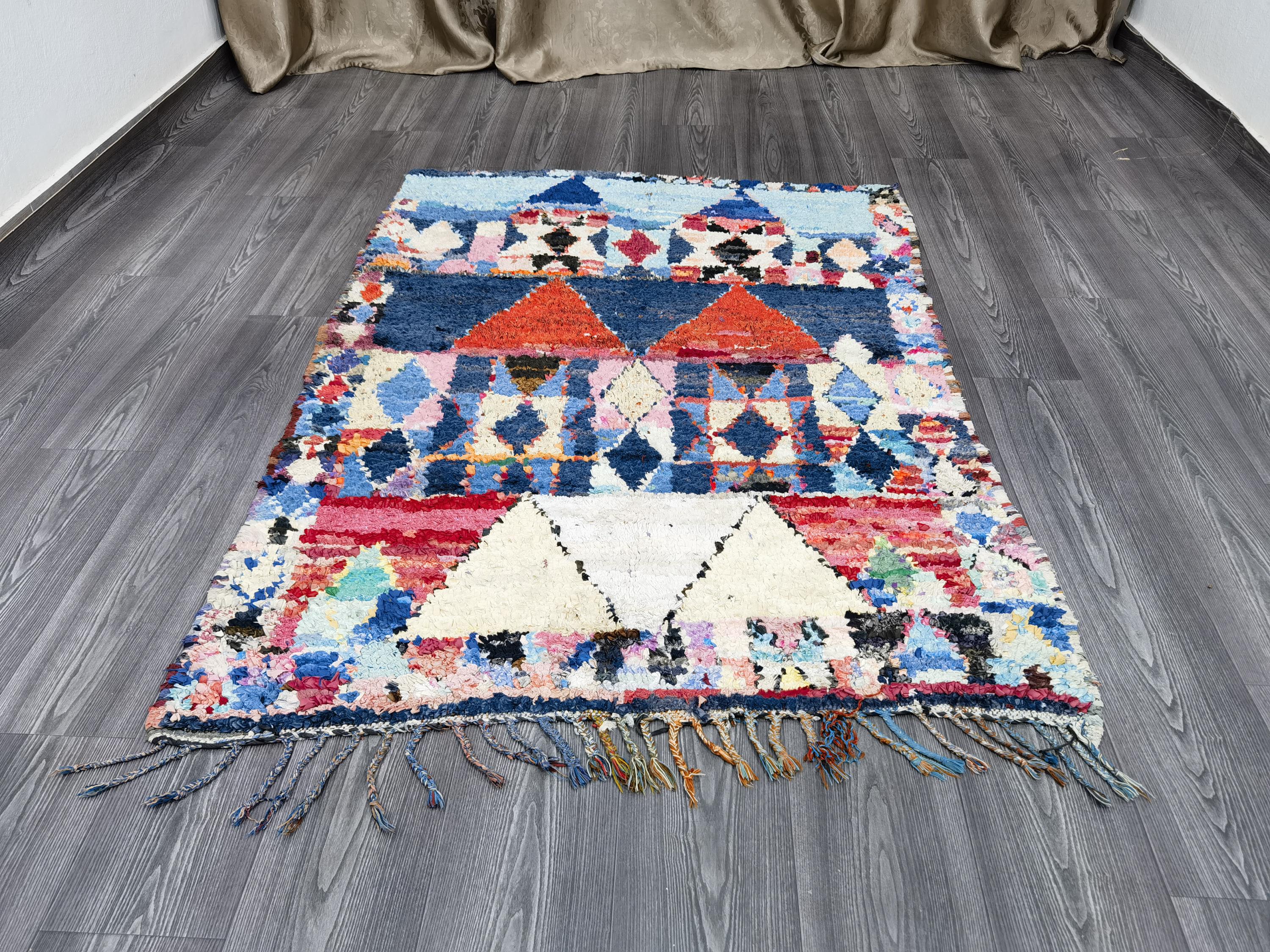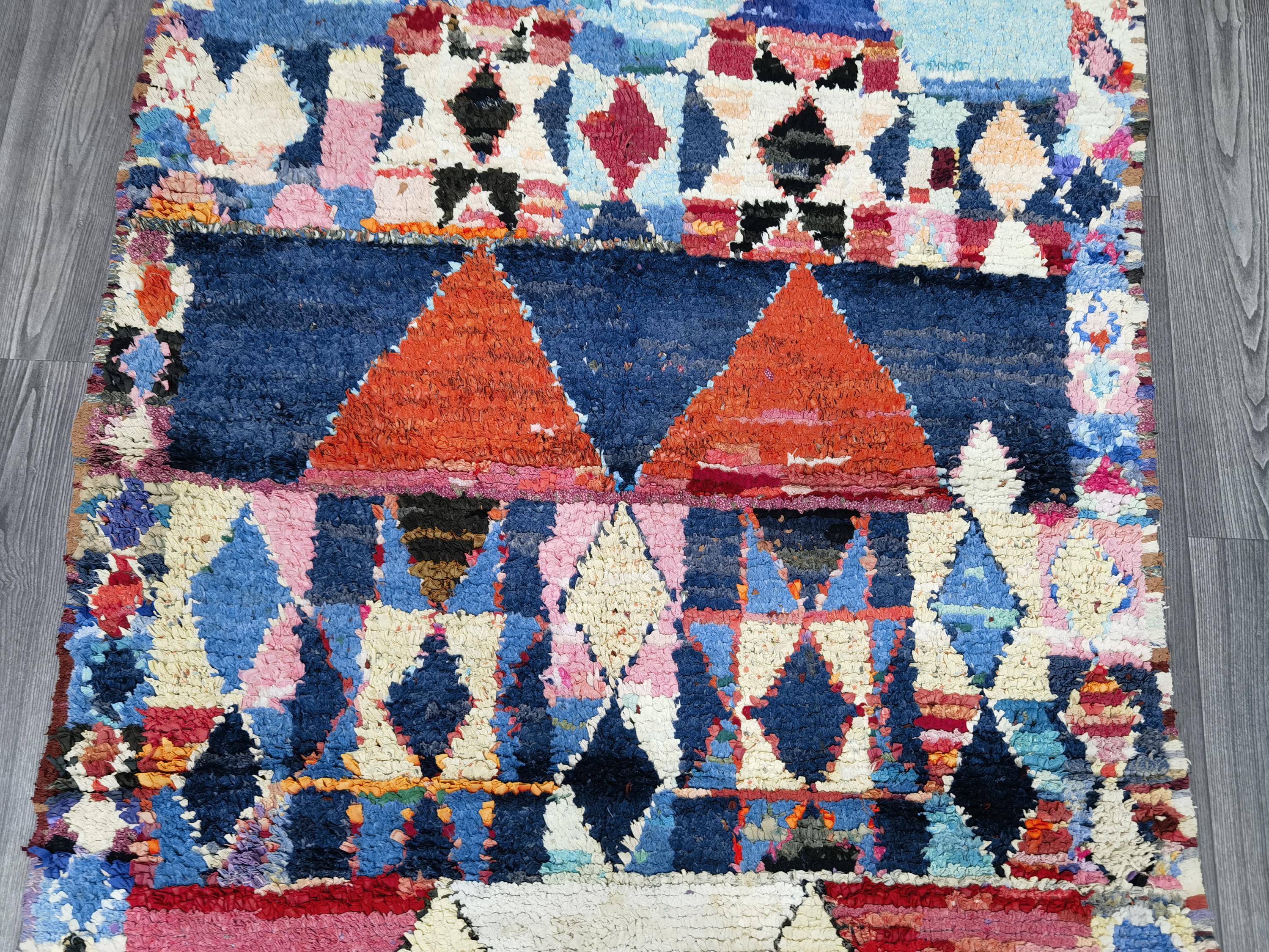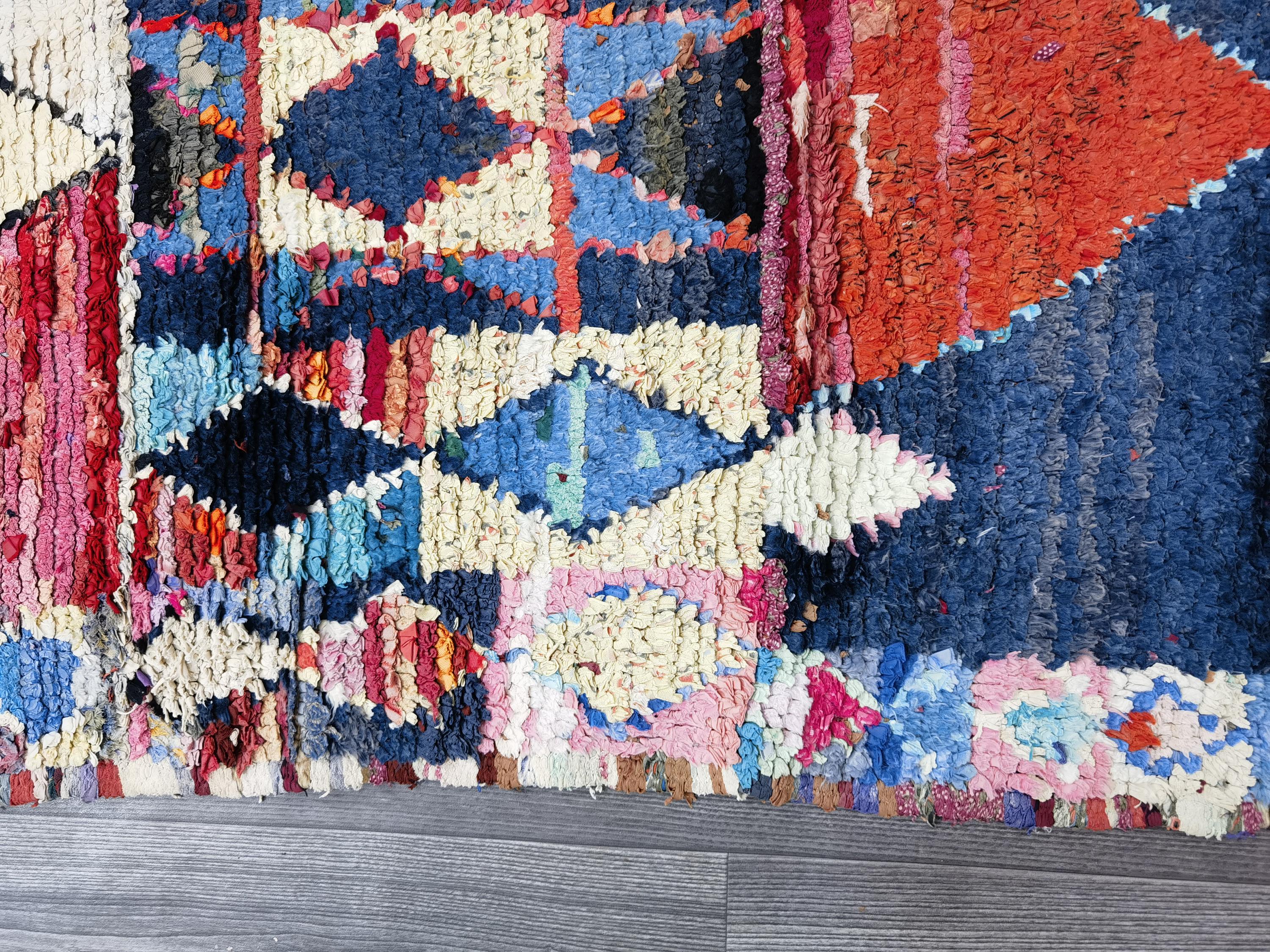 3.9x5.4 Ft Boujaad Rug - Blue Runner Rug - Unique Runner Rug - Moroccan Berber Rug - Blue Hallway Runner Rug - Boucherouite Rug