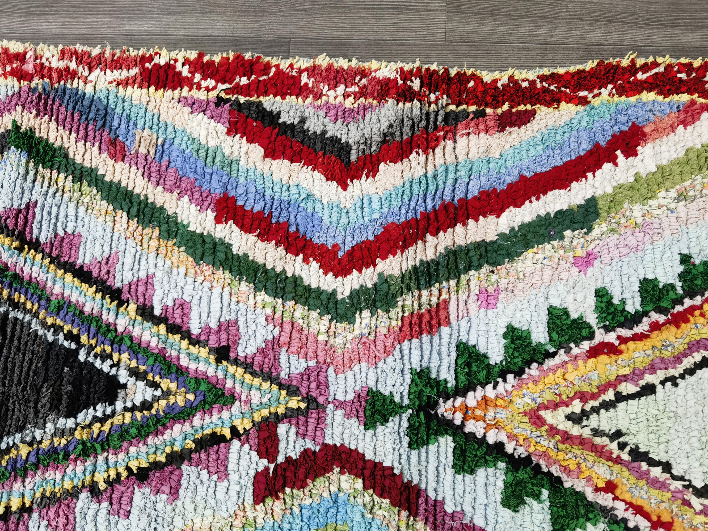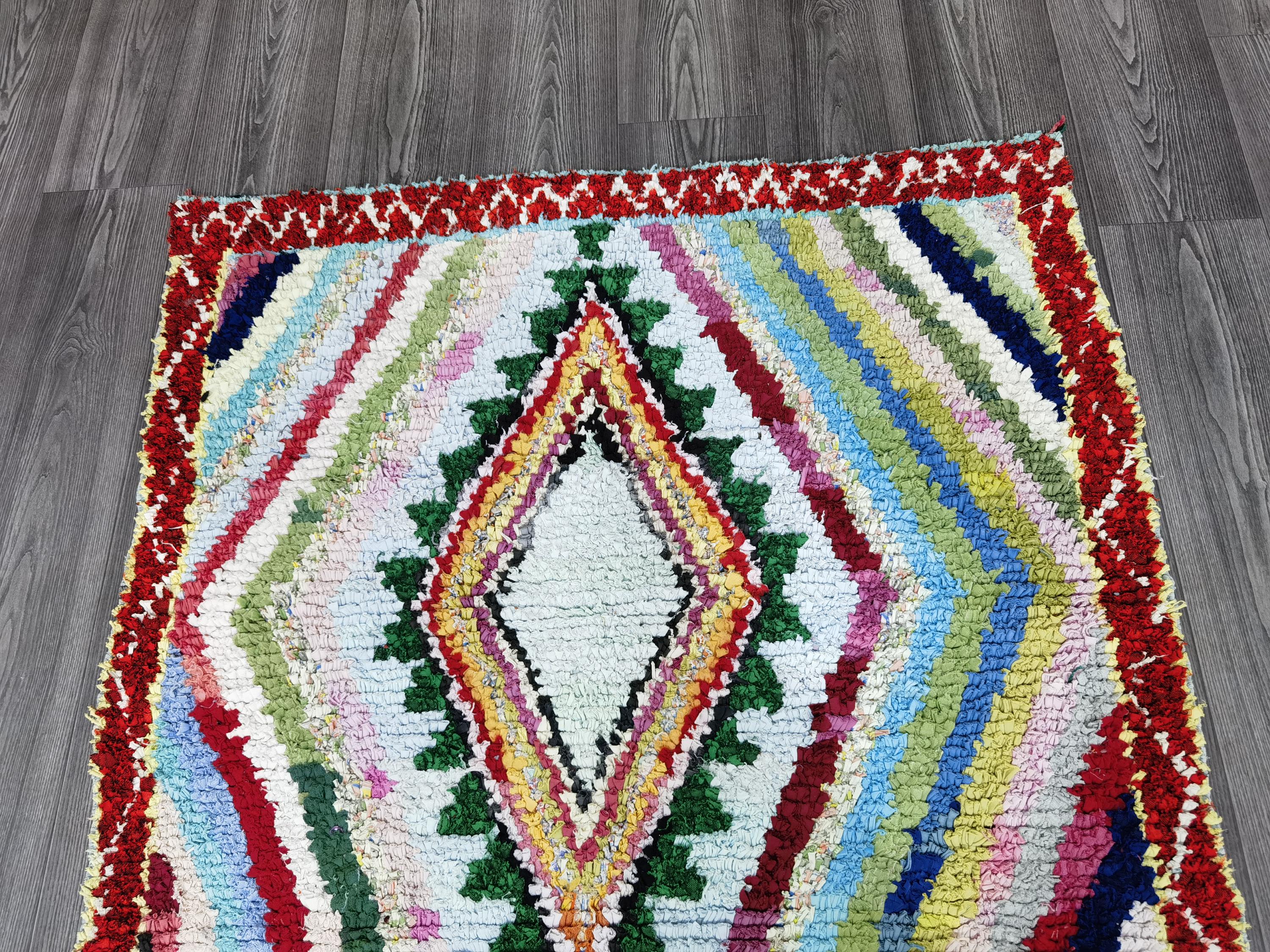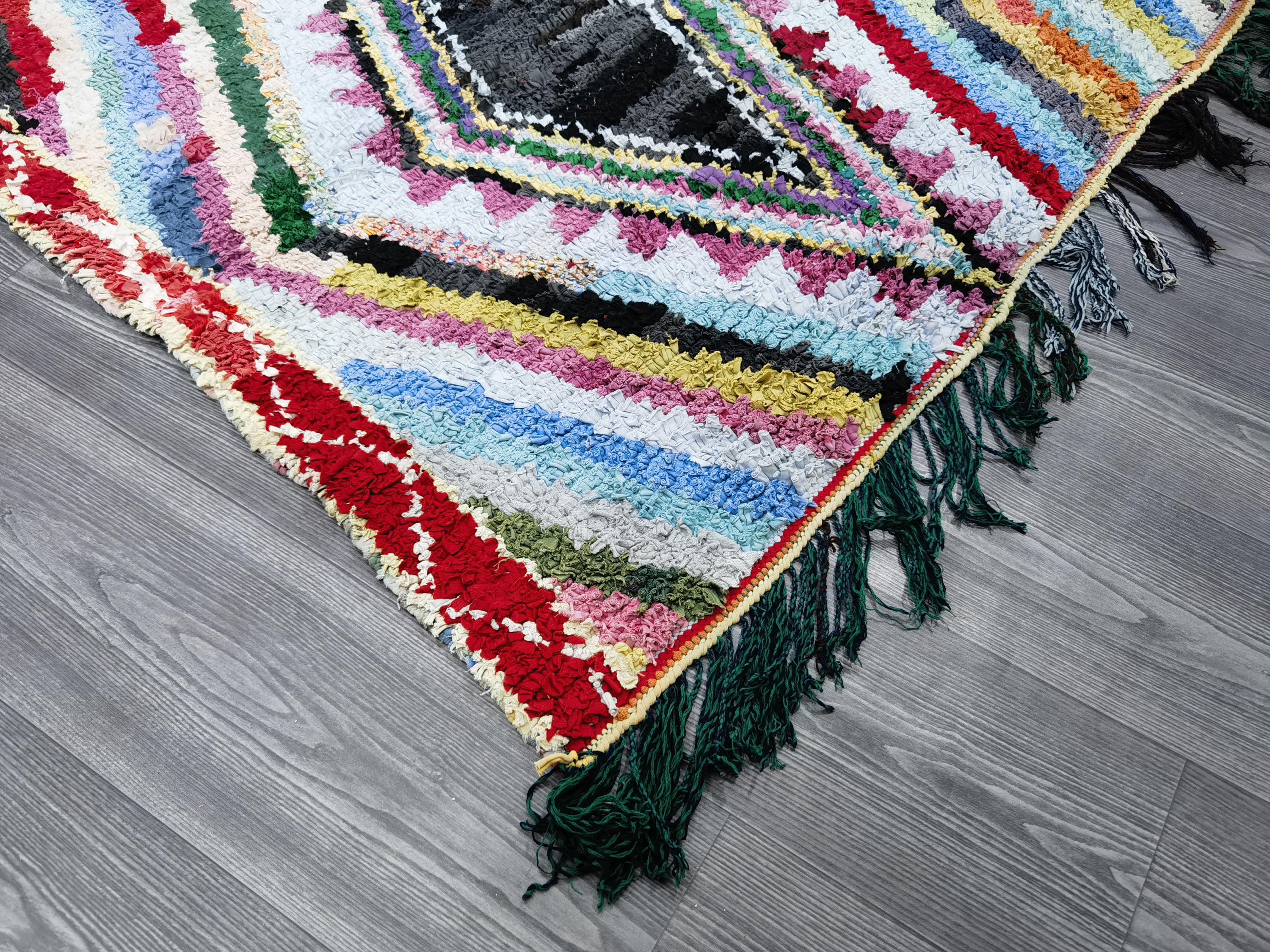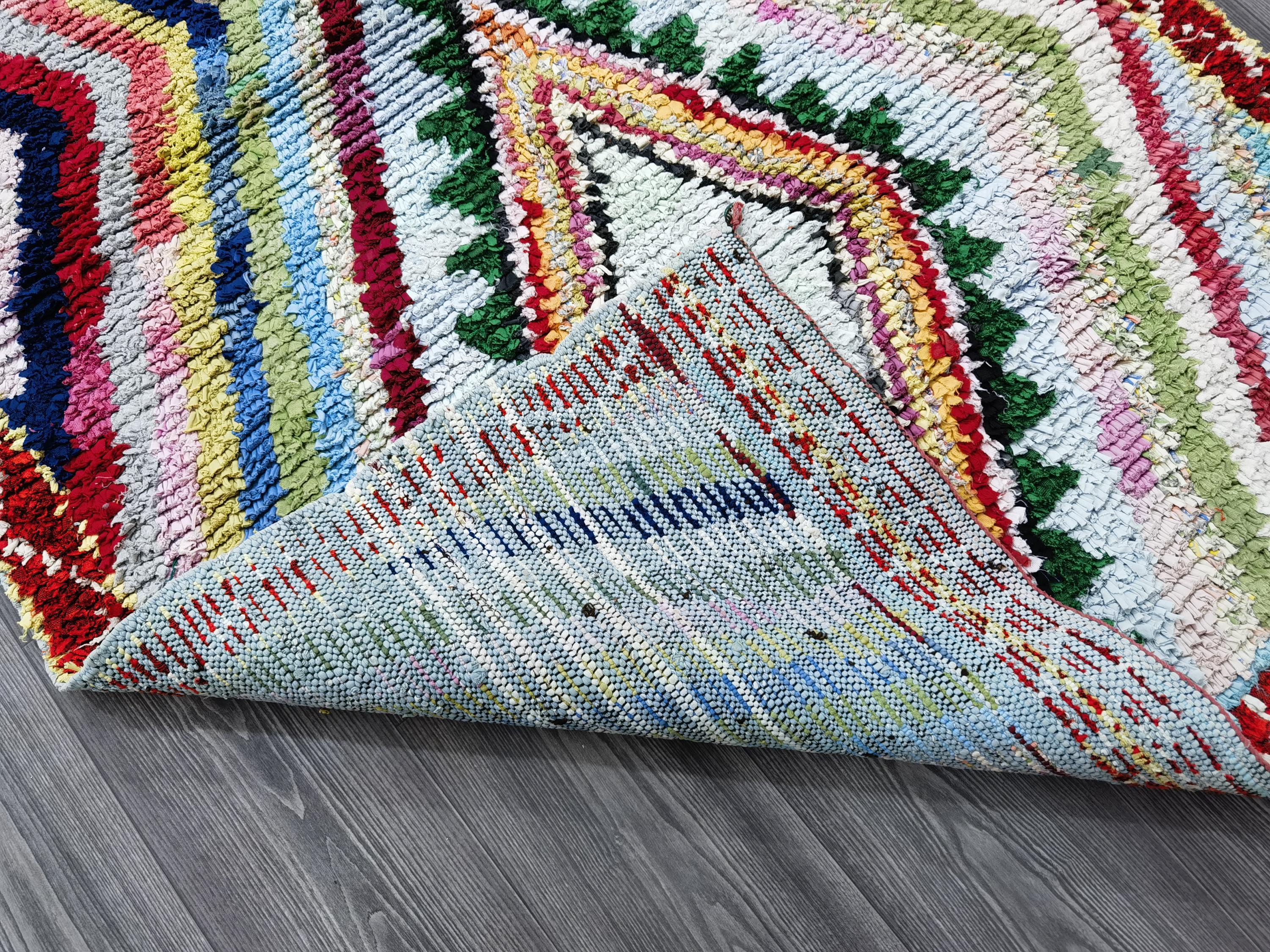 Handmade Boucherouite Runner Rug: Colorful Moroccan Rag Rug (4.4x7 Ft)