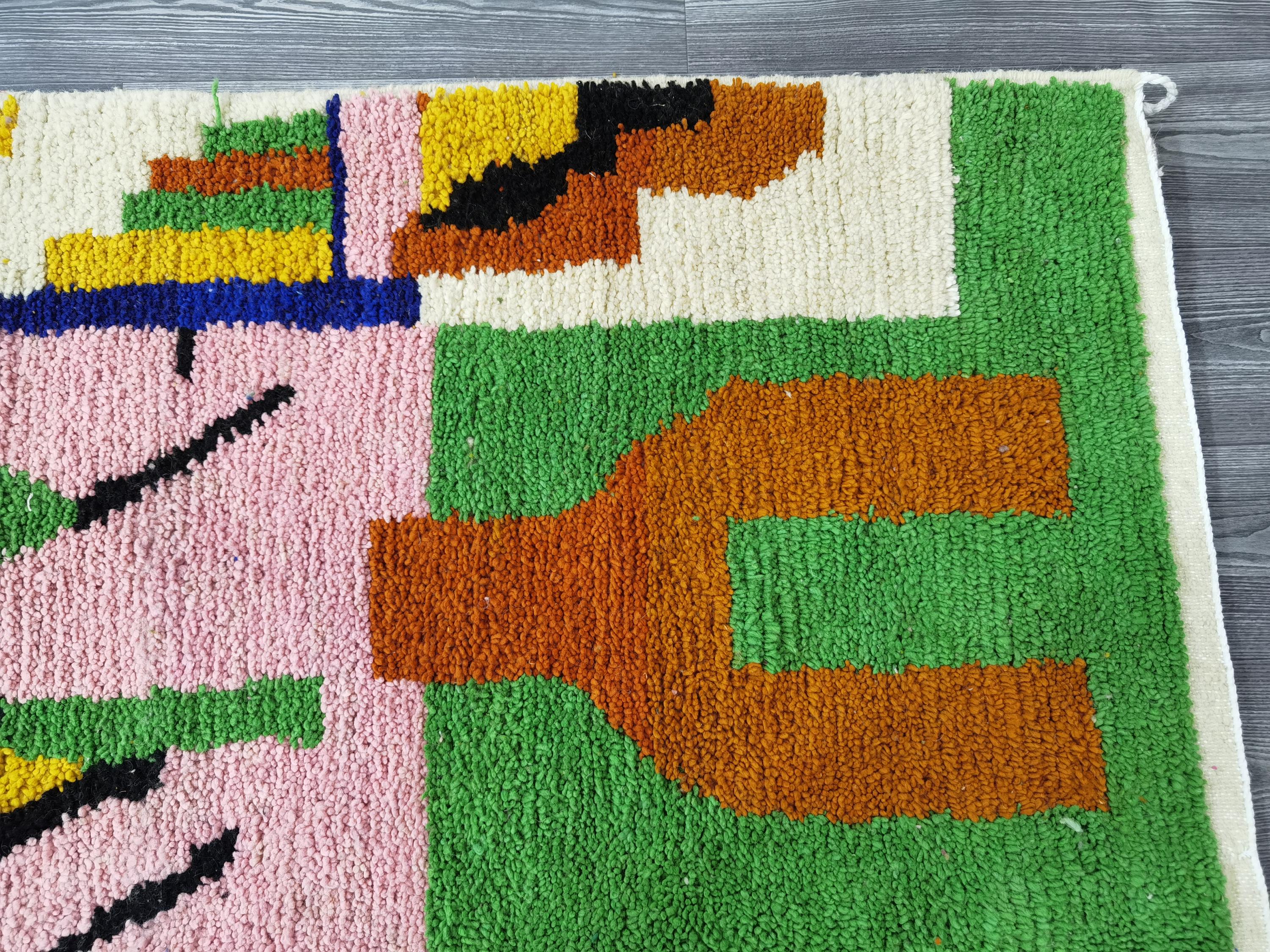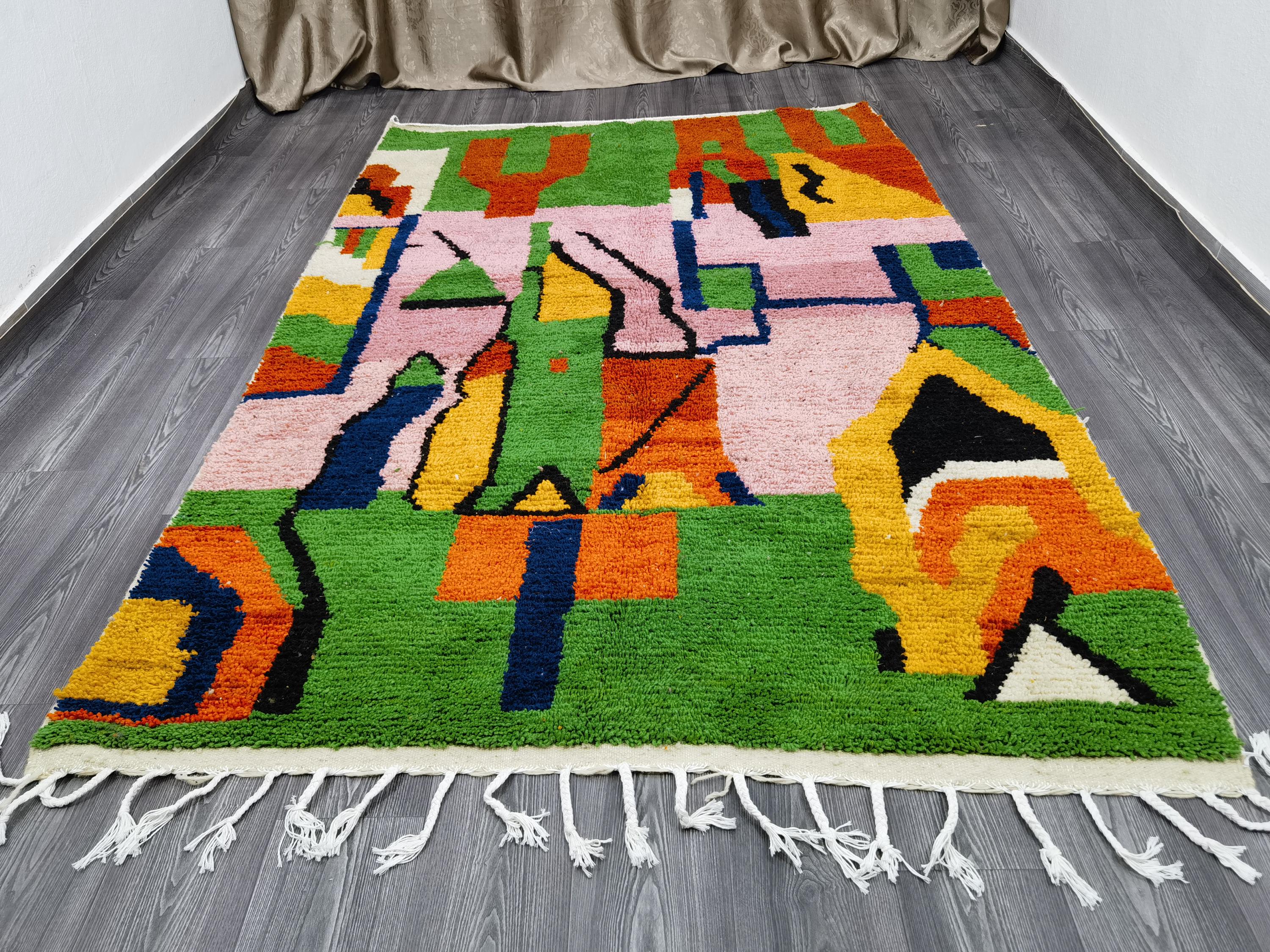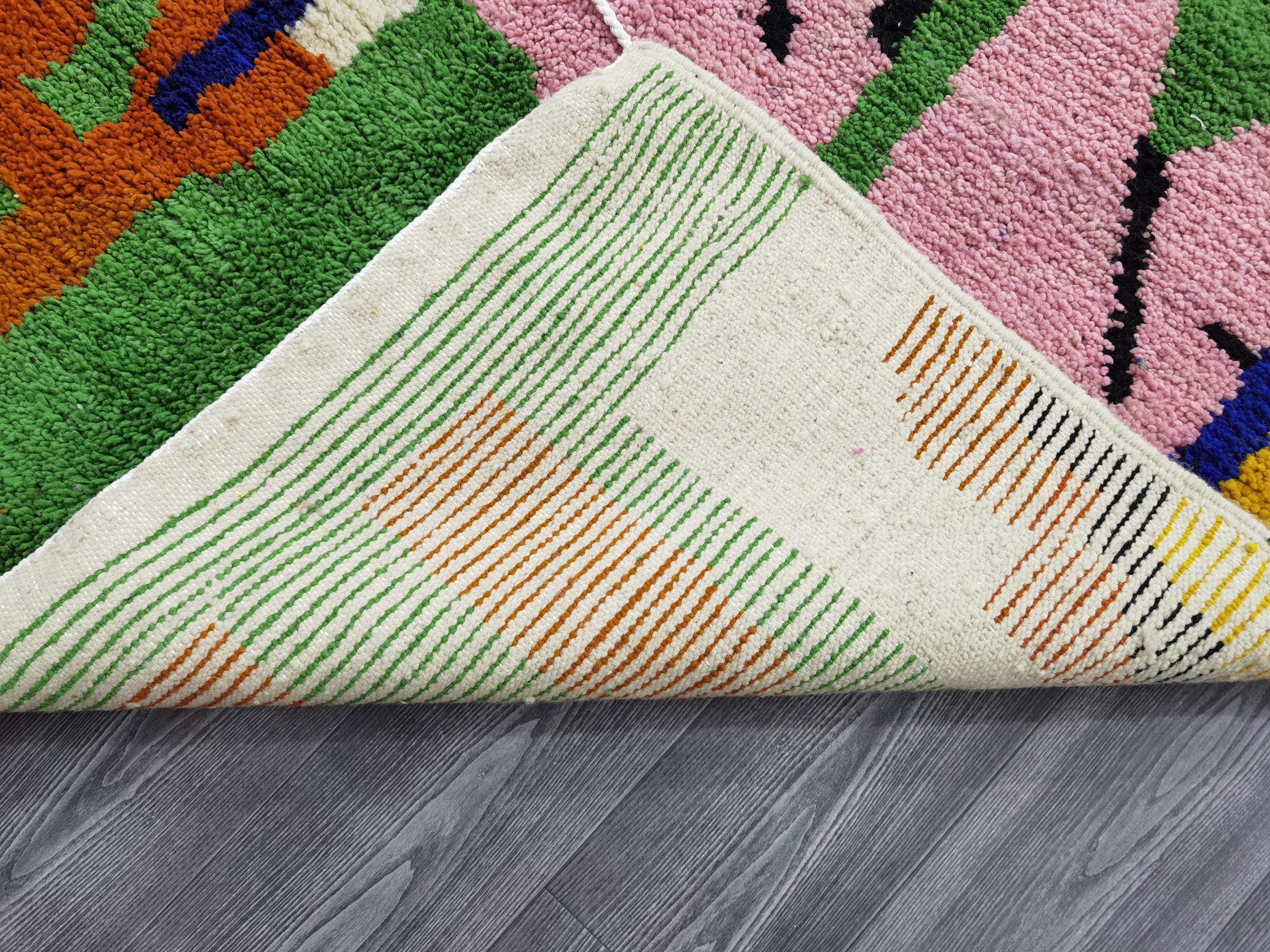 Amazing Moroccan Green Rug - Authentic Berber Rug - Wool Rug Pink - Quality Handmade Morrocan Rug - Bohemian Style Rug For Living Room .