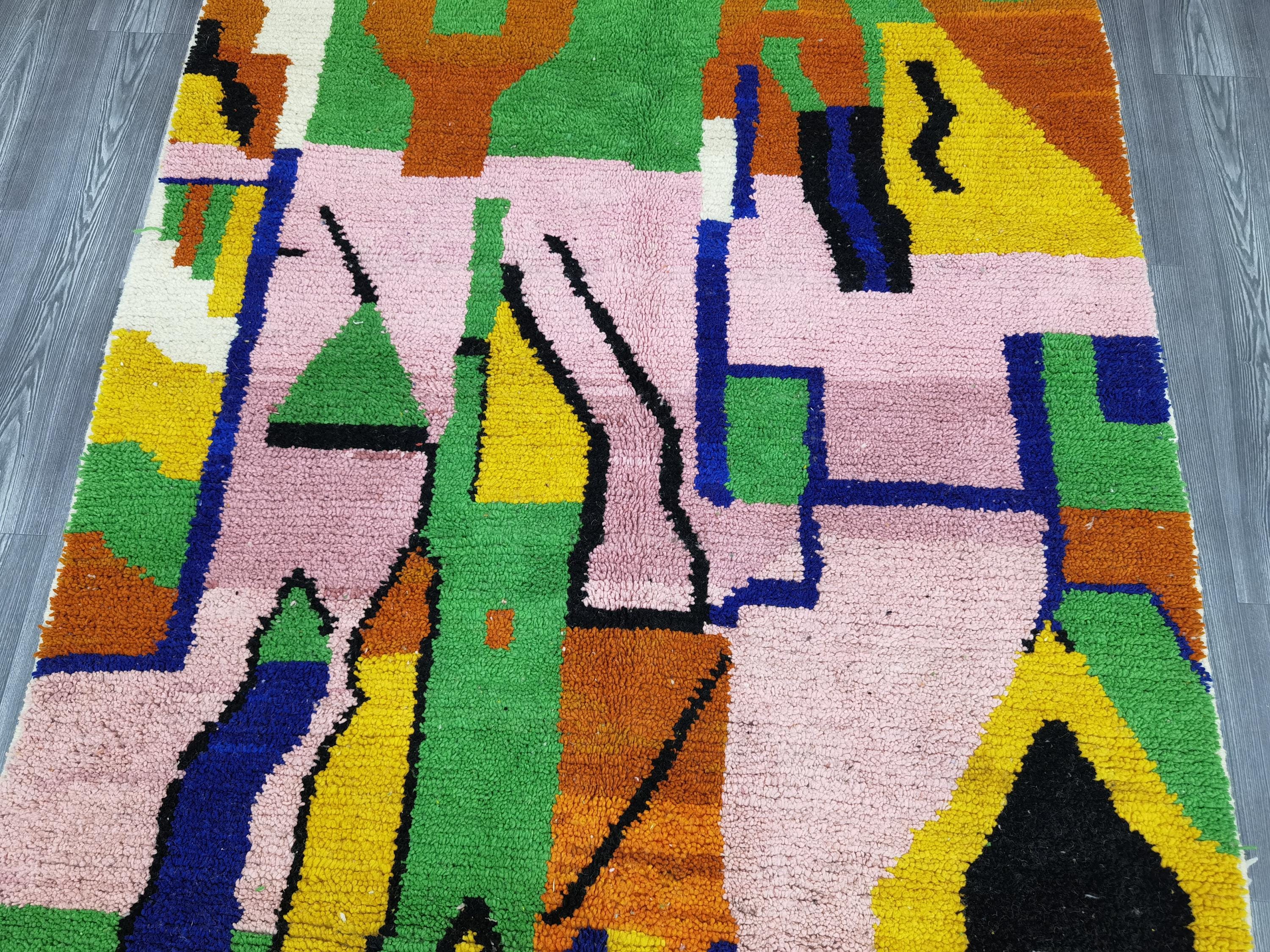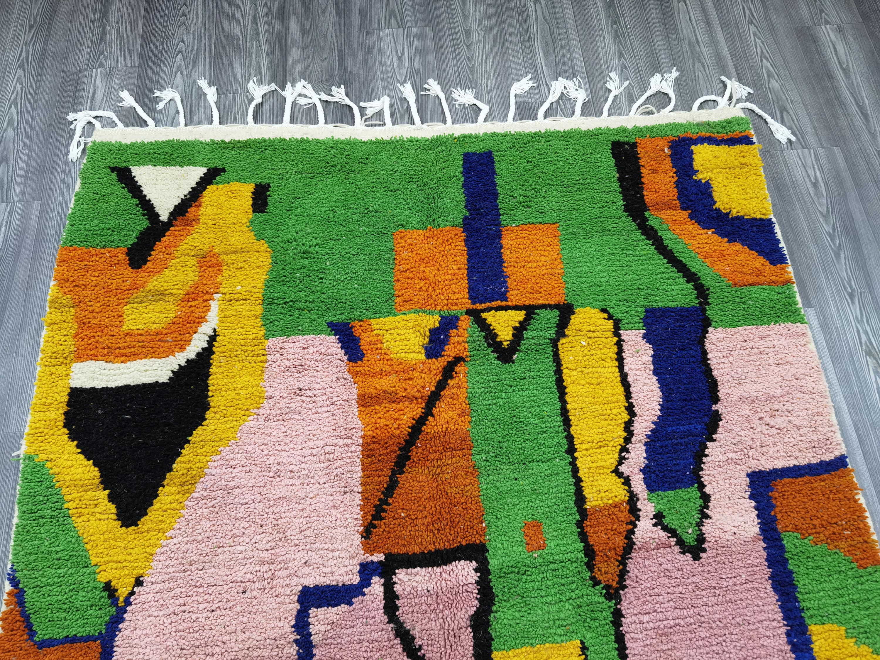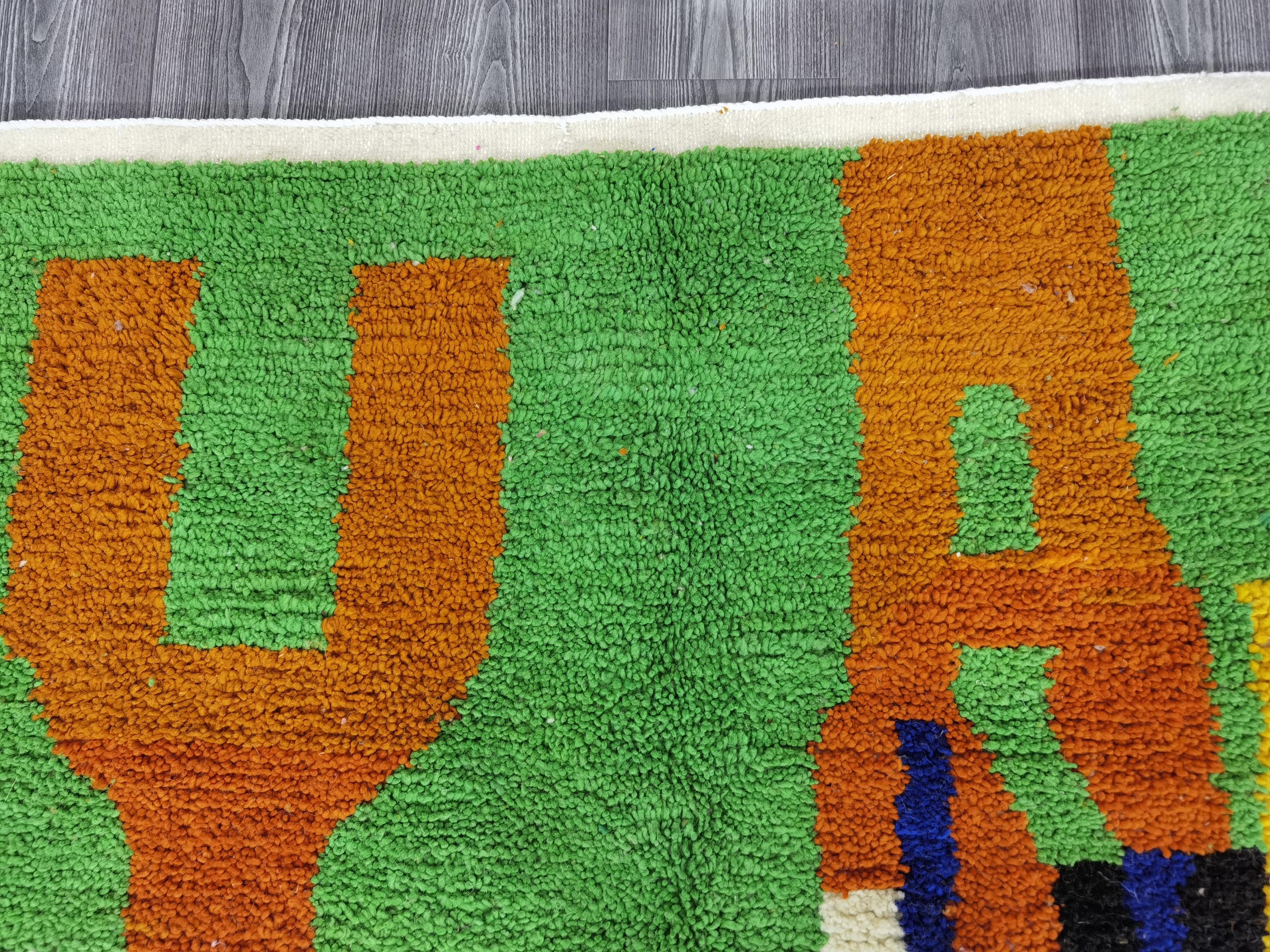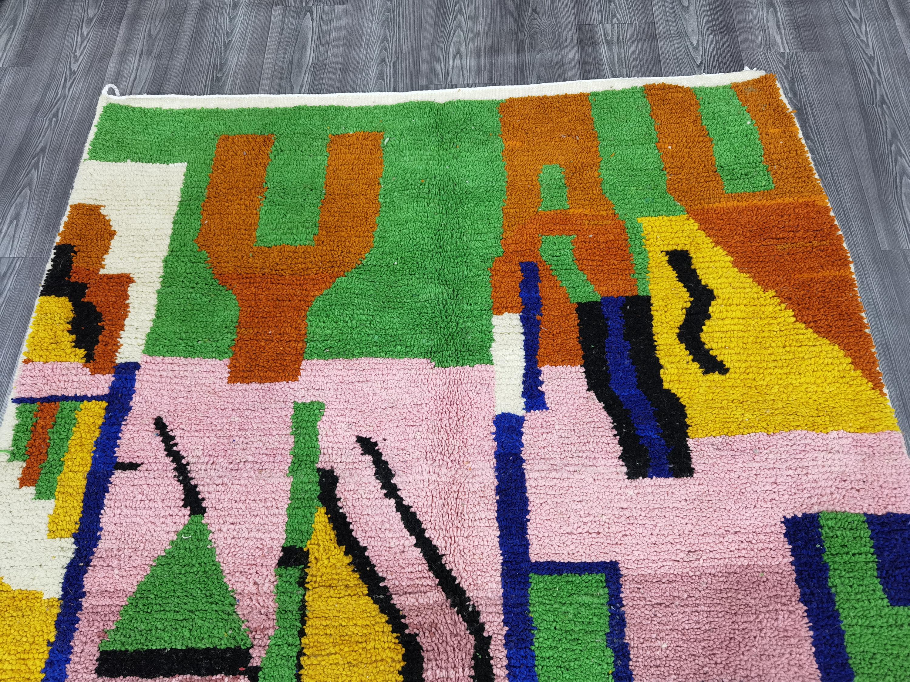 Amazing Moroccan Green Rug - Authentic Berber Rug - Wool Rug Pink - Quality Handmade Morrocan Rug - Bohemian Style Rug For Living Room .