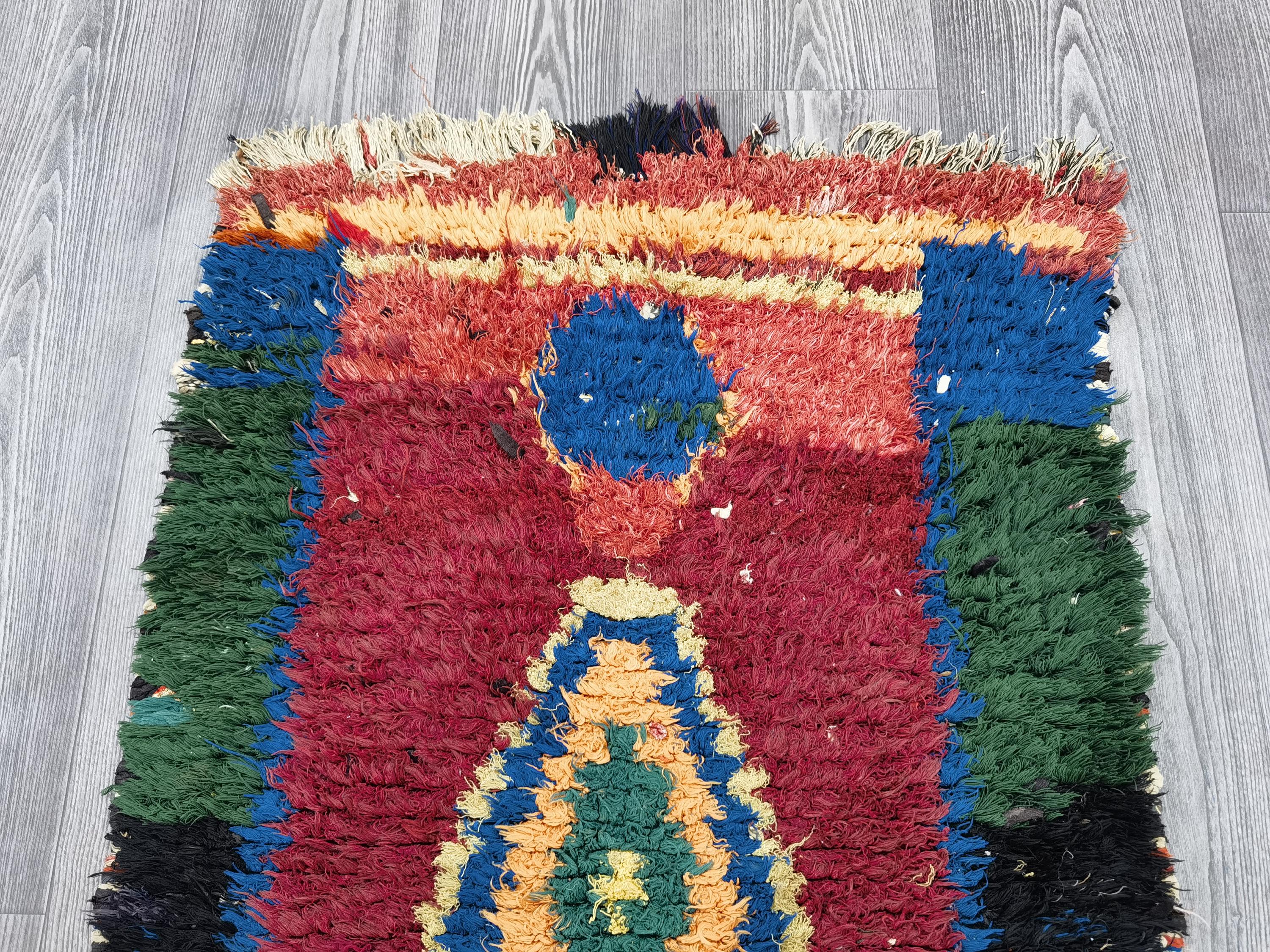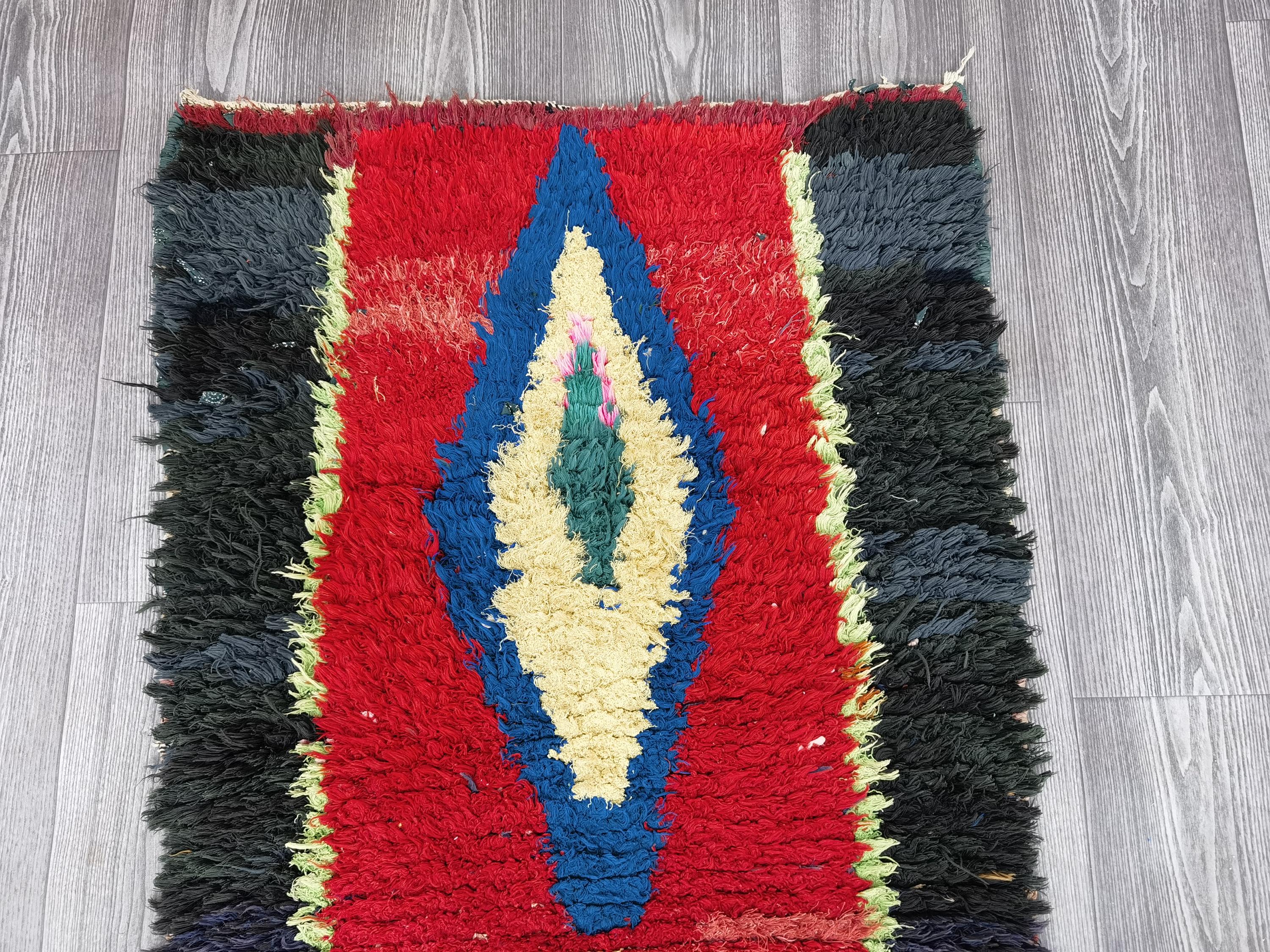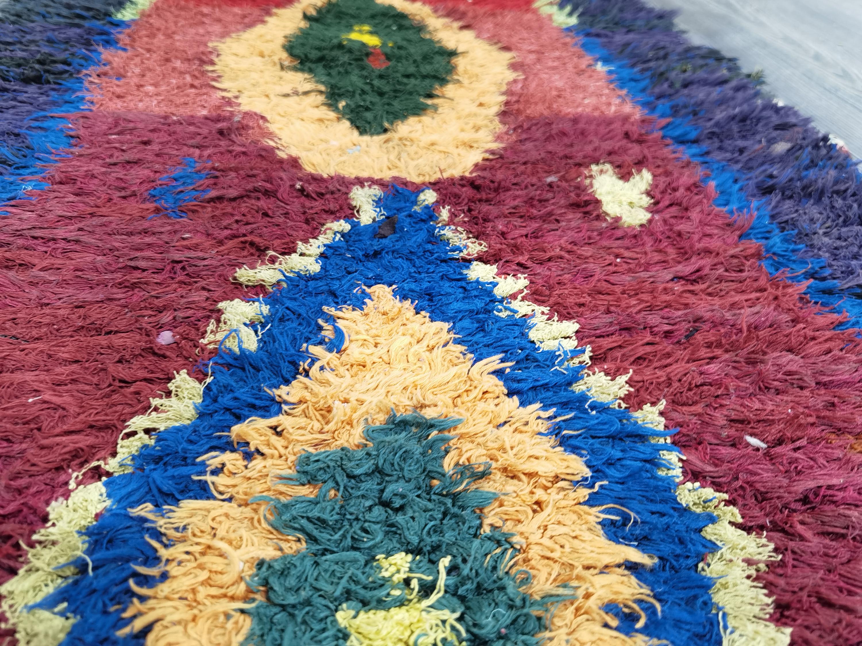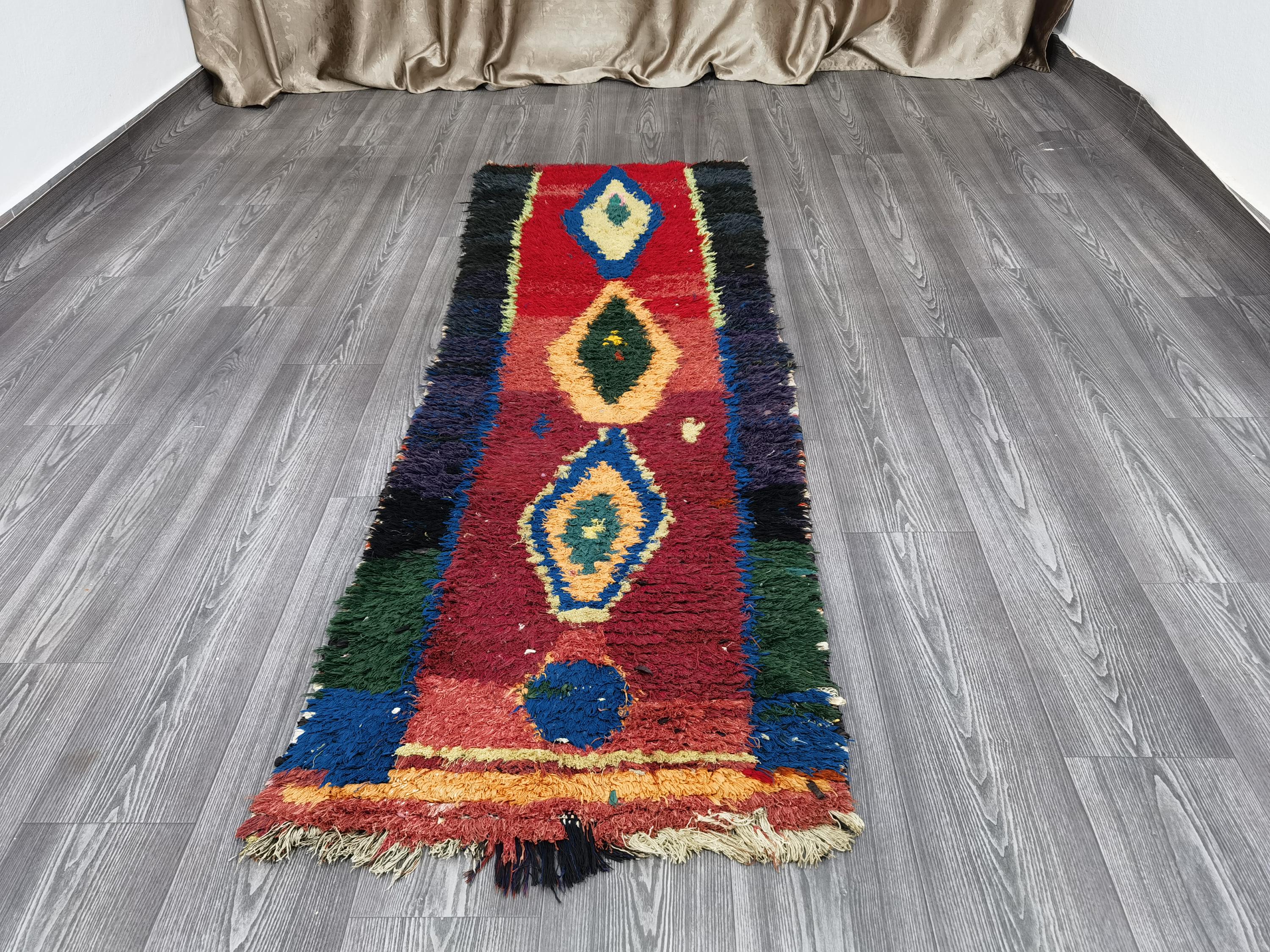 Boujaad is a vibrant and colorful wool runner that will add life to any room in your home. Made from 100% wool, this rug is perfect for use in the living room, bedroom, or anywhere you want to add some beautiful Moroccan flair. The soft and fluffy texture makes it comfortable to walk on, and the vivid colors will brighten up any space. Whether you're looking for a traditional shag rug or something a little more bohemian, Boujaad is sure to be a hit with your guests.