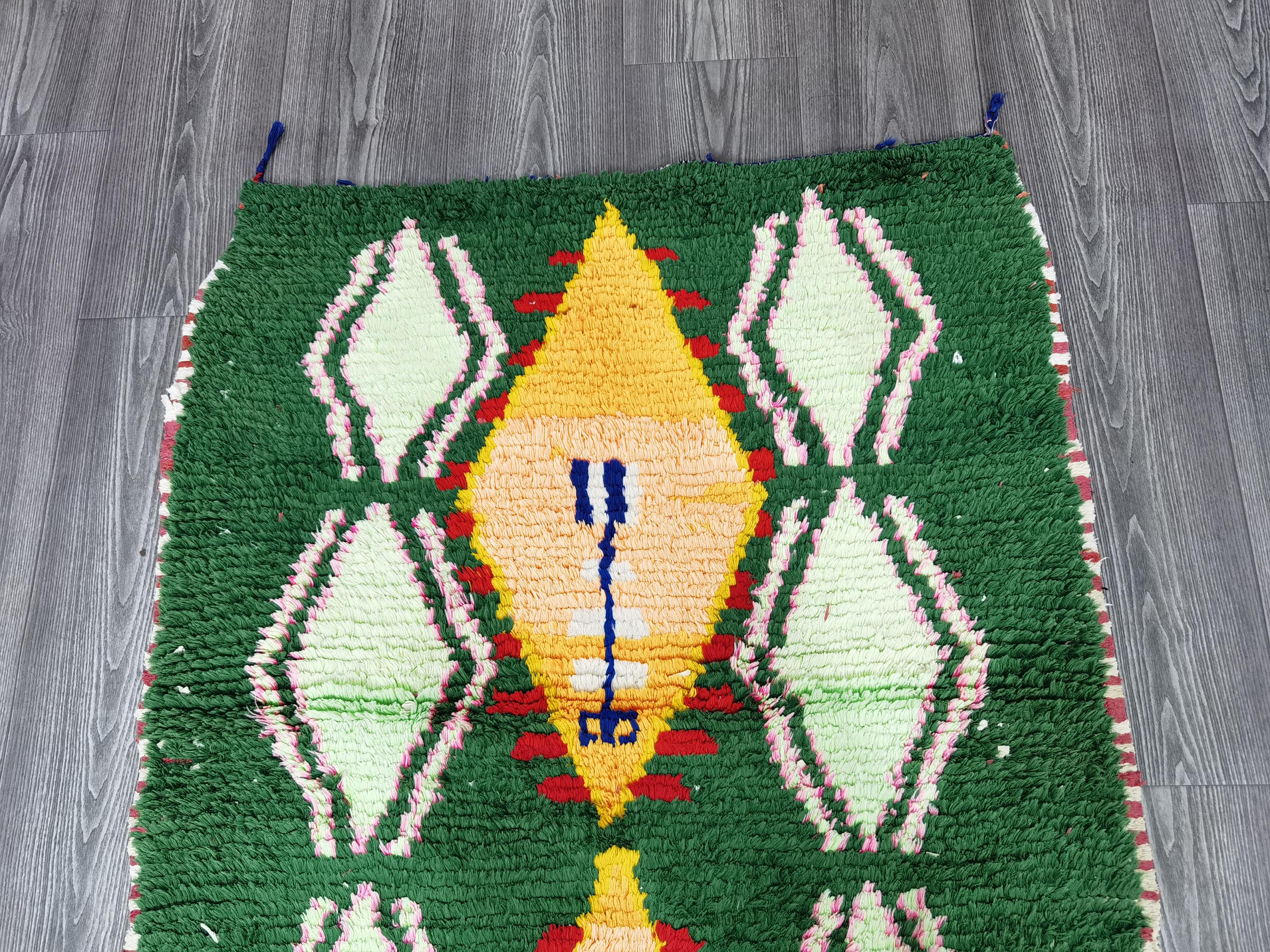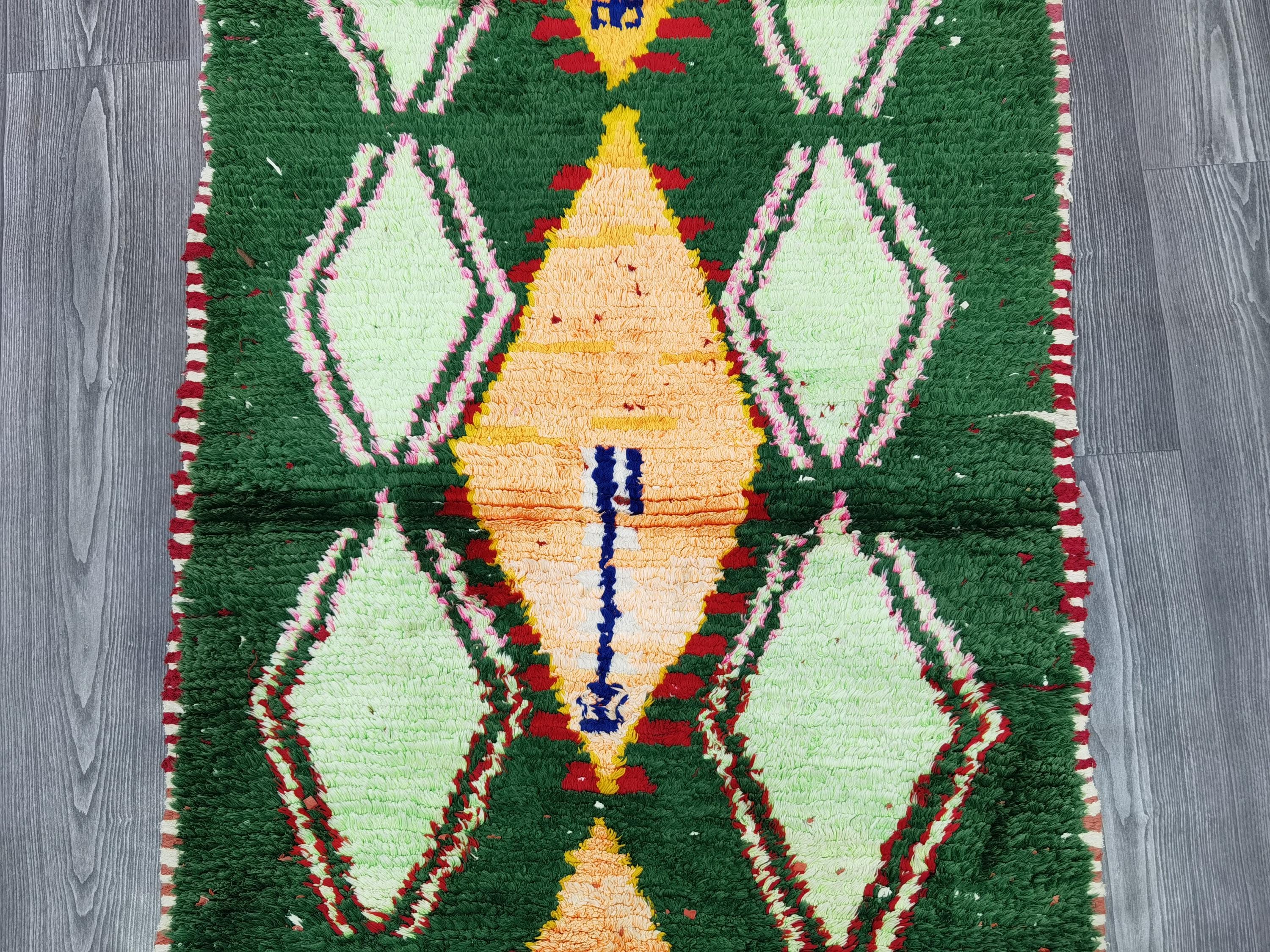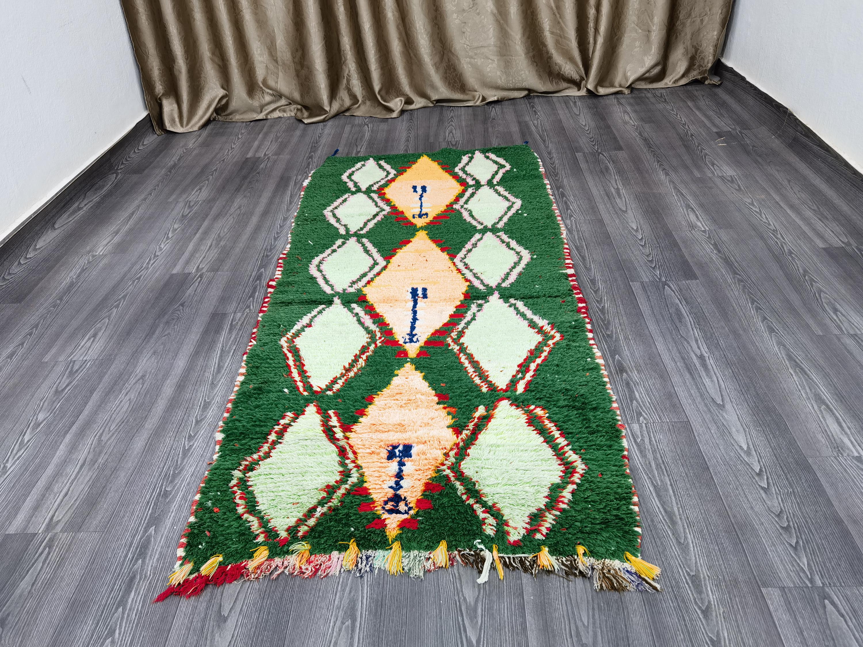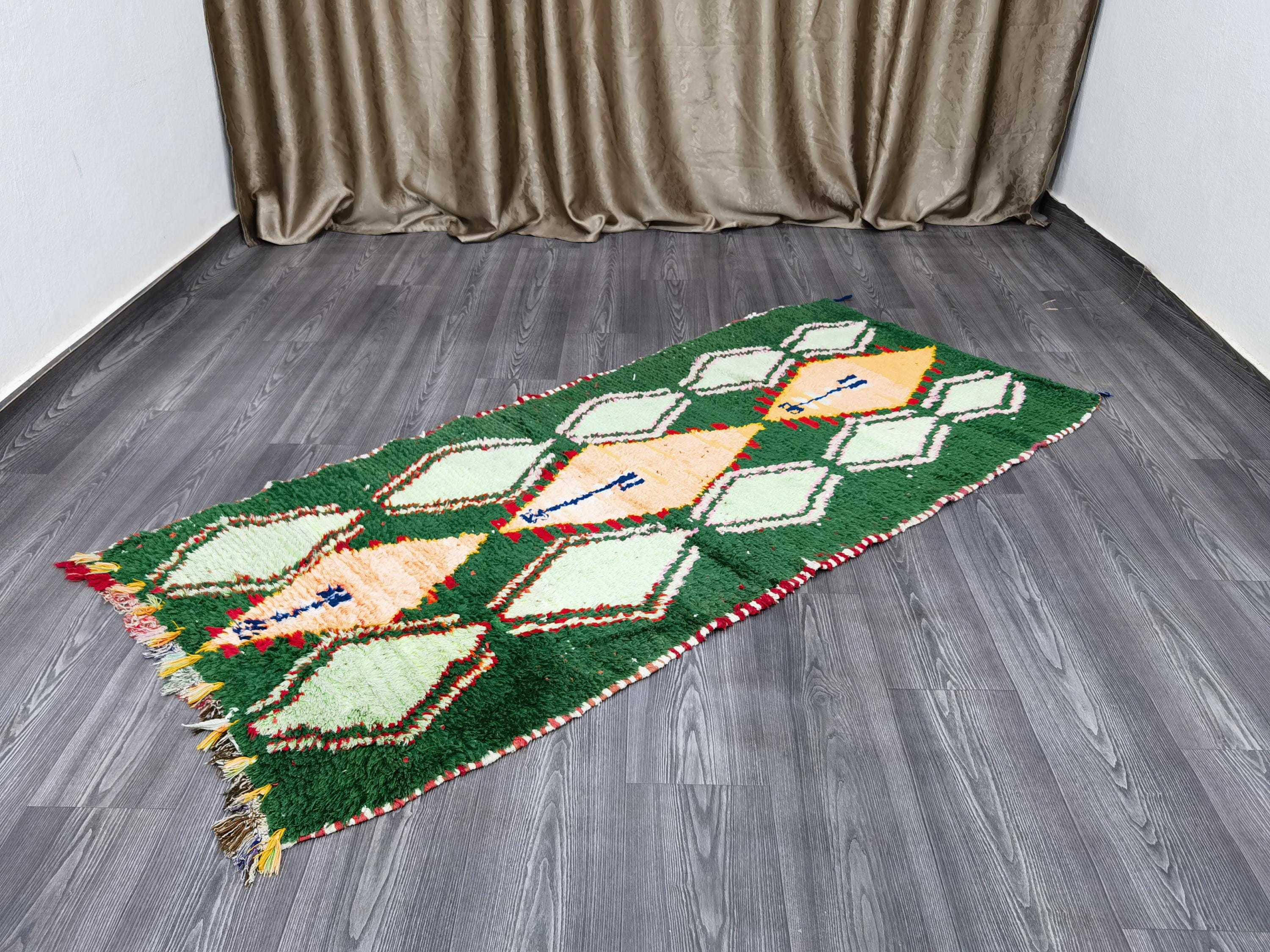 Gorgeous Authentic boujaad runner rug 2.9x6.4 Ft - berber Colorful Runner Rug - Moroccan Runner Rug - Authentic Moroccan Green rug