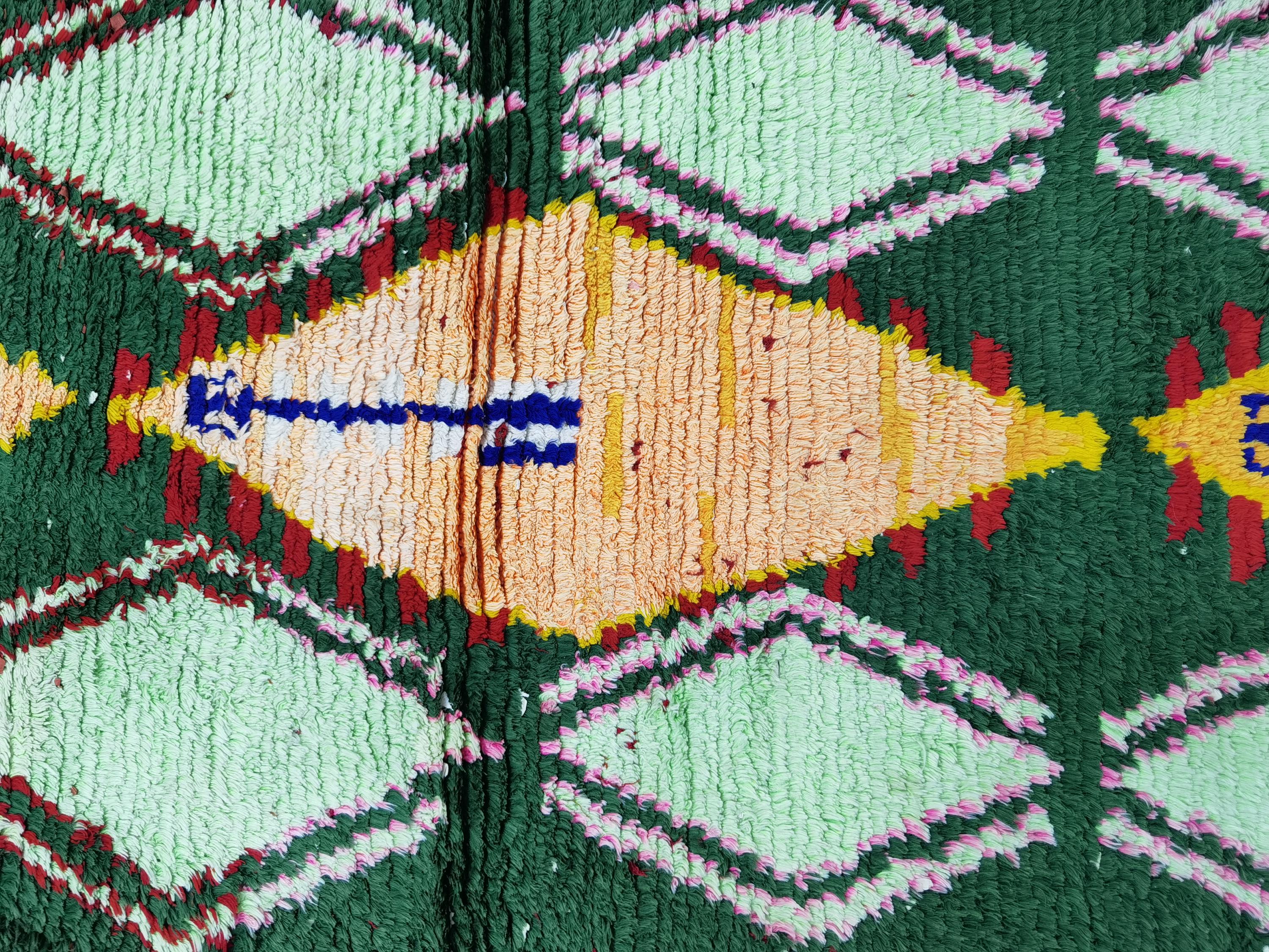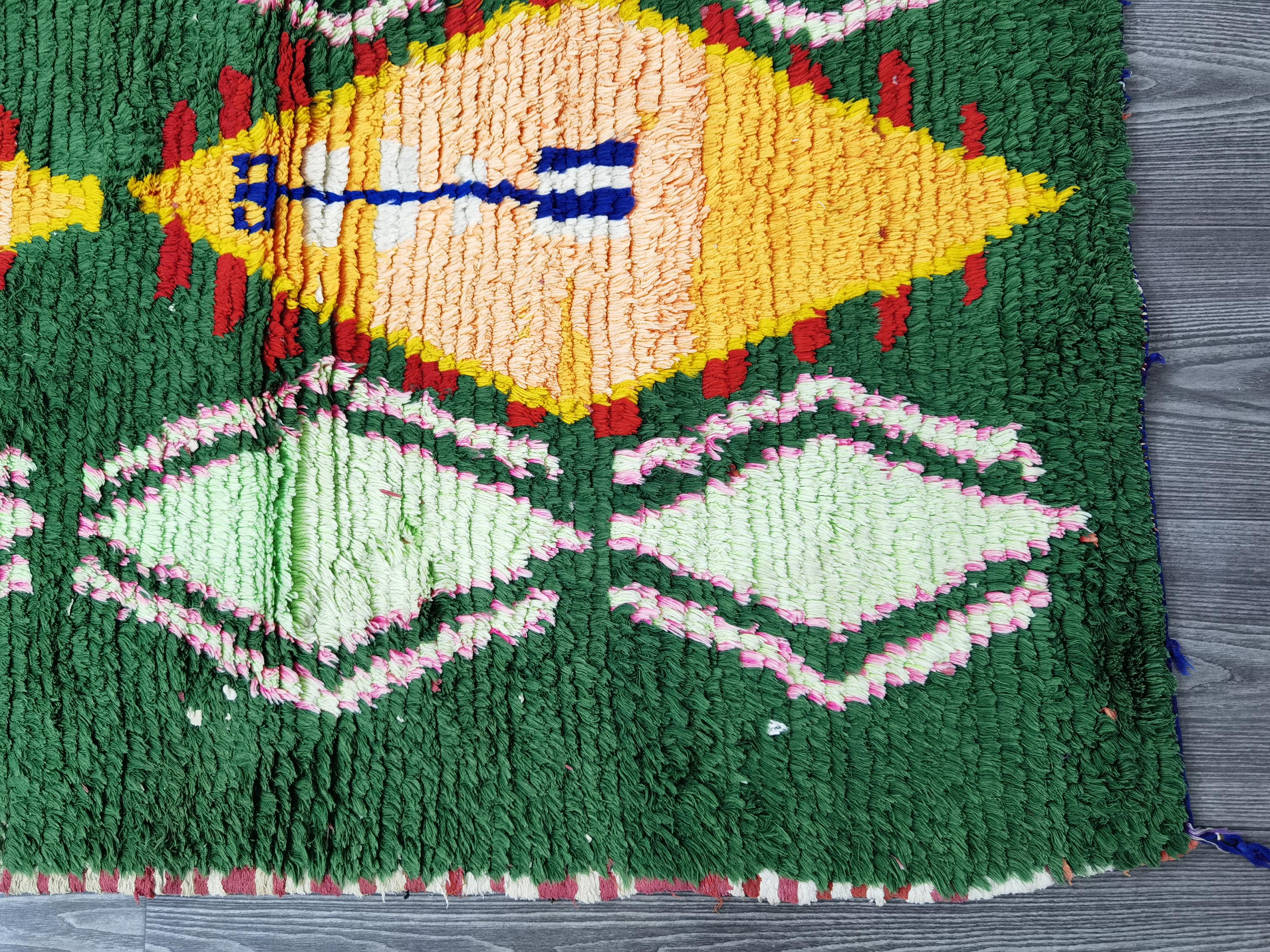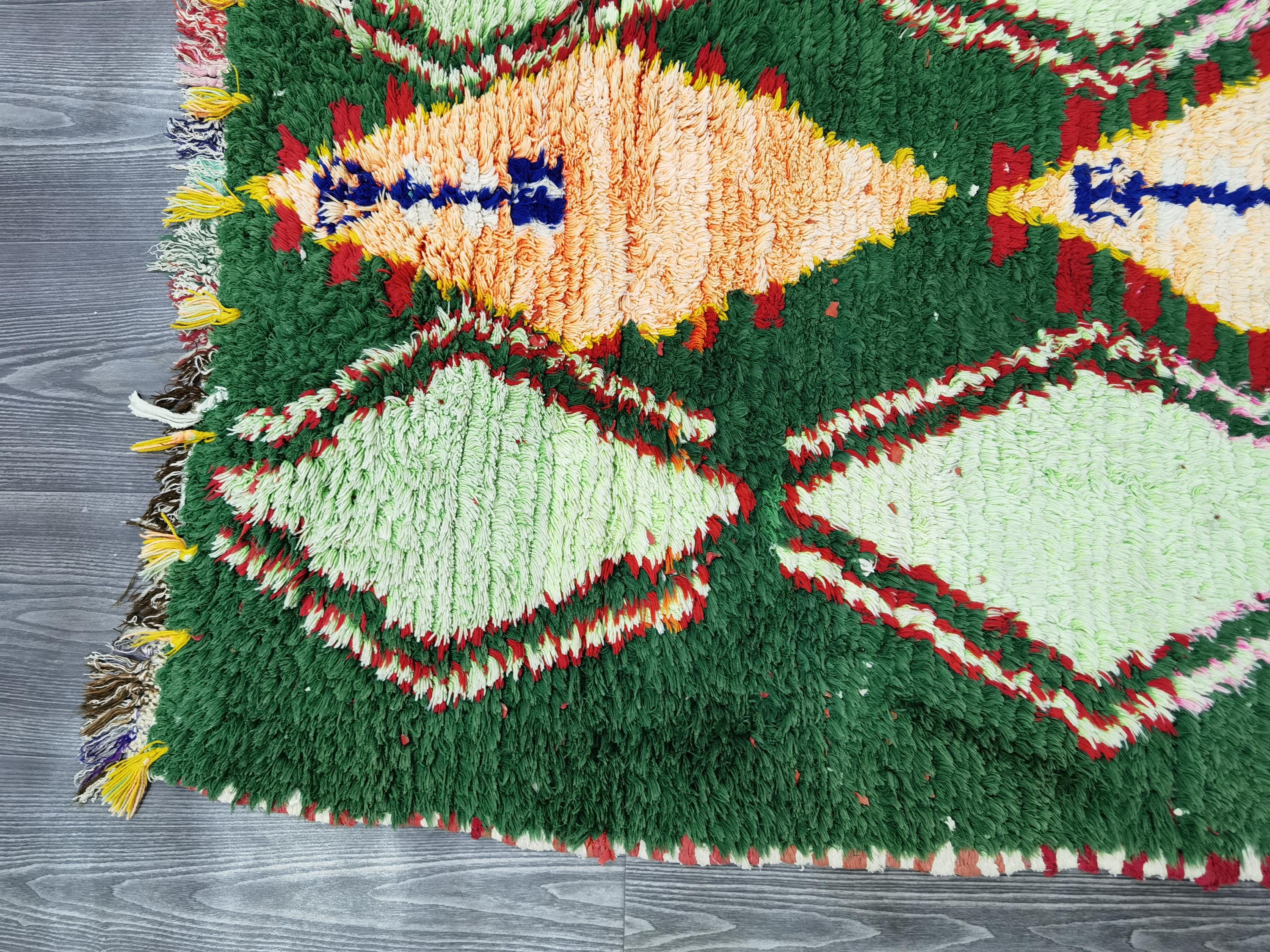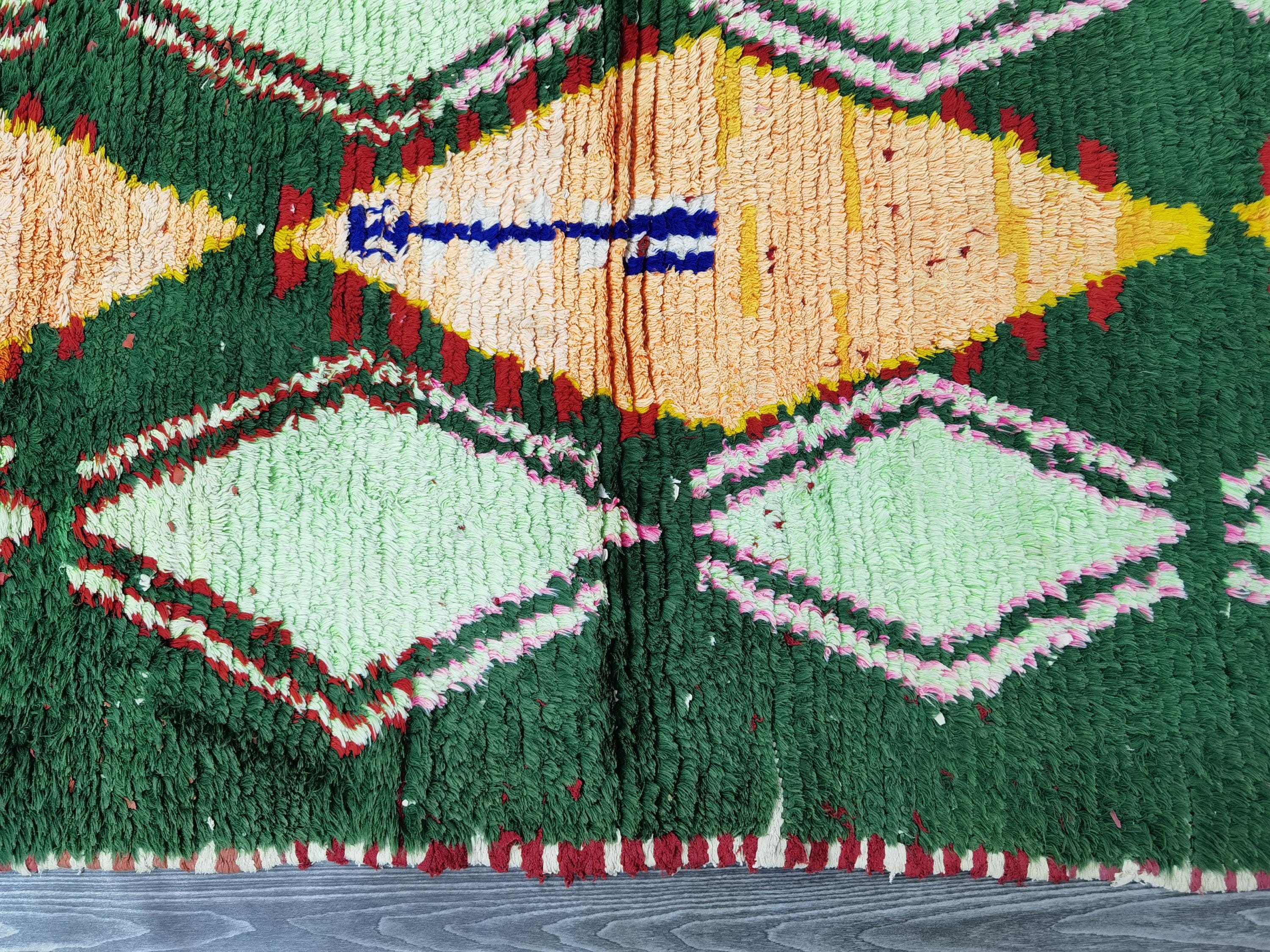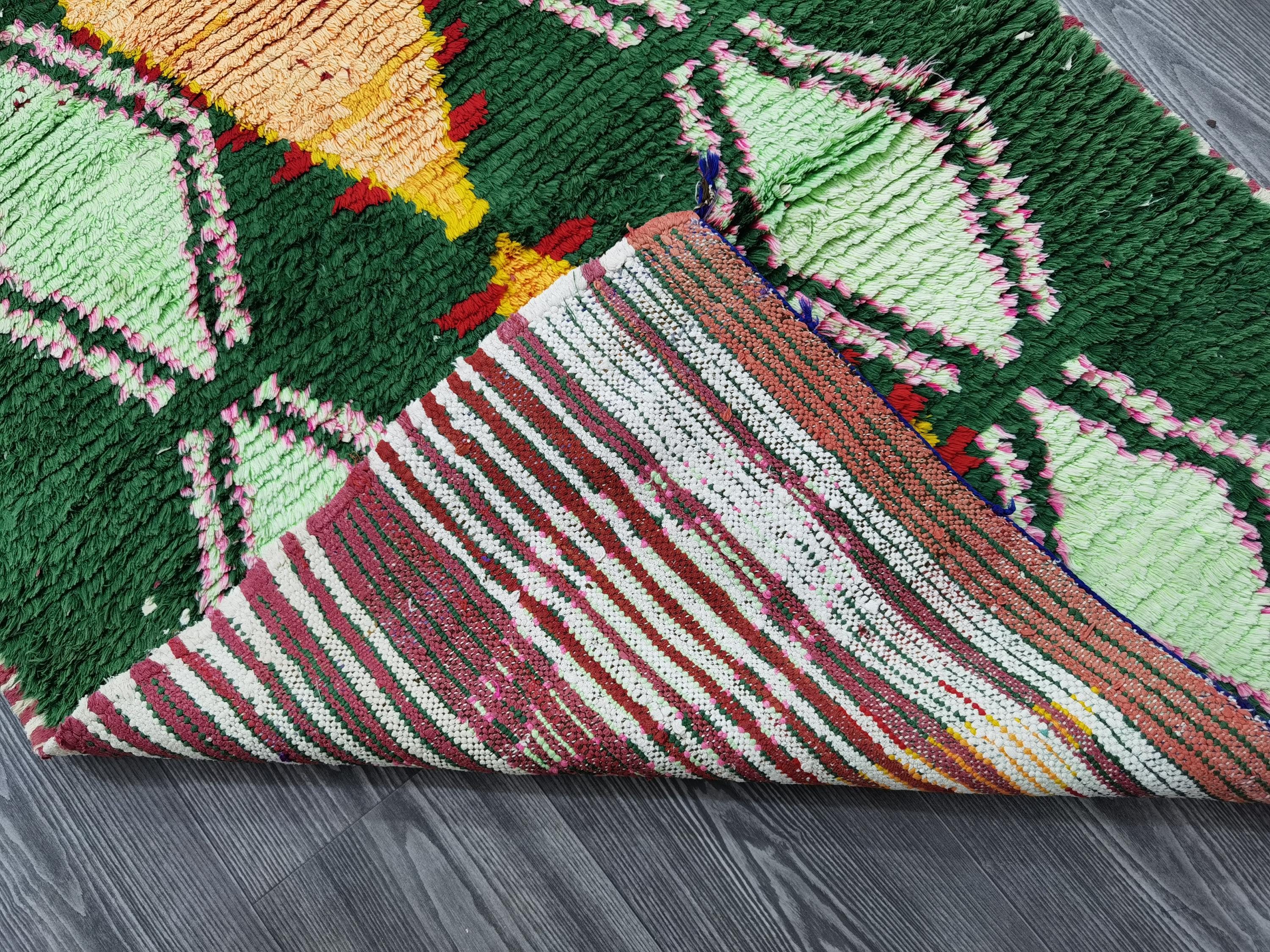 Gorgeous Authentic boujaad runner rug 2.9x6.4 Ft - berber Colorful Runner Rug - Moroccan Runner Rug - Authentic Moroccan Green rug