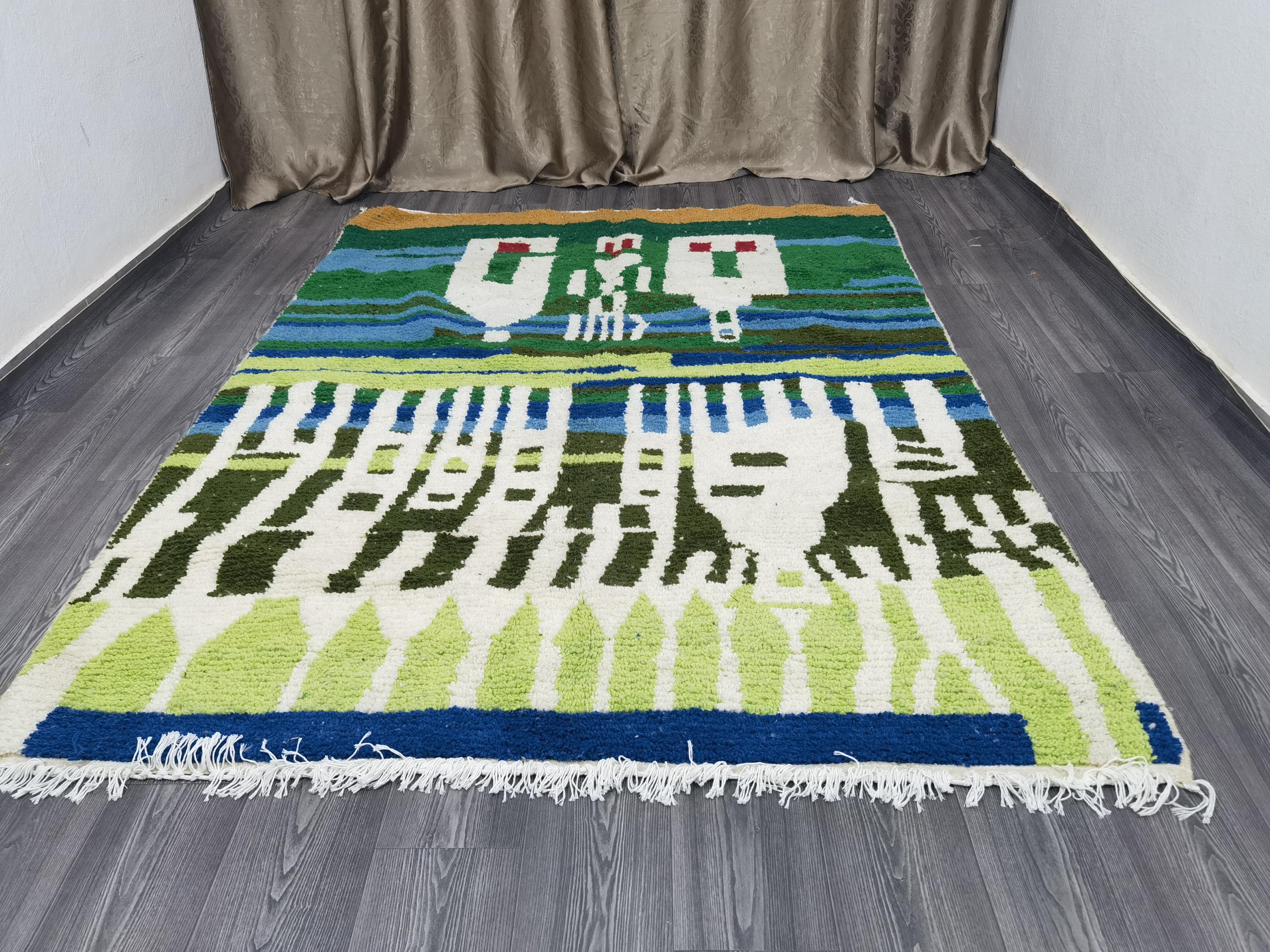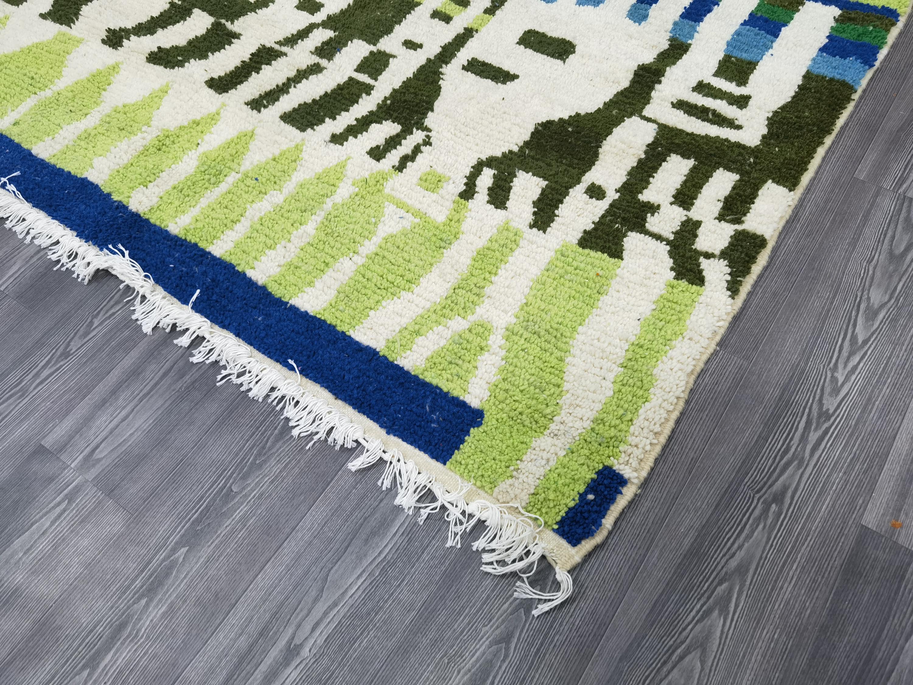 AMAZING MOROCCAN GREEN Rug - Custom Bohemian Rugs - Wool Rug Blue - Quality Handmade Morrocan Rug - Personalize Gifts For Home Decor