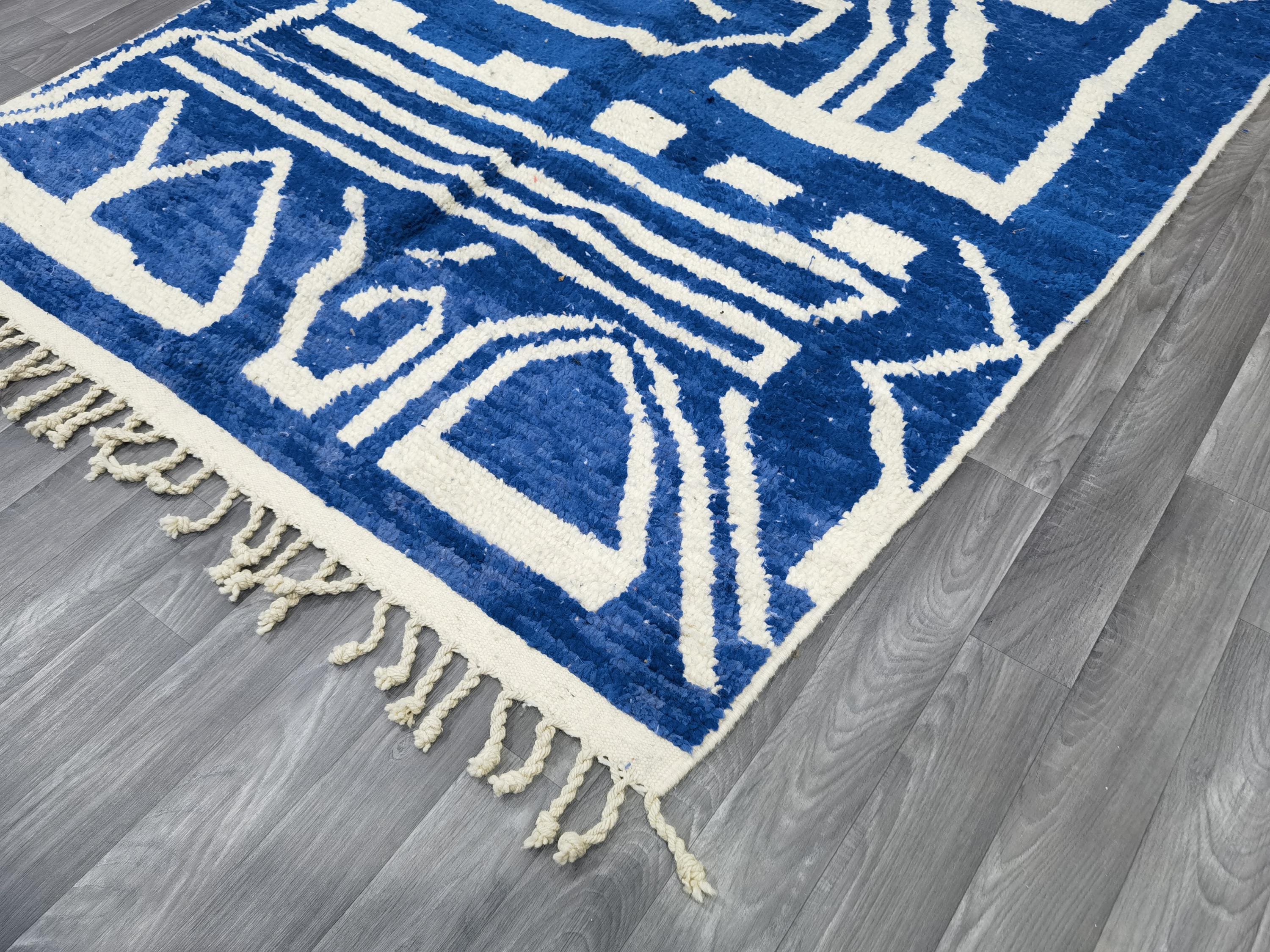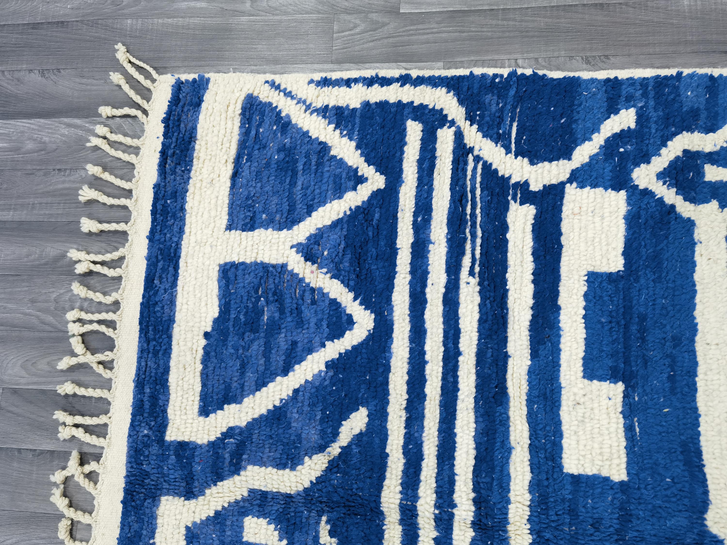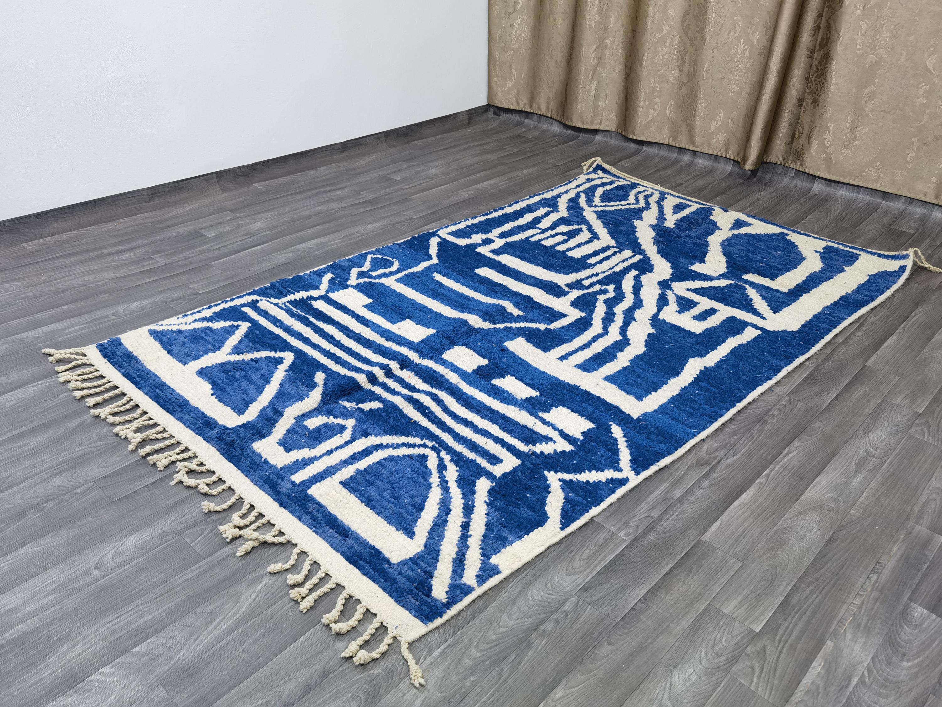 Beni Ourain Rug - Moroccan Blue Rug - Custom Bohemian Rugs - Wool Rug Blue - Quality Handmade Morrocan Rug -Personalize Gifts For Home Decor