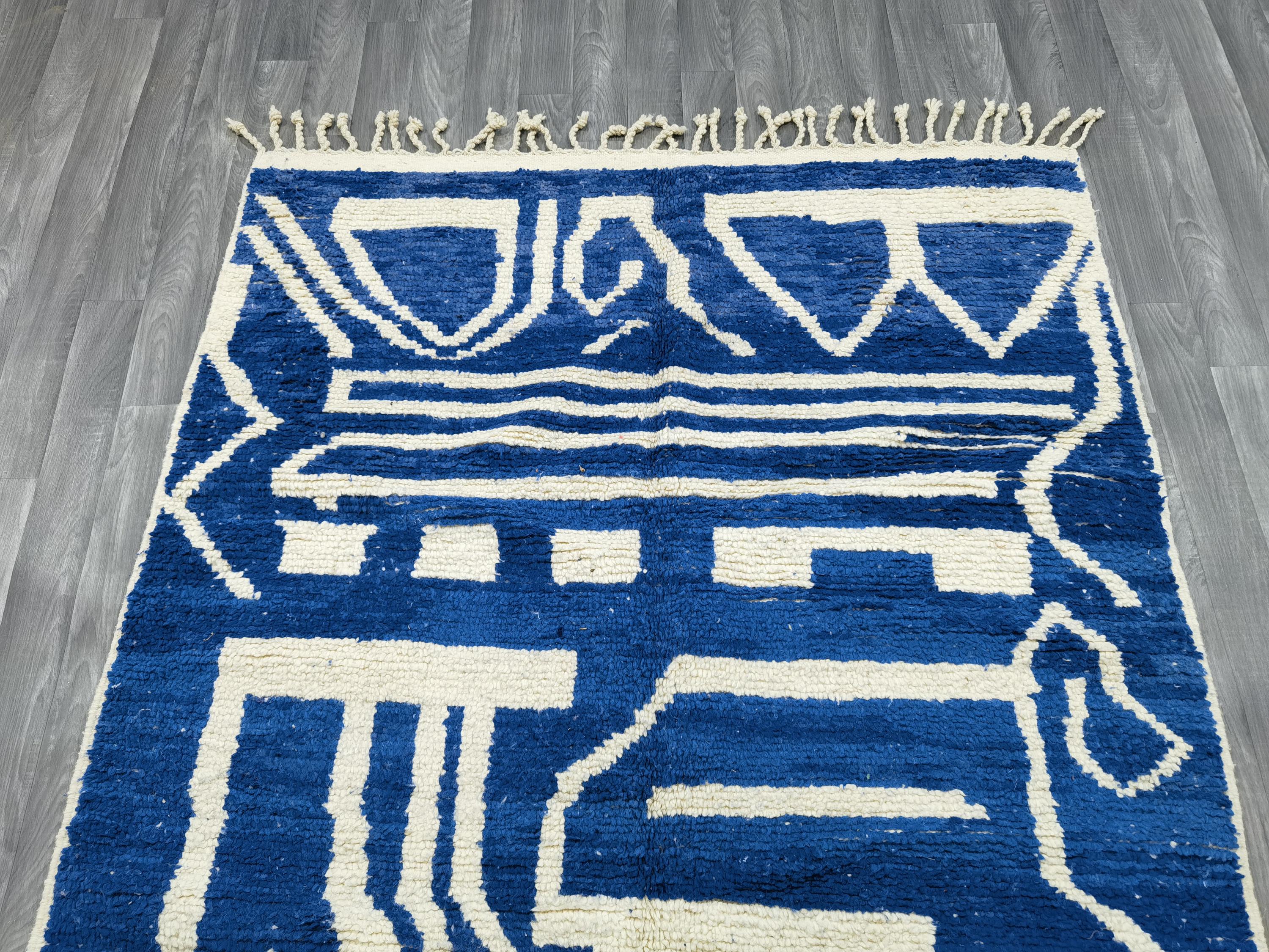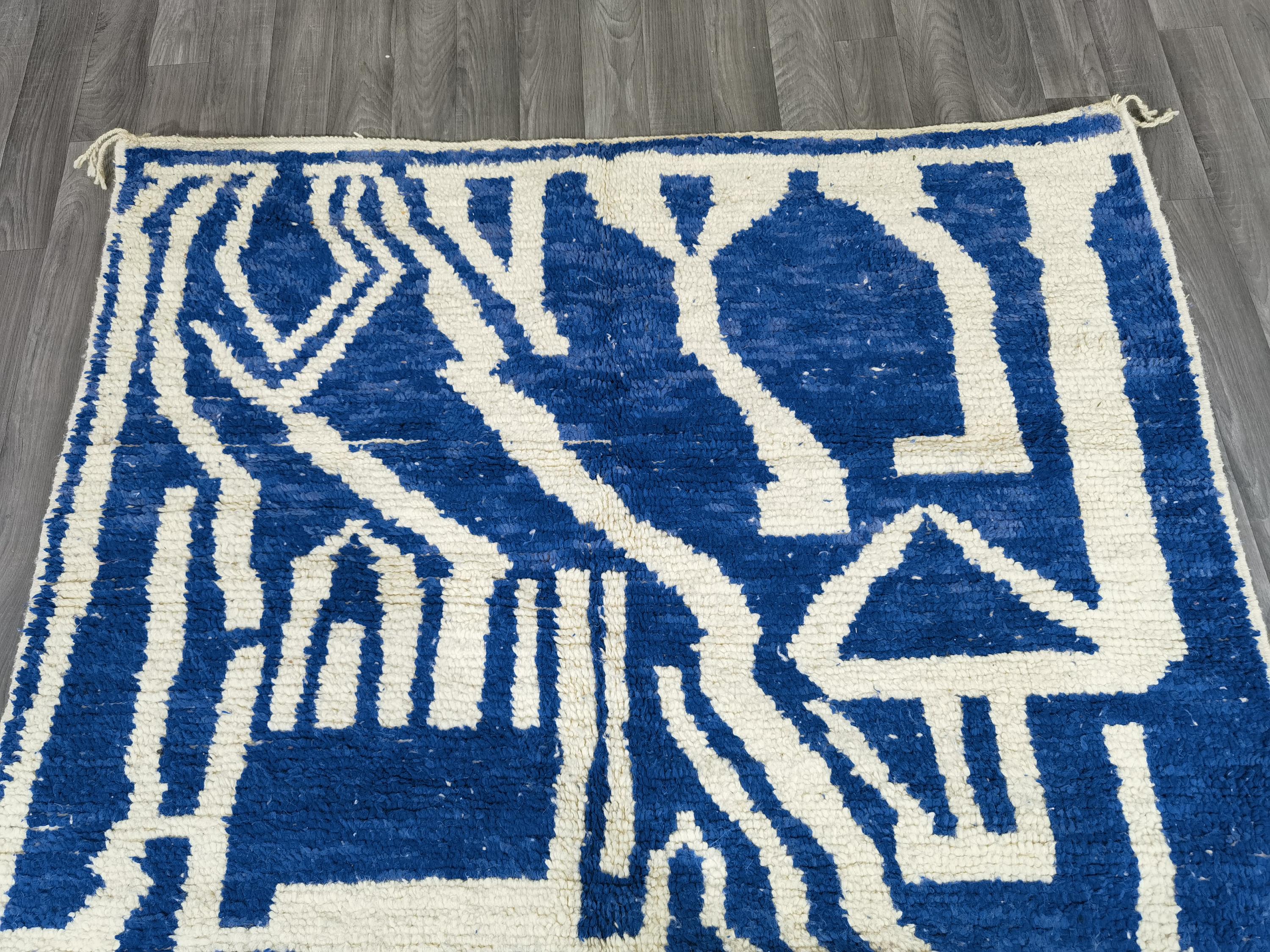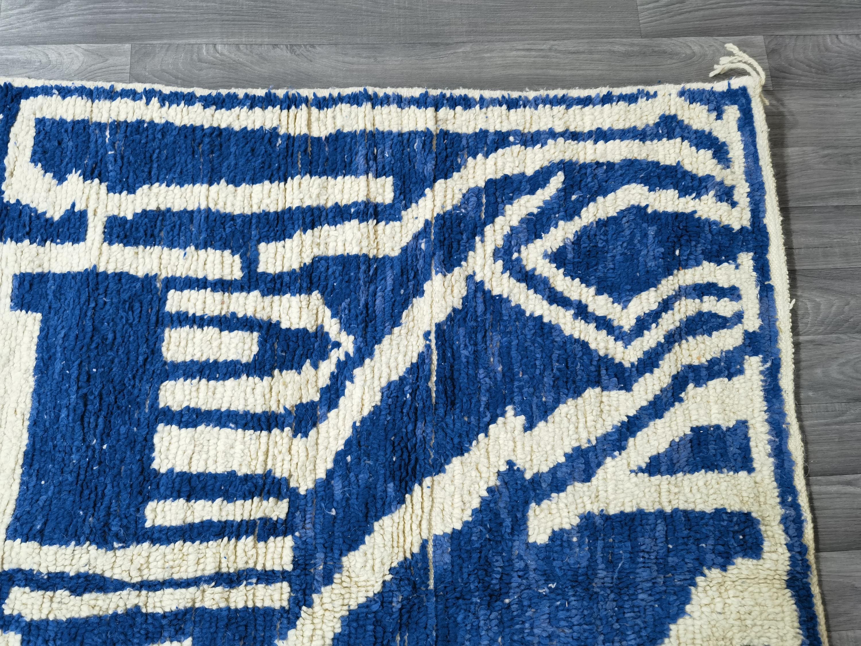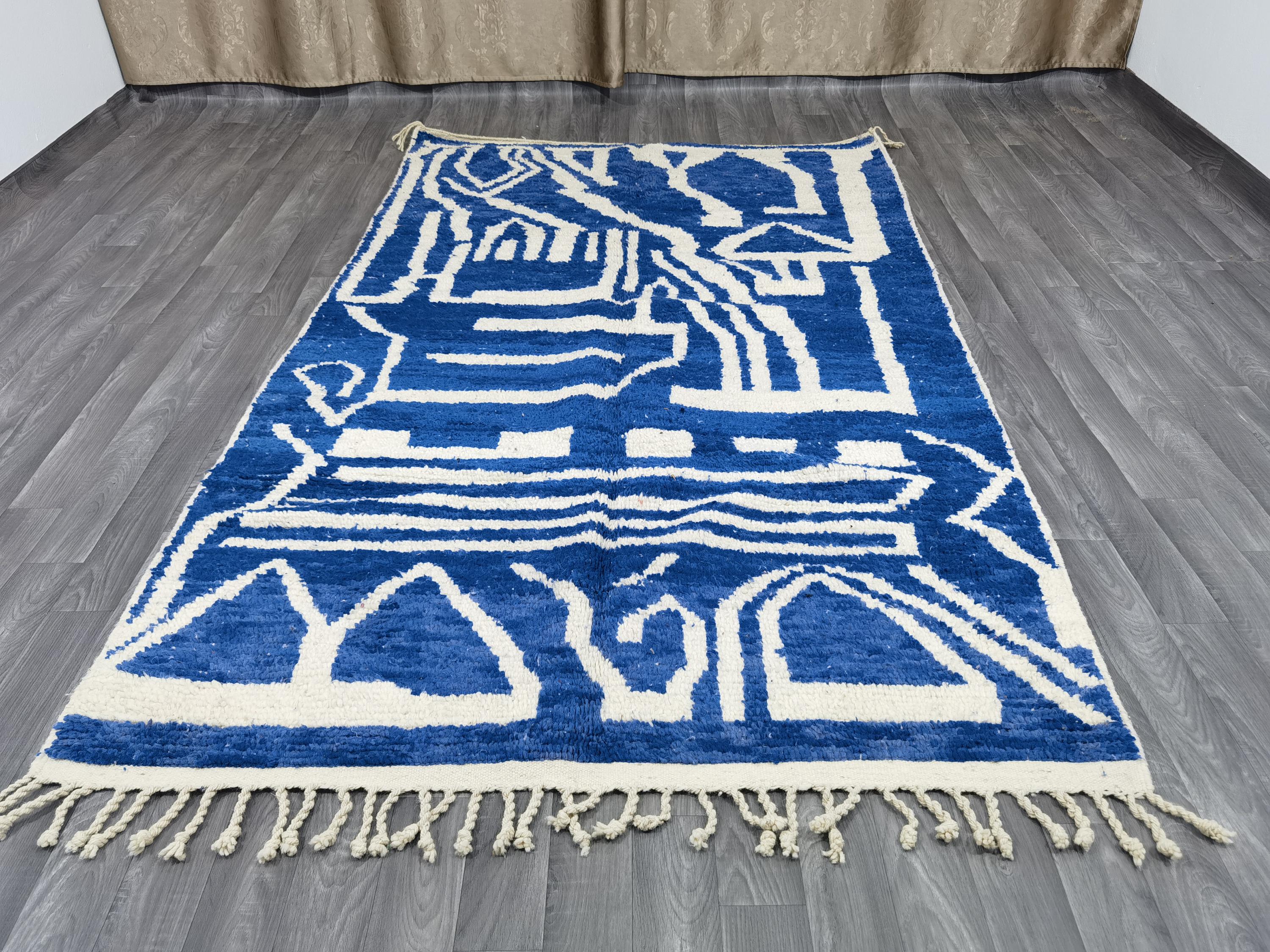 Beni Ourain Rug - Moroccan Blue Rug - Custom Bohemian Rugs - Wool Rug Blue - Quality Handmade Morrocan Rug -Personalize Gifts For Home Decor