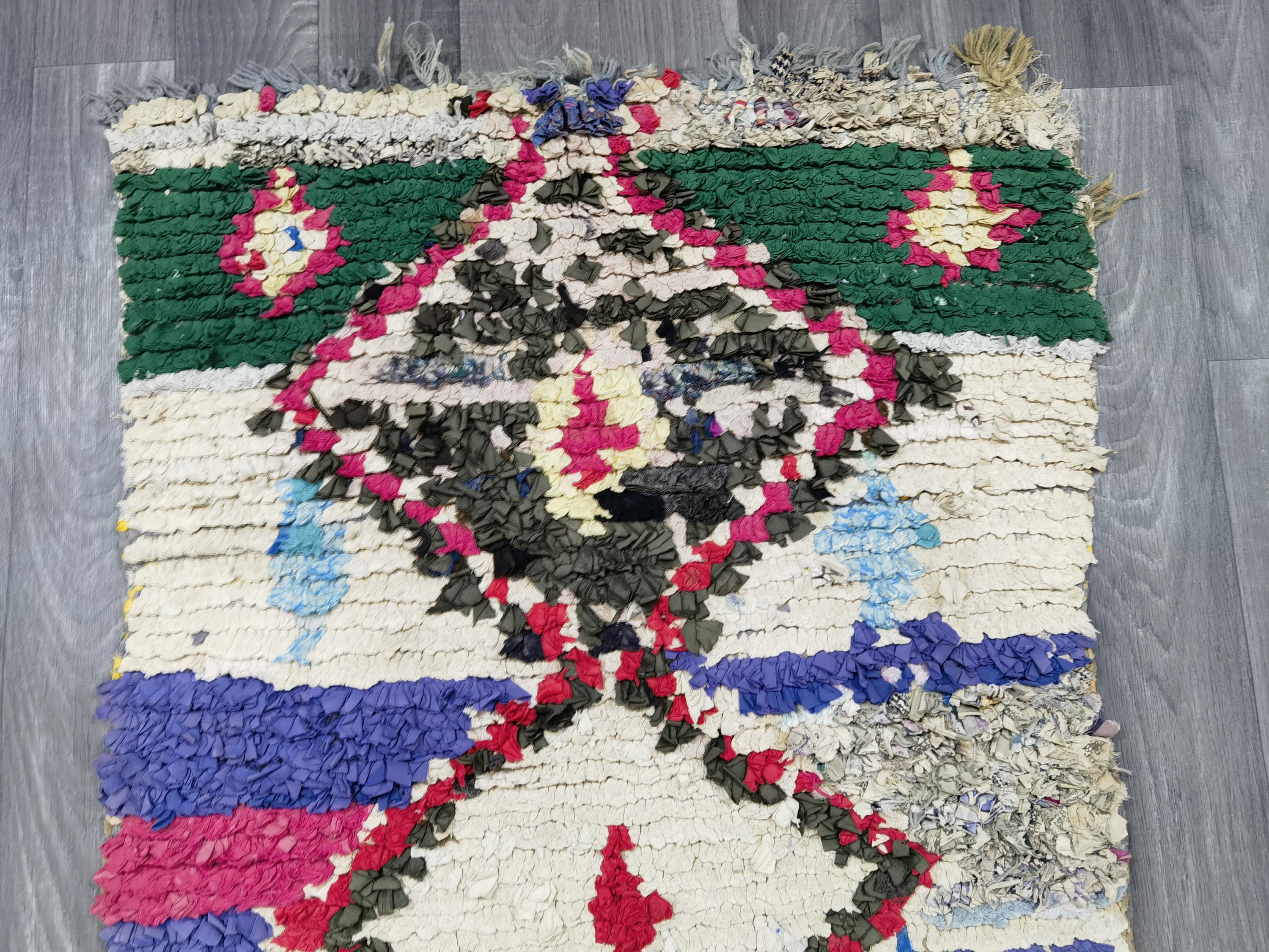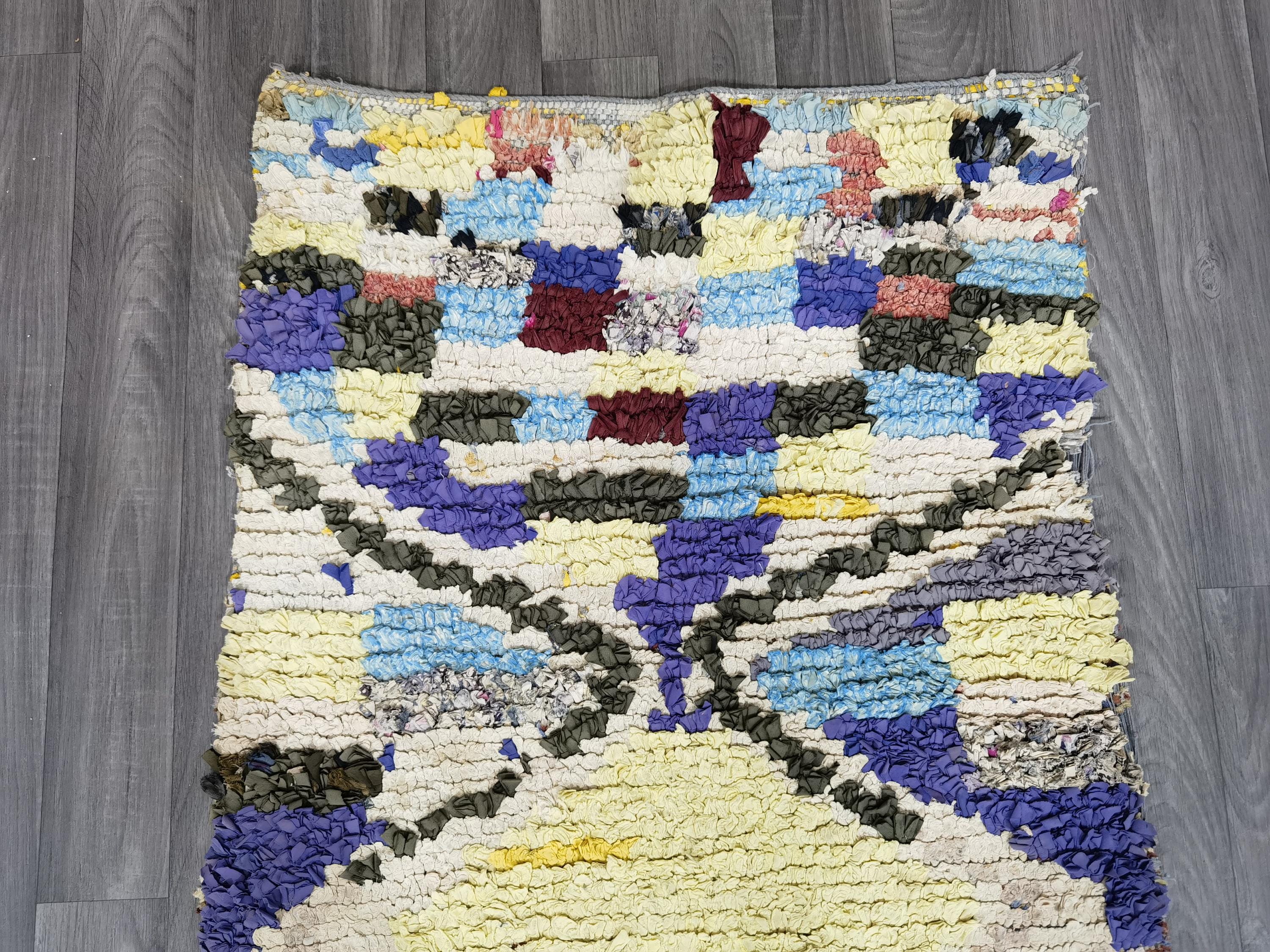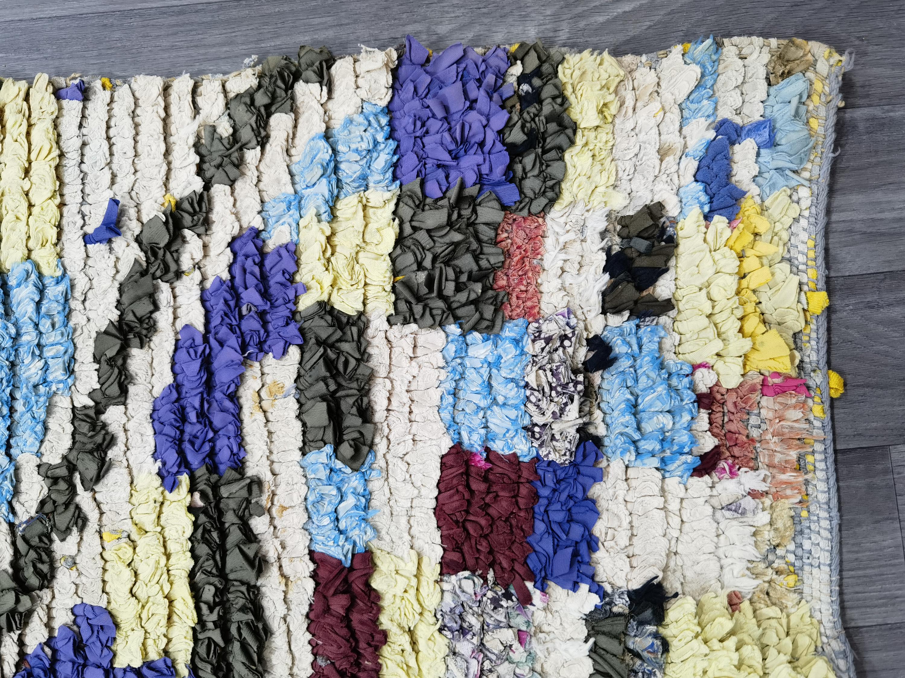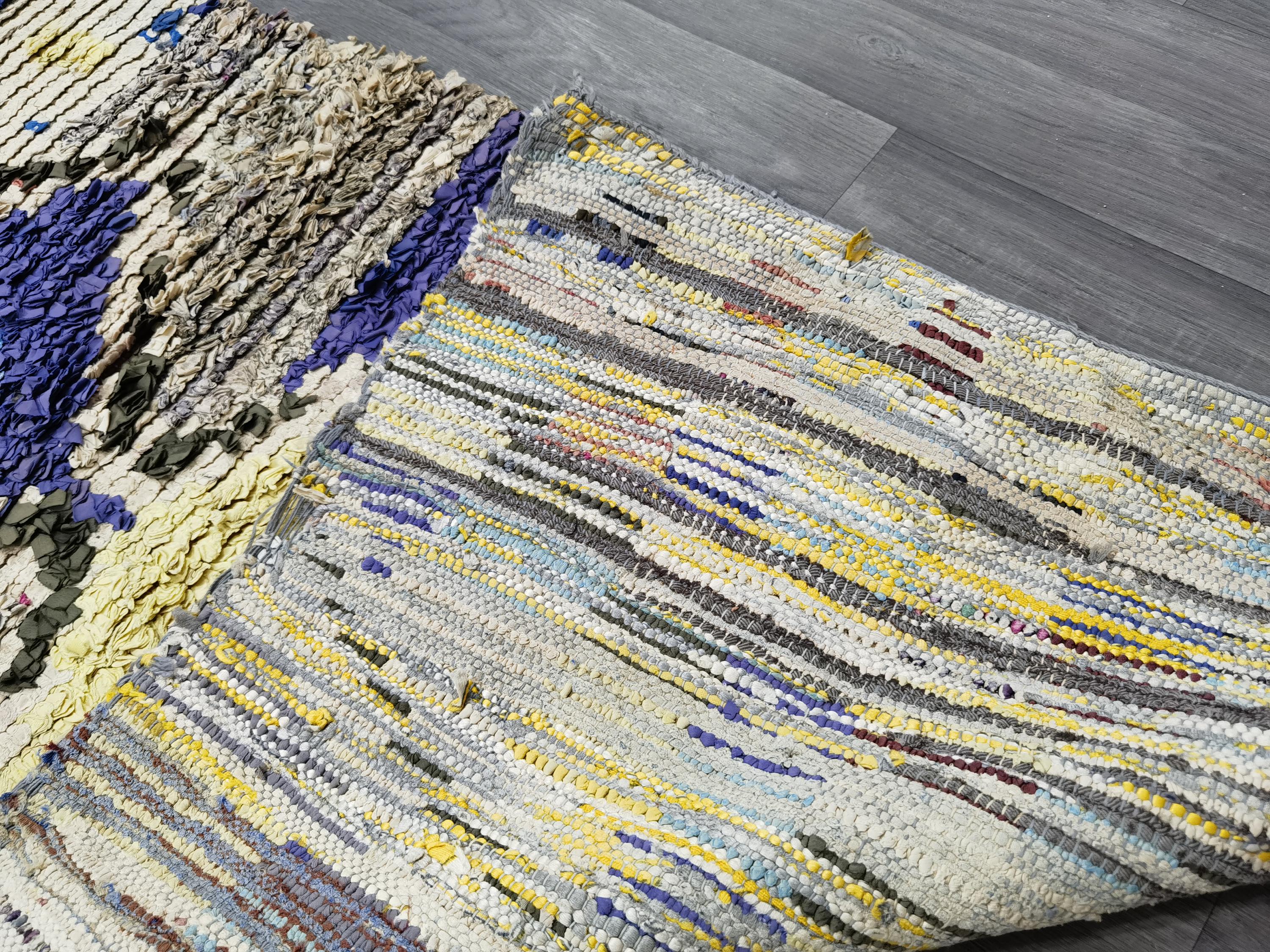 Moroccan Bohemian Berber Rug ,Boucherouite Striped Colorful Rug ,Geometric Cotton Rug Runner, Berber Rug Hand Knotted , Berber Area Rug .