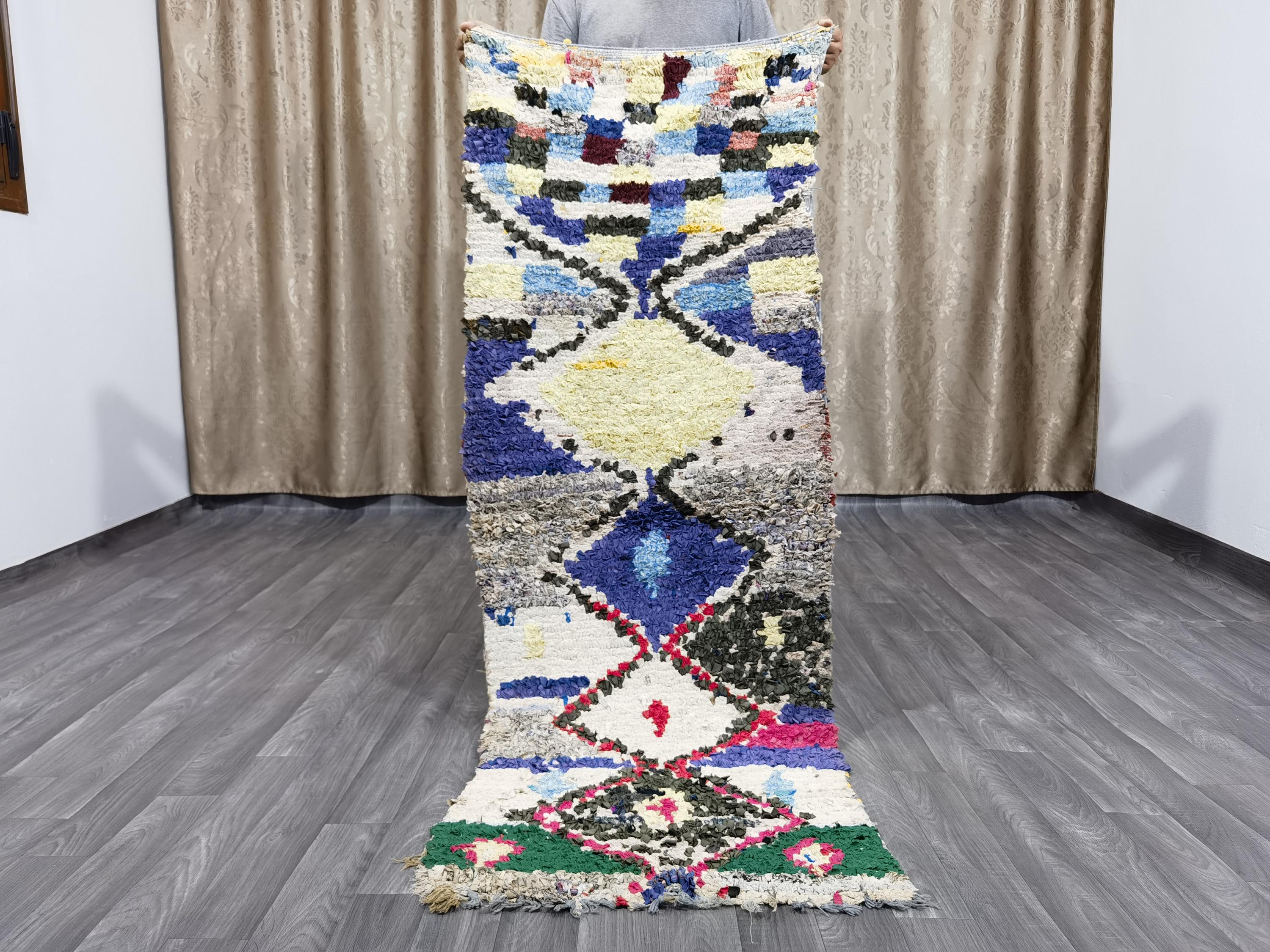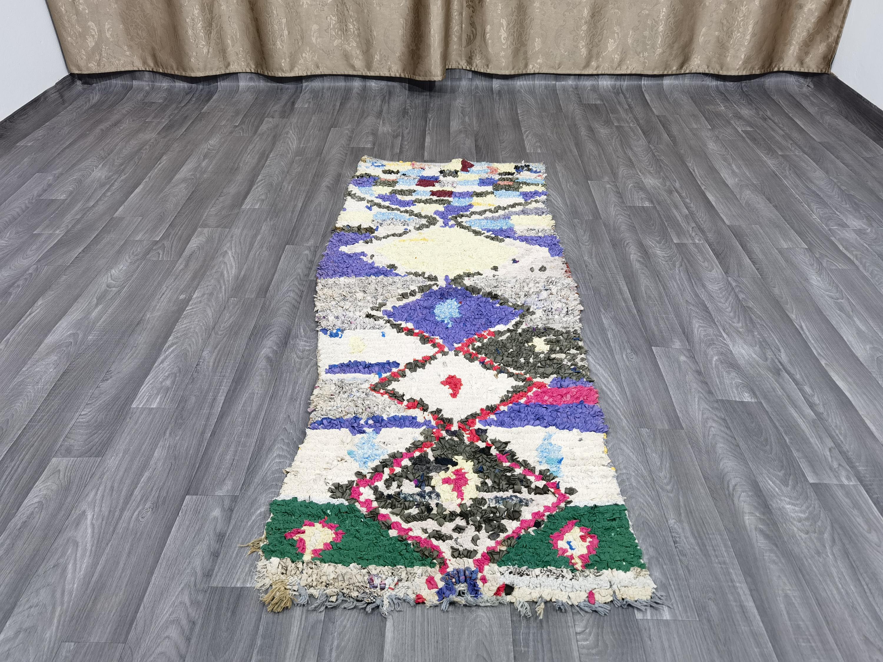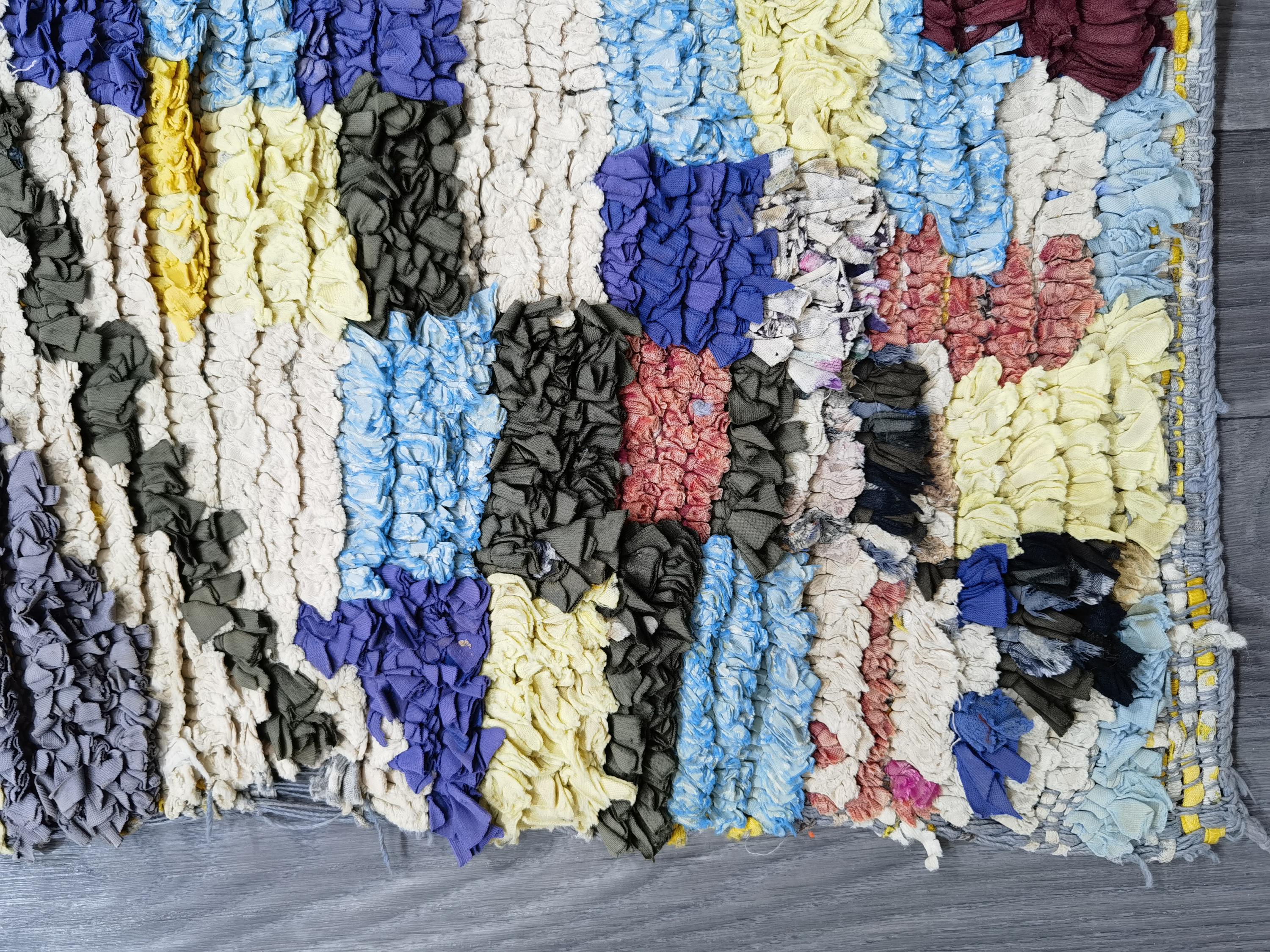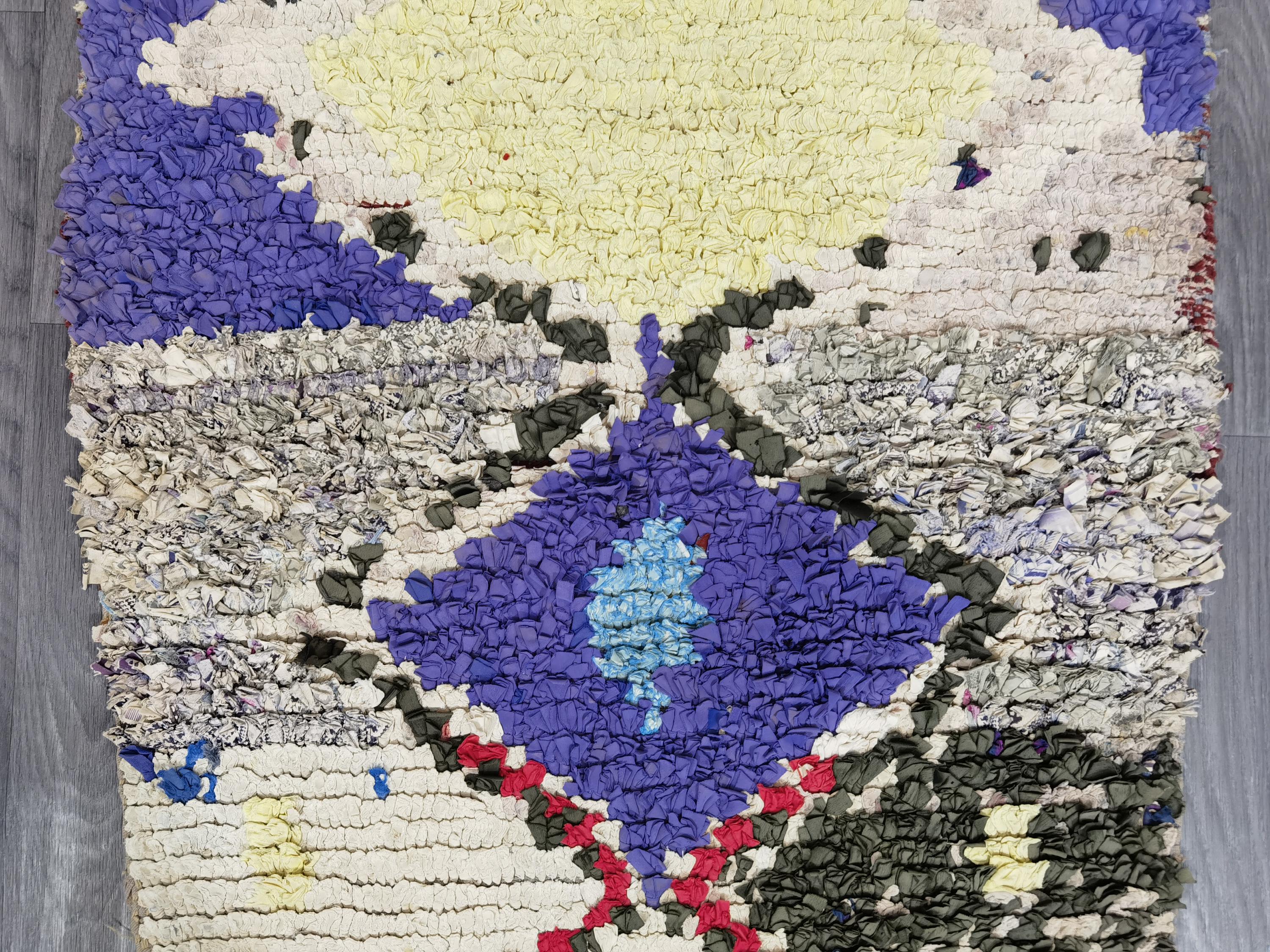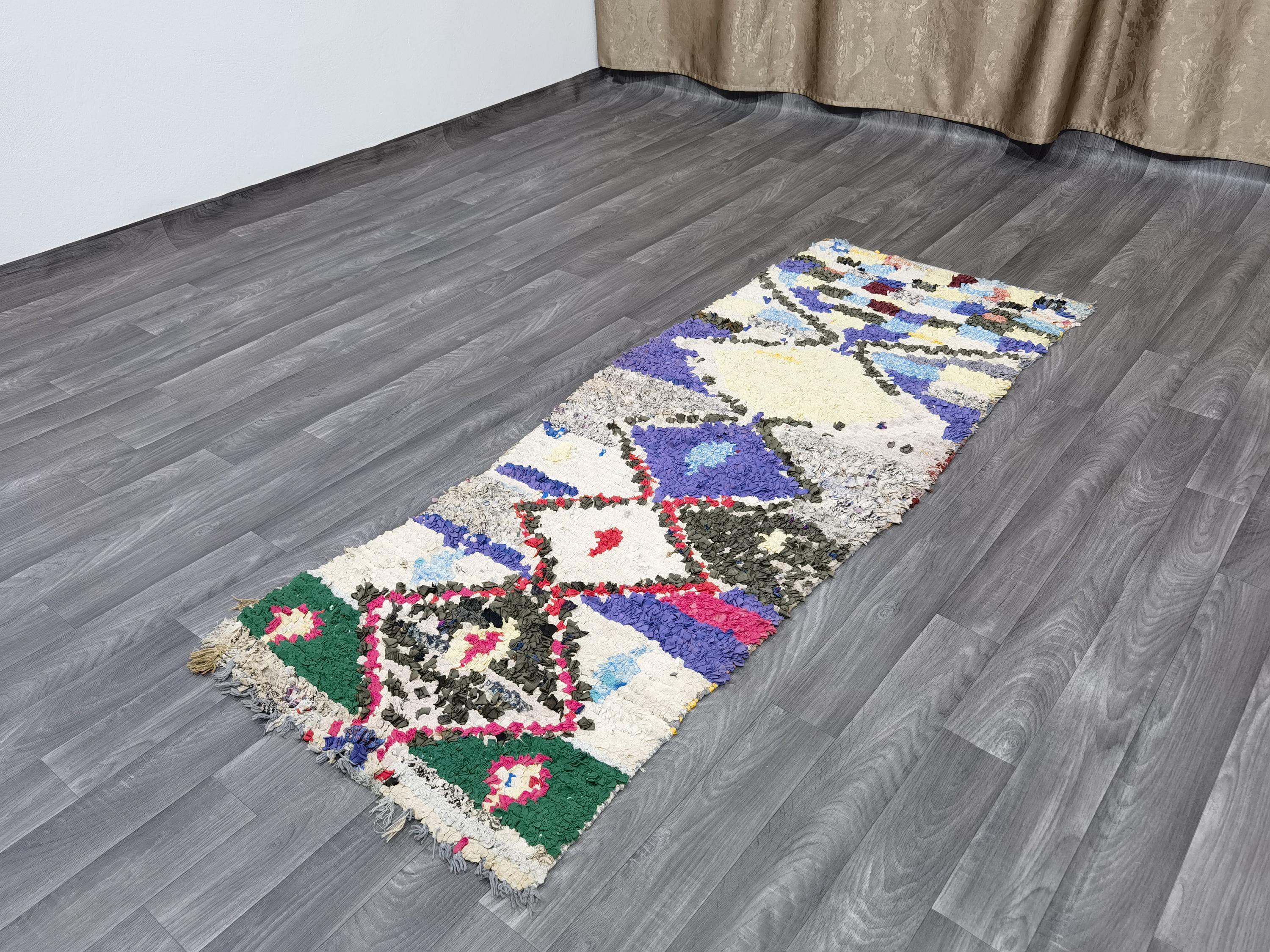 Moroccan Bohemian Berber Rug ,Boucherouite Striped Colorful Rug ,Geometric Cotton Rug Runner, Berber Rug Hand Knotted , Berber Area Rug .