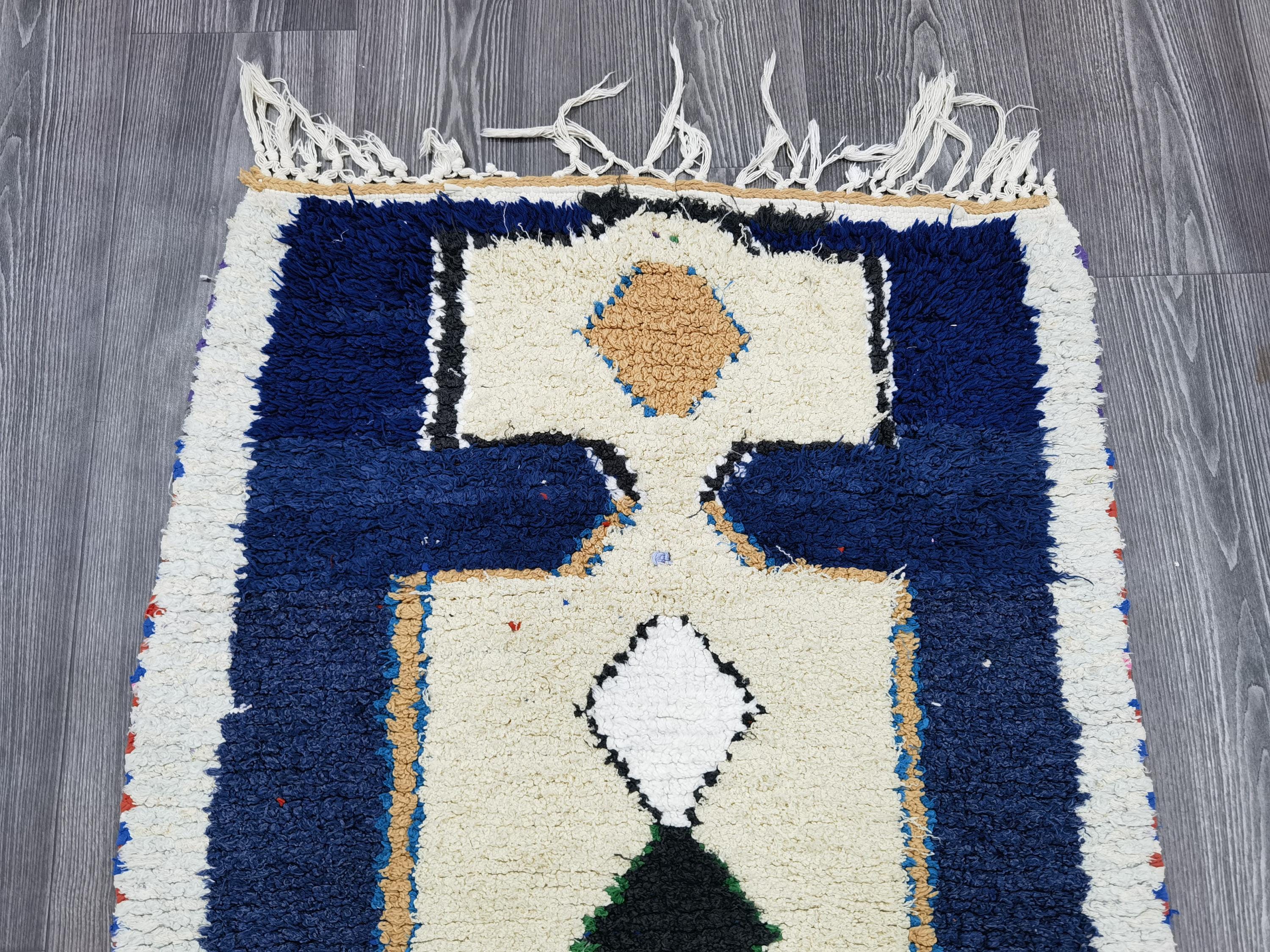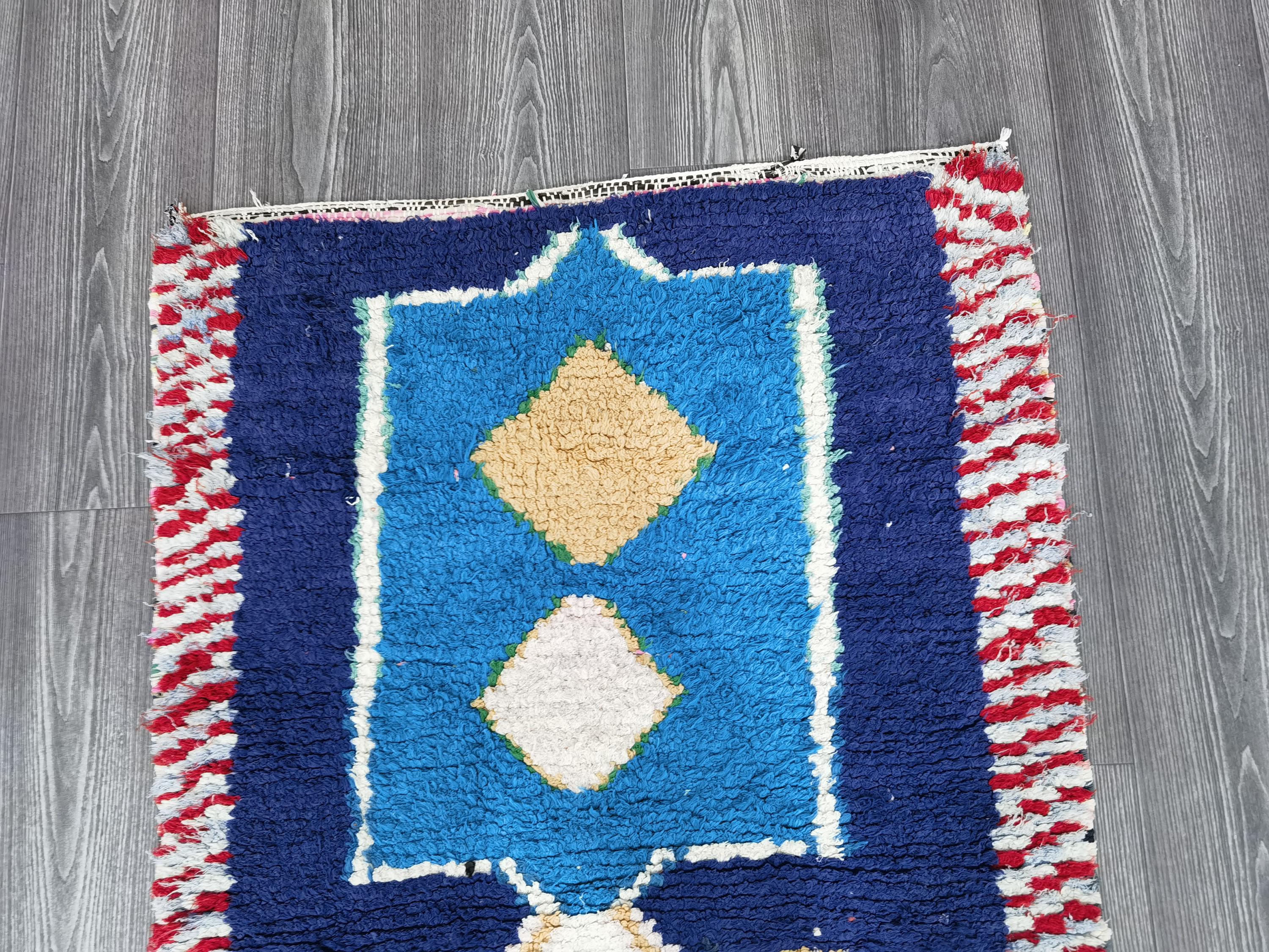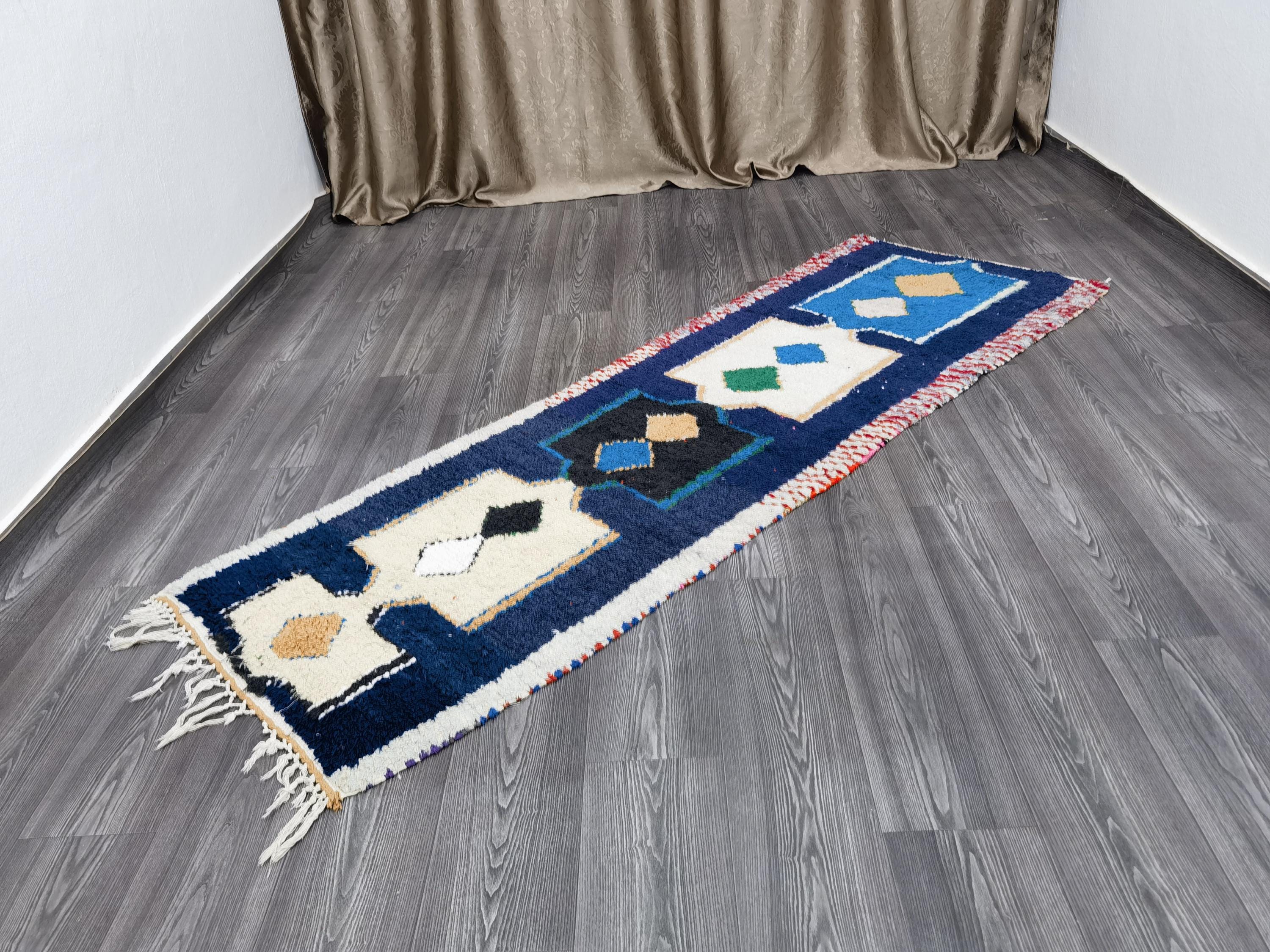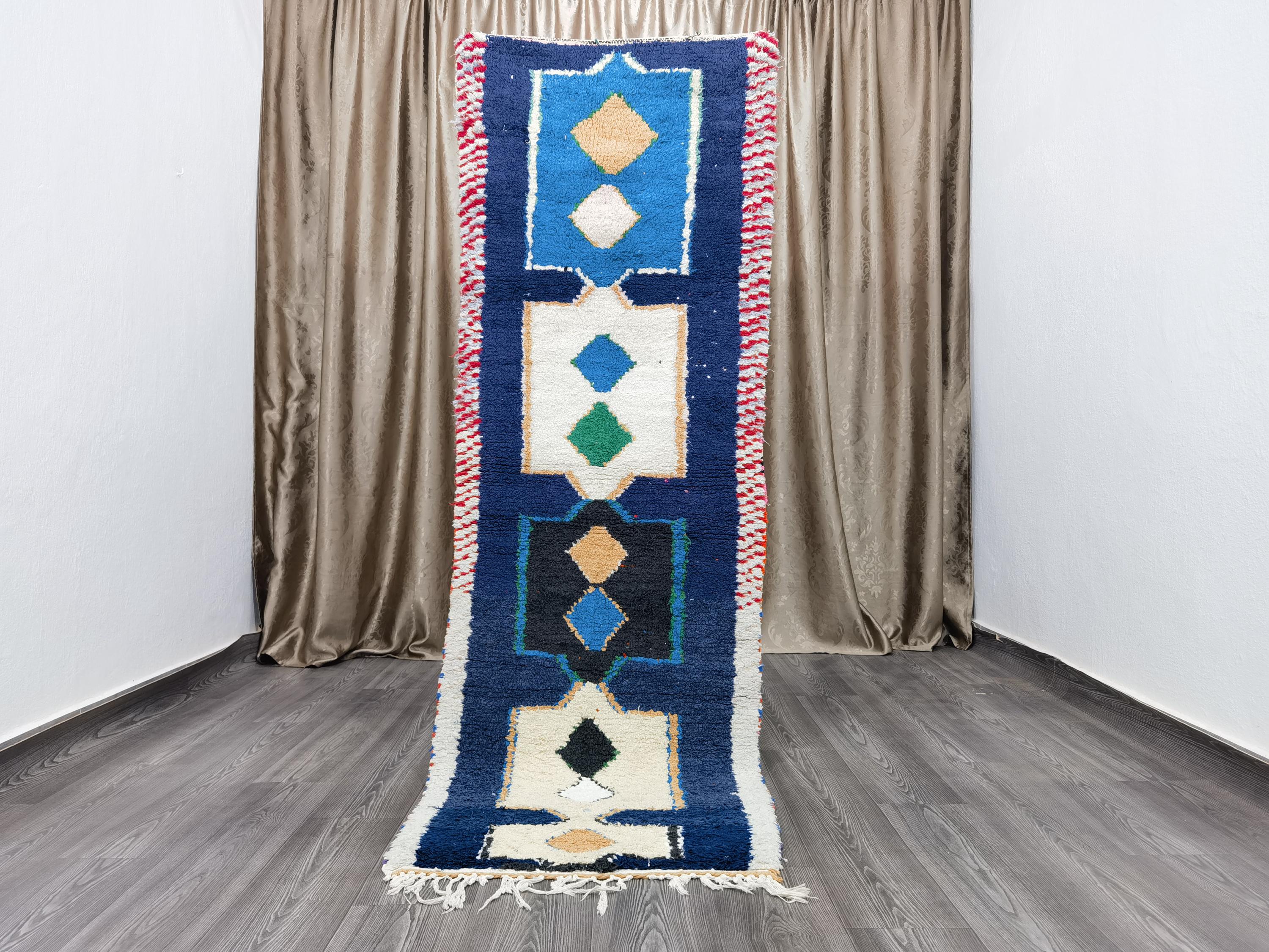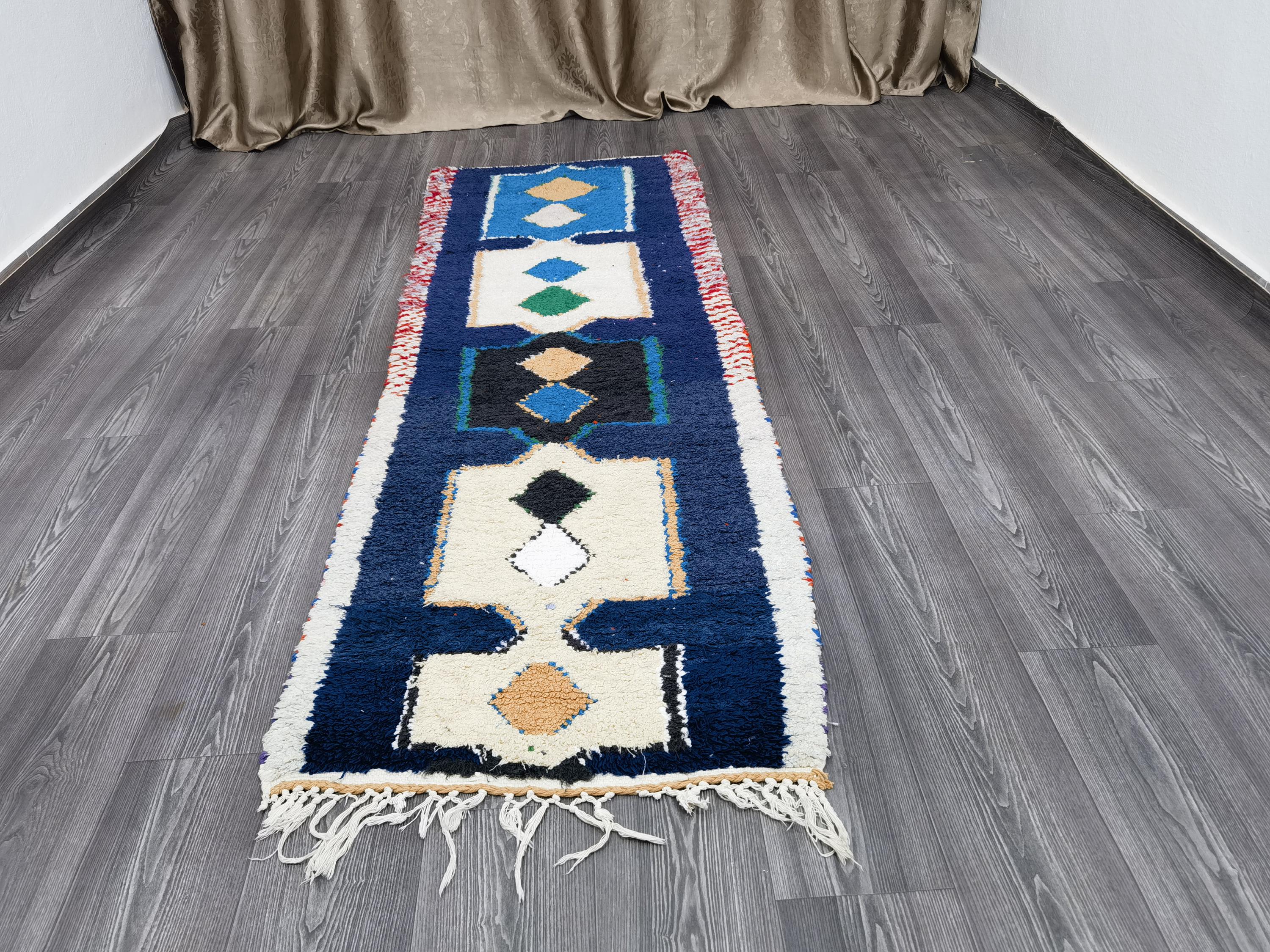 Boujaad Runner 2.5x7.8 Ft - Blue Runner Rug - Tribal Runner Rug - Unique Runner Rug - Moroccan Berber Rug - Blue Hallway Runner