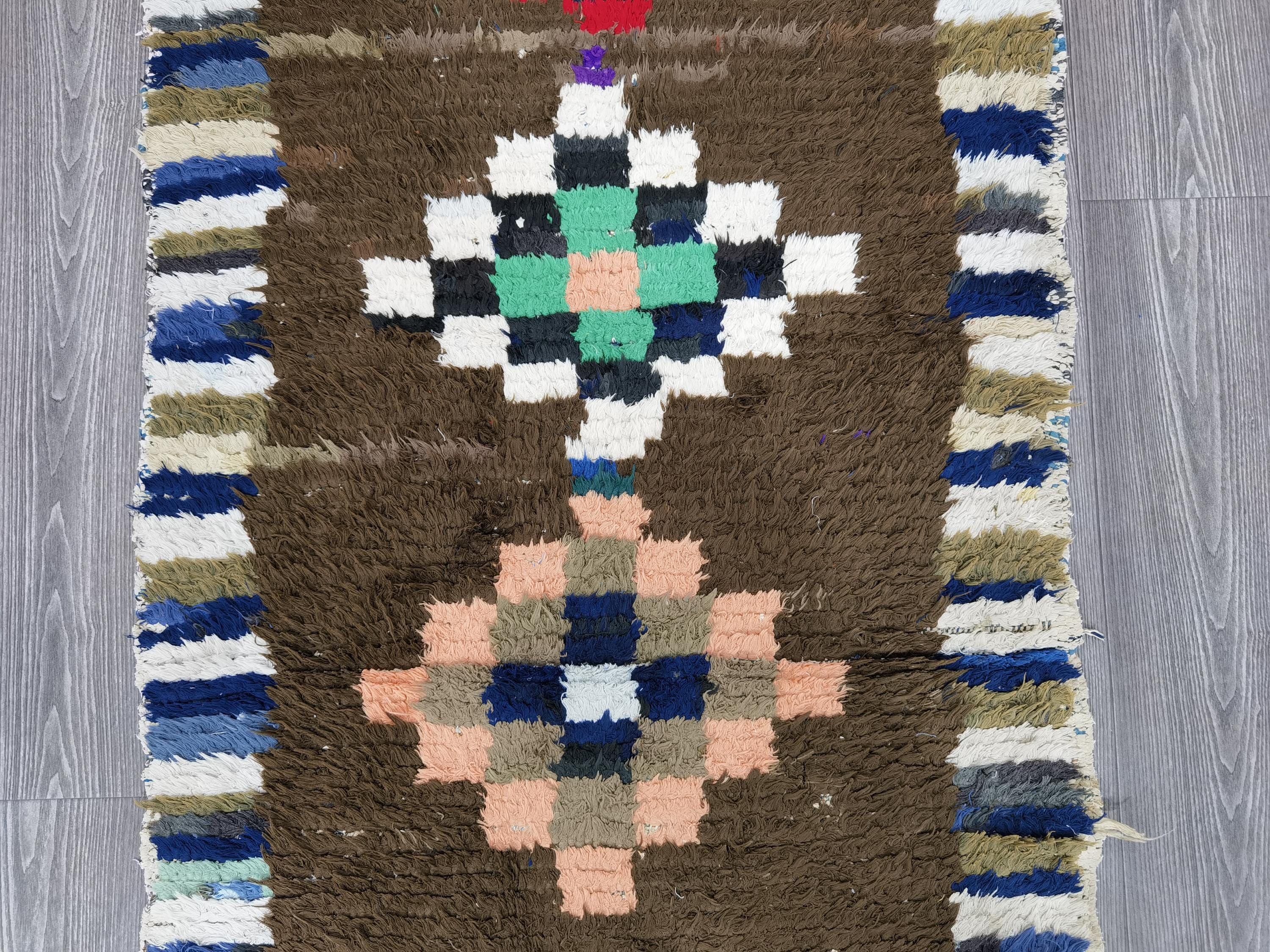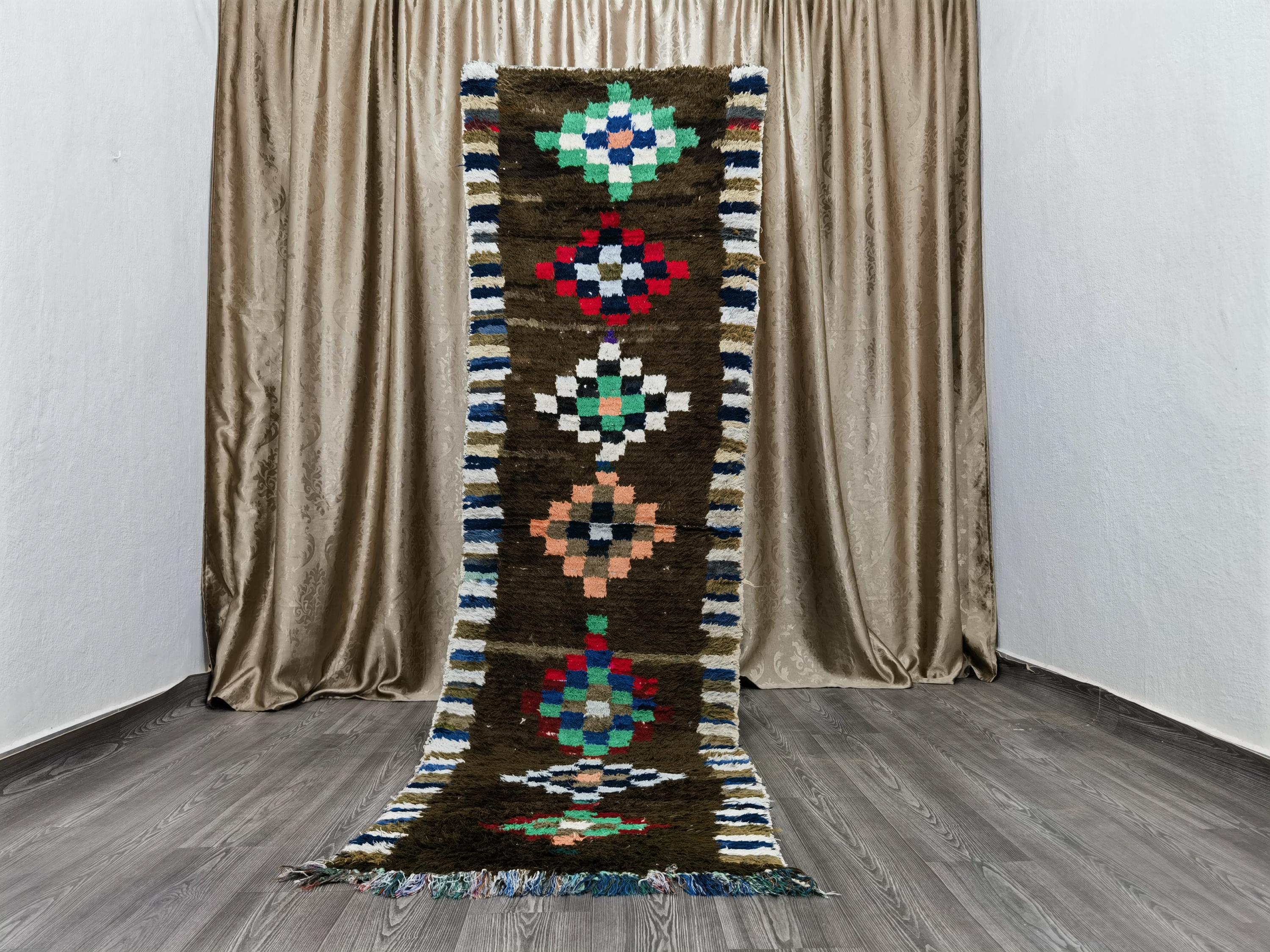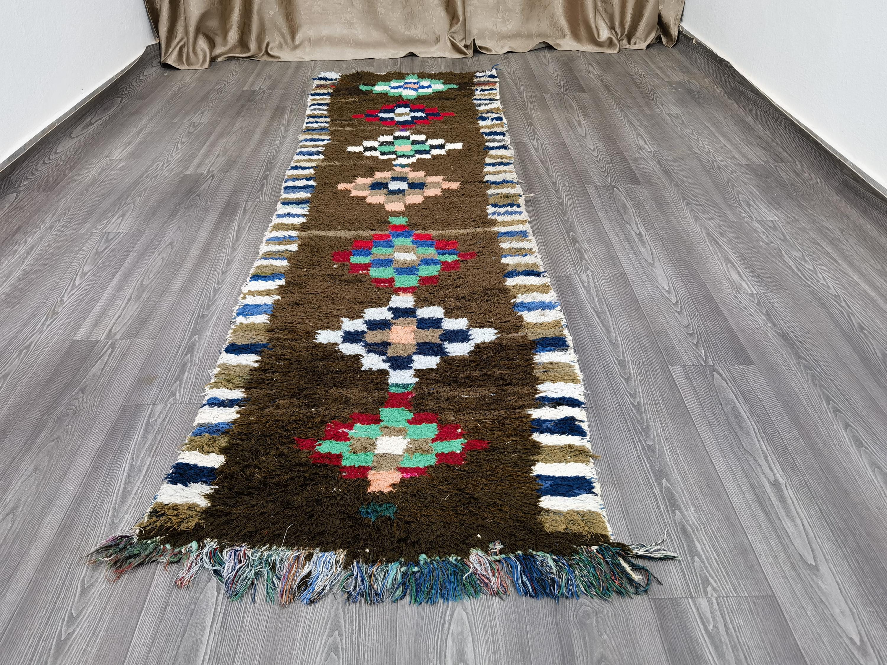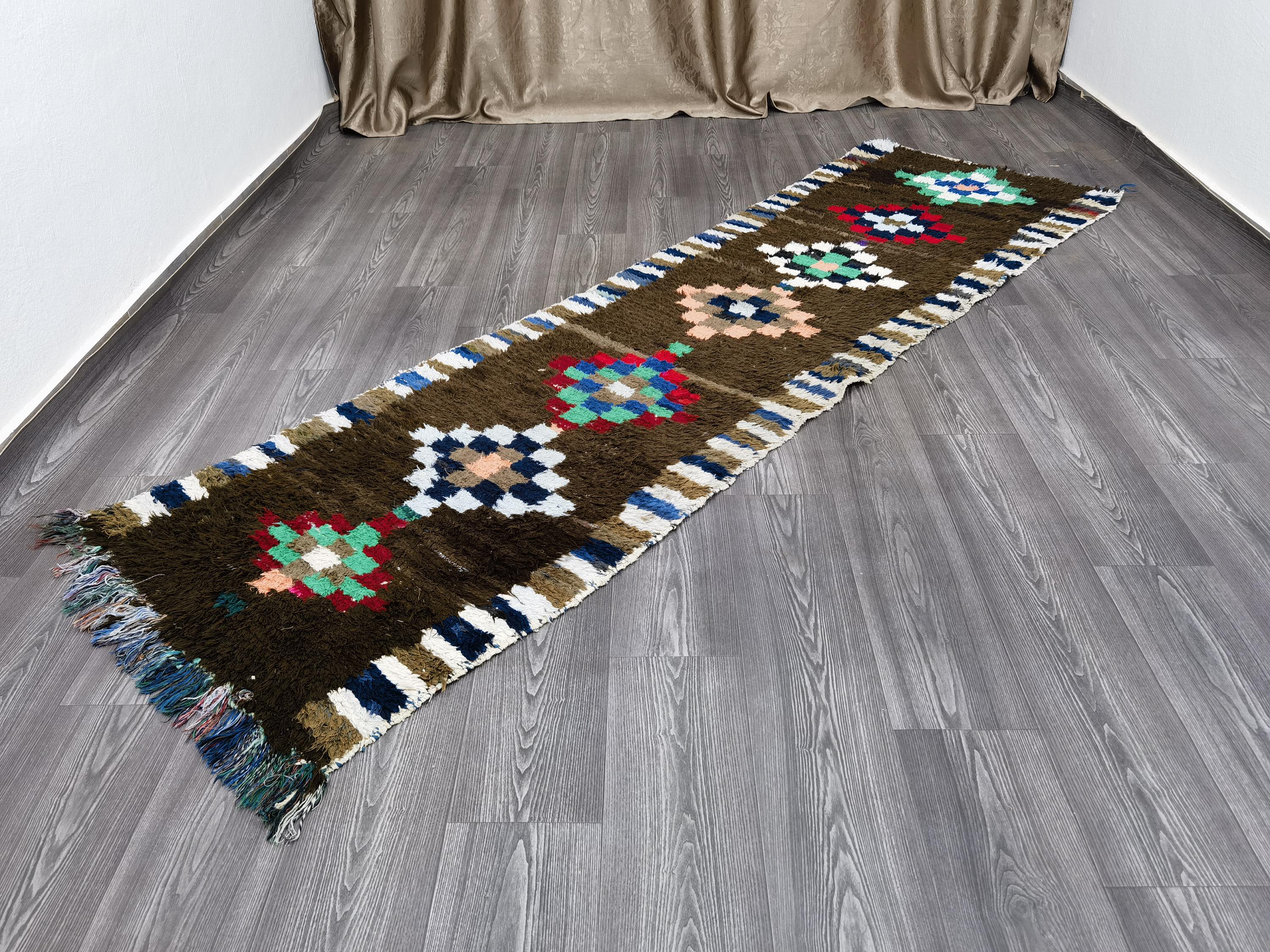Handmade Brown Moroccan Runner Rug: 2.6x9.2 Ft Cotton Boho Rug