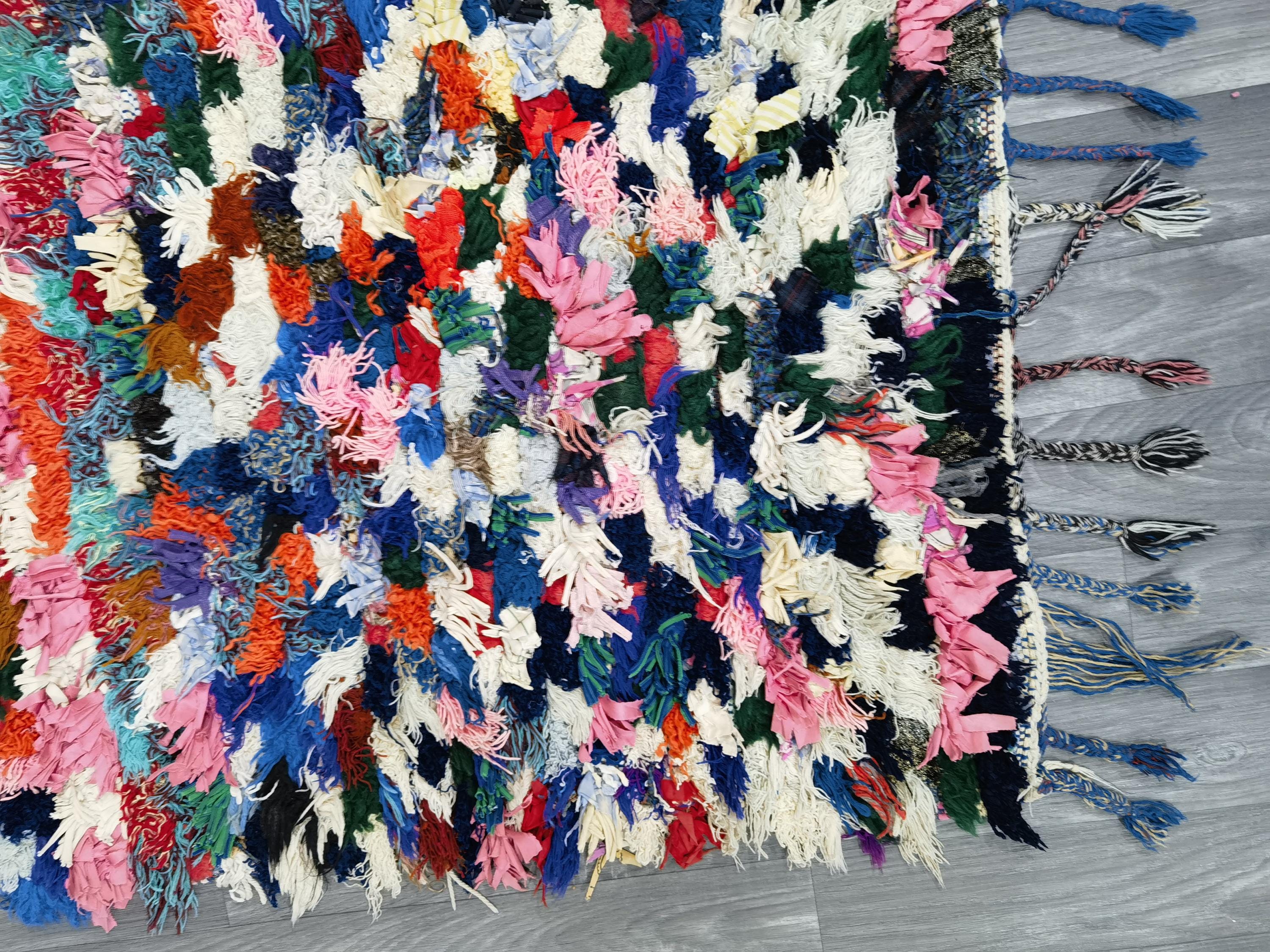 Boujaad is a vibrant and colorful wool runner that will add life to any room in your home. Made from 100% wool, this rug is perfect for use in the living room, bedroom, or anywhere you want to add some beautiful Moroccan flair. The soft and fluffy texture makes it comfortable to walk on, and the vivid colors will brighten up any space. Whether you're looking for a traditional shag rug or something a little more bohemian, Boujaad is sure to be a hit with your guests.